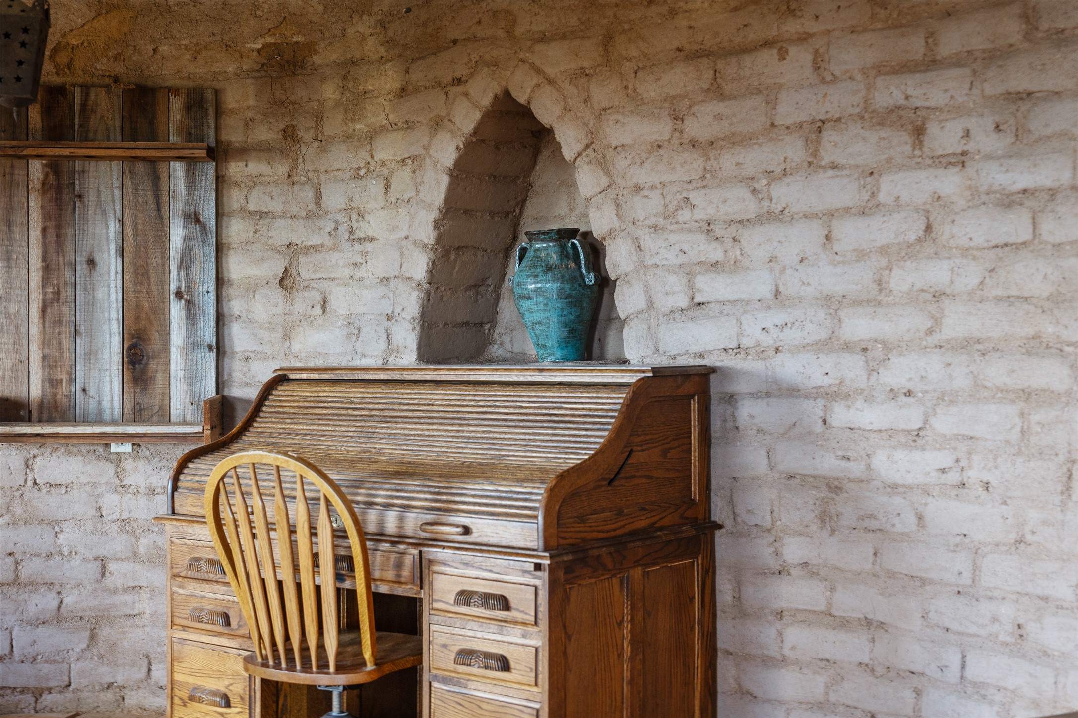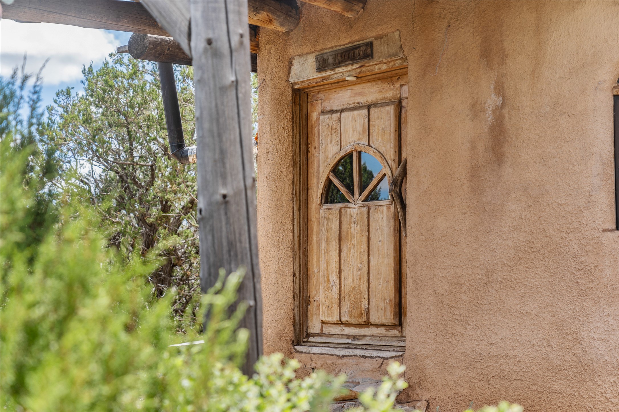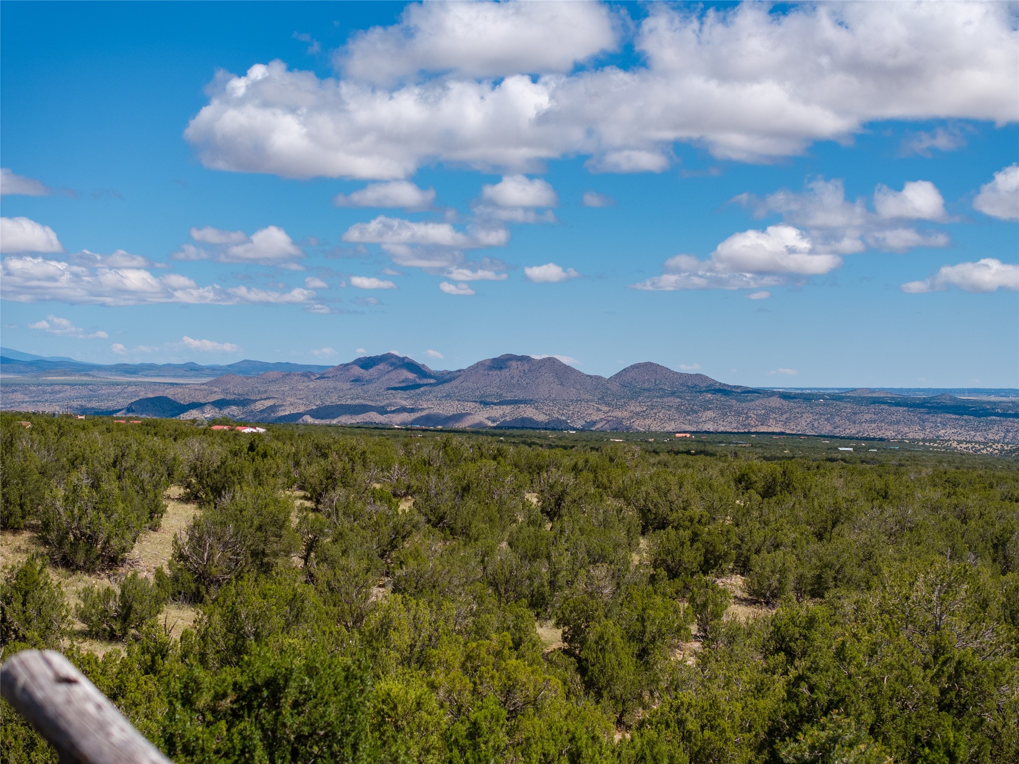 Revealing a sculptor's touch, this hand-built round adobe on the slopes of the Ortiz Mountains is ready for new energy. Nestled on 13.34 elevated acres with gentle, easy topography and breathtaking views, this one-bedroom, one-bath home offers a sanctuary from the world while being less than a quarter mile from pavement and approximately 30 minutes from Santa Fe. Unique features add warmth and character, including a spiral staircase, wide plank wood floors, hand-hewn counters, a stone sink, and viga ceilings. Outside, the upstairs decks, which currently need repair, offer some of the best views in the region. With wood heat, public electricity, a private well, and a newer septic system, this home is poised to provide a distinctive retreat. While completely charming, this home requires some repairs and upgrades and is priced accordingly. Please make an appointment to see.