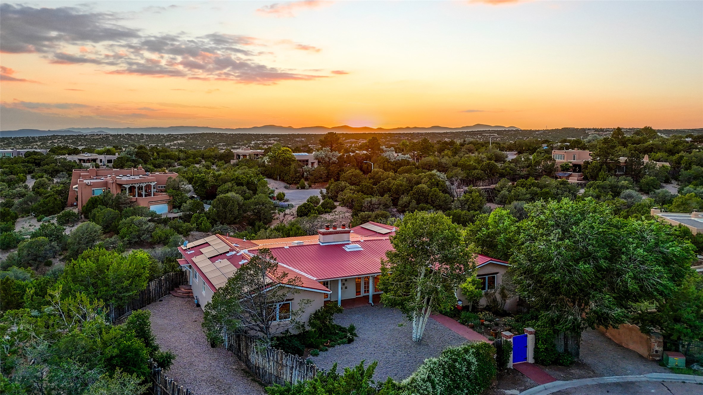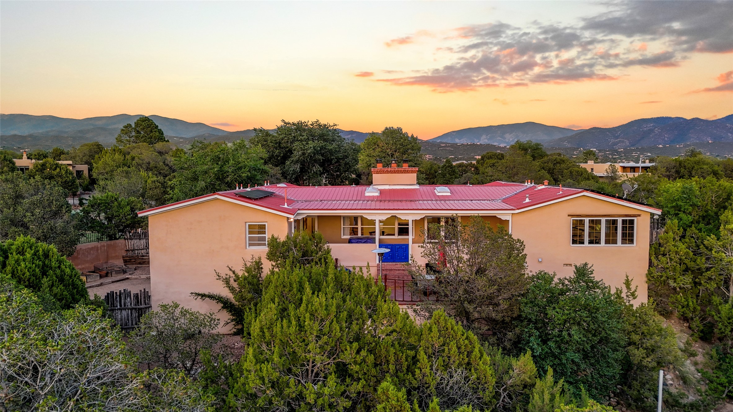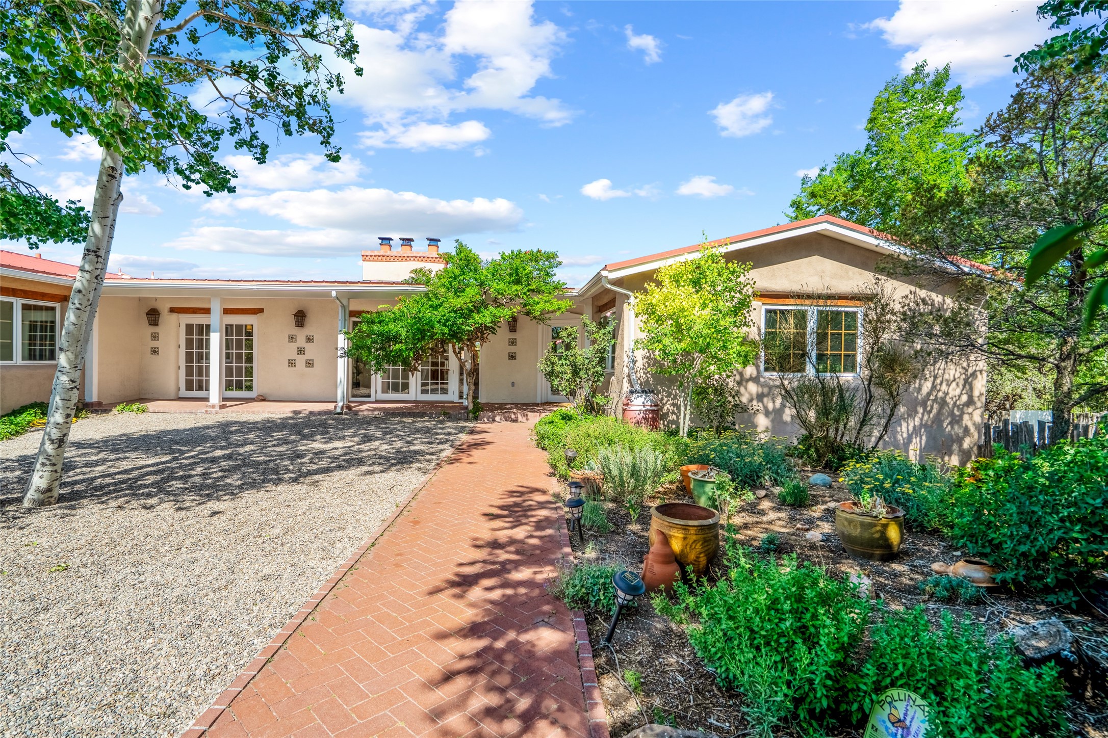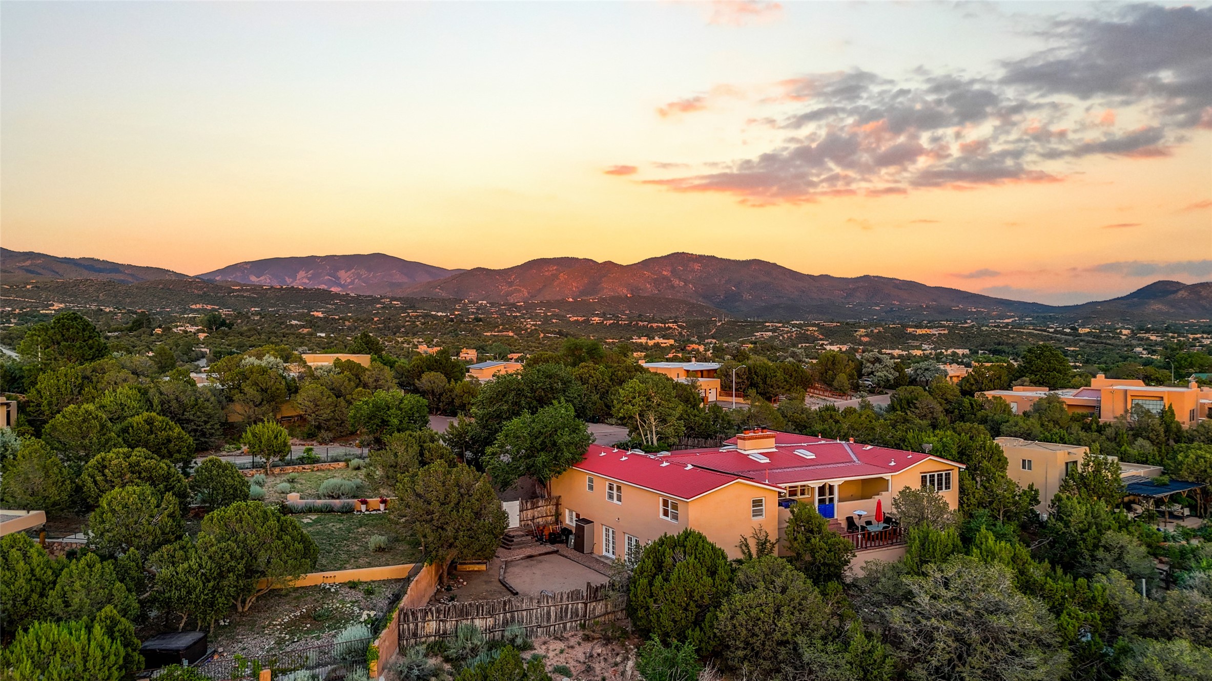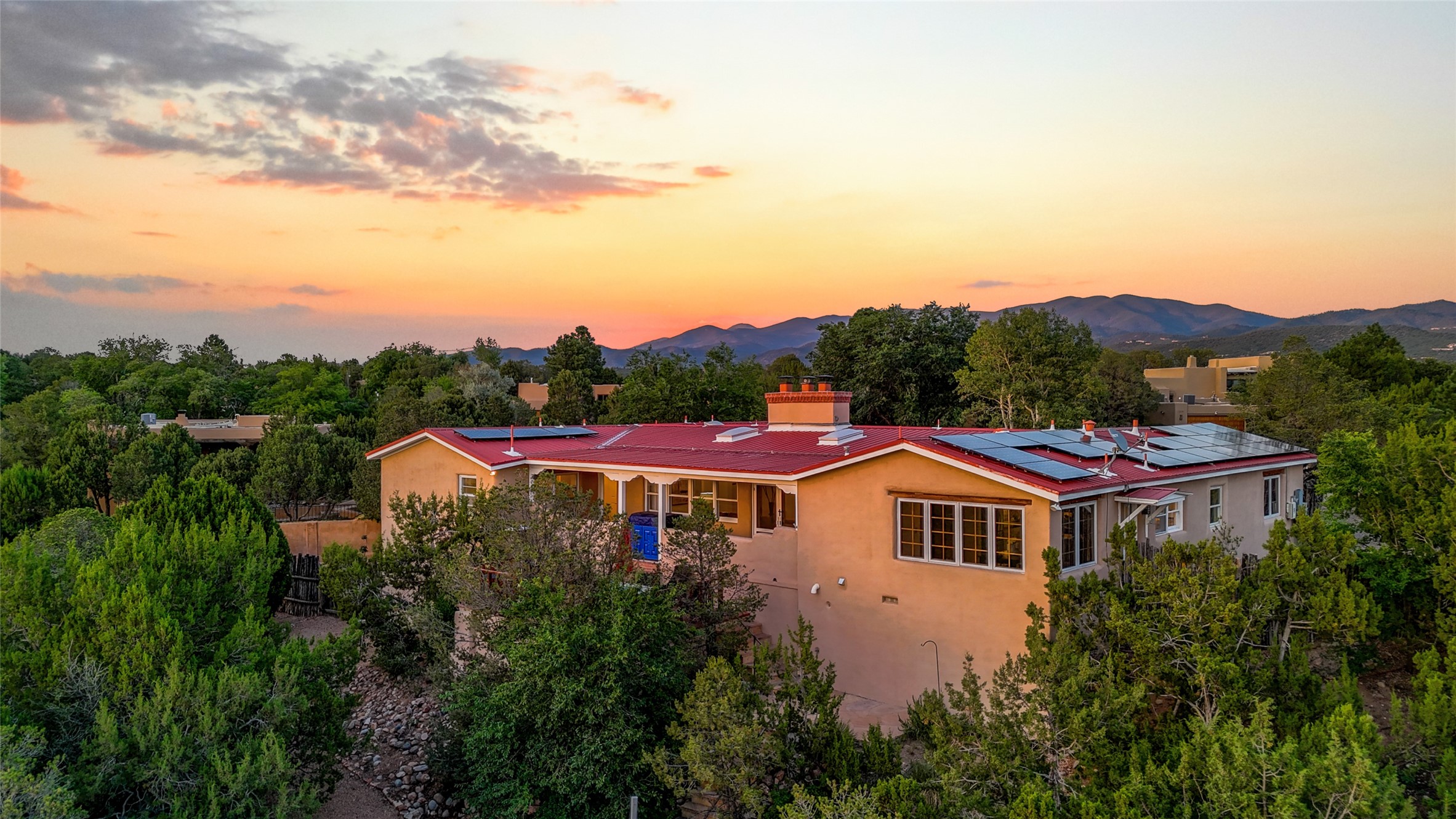 Spacious home near the downtown Plaza, Canyon Road, restaurants, and shopping. Five bedroom home plus a large downstairs area that is perfect as an attached guest house, multi-generational living, studio or office(s). Dual living areas upstairs, both with fireplaces. The dining area has french doors opening up to the front patio perfectly accommodating large gatherings. Lovely, cozy primary suite with a large updated bathroom featuring a large shower and soaking tub. Spacious bright kitchen featuring stainless steel appliances, walk-in pantry, and large breakfast nook area overlooking the City. The portal area on the west side of the home is perfect for evening dining or morning coffee. The downstairs area has two multi-purpose rooms, with the fifth bedroom/bathroom being located downstairs. Newer solar system just a few years old that is owned. Large and spacious basement storage area. Lovely views of the City lights, Ortiz, Sandia, and Sangre de Cristo Mountains.