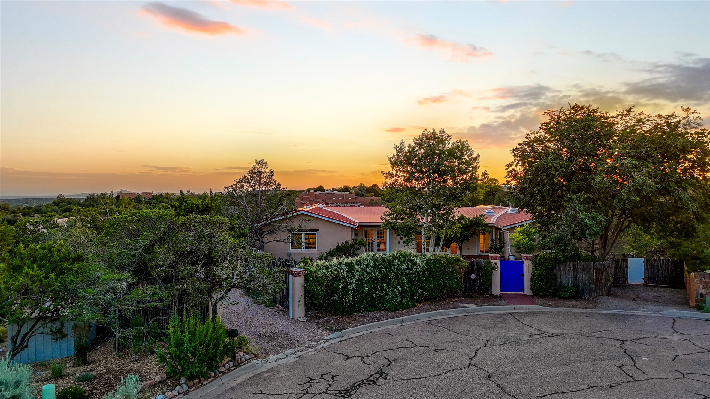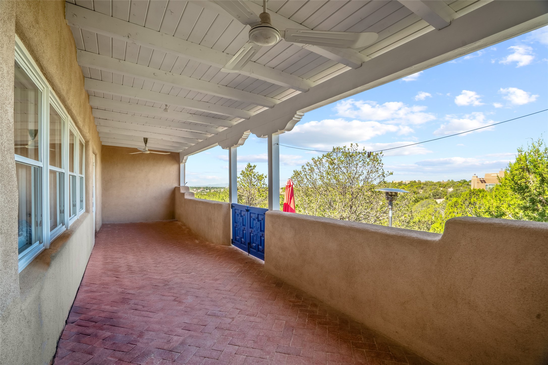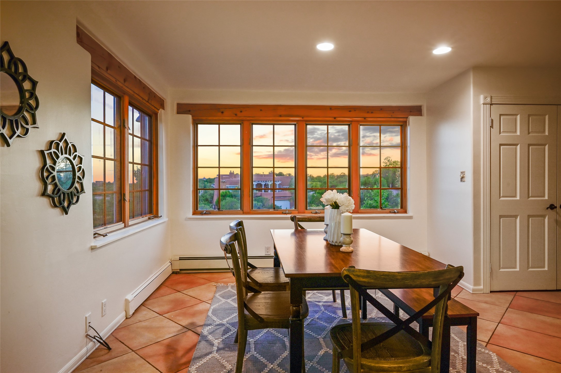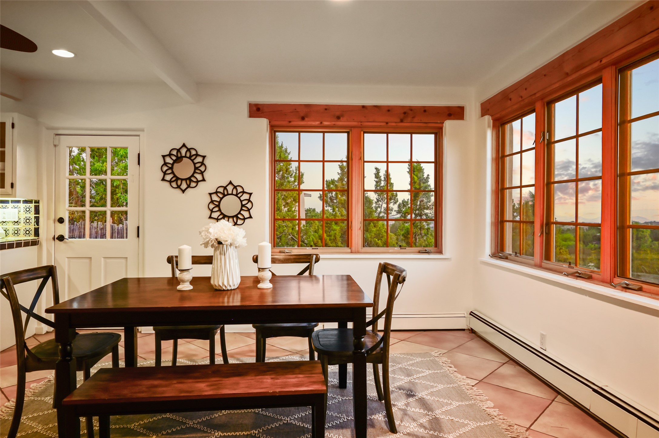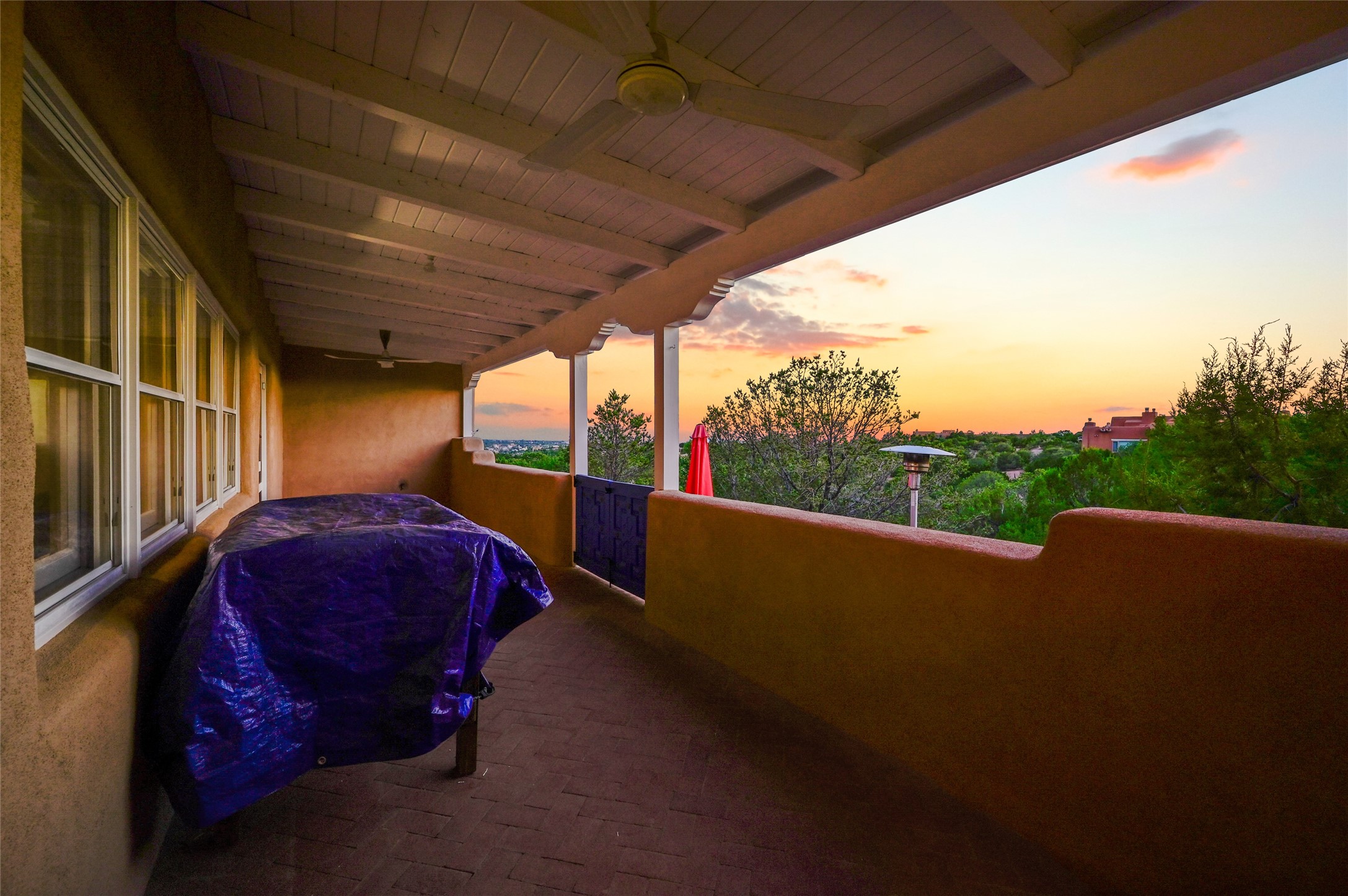 Spacious home near the downtown Plaza, Canyon Road, restaurants, and shopping. Five bedroom home plus a large downstairs area that is perfect as an attached guest house, multi-generational living, studio or office(s). Dual living areas upstairs, both with fireplaces. The dining area has french doors opening up to the front patio perfectly accommodating large gatherings. Lovely, cozy primary suite with a large updated bathroom featuring a large shower and soaking tub. Spacious bright kitchen featuring stainless steel appliances, walk-in pantry, and large breakfast nook area overlooking the City. The portal area on the west side of the home is perfect for evening dining or morning coffee. The downstairs area has two multi-purpose rooms, with the fifth bedroom/bathroom being located downstairs. Newer solar system just a few years old that is owned. Large and spacious basement storage area. Lovely views of the City lights, Ortiz, Sandia, and Sangre de Cristo Mountains.