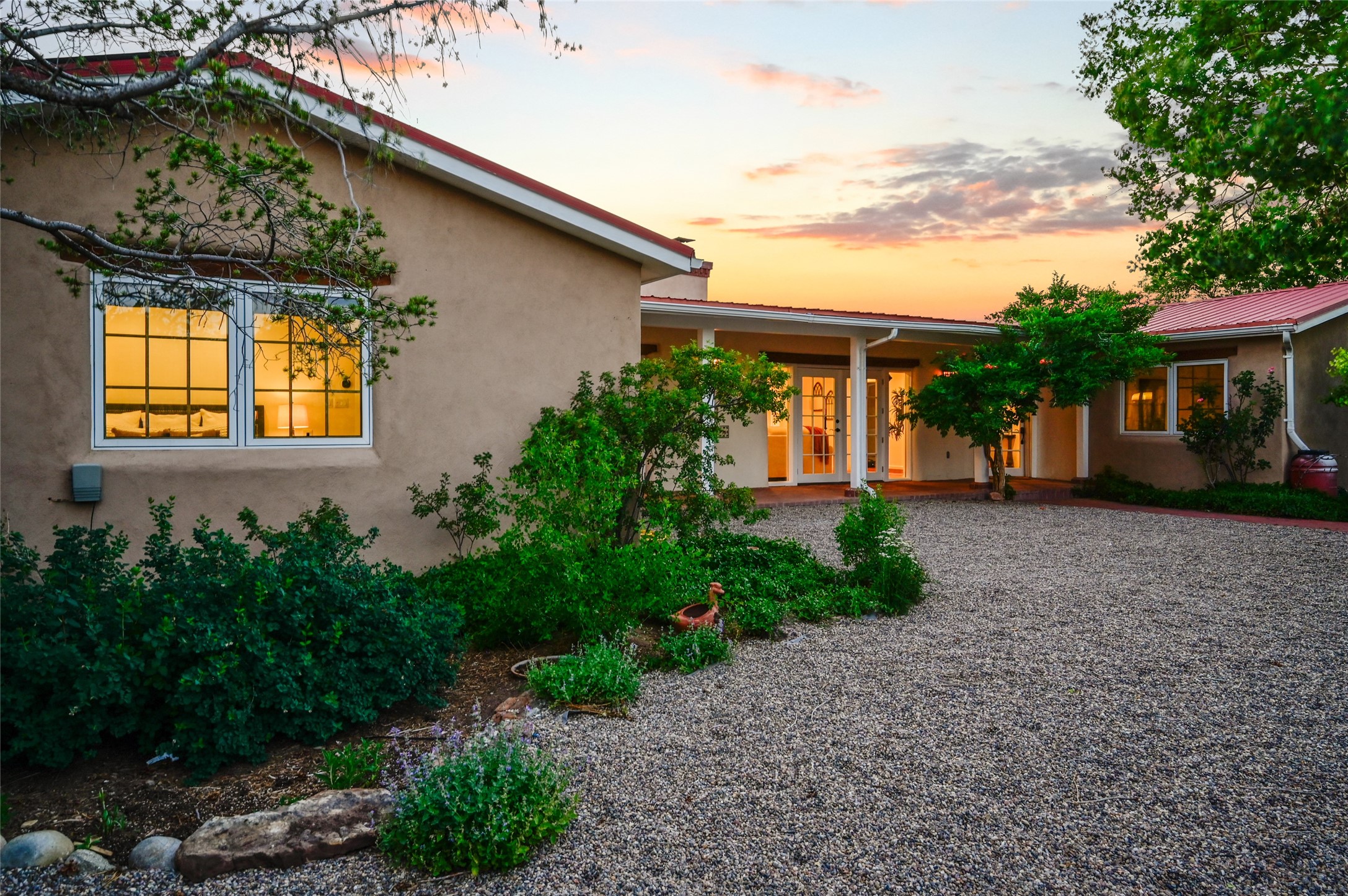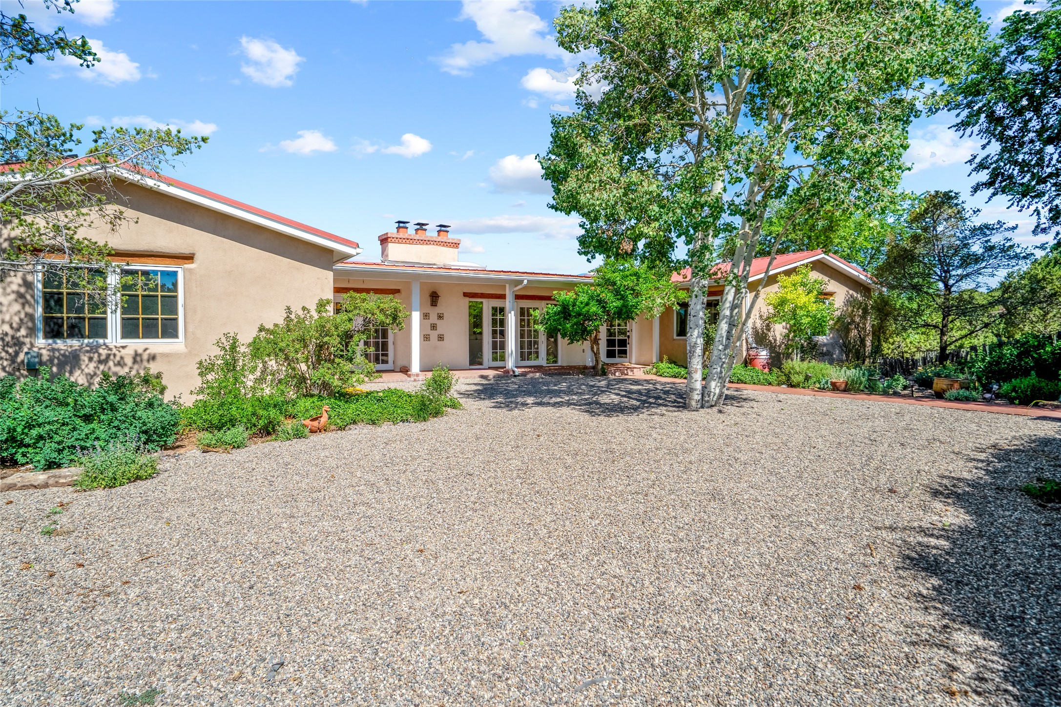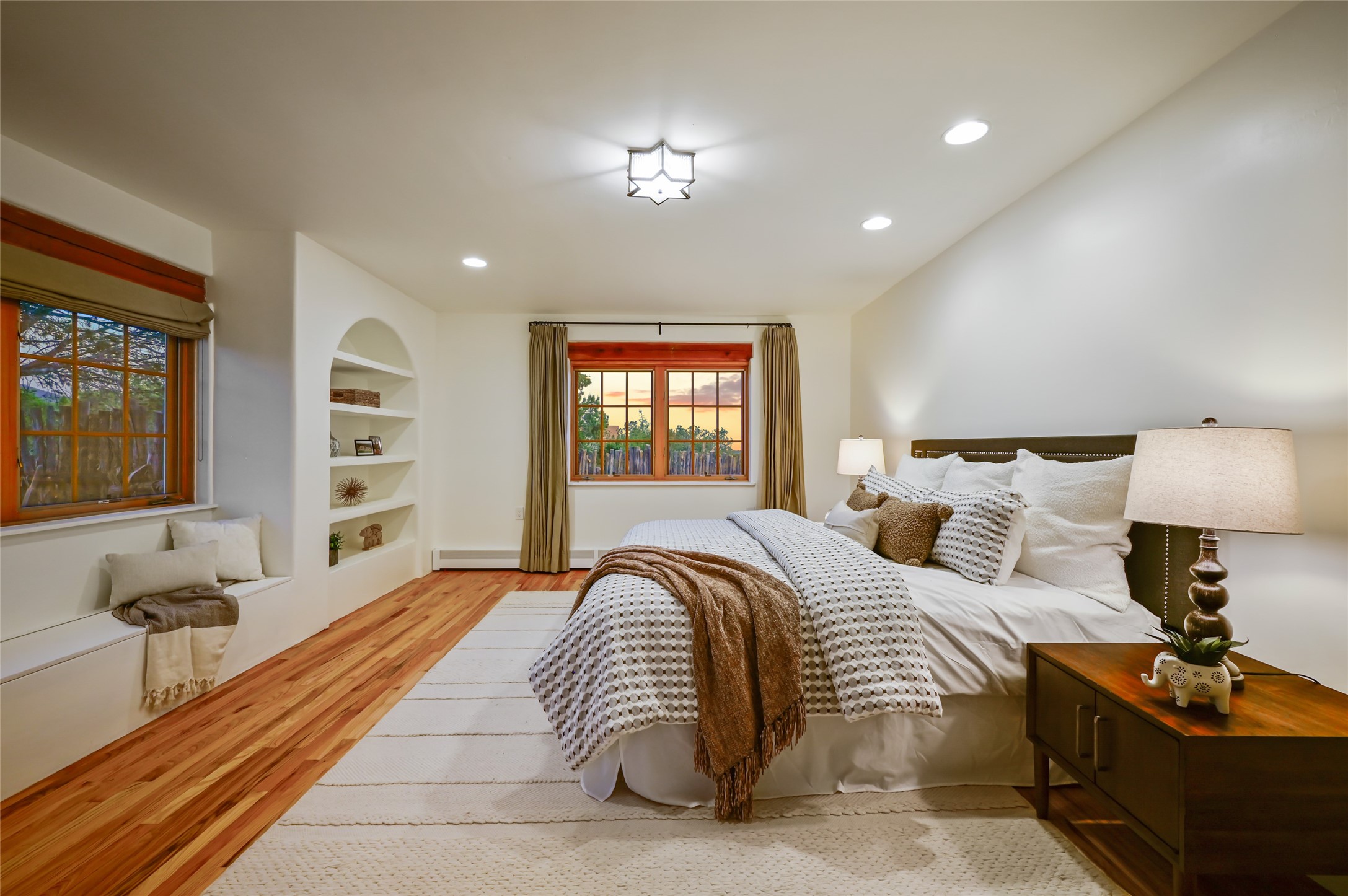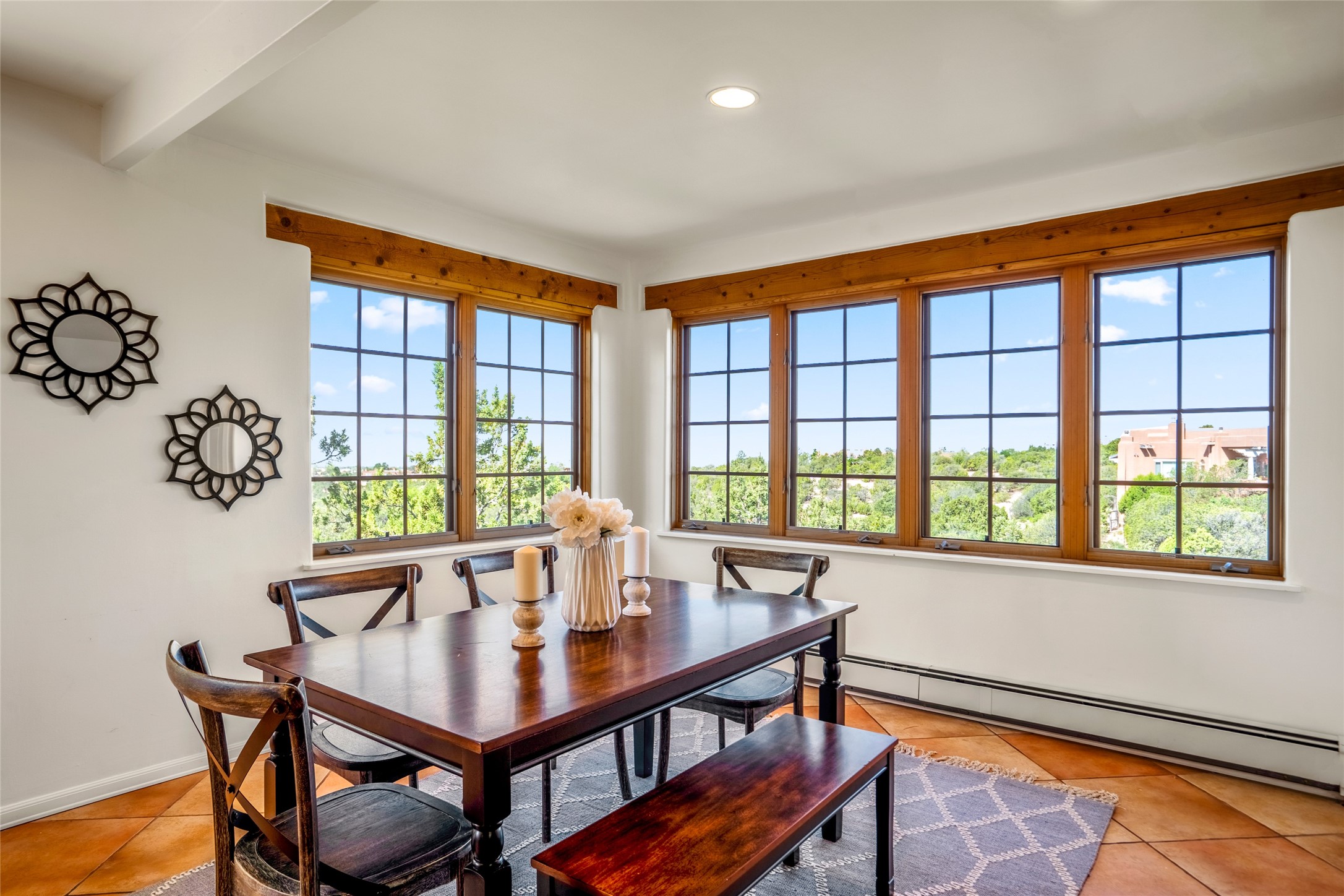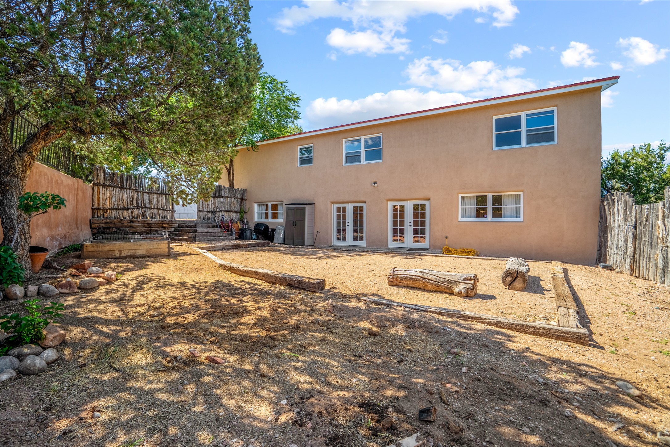 Spacious home near the downtown Plaza, Canyon Road, restaurants, and shopping. Five bedroom home plus a large downstairs area that is perfect as an attached guest house, multi-generational living, studio or office(s). Dual living areas upstairs, both with fireplaces. The dining area has french doors opening up to the front patio perfectly accommodating large gatherings. Lovely, cozy primary suite with a large updated bathroom featuring a large shower and soaking tub. Spacious bright kitchen featuring stainless steel appliances, walk-in pantry, and large breakfast nook area overlooking the City. The portal area on the west side of the home is perfect for evening dining or morning coffee. The downstairs area has two multi-purpose rooms, with the fifth bedroom/bathroom being located downstairs. Newer solar system just a few years old that is owned. Large and spacious basement storage area. Lovely views of the City lights, Ortiz, Sandia, and Sangre de Cristo Mountains.