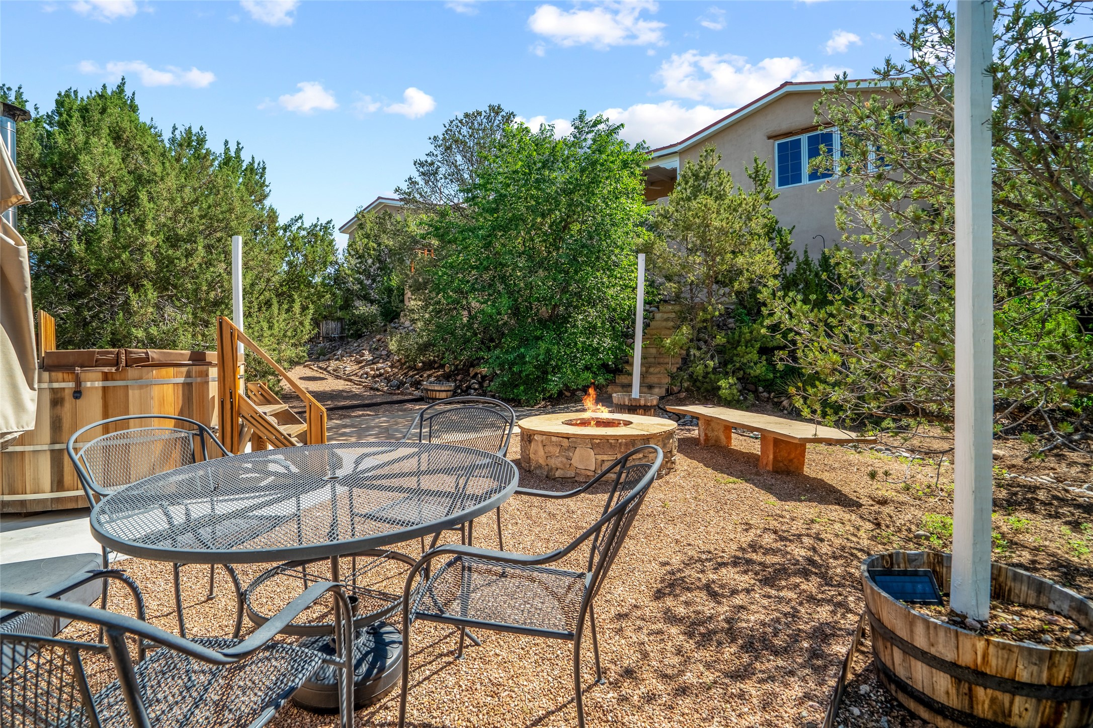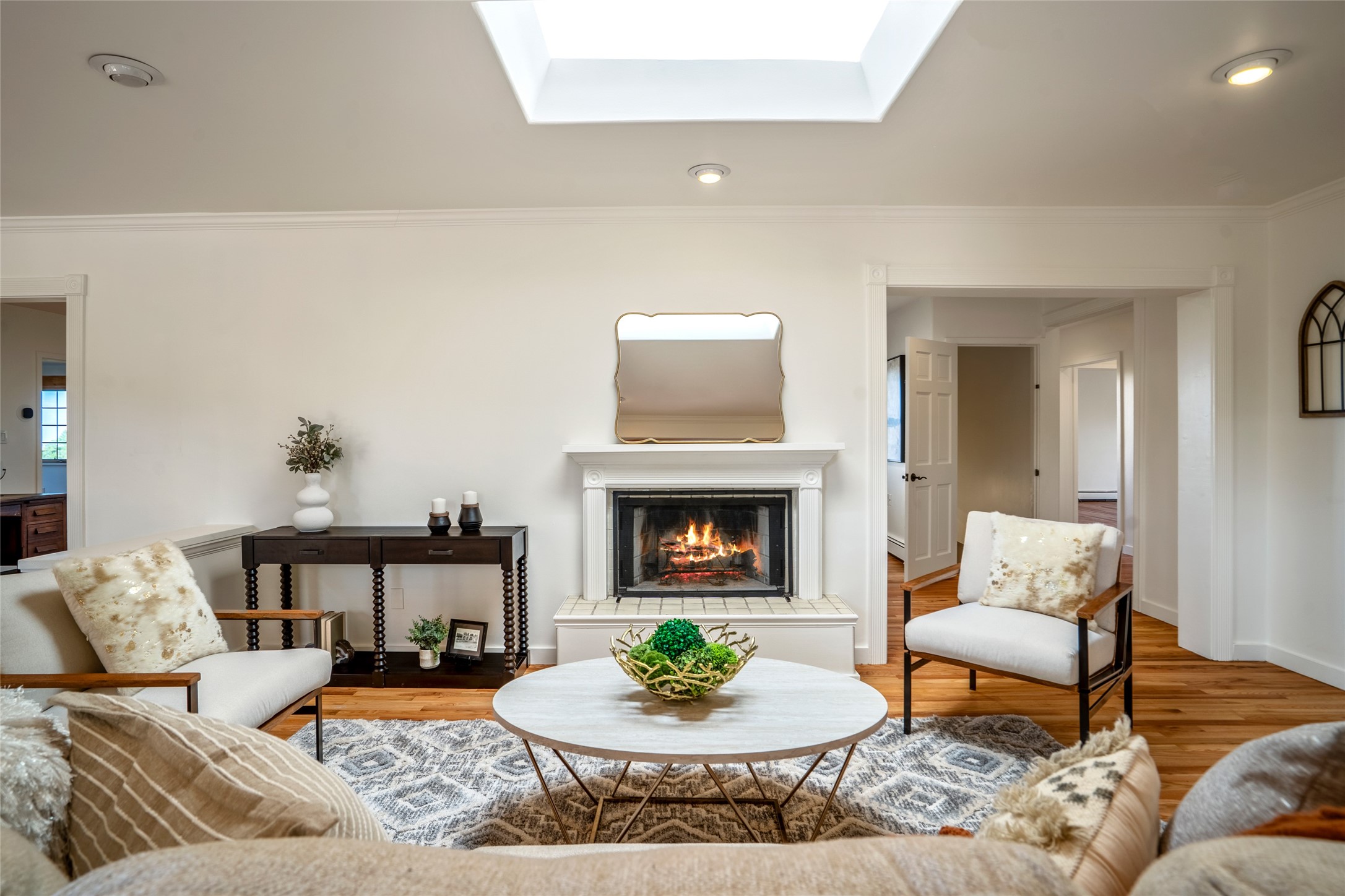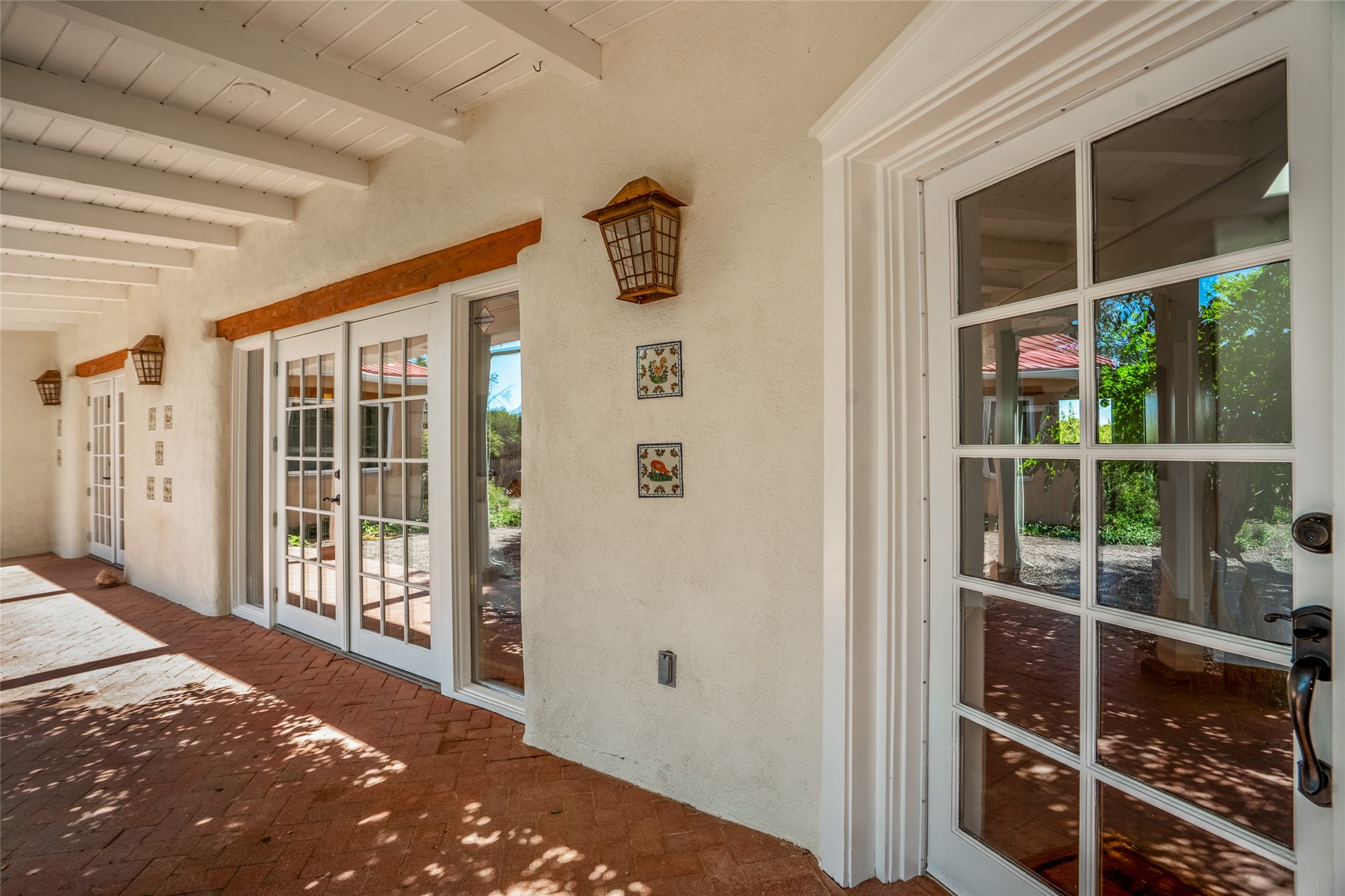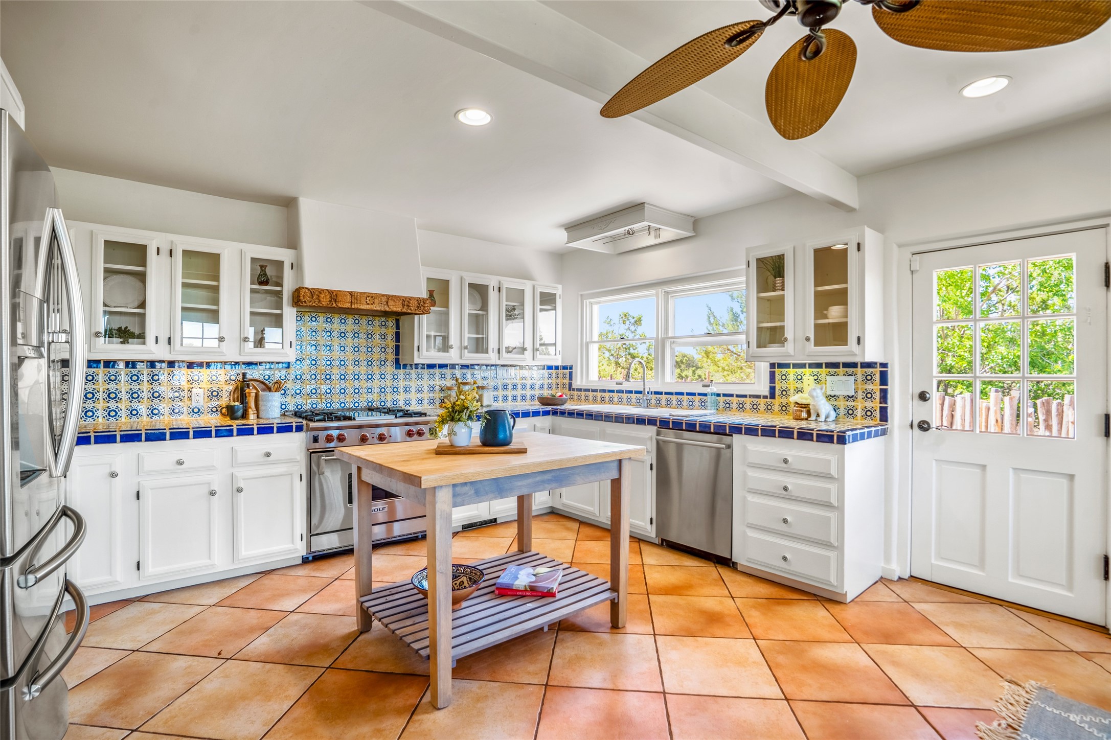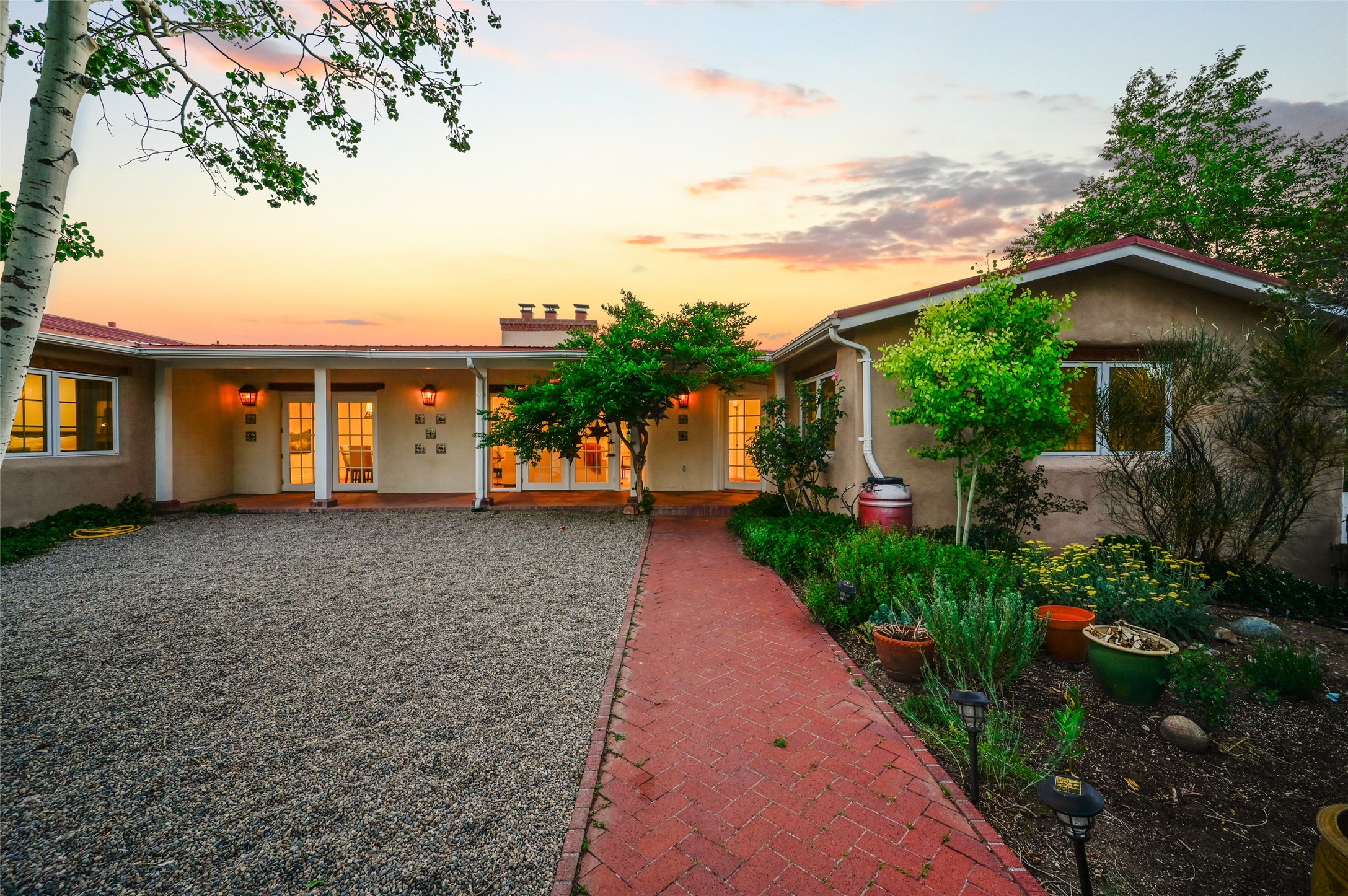 Spacious home near the downtown Plaza, Canyon Road, restaurants, and shopping. Five bedroom home plus a large downstairs area that is perfect as an attached guest house, multi-generational living, studio or office(s). Dual living areas upstairs, both with fireplaces. The dining area has french doors opening up to the front patio perfectly accommodating large gatherings. Lovely, cozy primary suite with a large updated bathroom featuring a large shower and soaking tub. Spacious bright kitchen featuring stainless steel appliances, walk-in pantry, and large breakfast nook area overlooking the City. The portal area on the west side of the home is perfect for evening dining or morning coffee. The downstairs area has two multi-purpose rooms, with the fifth bedroom/bathroom being located downstairs. Newer solar system just a few years old that is owned. Large and spacious basement storage area. Lovely views of the City lights, Ortiz, Sandia, and Sangre de Cristo Mountains.