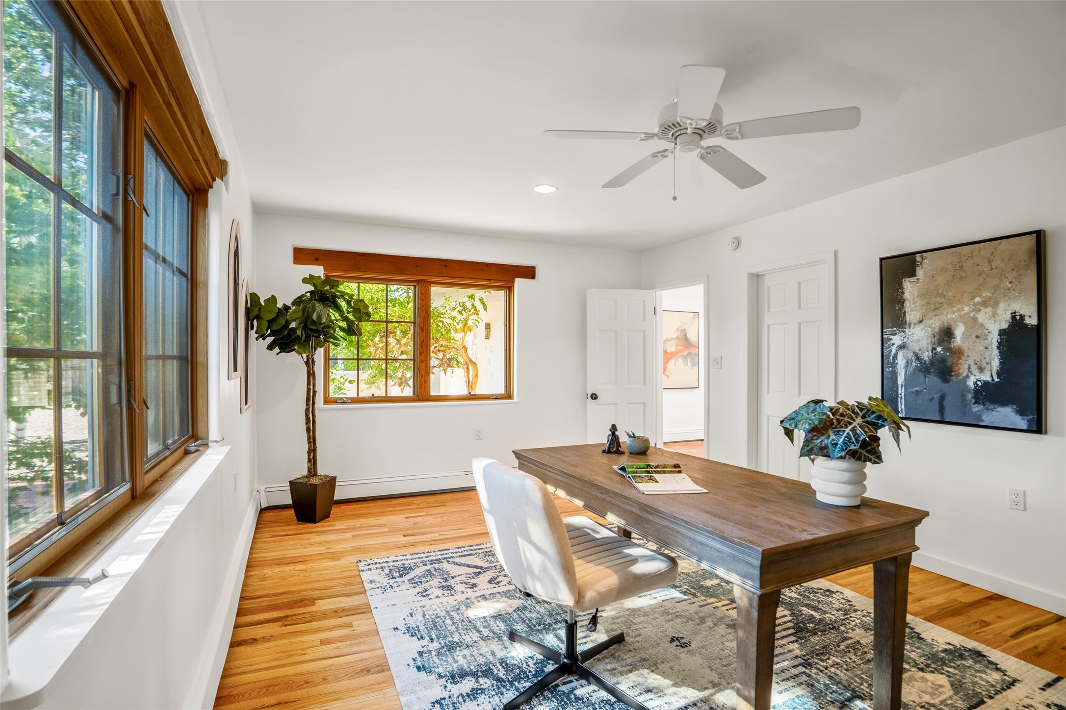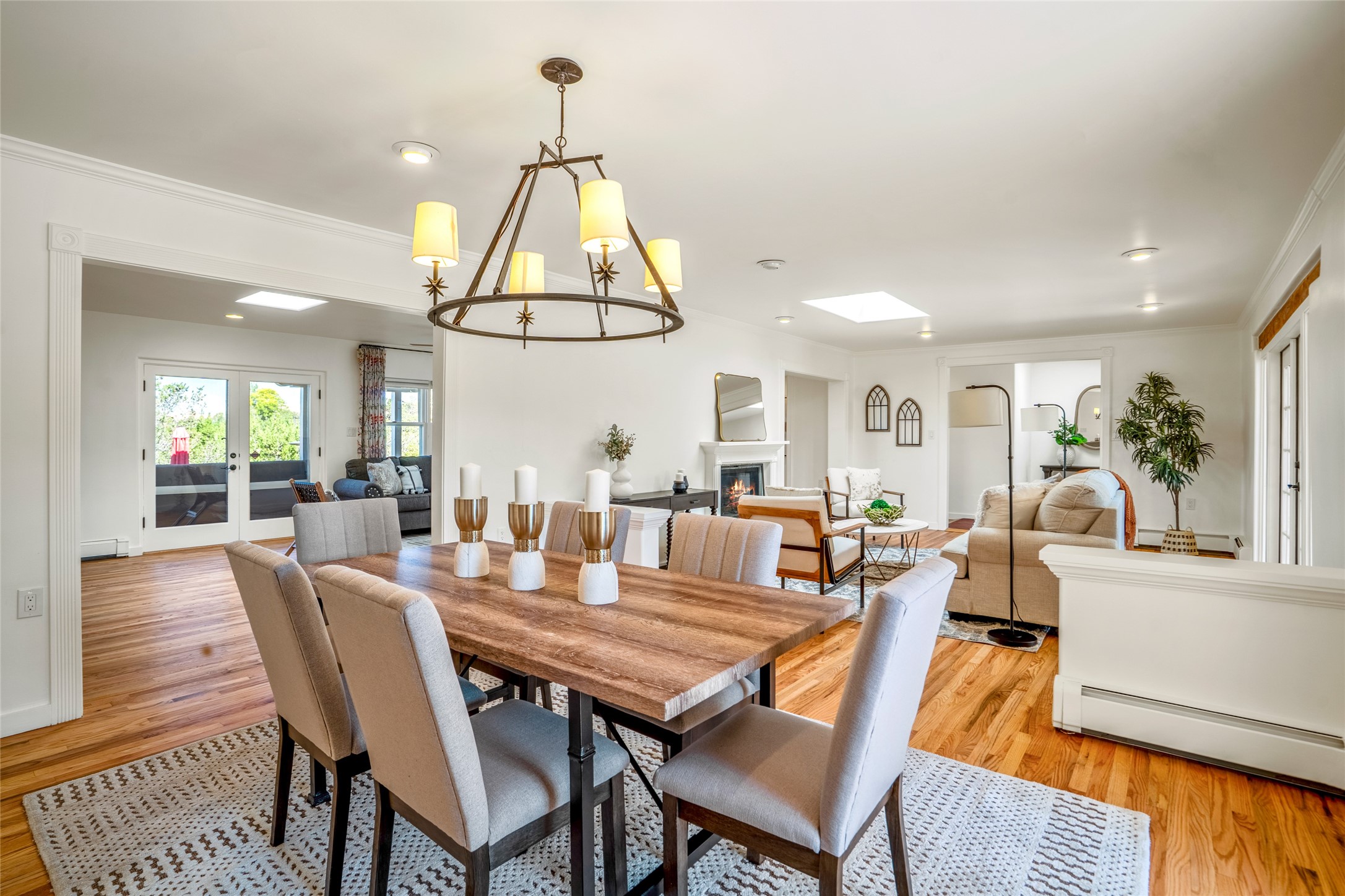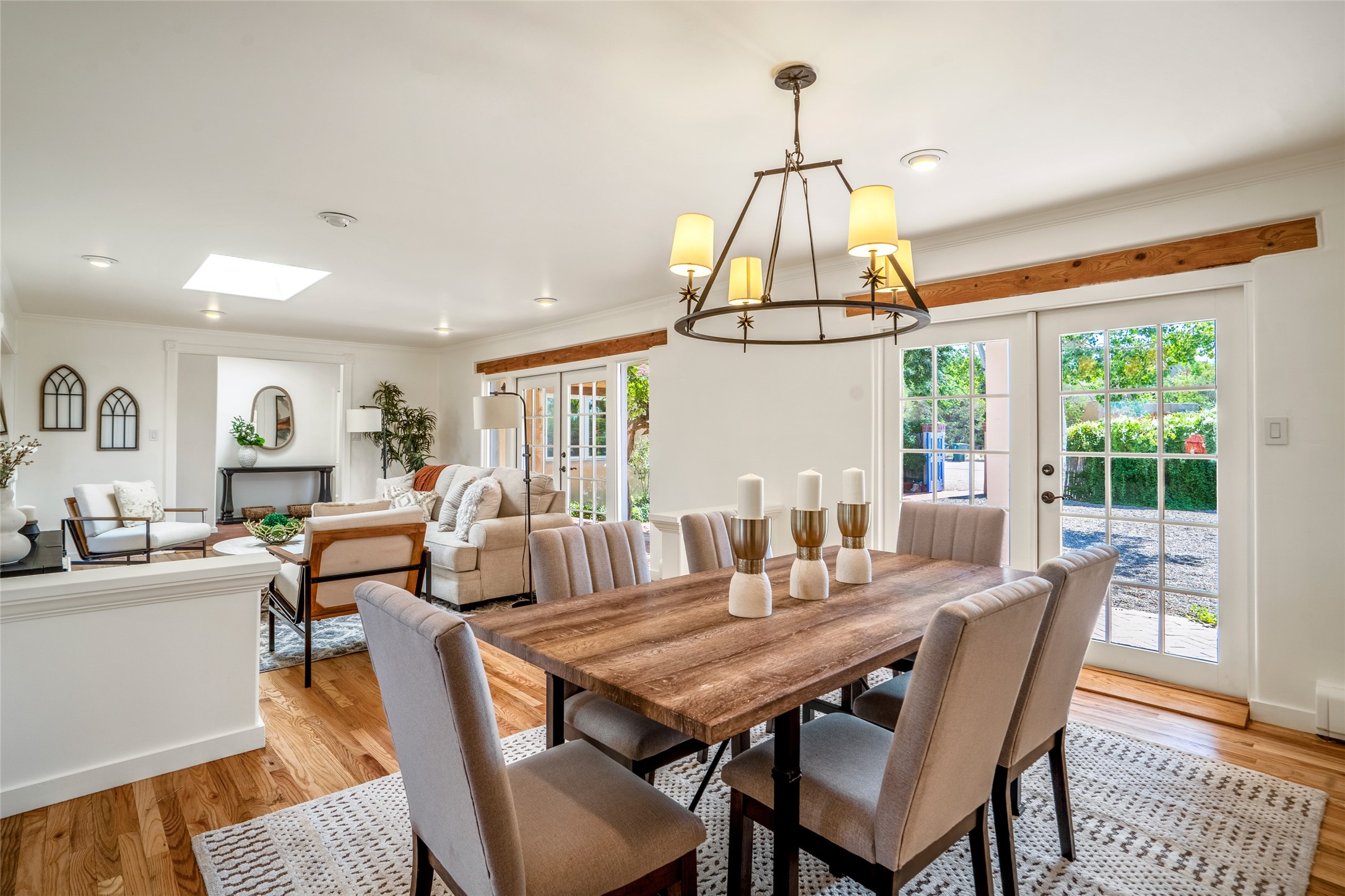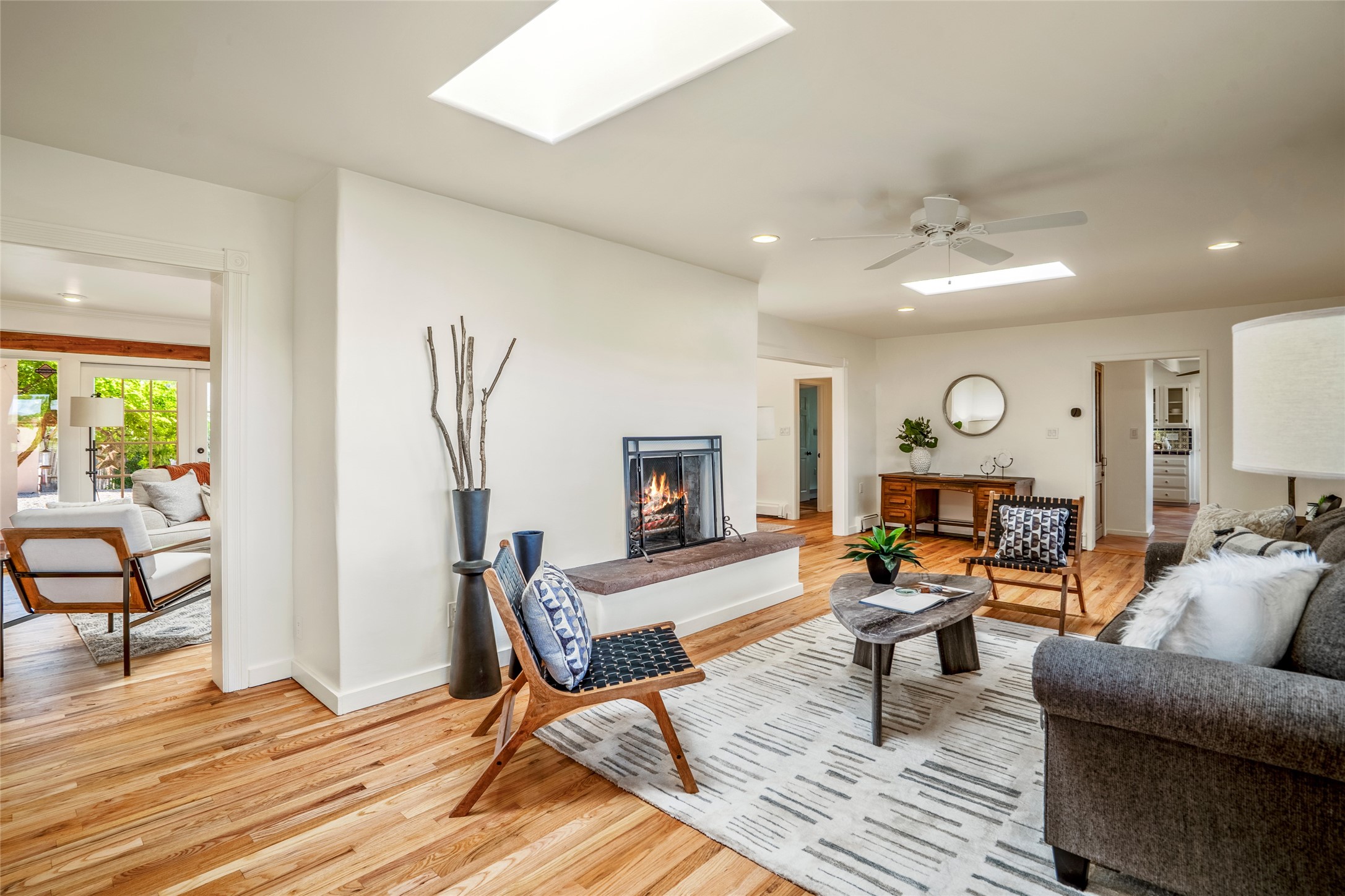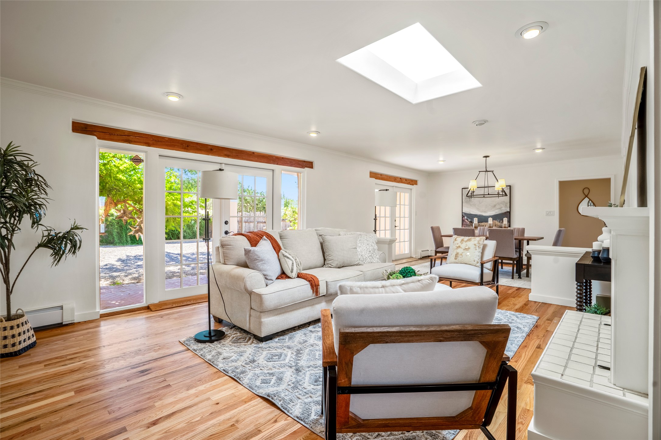 Spacious home near the downtown Plaza, Canyon Road, restaurants, and shopping. Five bedroom home plus a large downstairs area that is perfect as an attached guest house, multi-generational living, studio or office(s). Dual living areas upstairs, both with fireplaces. The dining area has french doors opening up to the front patio perfectly accommodating large gatherings. Lovely, cozy primary suite with a large updated bathroom featuring a large shower and soaking tub. Spacious bright kitchen featuring stainless steel appliances, walk-in pantry, and large breakfast nook area overlooking the City. The portal area on the west side of the home is perfect for evening dining or morning coffee. The downstairs area has two multi-purpose rooms, with the fifth bedroom/bathroom being located downstairs. Newer solar system just a few years old that is owned. Large and spacious basement storage area. Lovely views of the City lights, Ortiz, Sandia, and Sangre de Cristo Mountains.