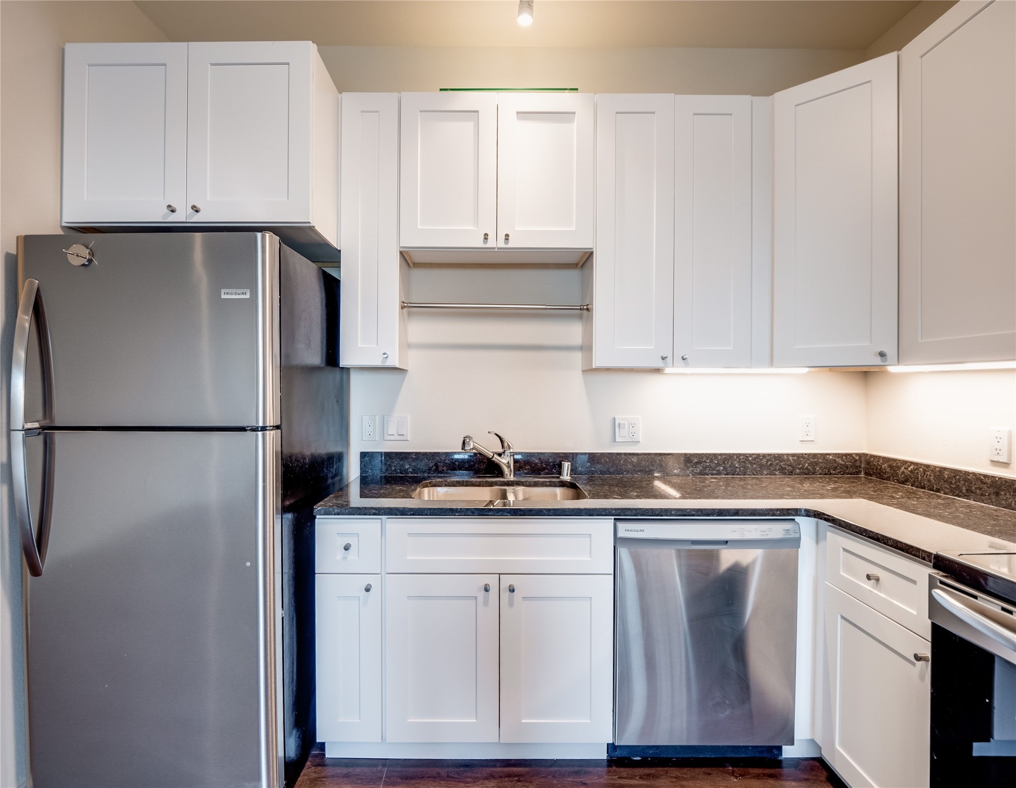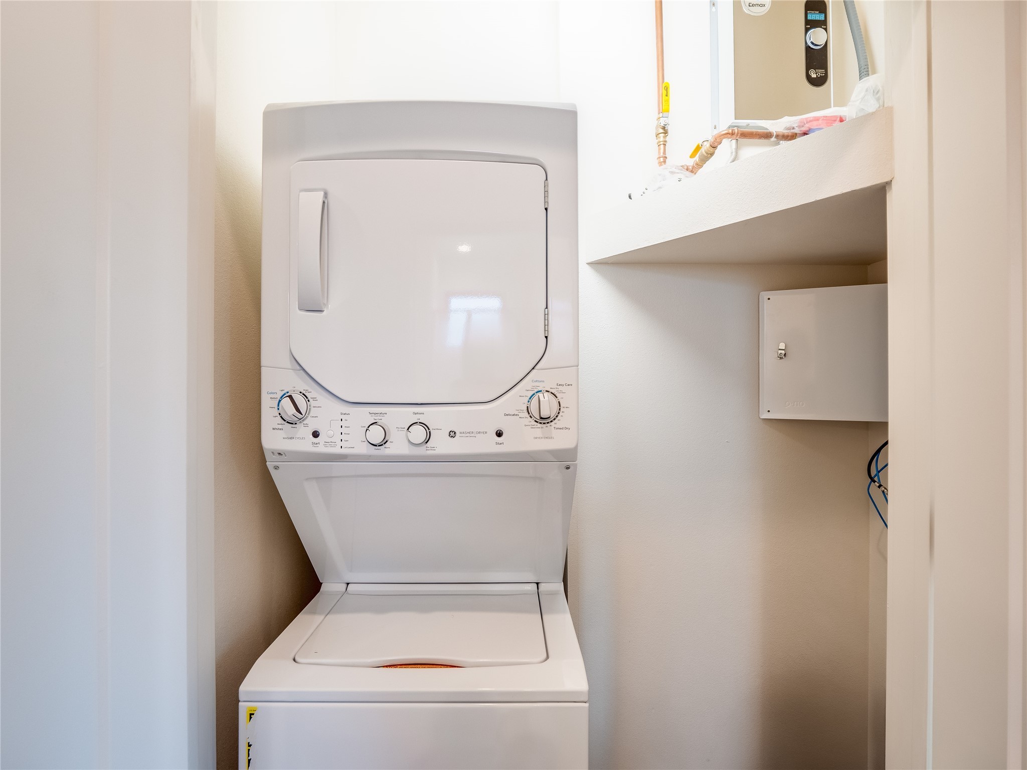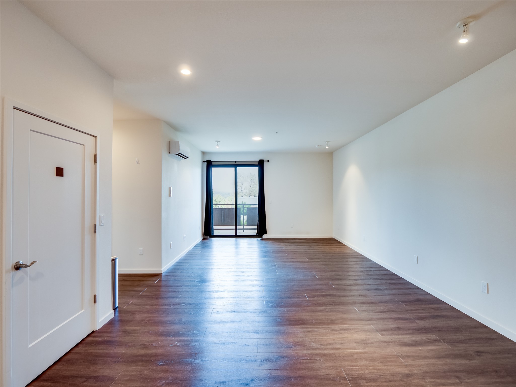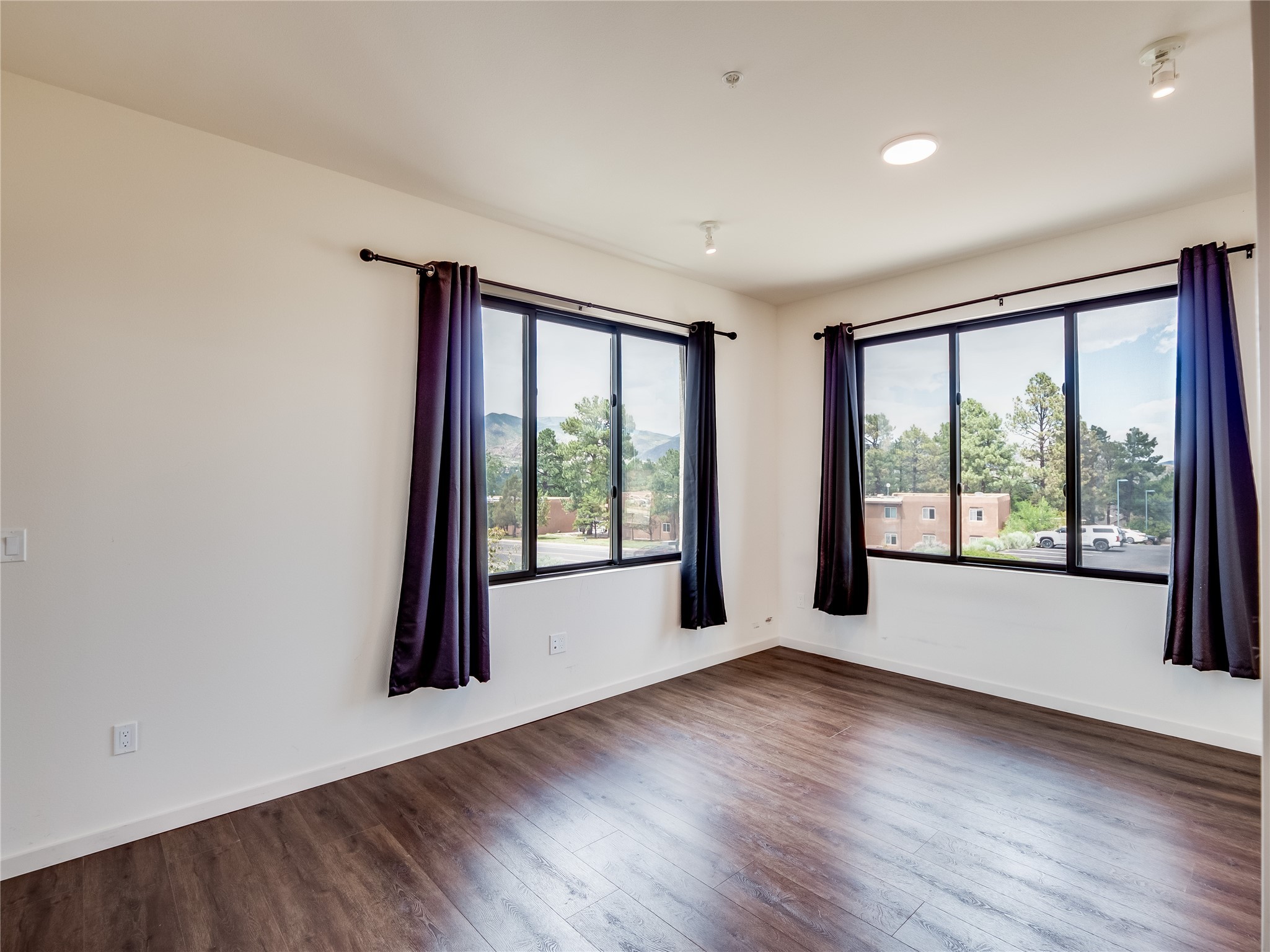 Sophisticated Modern Condo with Mountain Views in the Heart of the Eastern Area! Discover elevated living in this stylish third-floor condo, perfectly positioned in the desirable Eastern area near parks, trails, restaurants, and entertainment. Head inside to an open-concept layout that welcomes you with expansive living space and laminate wood flooring that flows seamlessly throughout the home. The spacious living room is filled with natural light and features glass sliding doors that open to a private covered deck--ideal for relaxing or entertaining while taking in the stunning views of the mountains. Adjacent to the living area is a bright and modern kitchen, complete with crisp white cabinetry, rich black granite countertops, stainless steel appliances, and a generous pantry closet for extra storage. Whether you're prepping for a quiet night in or hosting guests, this kitchen is designed to impress. Down the hallway, you'll find a beautifully appointed bathroom boasting a double sink vanity with granite counters, sleek fixtures and a luxurious walk-in tiled shower with a glass enclosure. For added convenience, a laundry closet with a stackable washer and dryer is also located in the hallway. The spacious bedroom offers peaceful mountain views and features a wall-to-wall mirrored closet, providing ample storage while enhancing the room's brightness and depth. Don't miss out on this polished urban jewel--offering comfort, style, and an unbeatable location in the heart of downtown. Schedule your showing today!