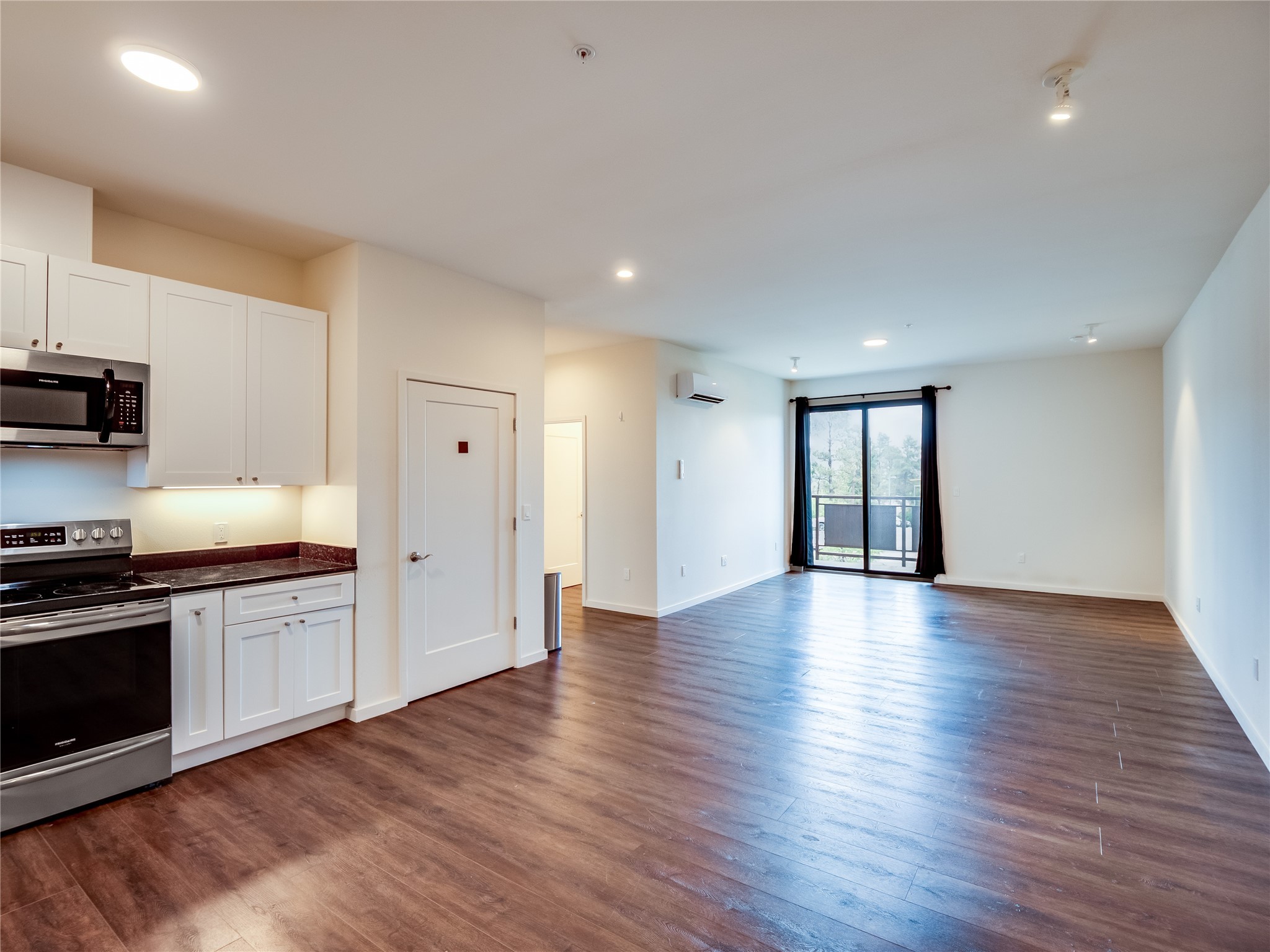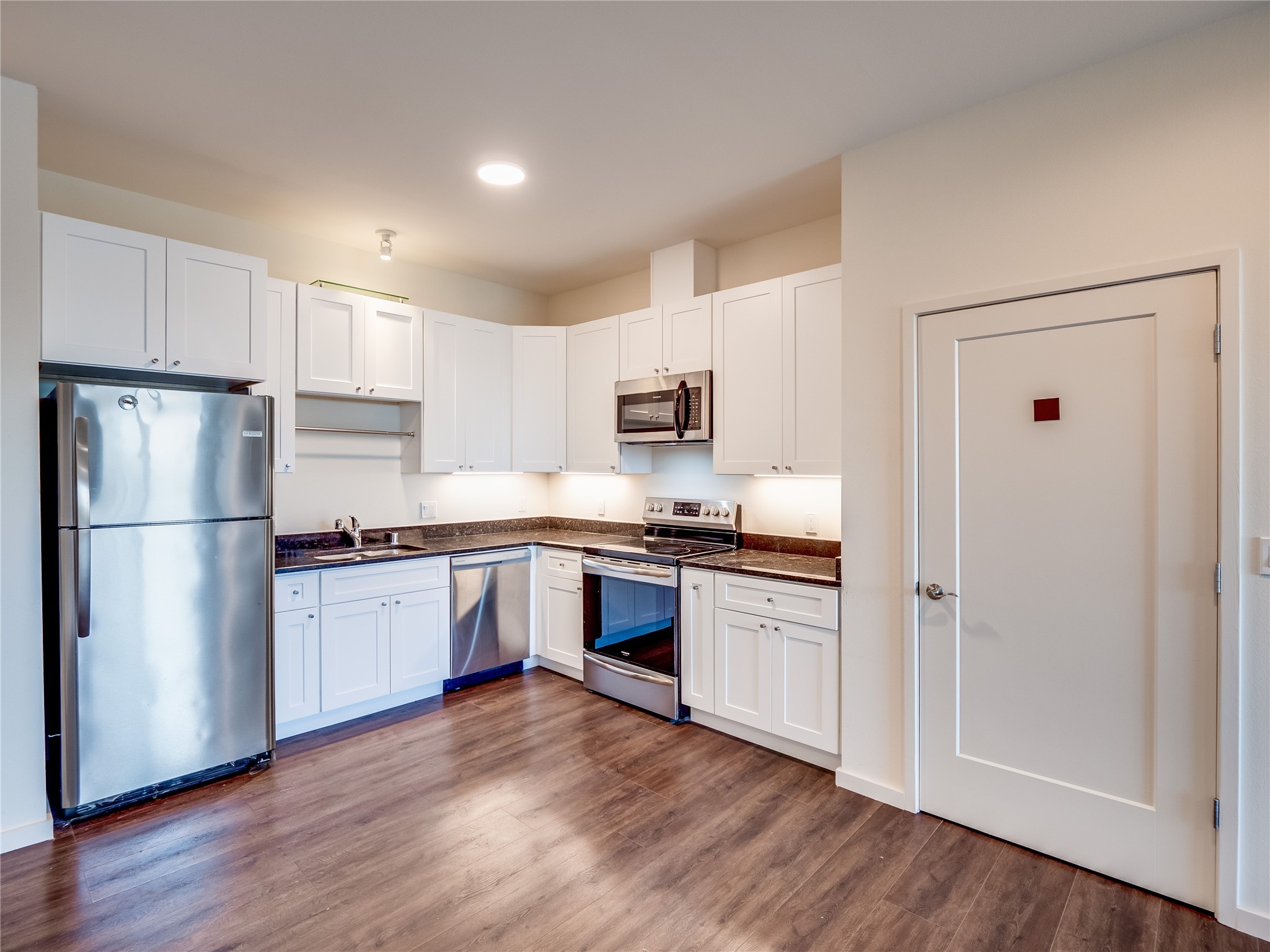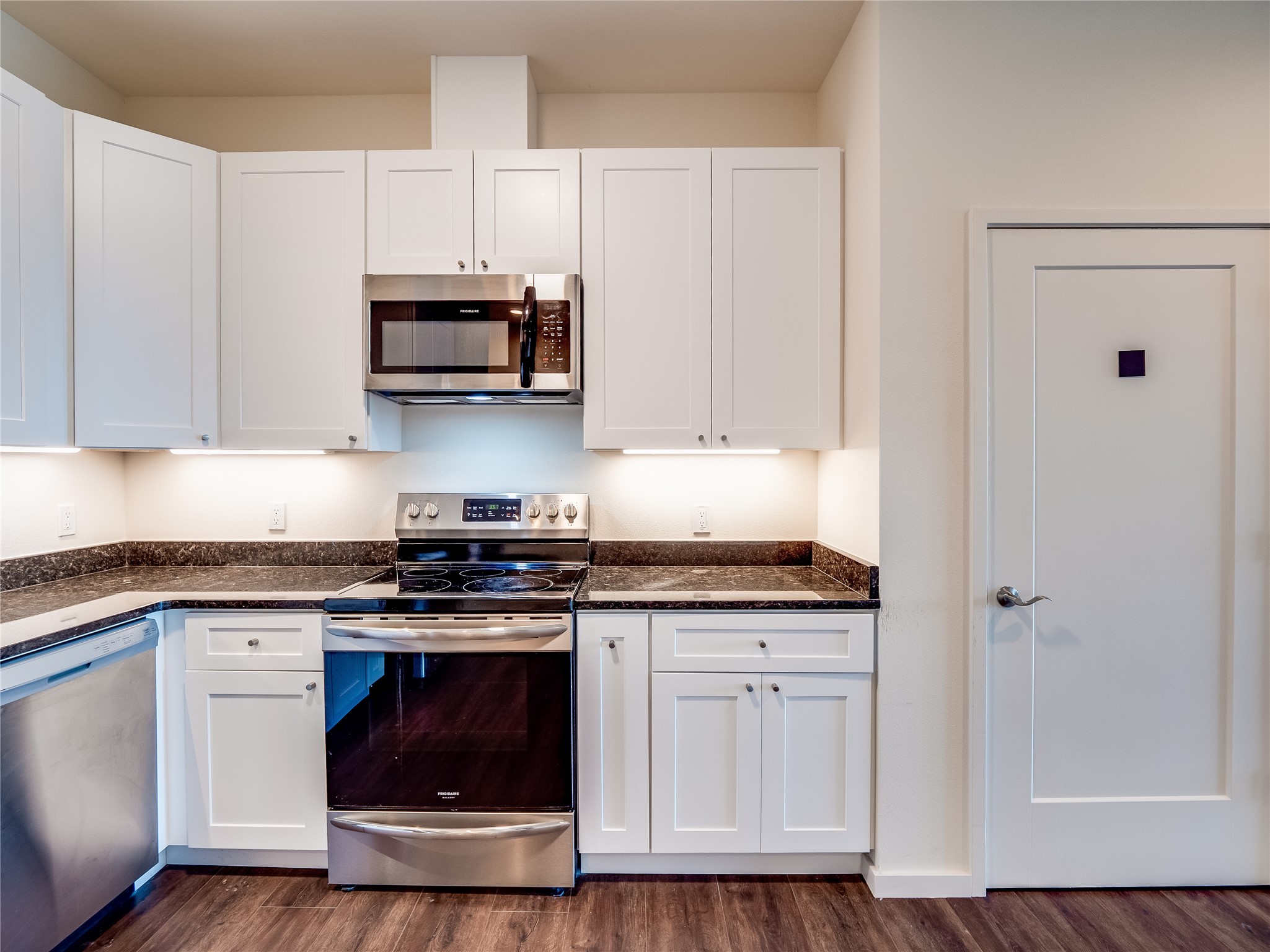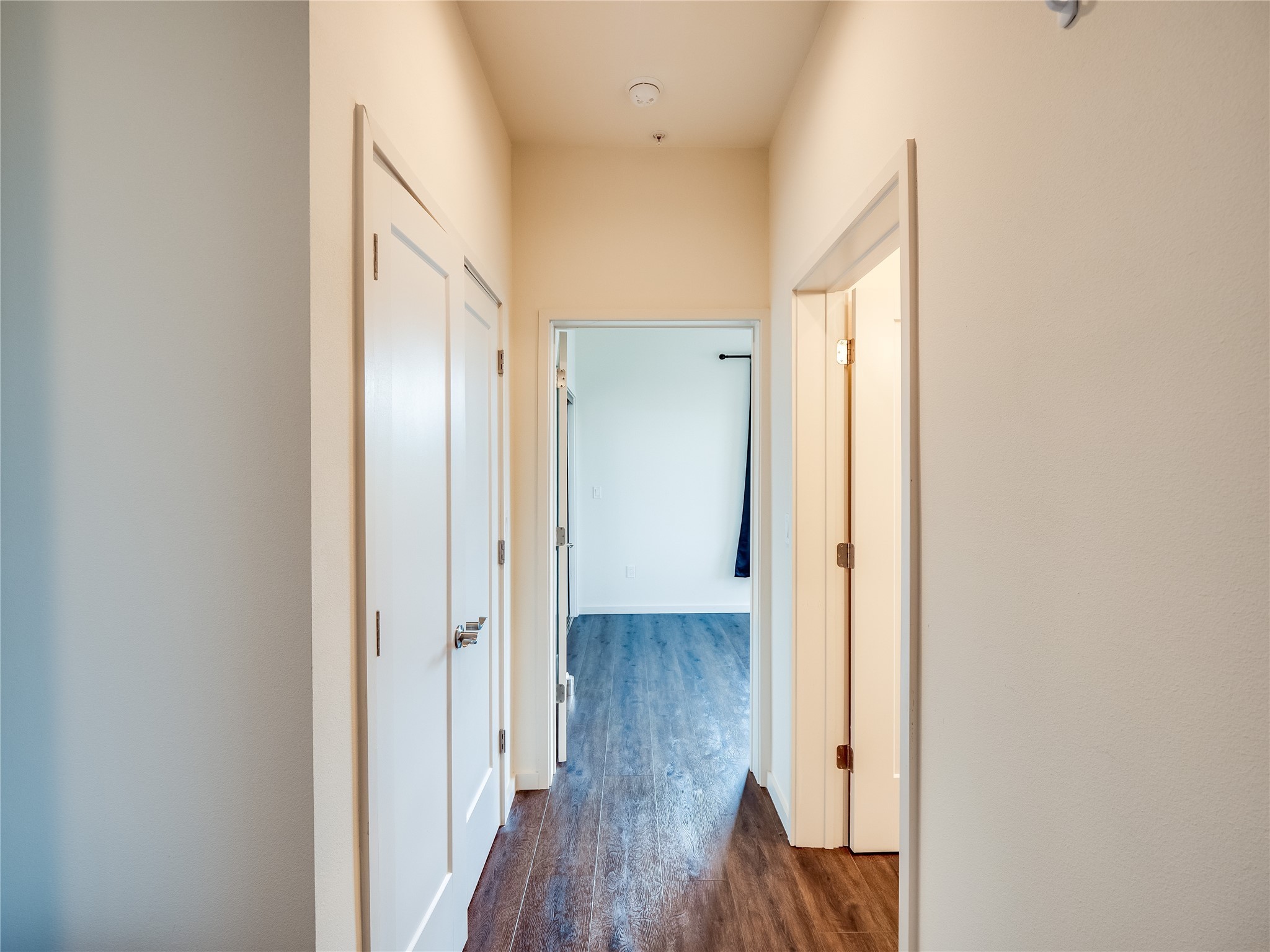 Sophisticated Modern Condo with Mountain Views in the Heart of the Eastern Area! Discover elevated living in this stylish third-floor condo, perfectly positioned in the desirable Eastern area near parks, trails, restaurants, and entertainment. Head inside to an open-concept layout that welcomes you with expansive living space and laminate wood flooring that flows seamlessly throughout the home. The spacious living room is filled with natural light and features glass sliding doors that open to a private covered deck--ideal for relaxing or entertaining while taking in the stunning views of the mountains. Adjacent to the living area is a bright and modern kitchen, complete with crisp white cabinetry, rich black granite countertops, stainless steel appliances, and a generous pantry closet for extra storage. Whether you're prepping for a quiet night in or hosting guests, this kitchen is designed to impress. Down the hallway, you'll find a beautifully appointed bathroom boasting a double sink vanity with granite counters, sleek fixtures and a luxurious walk-in tiled shower with a glass enclosure. For added convenience, a laundry closet with a stackable washer and dryer is also located in the hallway. The spacious bedroom offers peaceful mountain views and features a wall-to-wall mirrored closet, providing ample storage while enhancing the room's brightness and depth. Don't miss out on this polished urban jewel--offering comfort, style, and an unbeatable location in the heart of downtown. Schedule your showing today!