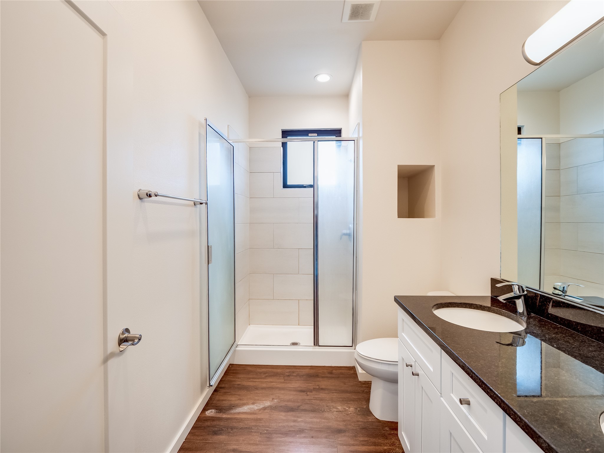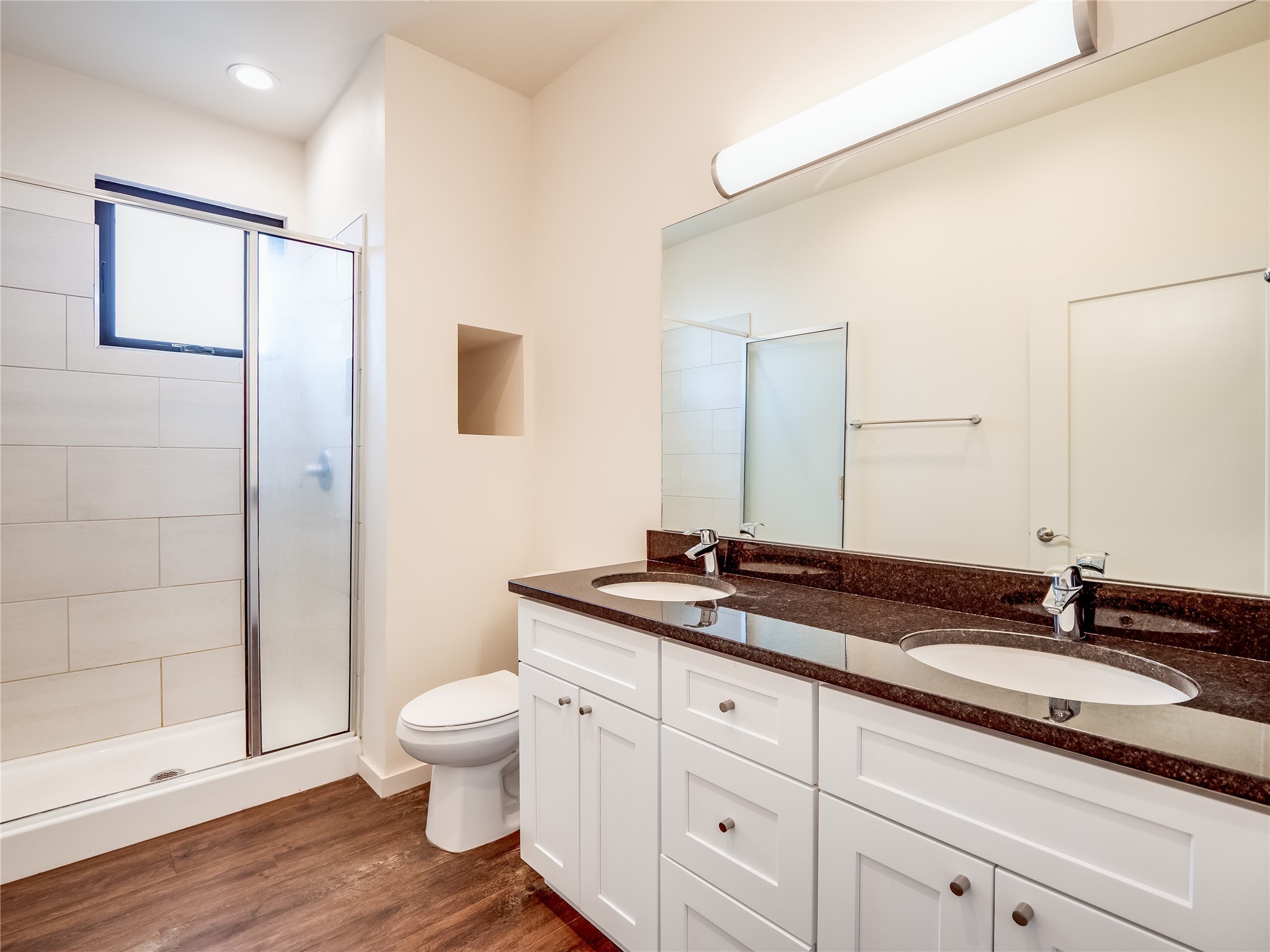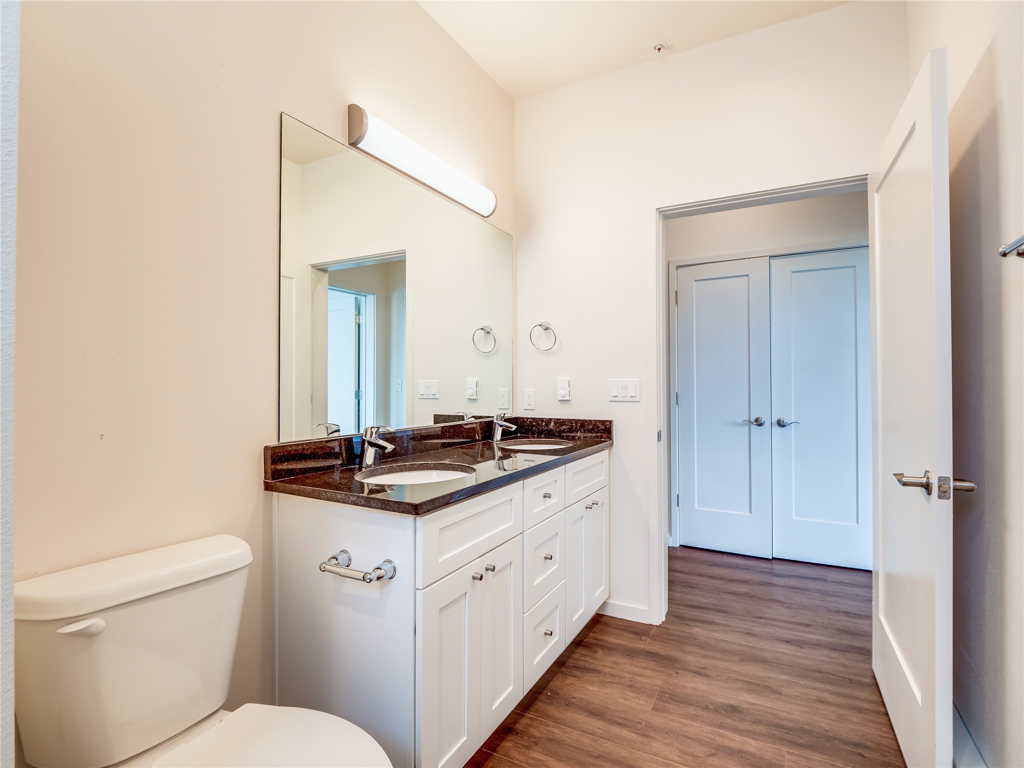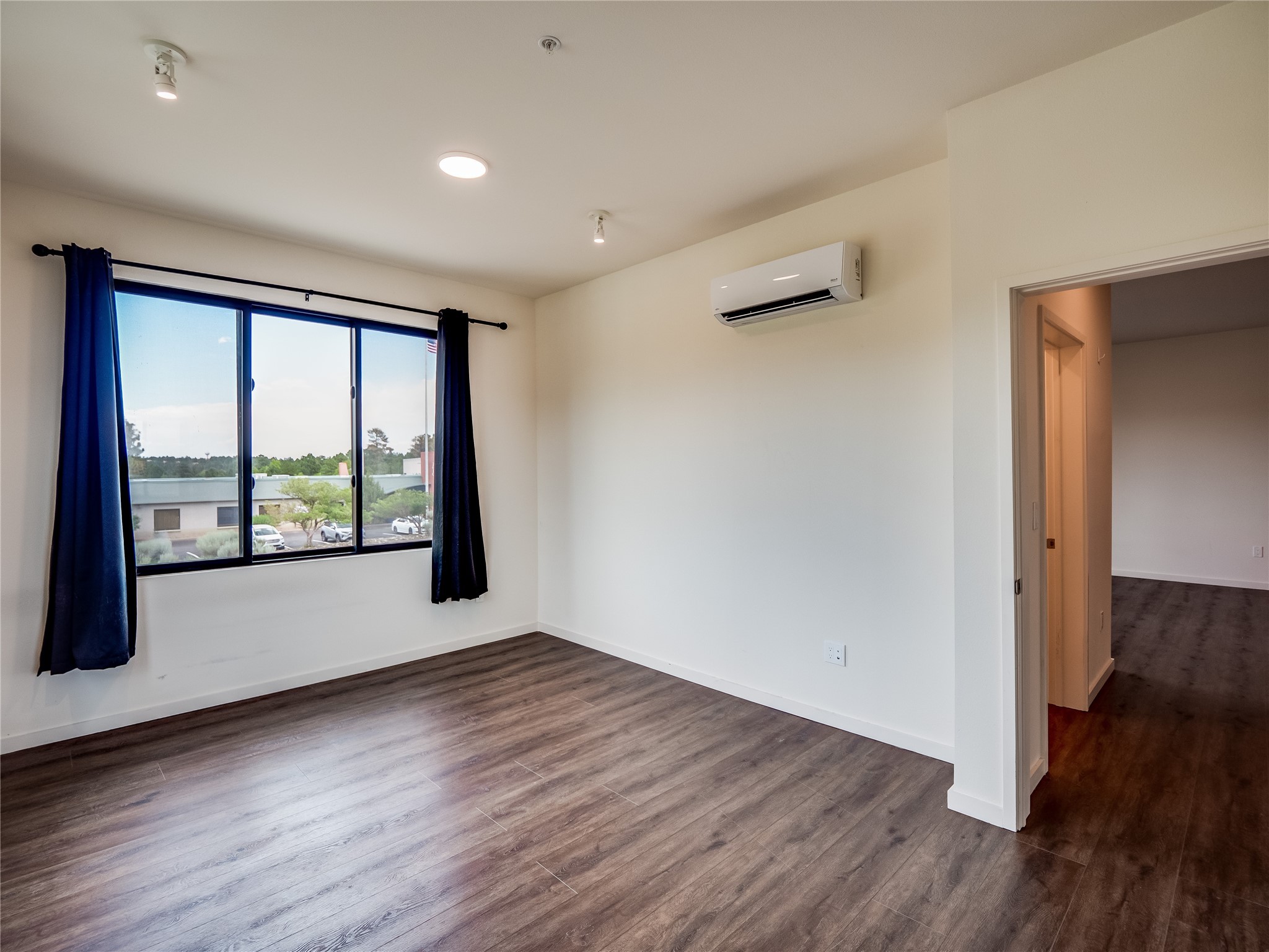 Sophisticated Modern Condo with Mountain Views in the Heart of the Eastern Area! Discover elevated living in this stylish third-floor condo, perfectly positioned in the desirable Eastern area near parks, trails, restaurants, and entertainment. Head inside to an open-concept layout that welcomes you with expansive living space and laminate wood flooring that flows seamlessly throughout the home. The spacious living room is filled with natural light and features glass sliding doors that open to a private covered deck--ideal for relaxing or entertaining while taking in the stunning views of the mountains. Adjacent to the living area is a bright and modern kitchen, complete with crisp white cabinetry, rich black granite countertops, stainless steel appliances, and a generous pantry closet for extra storage. Whether you're prepping for a quiet night in or hosting guests, this kitchen is designed to impress. Down the hallway, you'll find a beautifully appointed bathroom boasting a double sink vanity with granite counters, sleek fixtures and a luxurious walk-in tiled shower with a glass enclosure. For added convenience, a laundry closet with a stackable washer and dryer is also located in the hallway. The spacious bedroom offers peaceful mountain views and features a wall-to-wall mirrored closet, providing ample storage while enhancing the room's brightness and depth. Don't miss out on this polished urban jewel--offering comfort, style, and an unbeatable location in the heart of downtown. Schedule your showing today!