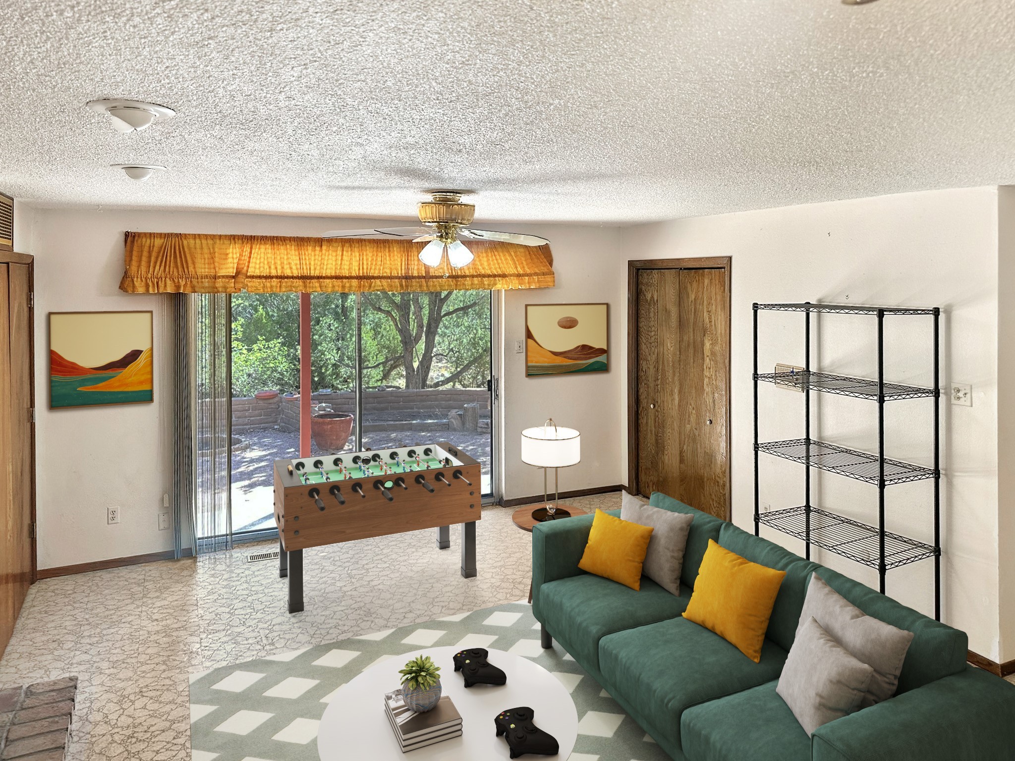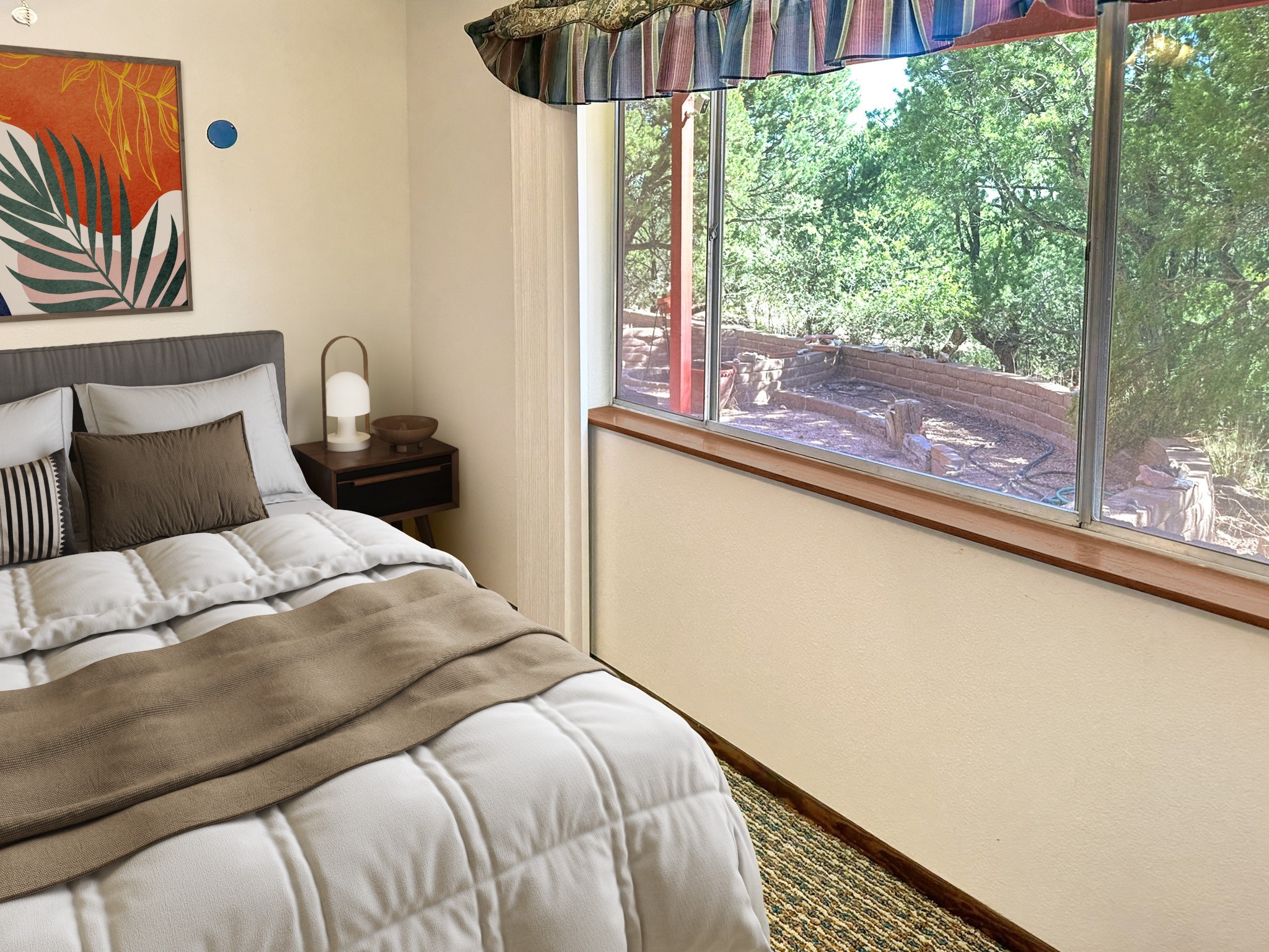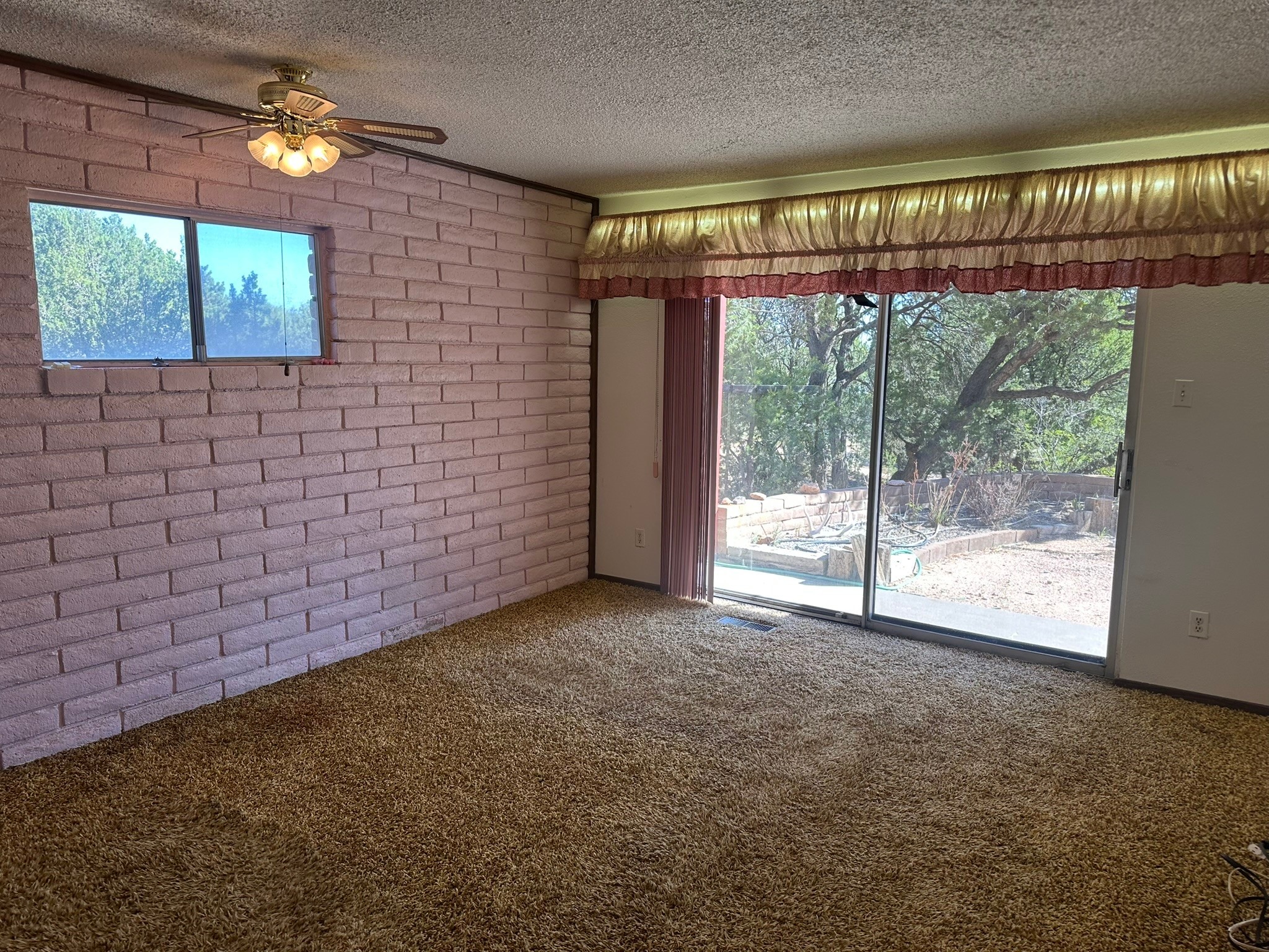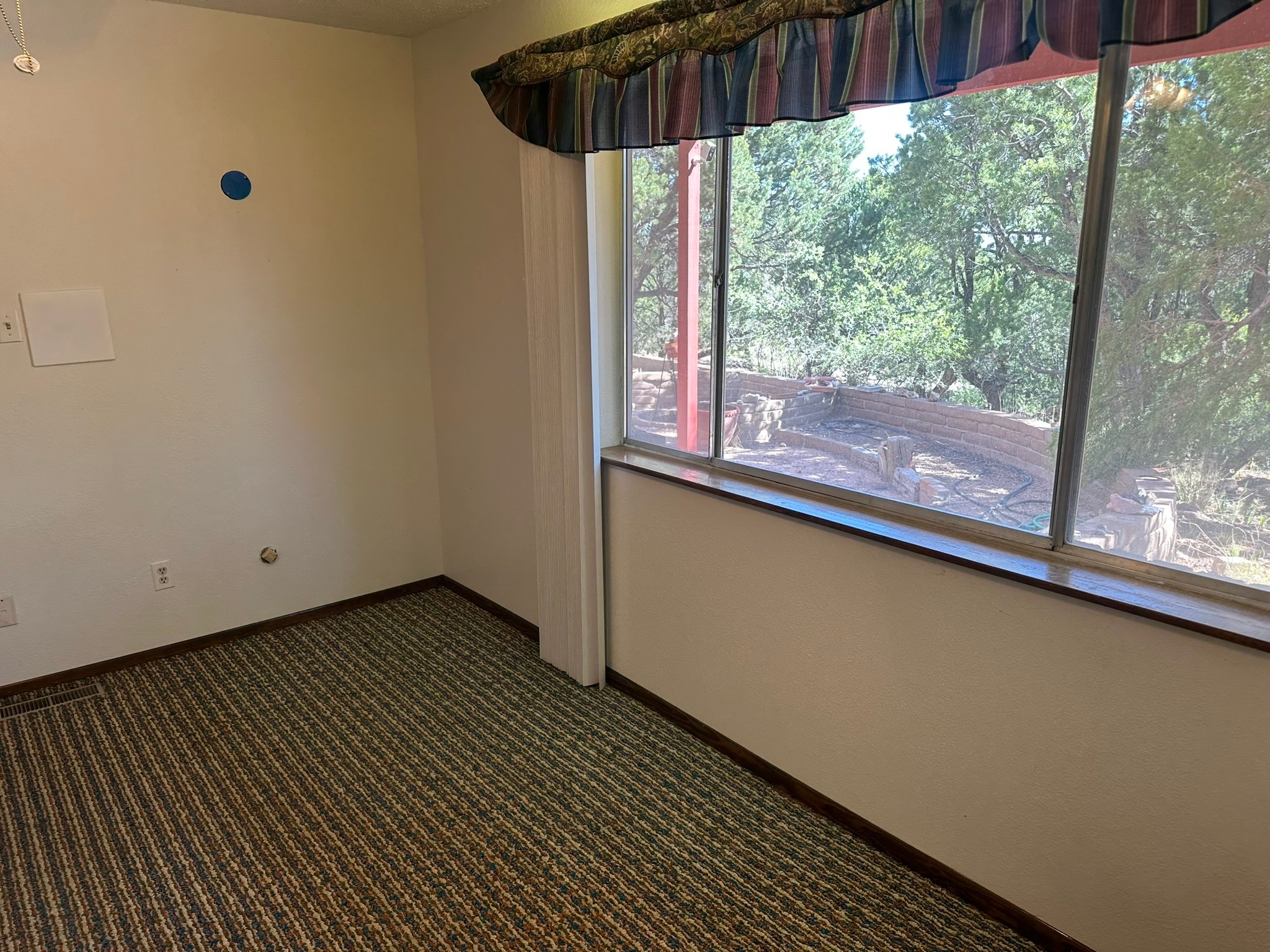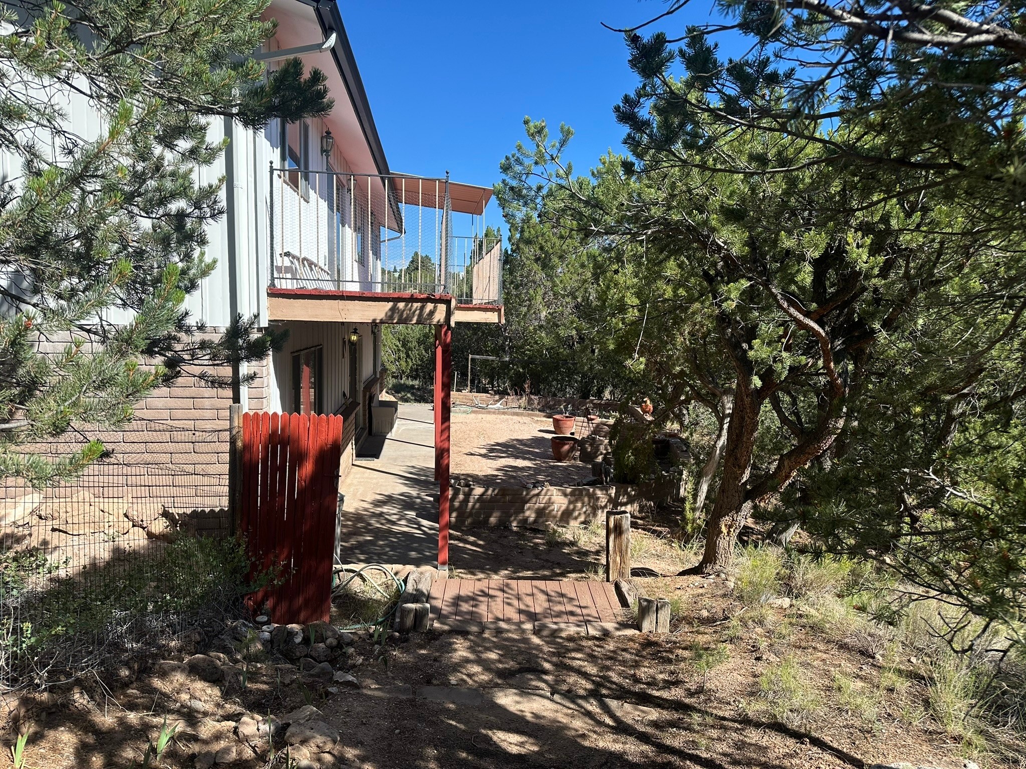Nestled on over 3.25 breathtaking acres, this home offers a blend of comfort, character, and unmatched natural beauty. More than a peaceful setting, this lot is truly exceptional, with rolling terrain, mature trees, and pockets of privacy. It's not just land; it's a place full of memories, where many have played, explored, and enjoyed the abundant wildlife and birdlife. Whether you're drawn to its serenity, privacy, or the opportunity to keep horses and ride directly from the property onto trails, this land offers an unmatched lifestyle. The two stall barn has a tack room and space for hay (appx.32'x20'). The property is fully fenced, though some areas may need updating, providing a framework for those wanting to keep animals or add a garden. Designed with functionality in mind, the home's main level features a spacious living room, dedicated dining area, well-appointed kitchen, powder room, and a flexible bonus space--perfect for a home office, studio, or additional bedroom. The lower level offers two roomy bedrooms, a full bath, and a primary suite complete with its own ensuite bath. Two custom brick fireplaces--one on each level--provide cozy ambiance year-round. Step outside to immerse yourself in the natural landscape, or head to the upper-story to take in breathtaking views of the Sangre de Cristo Mountains. This home is a wonderful opportunity for a buyer with vision to restore and reimagine the property, adding personal touches. Whether you're looking for an investment or a chance to create your dream home, the potential here is undeniable. Located in the Pajarito Acres neighborhood with access to hiking, biking, and horseback riding trails, this is truly a nature lover's paradise. Additional features include a swamp cooler for summer comfort, a newer roof, a paved driveway, and proximity to Bandelier National Monument, Pajarito Ski Hill, and the Jemez Mountains.