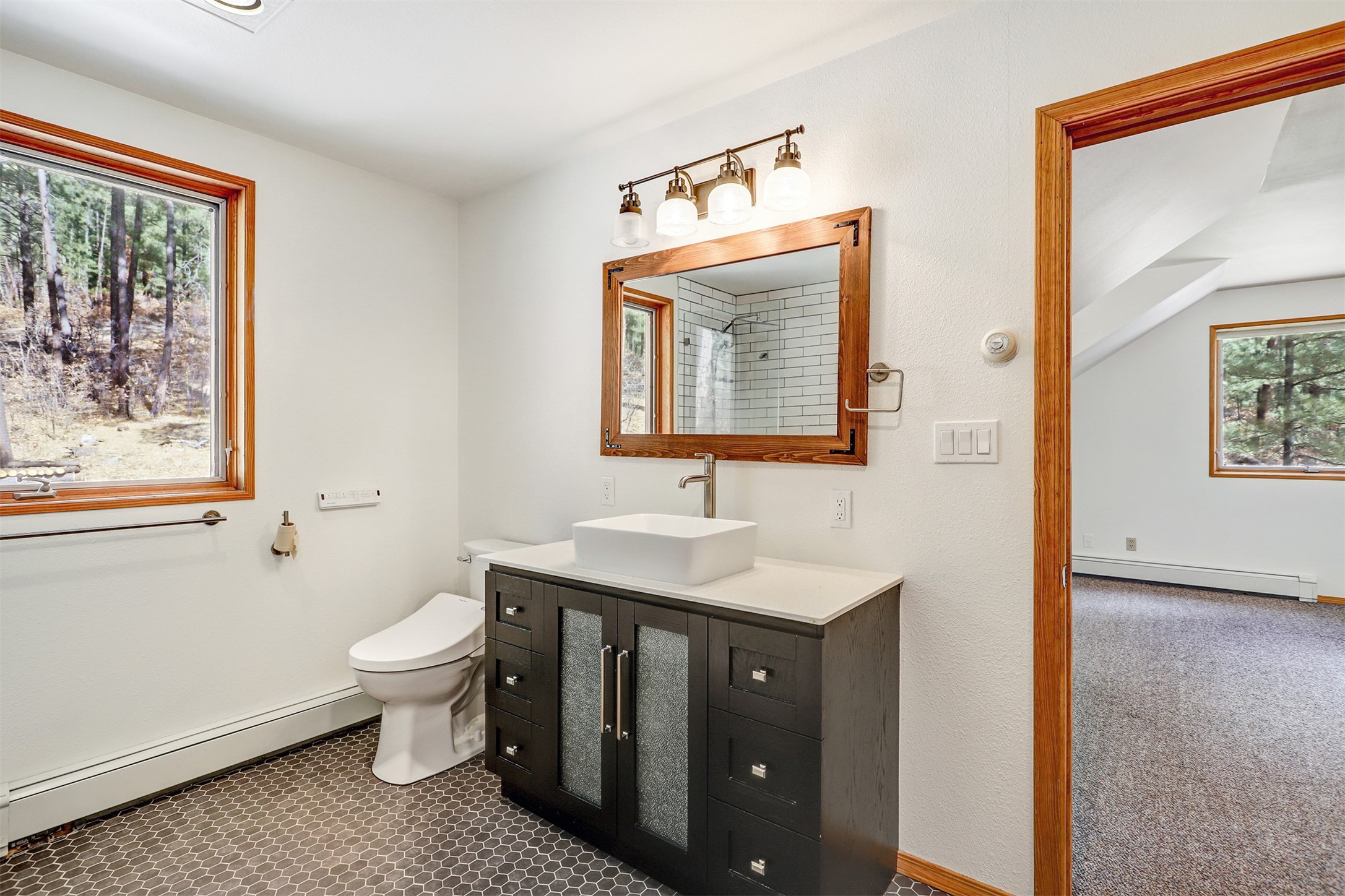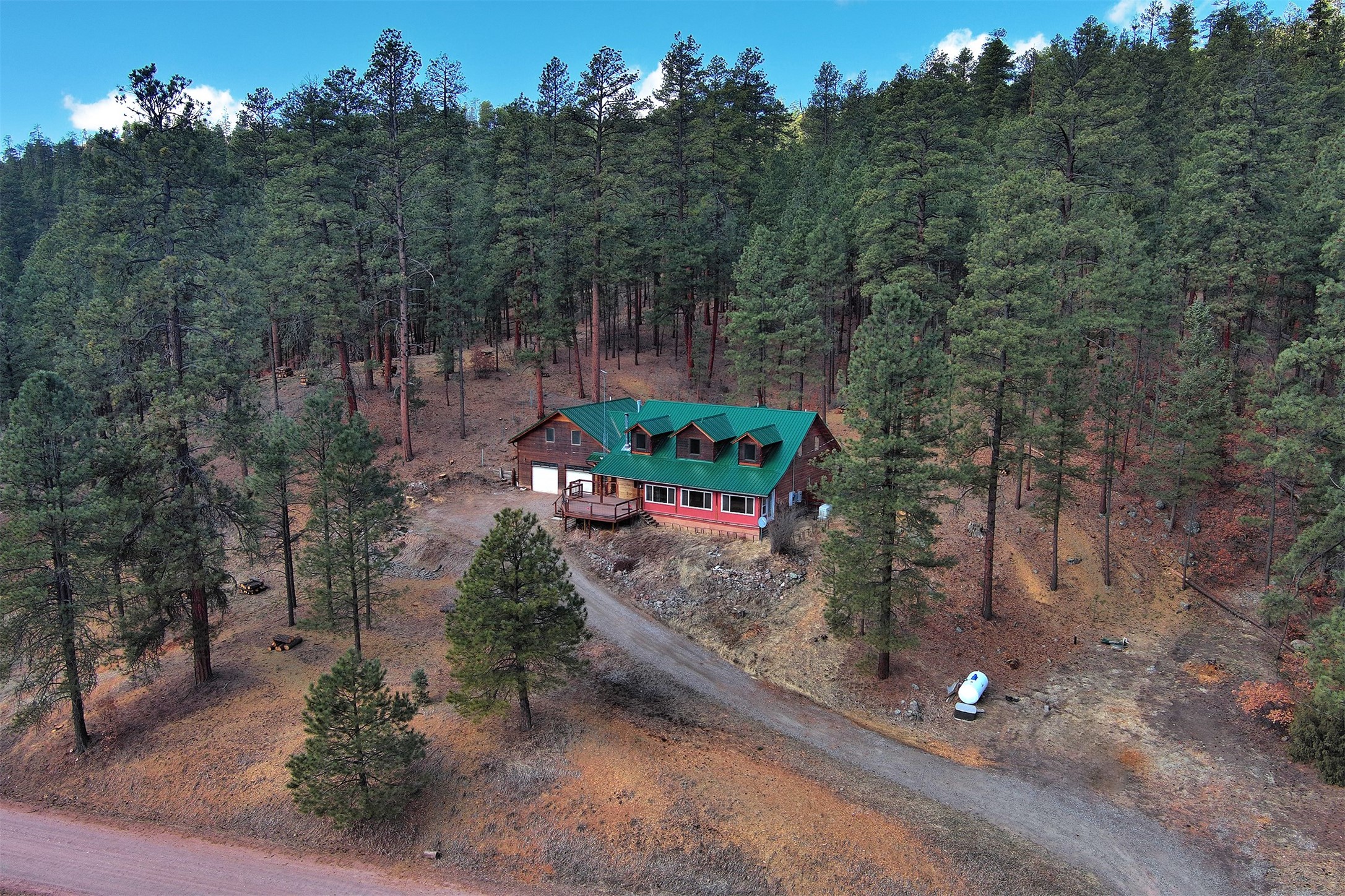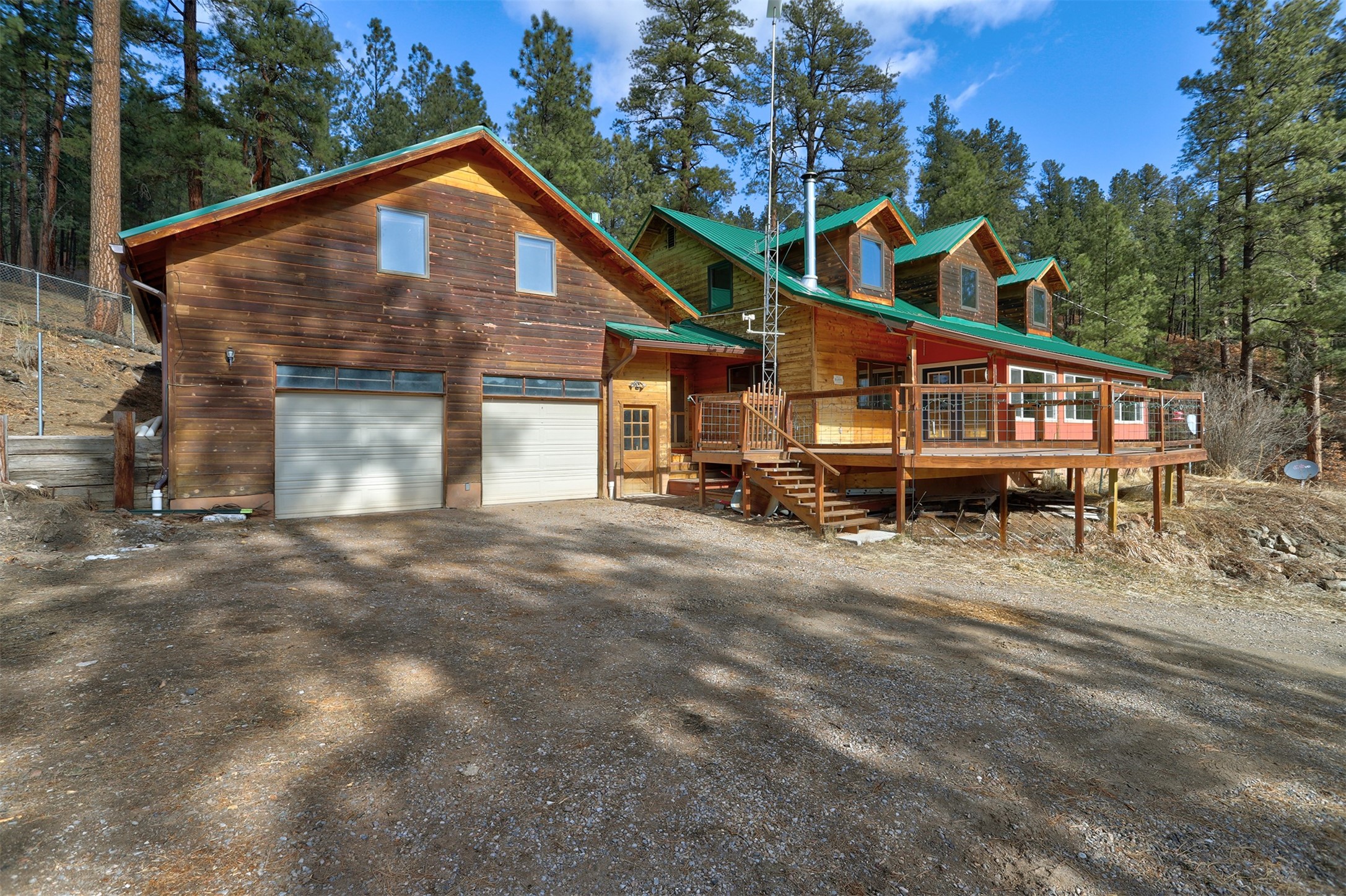 Need space? This large mountain home features 6/7 bedrooms, 5 bathrooms and storage galore! A separate apartment area has it's own entrance, kitchen, bath, and living area. The approx 2 acre property boarders the Santa Fe National Forest, and easily accessed by a county maintained road. Only a mile or so to a back gate of the Valles Caldera, and a 40 minute scenic commute to Los Alamos. Oversized 2 car garage gives you plenty of room for the toys. A sunroom on the front of the house opens to the large deck for outdoor enjoyment/entertaining. Hike out the back door into the woods, bike into the Caldera, or fish the streams in the area. This place has it all, and room for everyone!