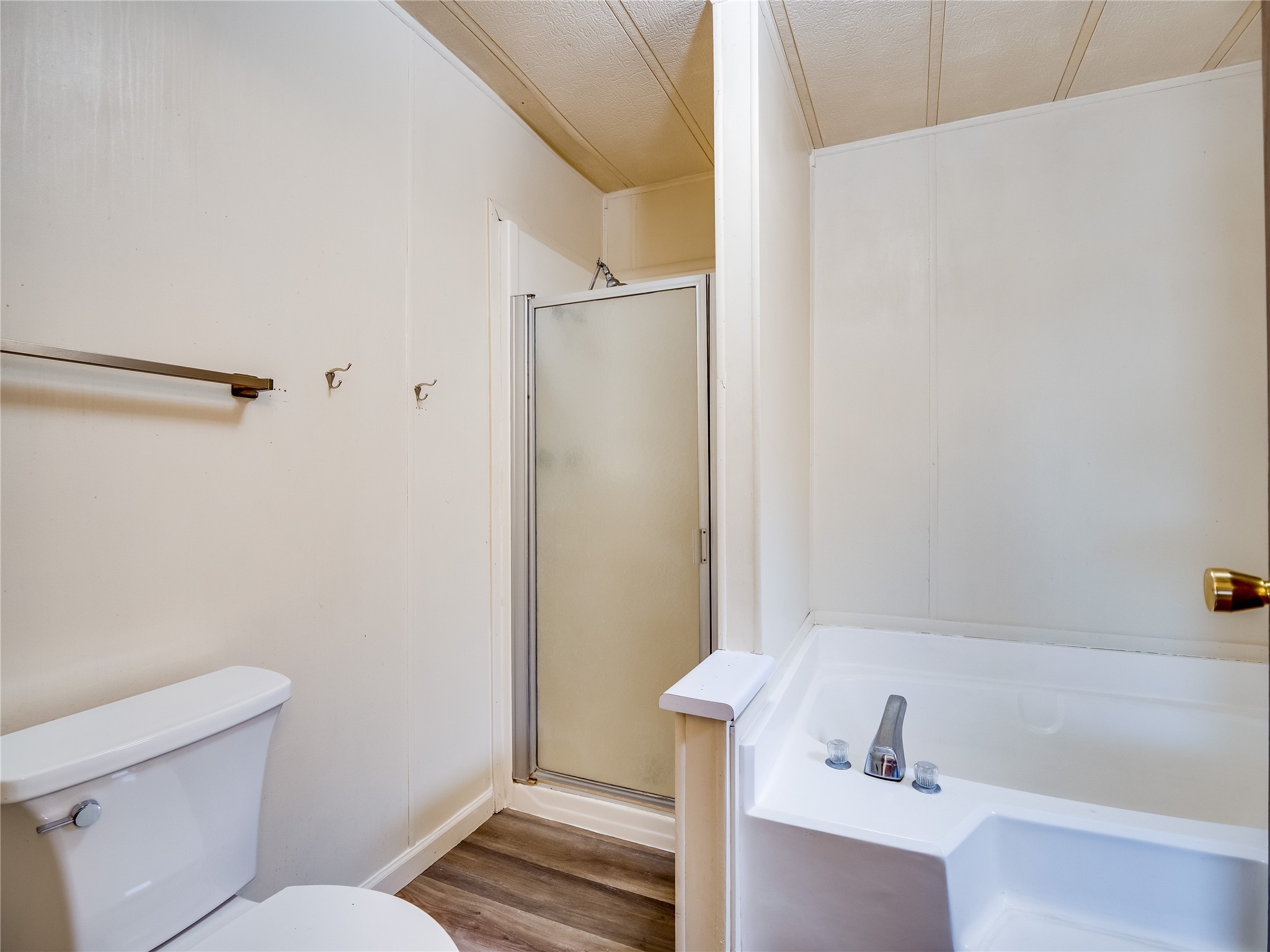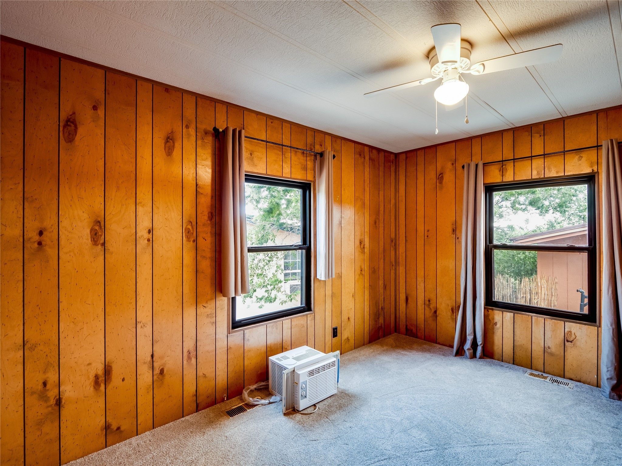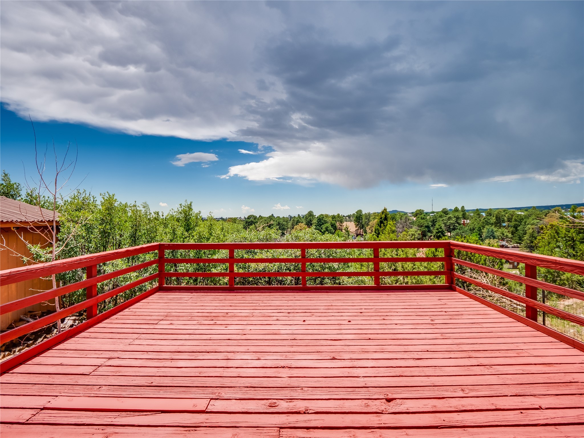 Charming Single-Story Home on the Canyon with Mountain Views in Tsikumu Village! This home offers incredible mountain views and a peaceful setting just moments from schools, trails, and stables. With a low-maintenance front yard shaded by mature trees and shrubs, this property offers curb appeal without the work. A step-up porch welcomes you into the home, where you'll find a spacious living and dining room featuring warm wood-paneled walls and newly installed lush carpet that runs throughout the interior. Adjacent to the main living area is a cozy family room with a stunning stone wood-burning fireplace, perfect for chilly nights, and sliding glass doors that lead to the expansive backyard deck. The nearby kitchen offers both charm and function with laminate wood flooring, wood cabinets with black hardware, generous counter space, and a center island with bar seating and a gas cooktop with overhead hood--ideal for both casual meals and entertaining. Off the kitchen is a laundry room complete with a utility sink, storage closets, and direct access to the back deck for convenience. The large primary en-suite bedroom features a wall of closets with elegant glass sliding doors and plenty of natural light. The attached bathroom includes a double sink vanity, a dedicated makeup vanity, a walk-in shower, and a deep soaking tub--a perfect retreat for relaxation. Down the hallway are two nice-sized guest bedrooms and a full guest bathroom with a single sink vanity and a shower/tub combo with glass door enclosures. Enjoy modern comfort with central A/C for those warm summer days. Step outside to the oversized deck that offers panoramic mountain and canyon views--an entertainer's dream and a stargazer's paradise. The backyard also includes a large storage shed for your tools and gear, and just down the street is a community playground. If you're looking for a unique home with gorgeous views, peaceful surroundings, and easy access to outdoor adventures, this gem is a must-see!