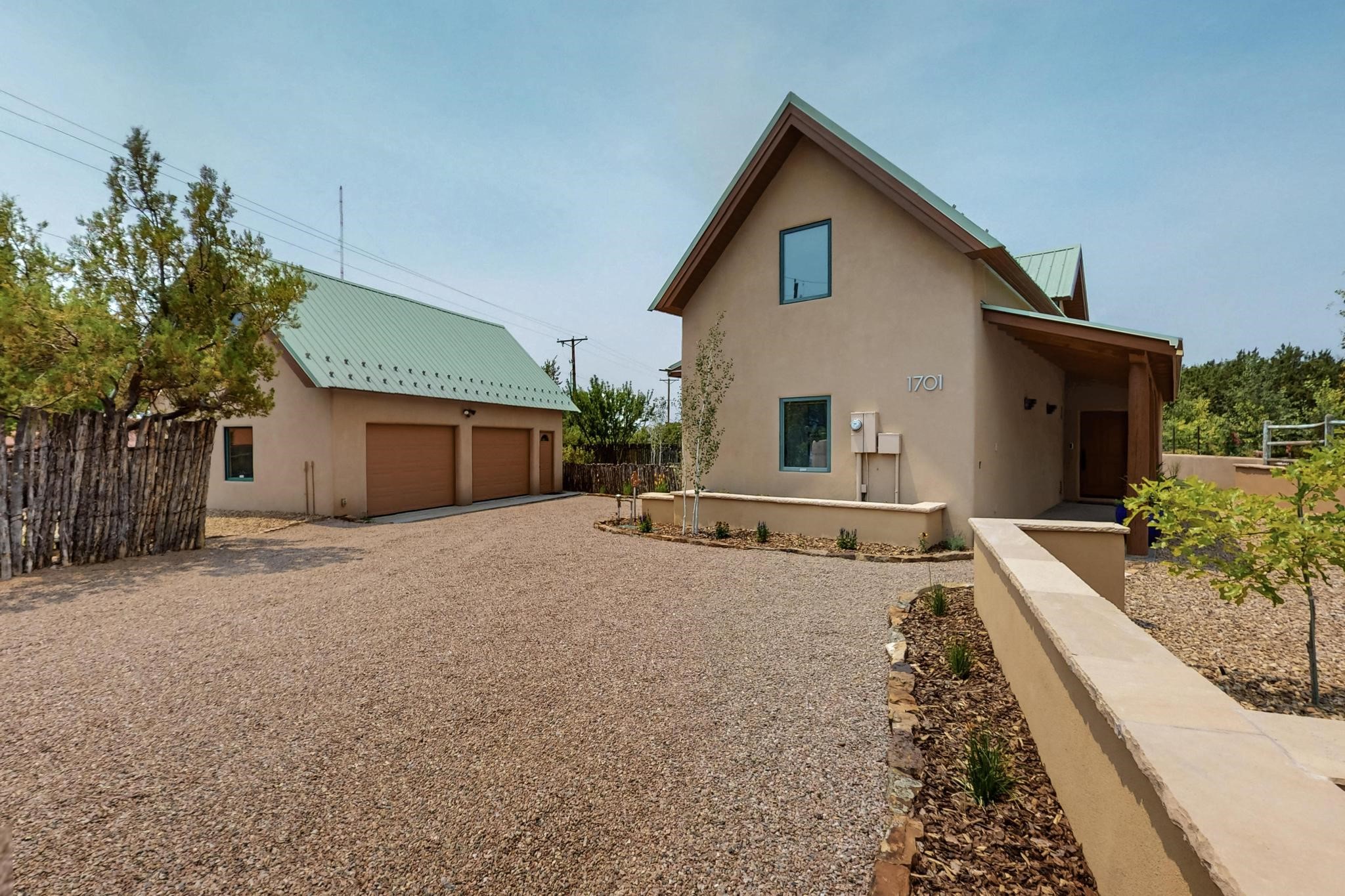 Smartly updated, Northern New Mexico Style, passive solar home. First Energy Starhome in New Mexico featuring high quality construction and outstanding efficiency!Inside you will find stained concrete radiant floors, new high-quality carpet upstairs andan abundance of beautiful natural light throughout the home. Tasteful finishes havebeen newly added to the kitchen and baths including new quartz countertops, sinks,matching faucets, lighting accents as well as brand new Wi-Fi ready Samsung StainlessSteel appliances. Other recent updates include a Lutron wireless automated lightingsystem, new smart smoke/CO detectors and thermostats, Moen Flow water leakdetection system and a filtered drinking water system. Feel at ease with brand newradiant heat boiler and control system as well as new domestic hot water heater. Thehome enjoys lovely Sangre de Cristo Mountain views from the primary upstairsbedroom with walk in closet. Outside you will find copious parking for guests and toys.The extensive low maintenance landscaping surrounding the property brings a pastoralfeeling with blue grama, Aspen trees and flowers amongst artful custom stone walls allautomatically watered with a Wi-Fi controlled irrigation and drip system. The detached580 sq/ft heated, insulated and finished garage could easily serve as an excellentworkshop, studio, or guest house. The garage also boasts a full, equally sized attic forextra storage or the option to finish. This would be a great location for the LANL commuter or someone looking for an ultra-convenient location just minutes from Plaza, the Railyard, and the Montanita Co-op. Enjoy a very short walk to the river trail, Frank Ortiz dog park and city open space trails, or a quick mountain bike ride from this hometo La Tierra trails and more. This home offers easy connection to all that Santa Fe has to offer!