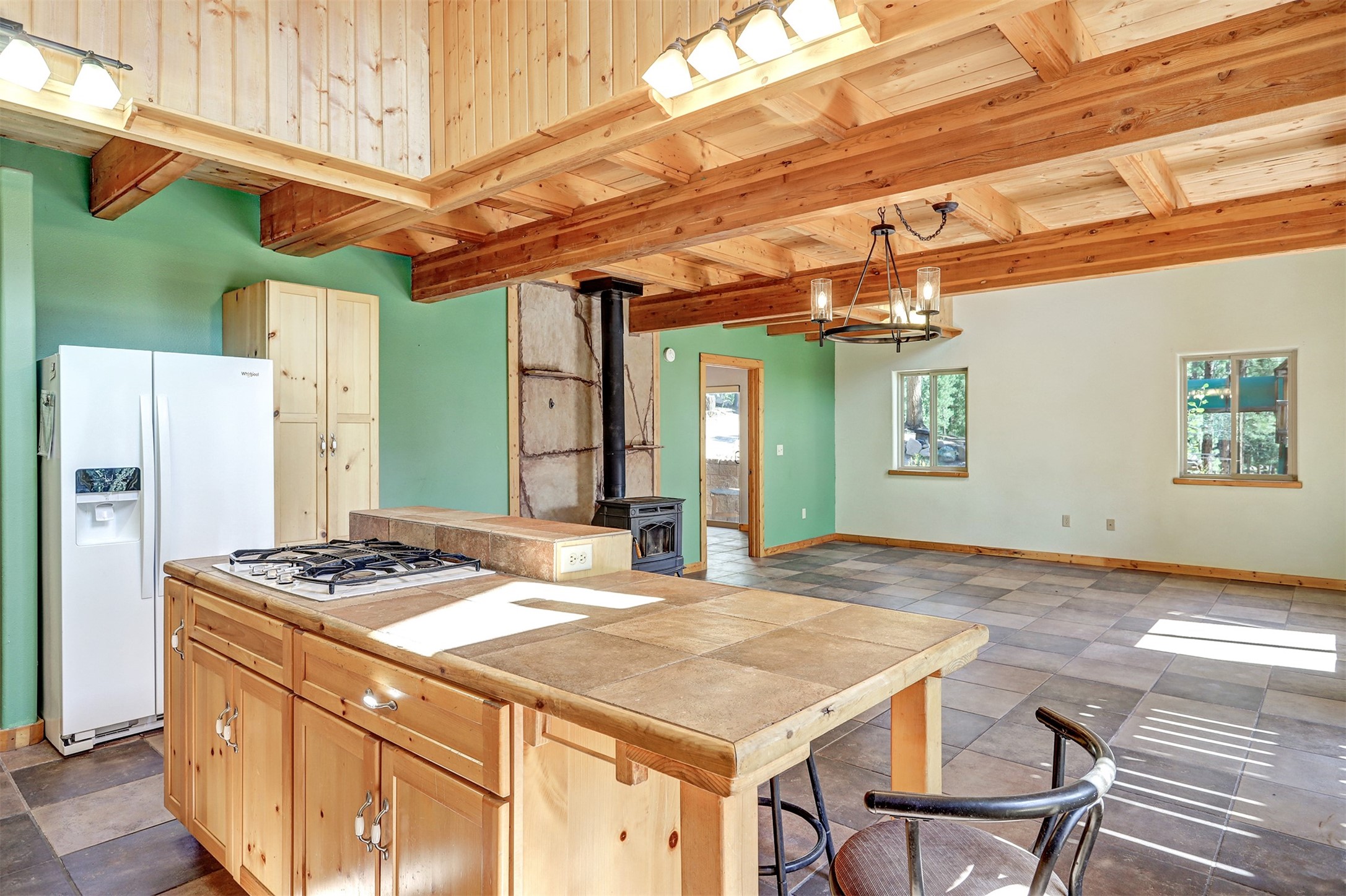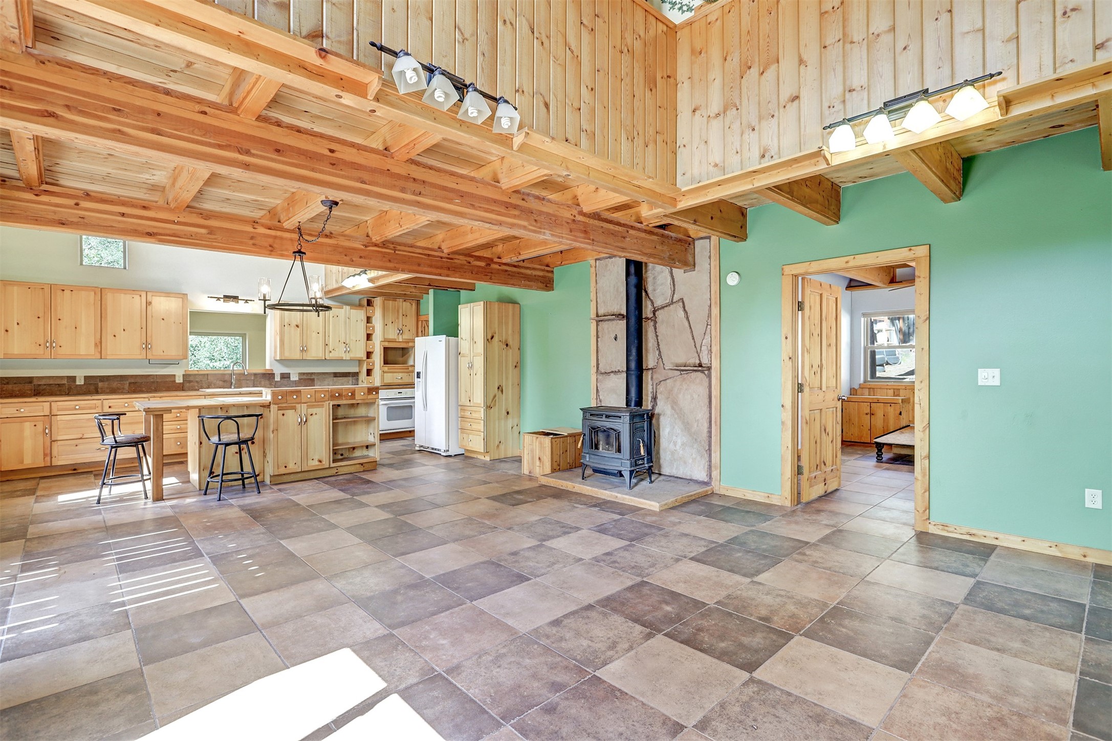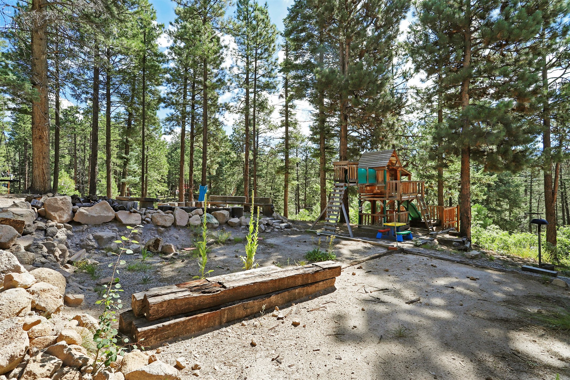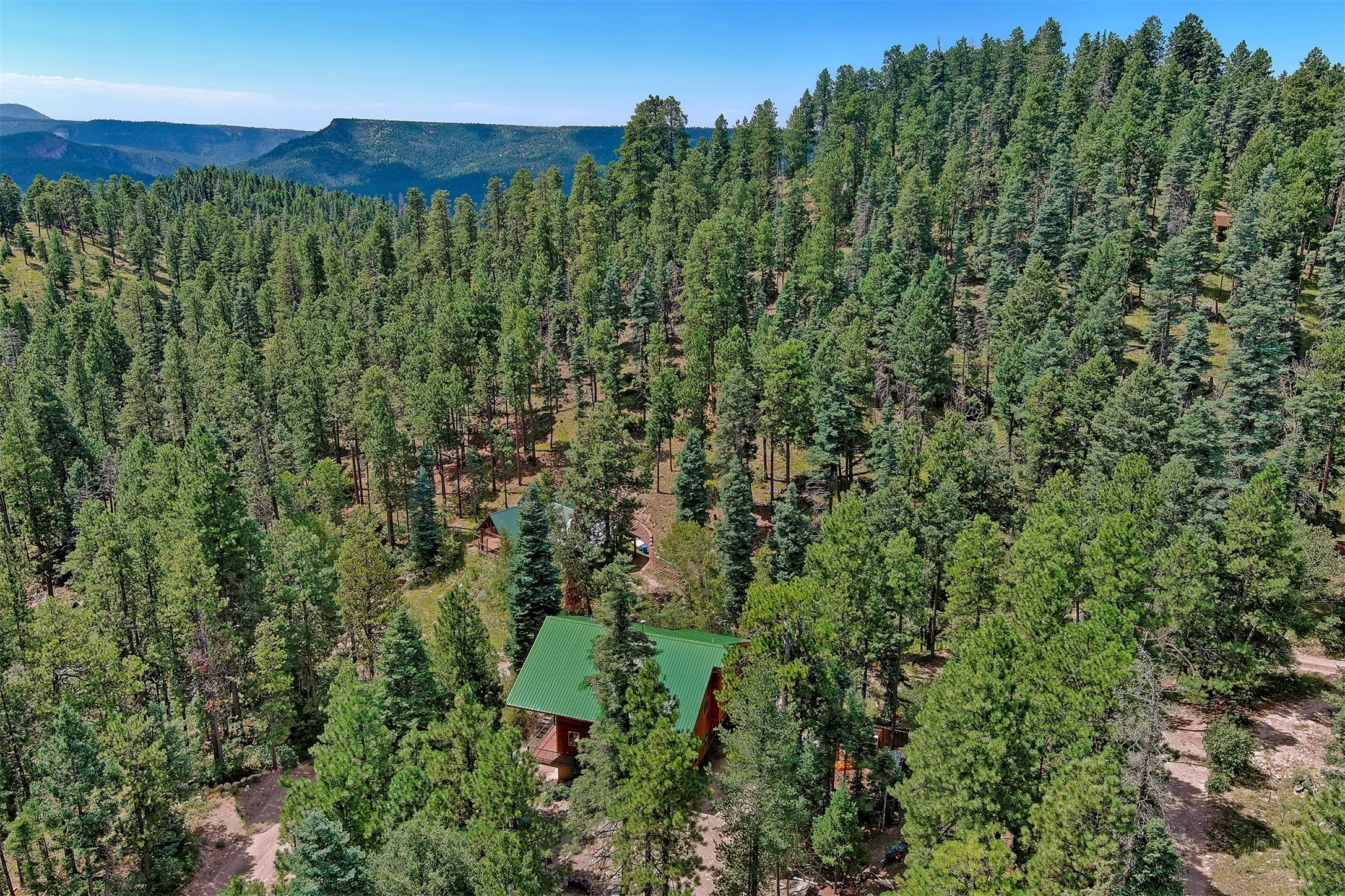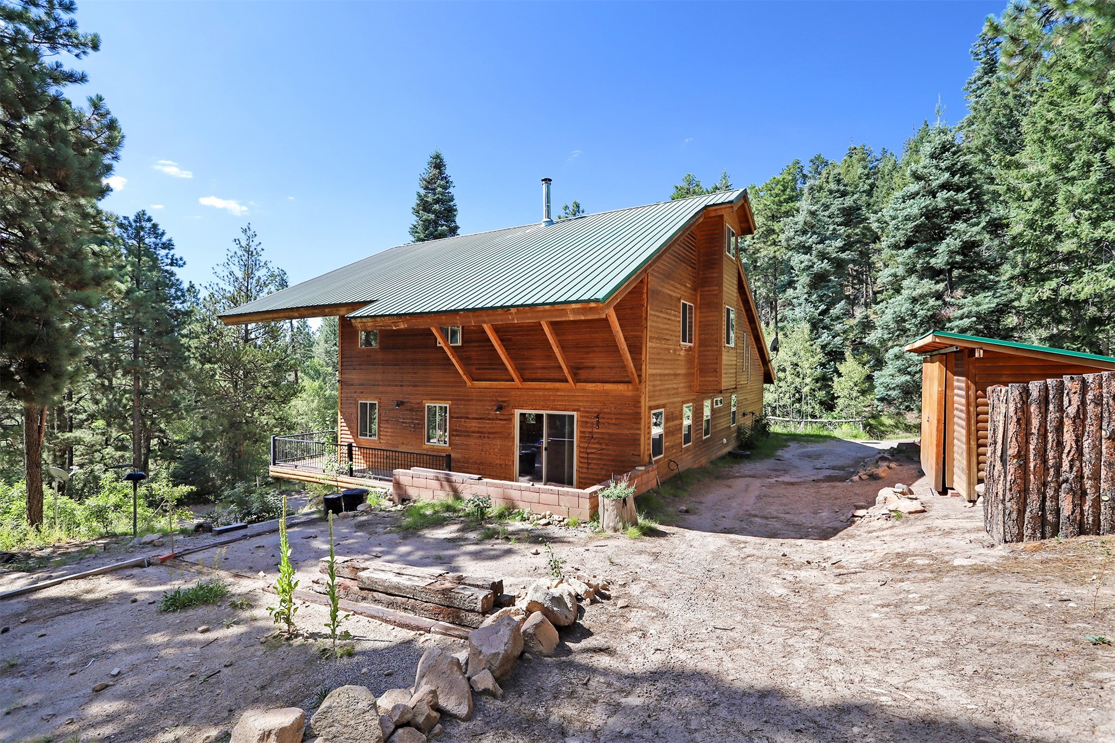Looking for a mountain home with LOTS of space? This is it! Located on 2 lots in desirable Thompson Ridge Estates, this 3 BR/2 bath home has almost 2800 sf of living space, plus 600 SF loft to boot! Custom built log sided home has plenty of storage, plus an oversized 2 car heated garage/workshop/storage area. Kitchen opens up to the large living area with vaulted tongue and groove ceiling above. Radiant floor heat keeps it warm throughout, plus a centrally located wood stove. Just a short trip to the Valles Caldera and a 45 minute commute to Los Alamos. Enjoy views of Redonda Peak off the upper balcony, take a hike to San Antonio hot springs, cruise on the ATV, fish the area waters and put the city behind! Room for the family and everything else. Come up to the mountains!