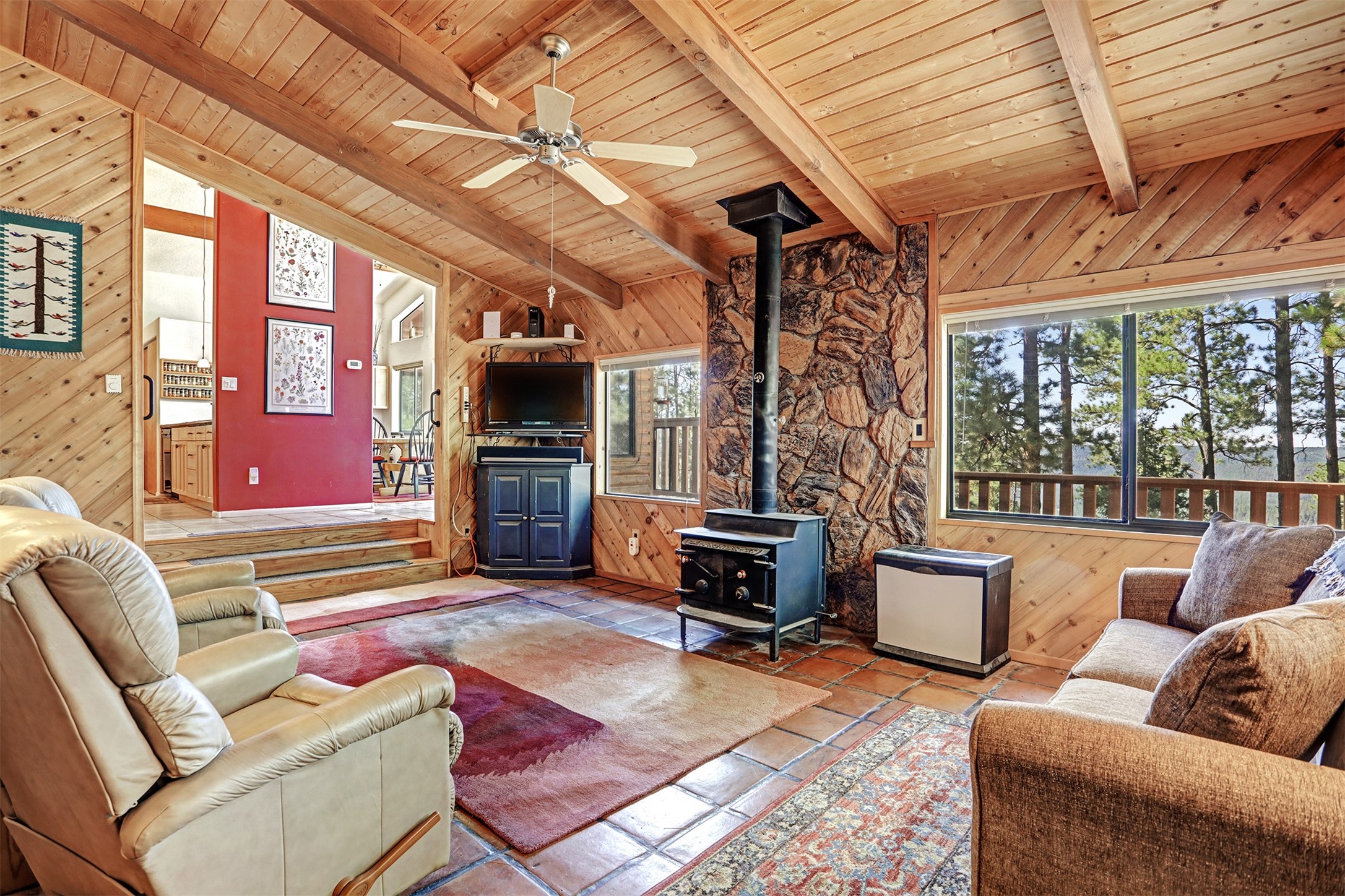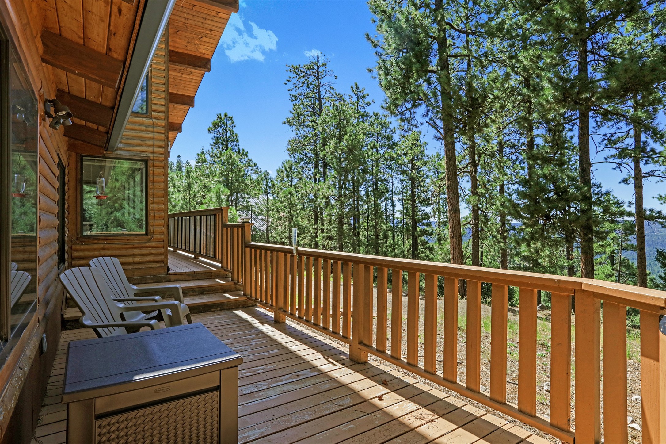 Beautiful Mountain Home in desirable Thompson Ridge Estates. Views of San Antonio Canyon and La Cueva from the kitchen, sunroom, and deck! This log sided home has it all, including the furnishings! 2-3 bedrooms, work shop space and a 2 car garage! Modern features and rustic charm. Get away from the city for the weekend, or for good! 45 minutes to the lab in Los Alamos or an hour or so to Bernalillo. Dog door and fencing for the fur babies Enjoy all that the Jemez has to offer including biking, hiking, skiing, and fishing. Cozy up to the wood stove in winter, and no need for AC in summer. Year round access and only an hour and a half from Albuquerque! If you are looking for views, comfort, and an escape from the city, this is it!