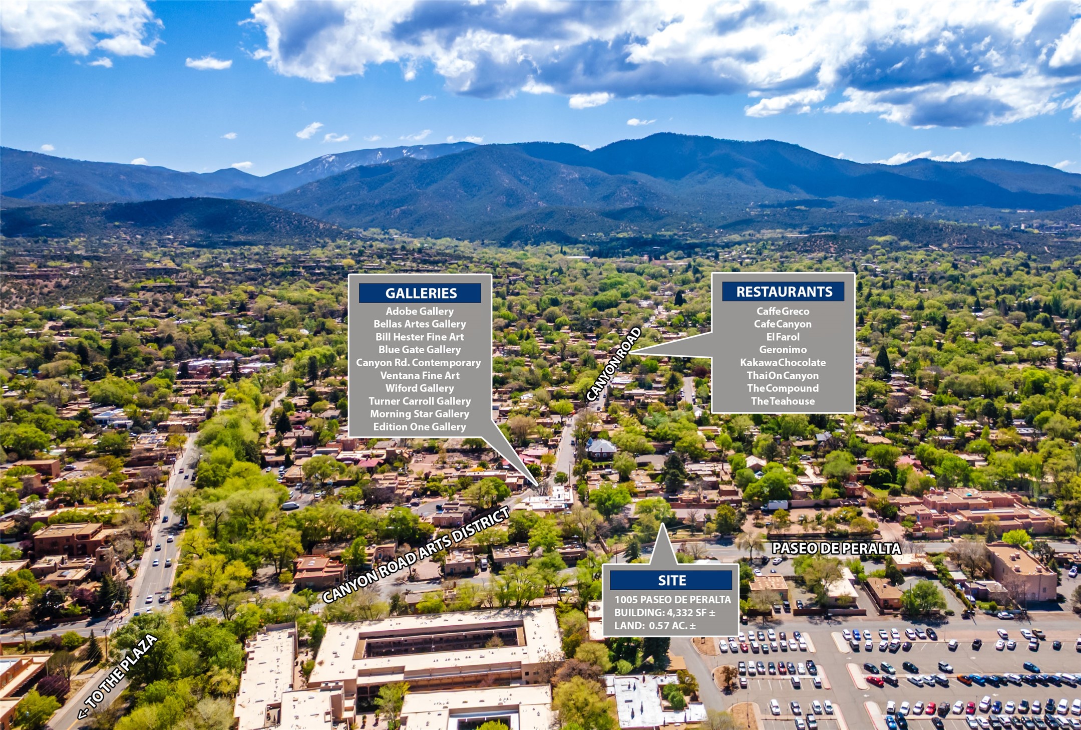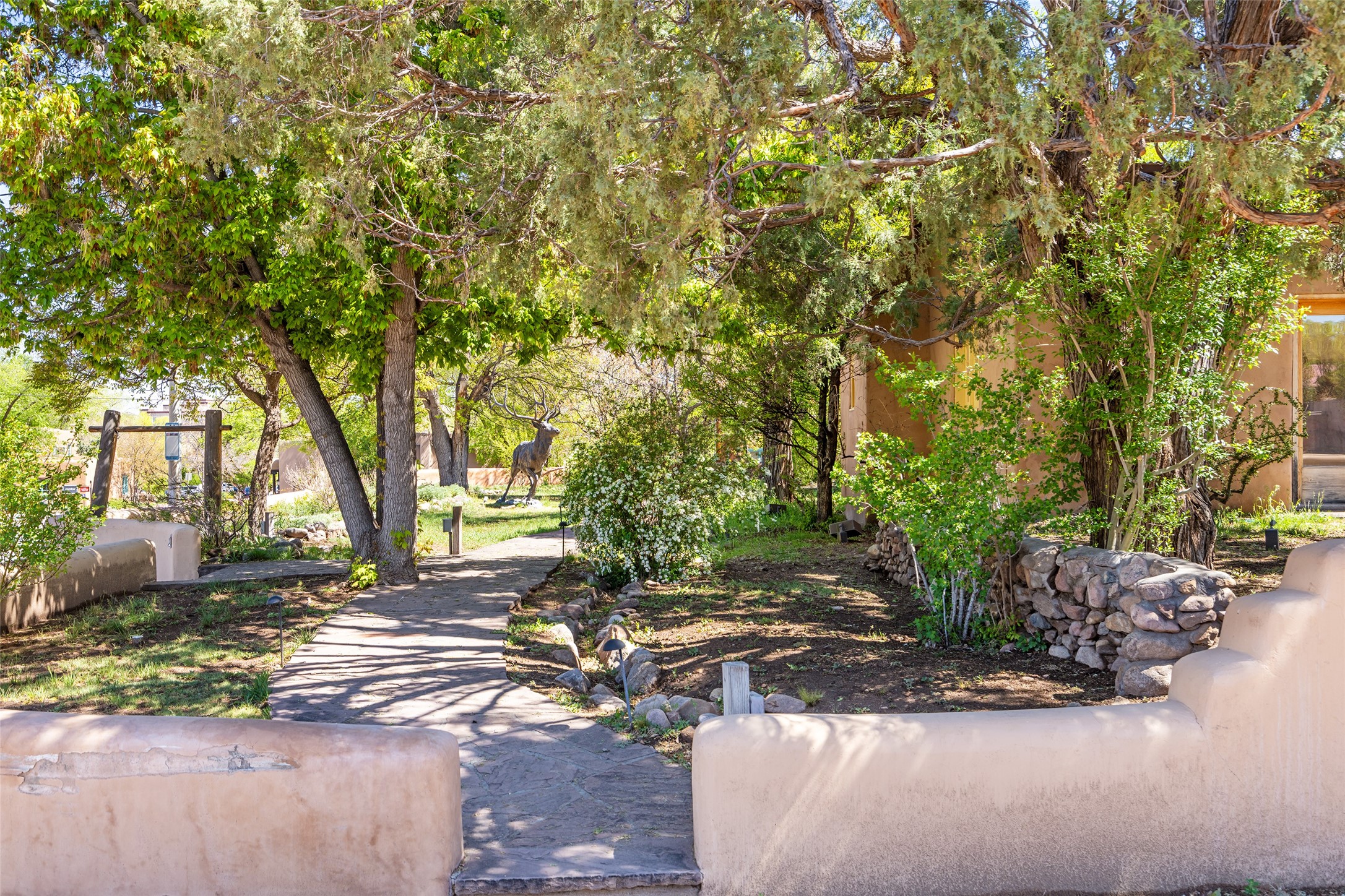 Excellent location with high foot traffic - walking distance to the Plaza and steps from Canyon Rd. RC8AC Zoning allows for art gallery and art related businesses. Beautiful portal and lush garden area comprising over a half-acre. Ample on site parking lot with 9 dedicated spaces. Next to the Gerald Peters Gallery, the entrance to Canyon Road, top restaurants such as The Compound and Geronimo, and luxury hotels such as Inn at Loretto, The Inn on Alameda, the Drury Hotel. Step into a piece of Santa Fe history with this rare opportunity to lease an authentic adobe gallery space located in thecity's vibrant downtown district: the Kaune Bandelier House. This beautifully preserved adobe building blends timeless Southwestern charm with modern functionality--ideal for art galleries or specialty showrooms seeking a one-of-a-kind setting. This is more than a commercial space--it's an experience. Enchant your customers with the warmth, texture, and soul of Santa Fe's architectural heritage. Close to Canyon Rd and downtown Santa Fe, shopping, restaurants, services and more. The space offers high ceilings up to 11' high, exposed vigas, adobe walls, traditional fireplace, two bathrooms and full HVAC. Nestled in the heart of Santa Fe's culture and history, this property offers both visibility and prestige.1005 Paseo de Peralta presents itself as a canvas where your art related business can flourish.