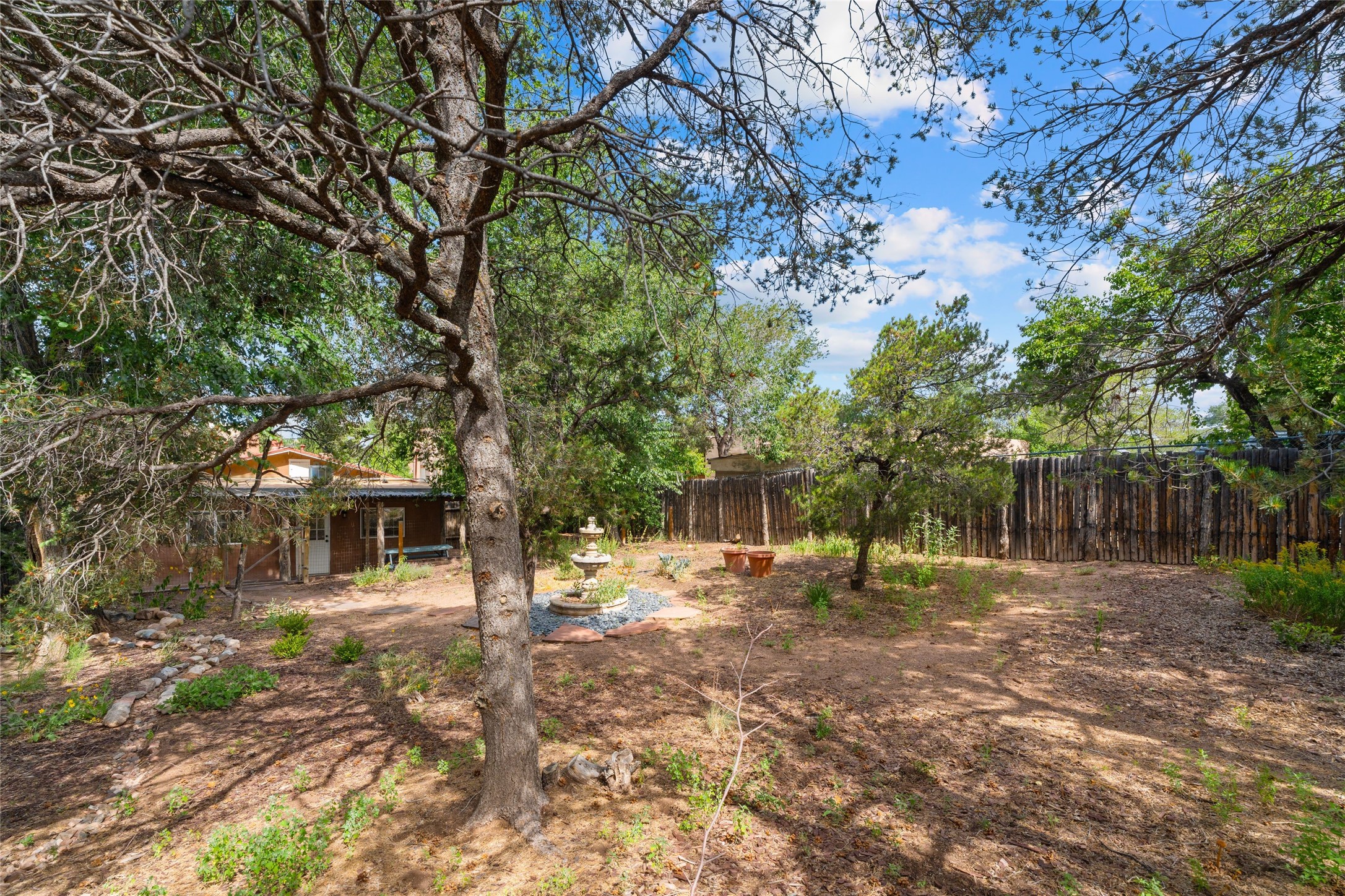 Six blocks north of The Plaza, this downtown pied--terre is located at the end of a short, dead-end road and is the perfect opportunity for someone wishing to have close proximity to downtown Santa Fe as well as offering the opportunity to remodel and/or expand. Enter through a walled and fenced courtyard to the front door where you'll be greeted by an open living room and dining area with a large fireplace. The bedroom opens to a rear patio and an expansive, fully fenced back yard with mature trees. This 1-BR, 1-B home, originally built in 1950, has been updated with modern conveniences.