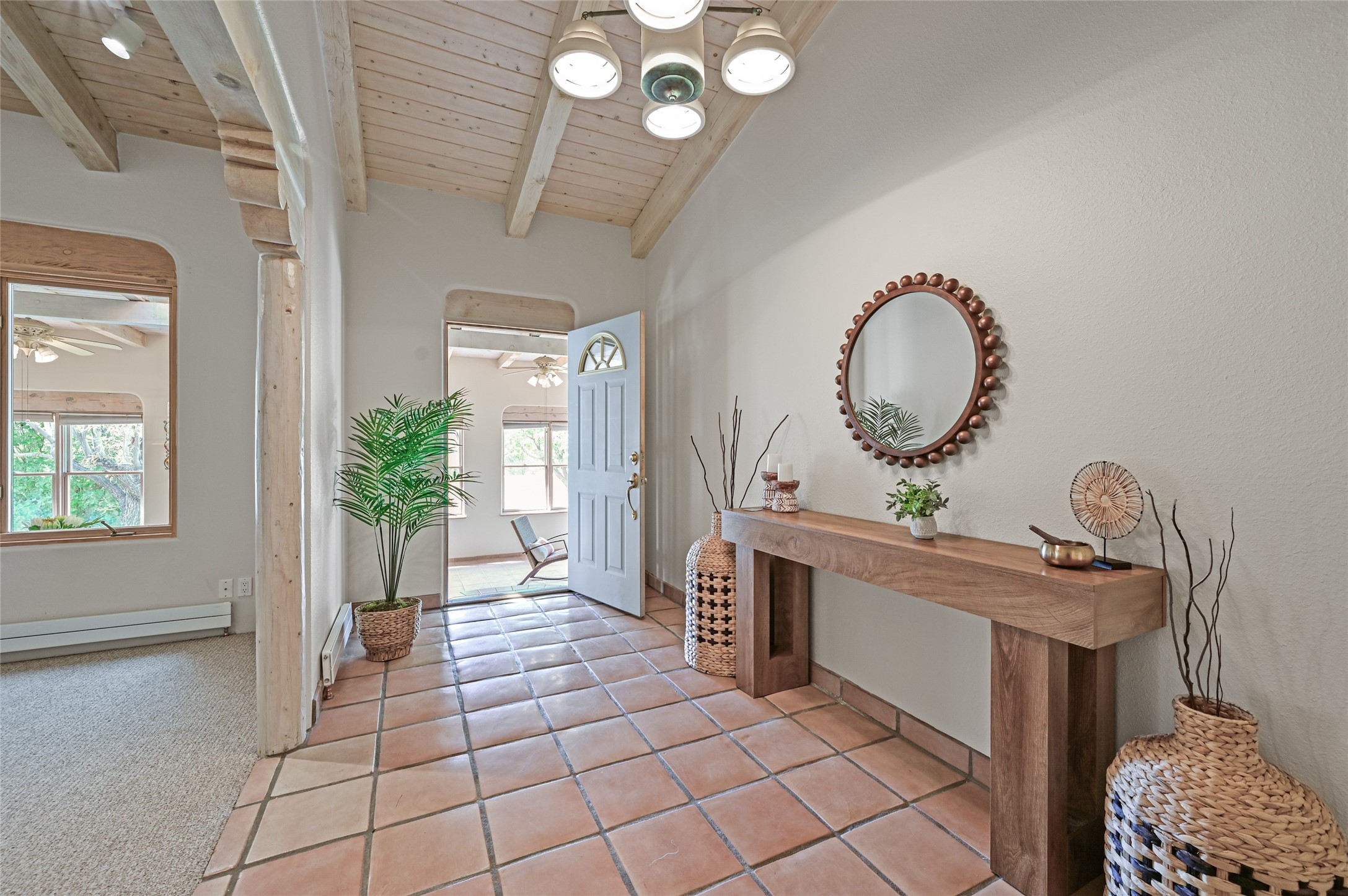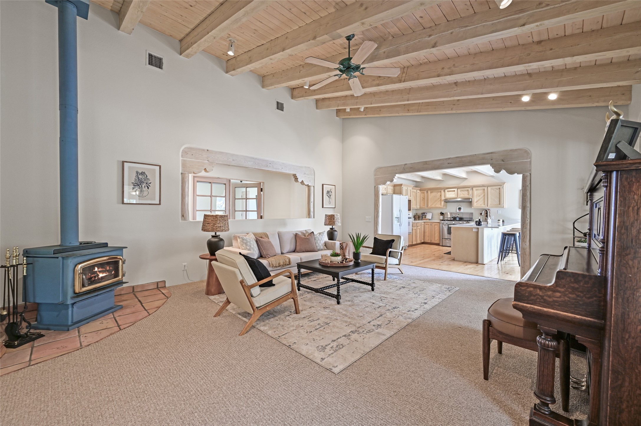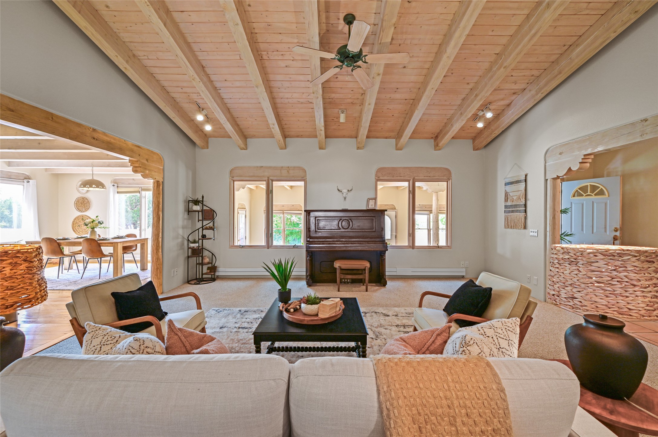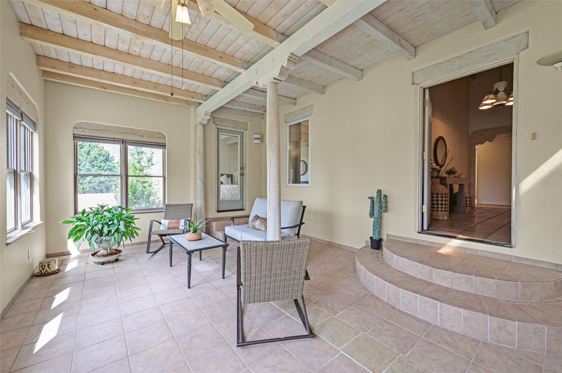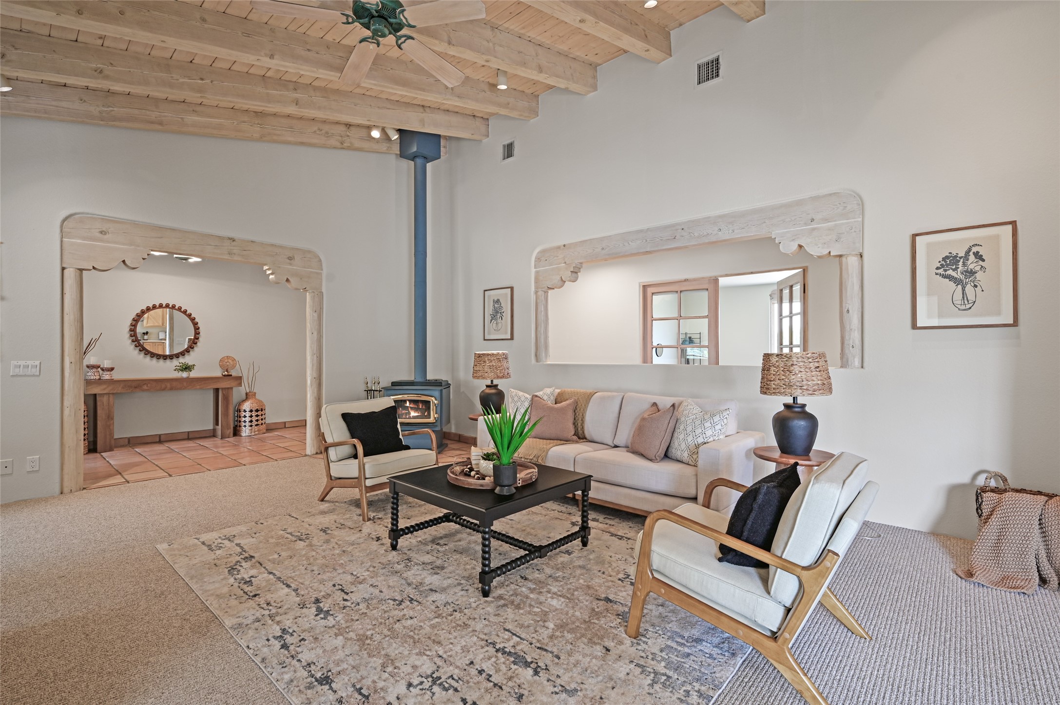 Experience the perfect blend of serenity and sophistication at this 3,220 sq. ft. retreat, set on 1.49 gated acres. Surrounded by privacy, the home invites you in with its warm Santa Fe character enhanced by modern updates. The kitchen shines with sleek quartz countertops, while upgraded bathrooms and a refreshed laundry room add comfort and style. New carpet and thoughtful finishes create a polished, move-in-ready atmosphere. Designed for relaxation, entertaining, and soaking in the beauty of the desert sky. This property is more than a home--it's a haven where timeless charm meets modern luxury