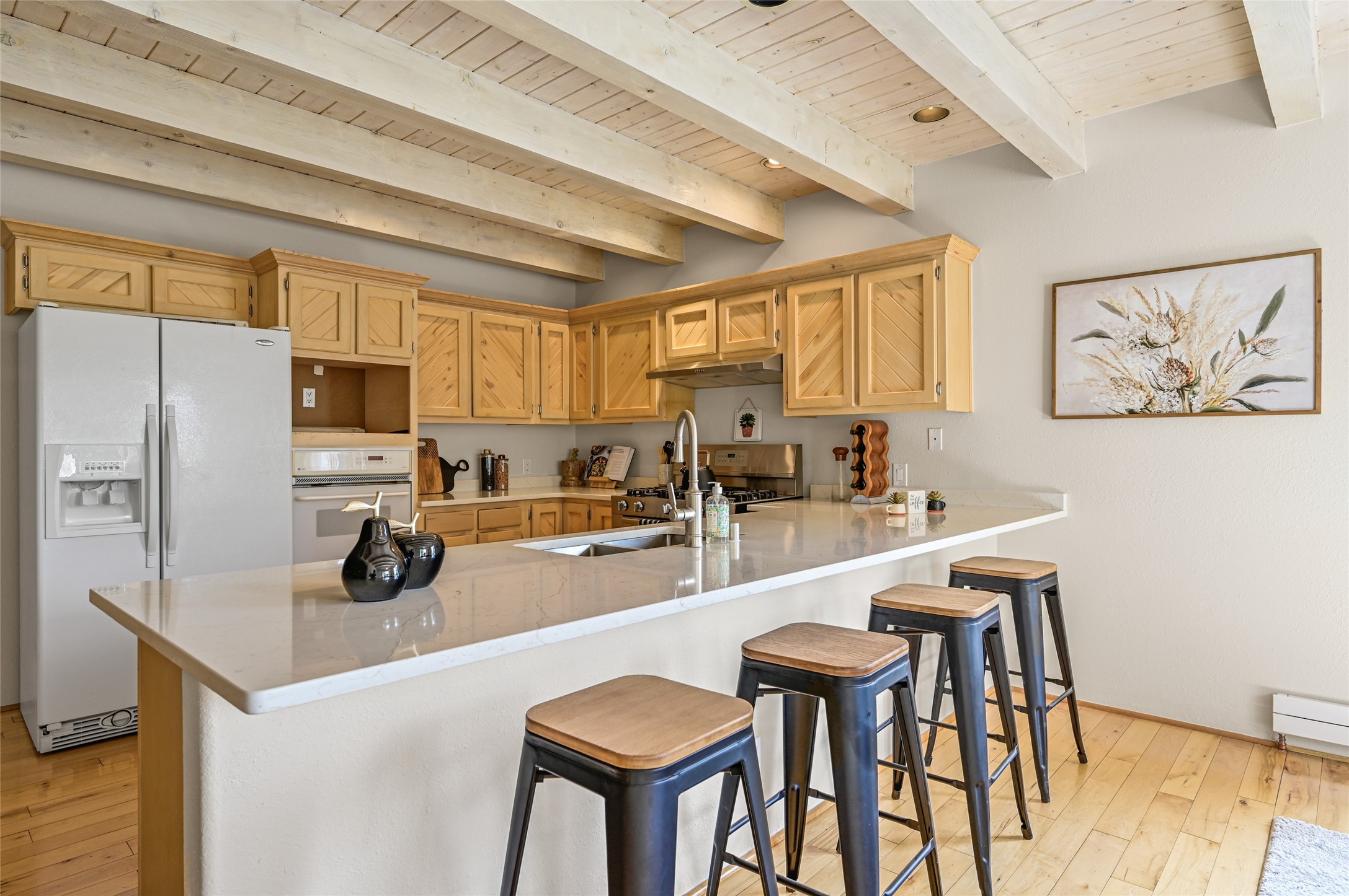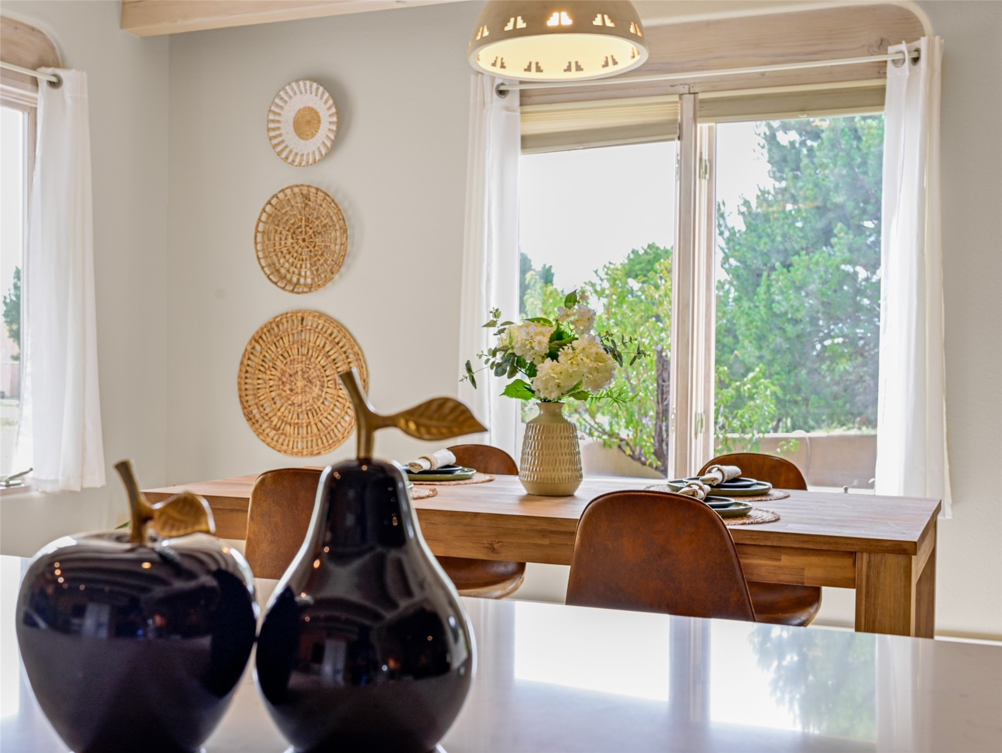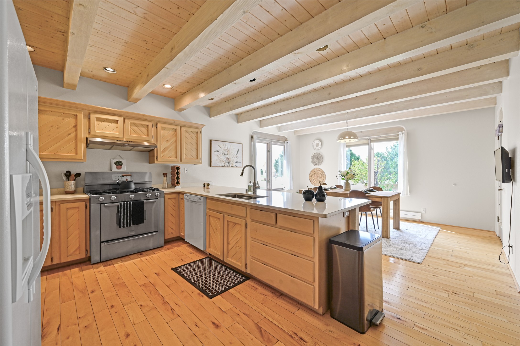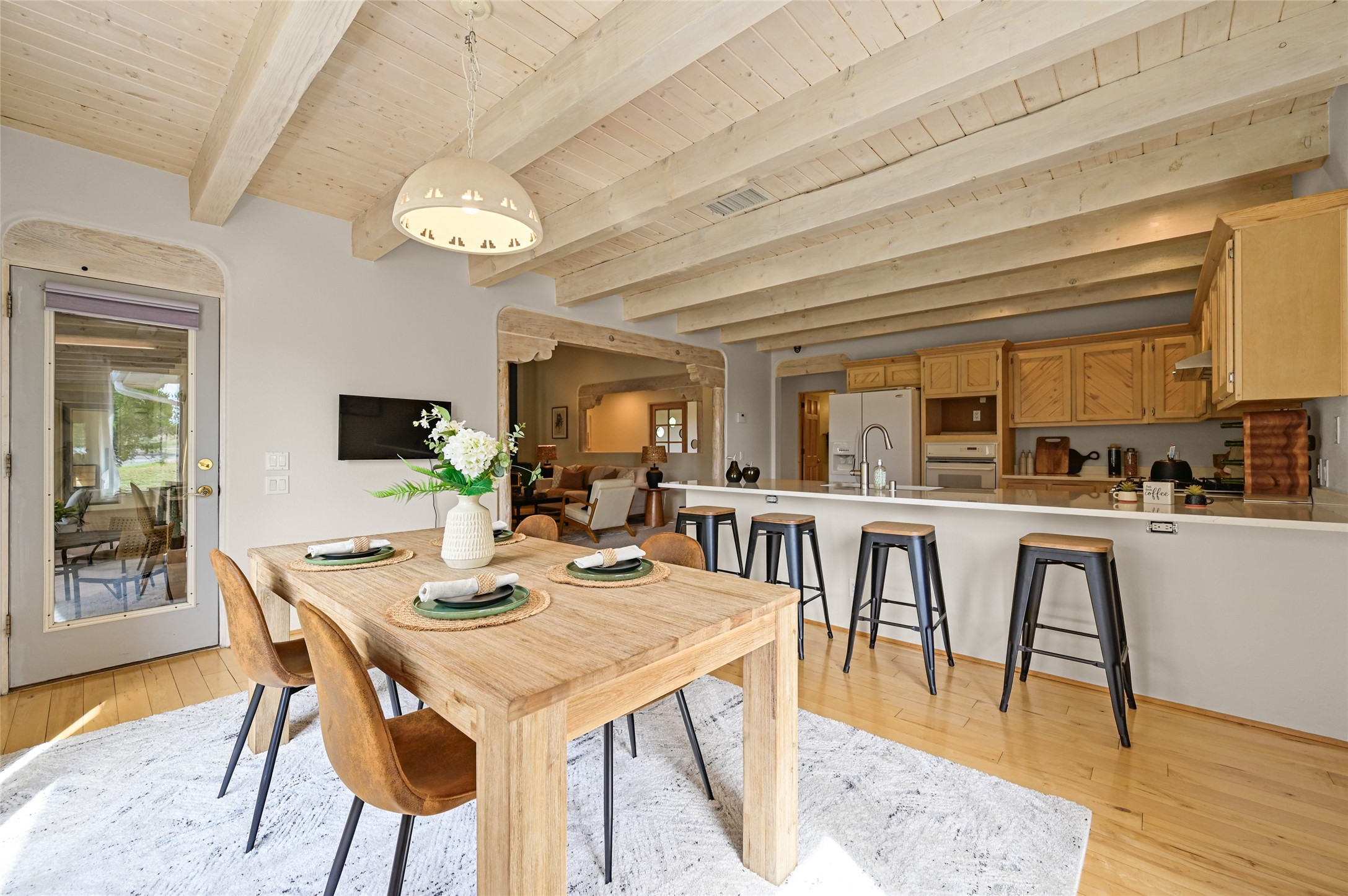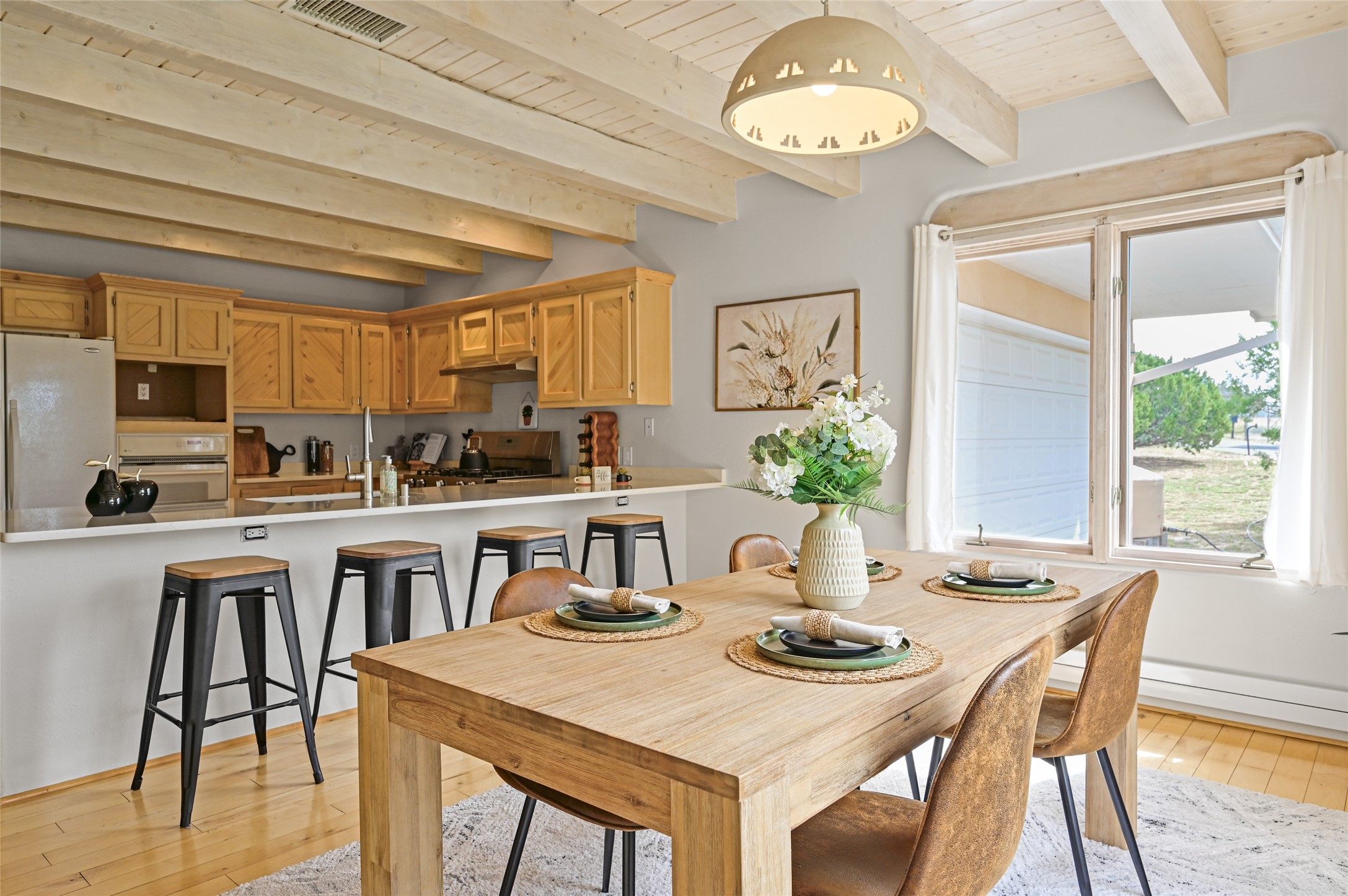 Experience the perfect blend of serenity and sophistication at this 3,220 sq. ft. retreat, set on 1.49 gated acres. Surrounded by privacy, the home invites you in with its warm Santa Fe character enhanced by modern updates. The kitchen shines with sleek quartz countertops, while upgraded bathrooms and a refreshed laundry room add comfort and style. New carpet and thoughtful finishes create a polished, move-in-ready atmosphere. Designed for relaxation, entertaining, and soaking in the beauty of the desert sky. This property is more than a home--it's a haven where timeless charm meets modern luxury