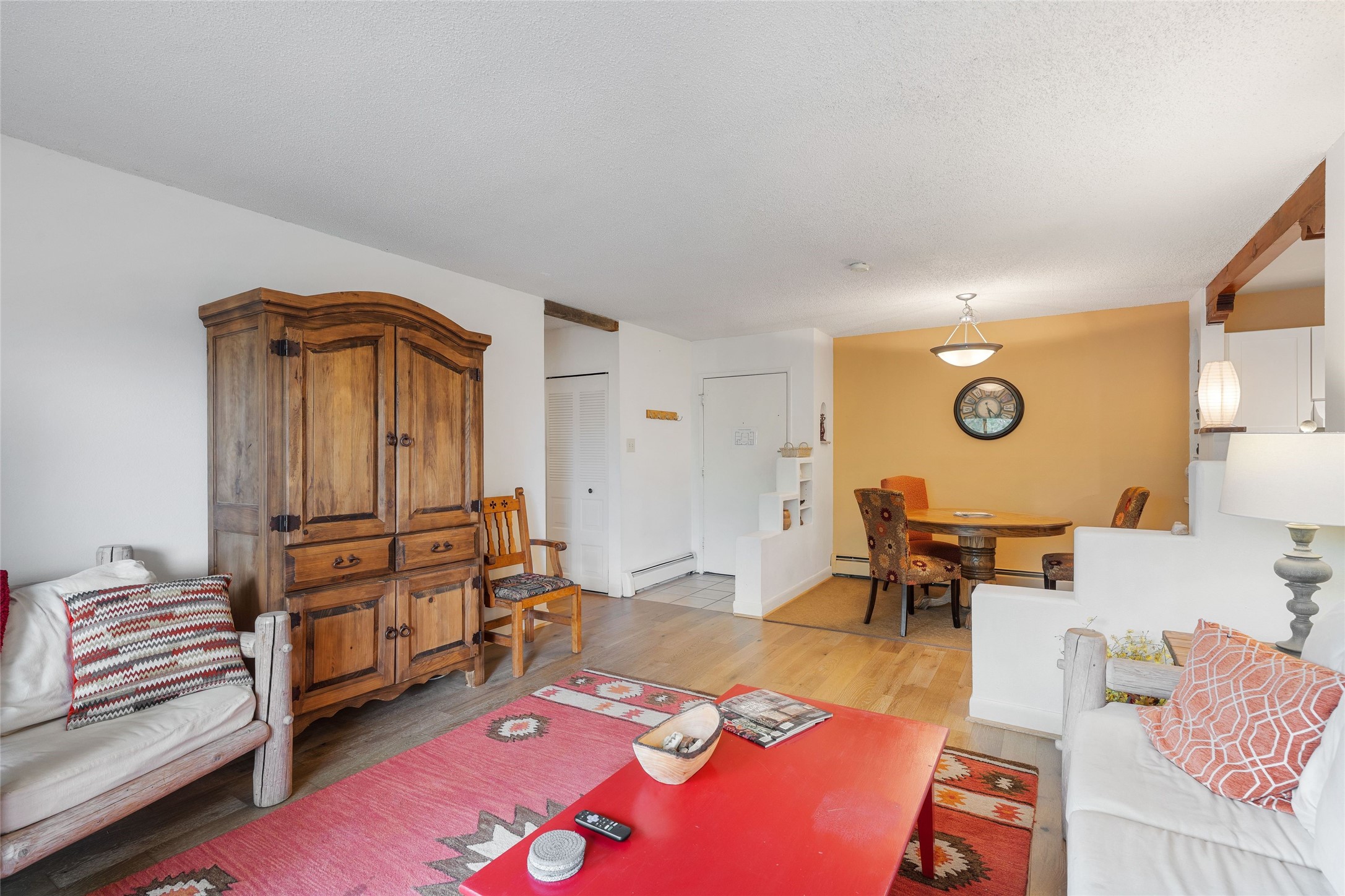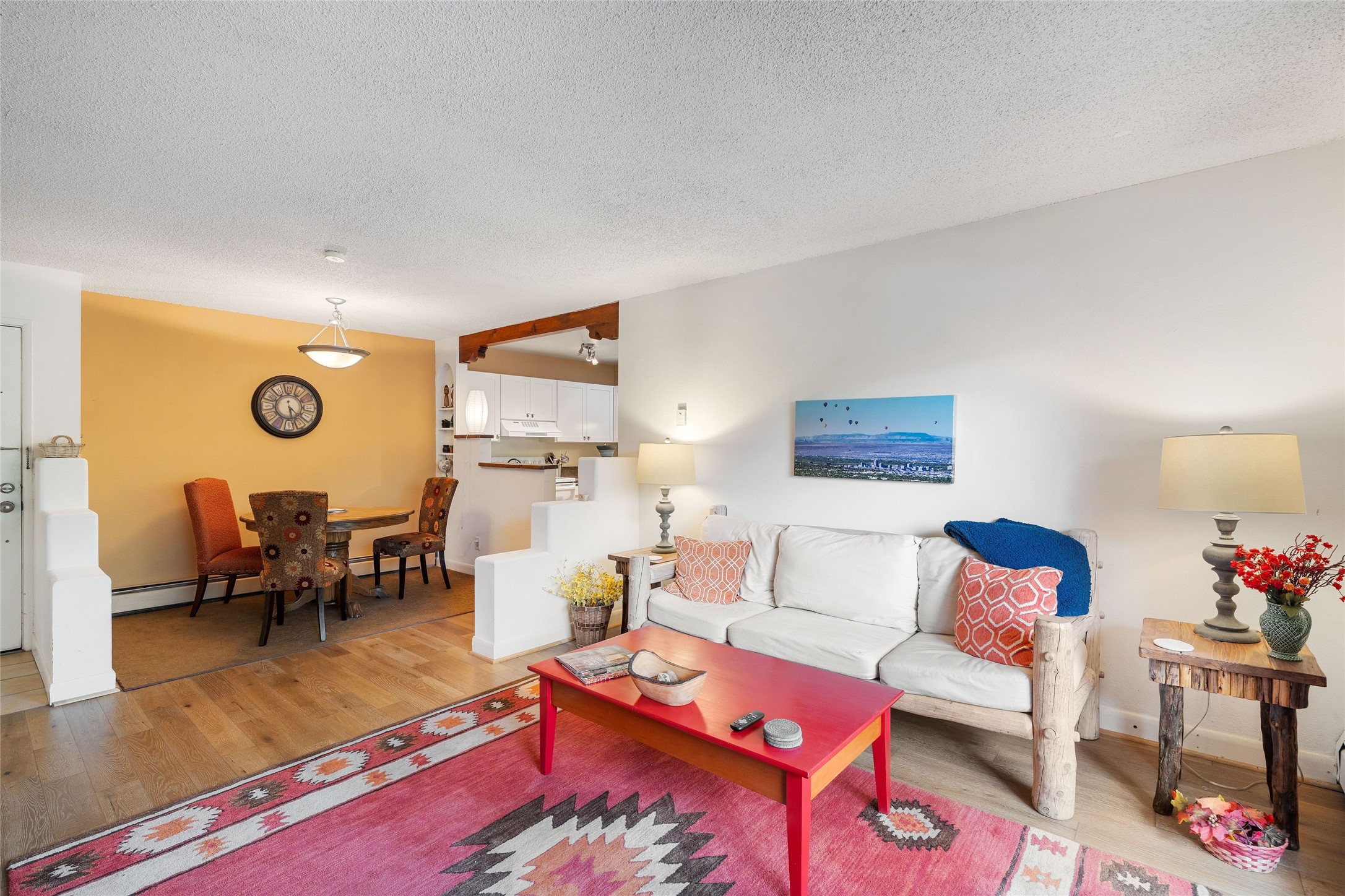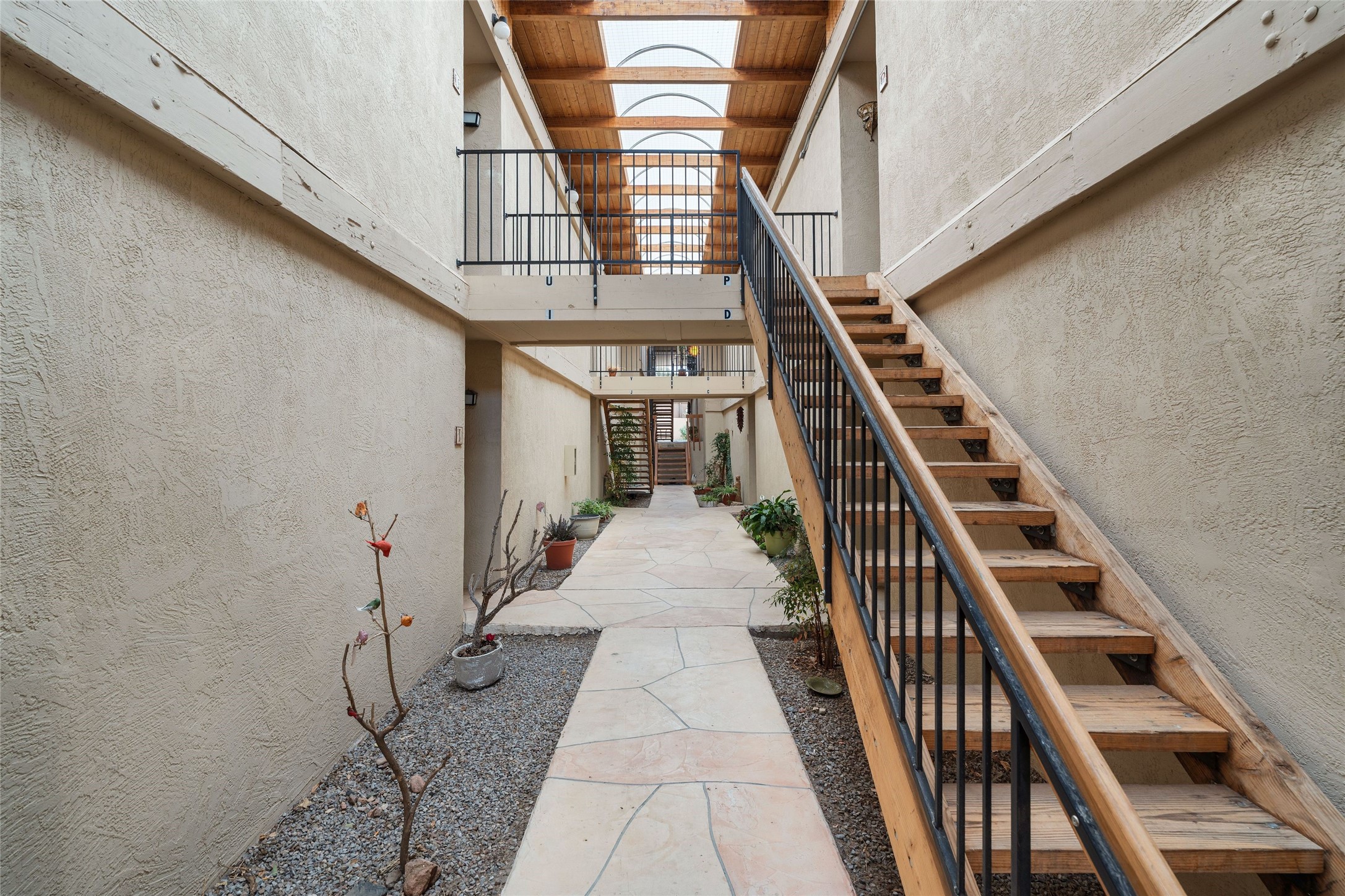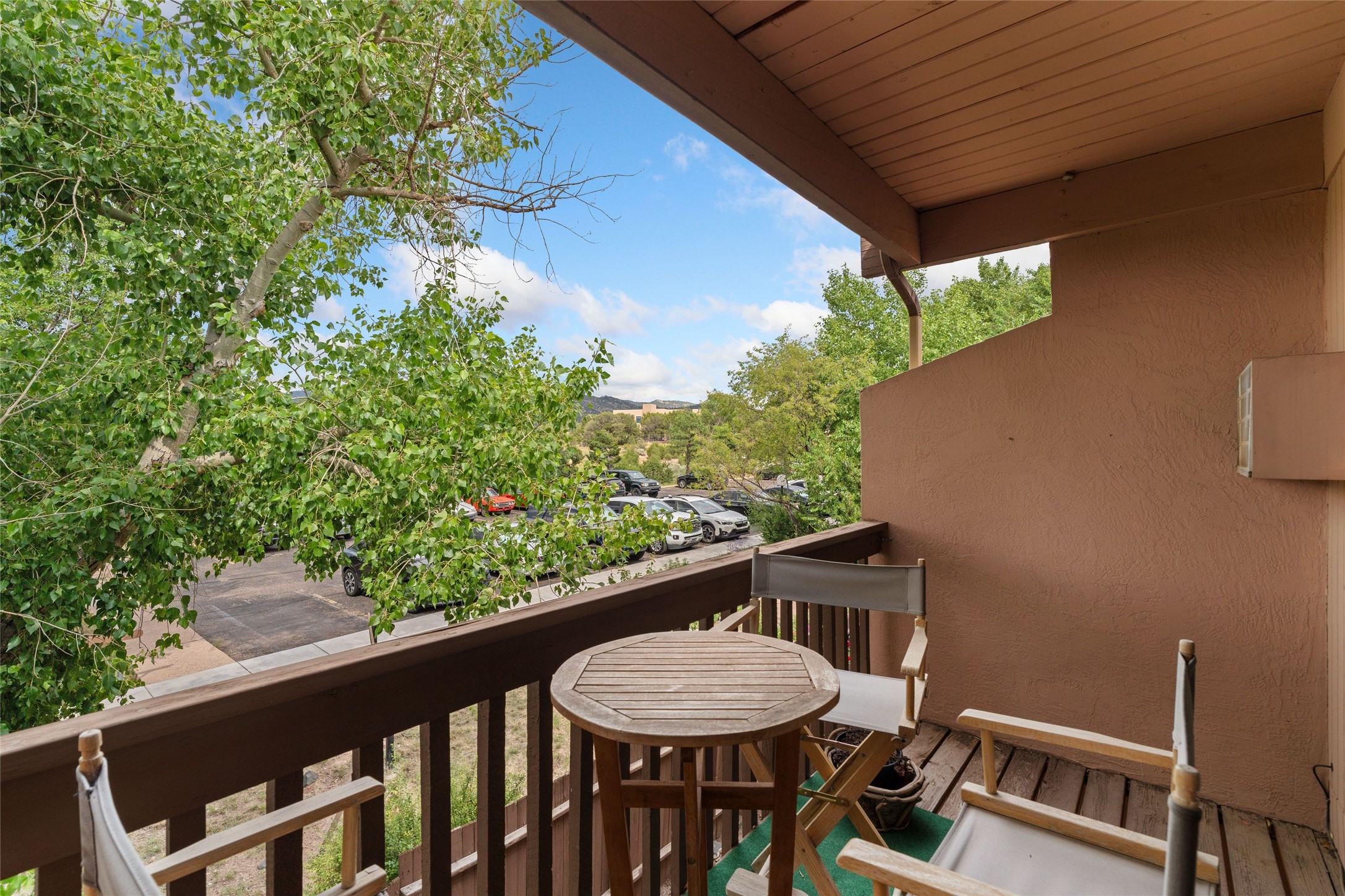 Renovated 2-bedroom, 2-bathroom condo located on the second floor of the Los Arroyos Compound on the shady side of the building. Upon entry, the living and dining areas flow onto an outdoor deck with views of Atalaya, Picacho Peak, and the Sun and Moon Mountains. The modern L-shaped kitchen is appointed with clean, white cabinets and provides ample storage and workspace for cooking. The split bedroom plan ensures privacy and convenience for guests or roommates. Additionally, it includes a large laundry and storage room with a stacked washer and dryer. The Los Arroyos Compound includes access to an array of amenities, including a clubhouse and outdoor space for social gatherings, an indoor pool, exercise room, sauna, and tennis courts. Easy access to 285, I-25 and restaurants, health/wellness facilities and shopping