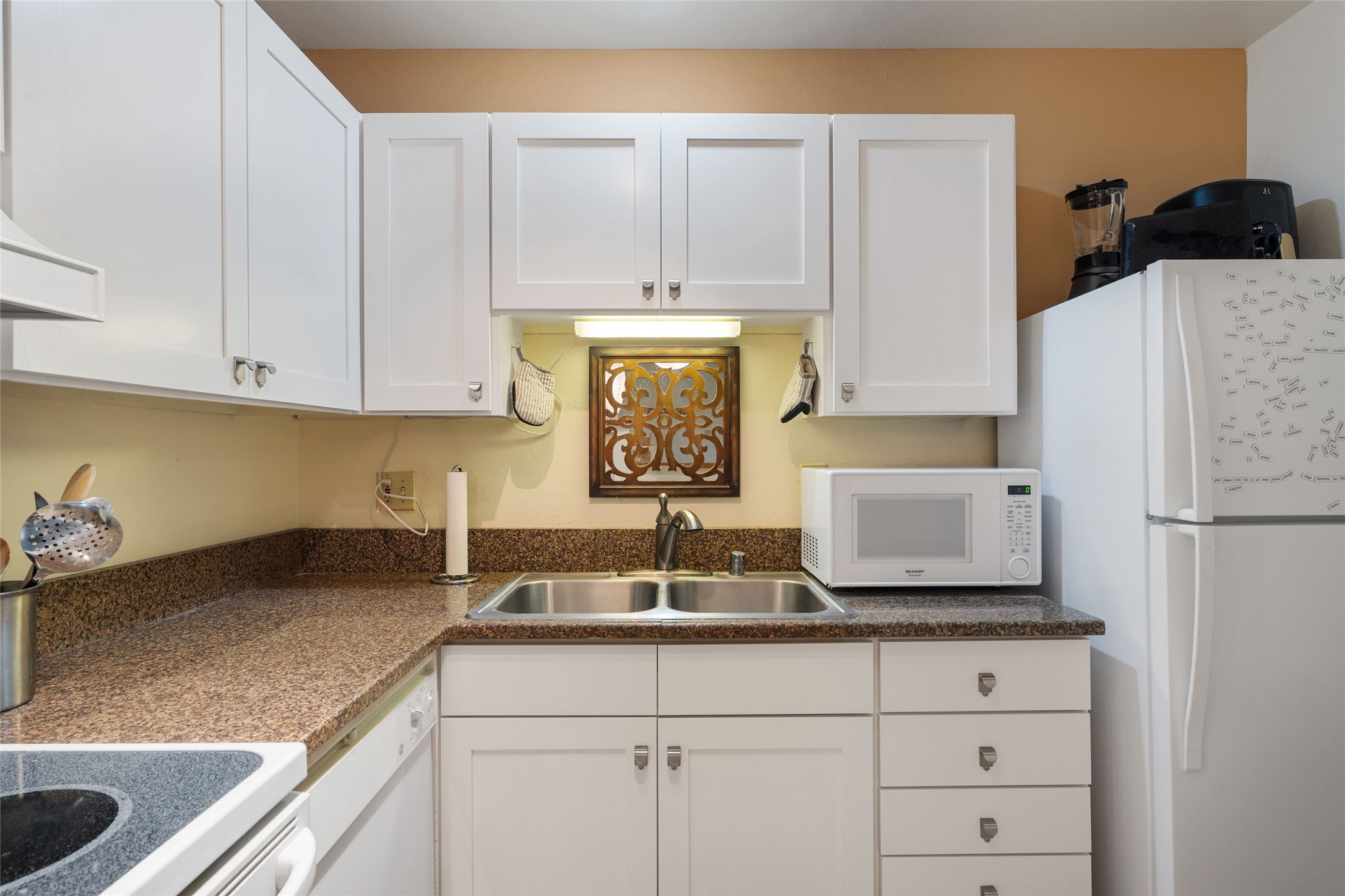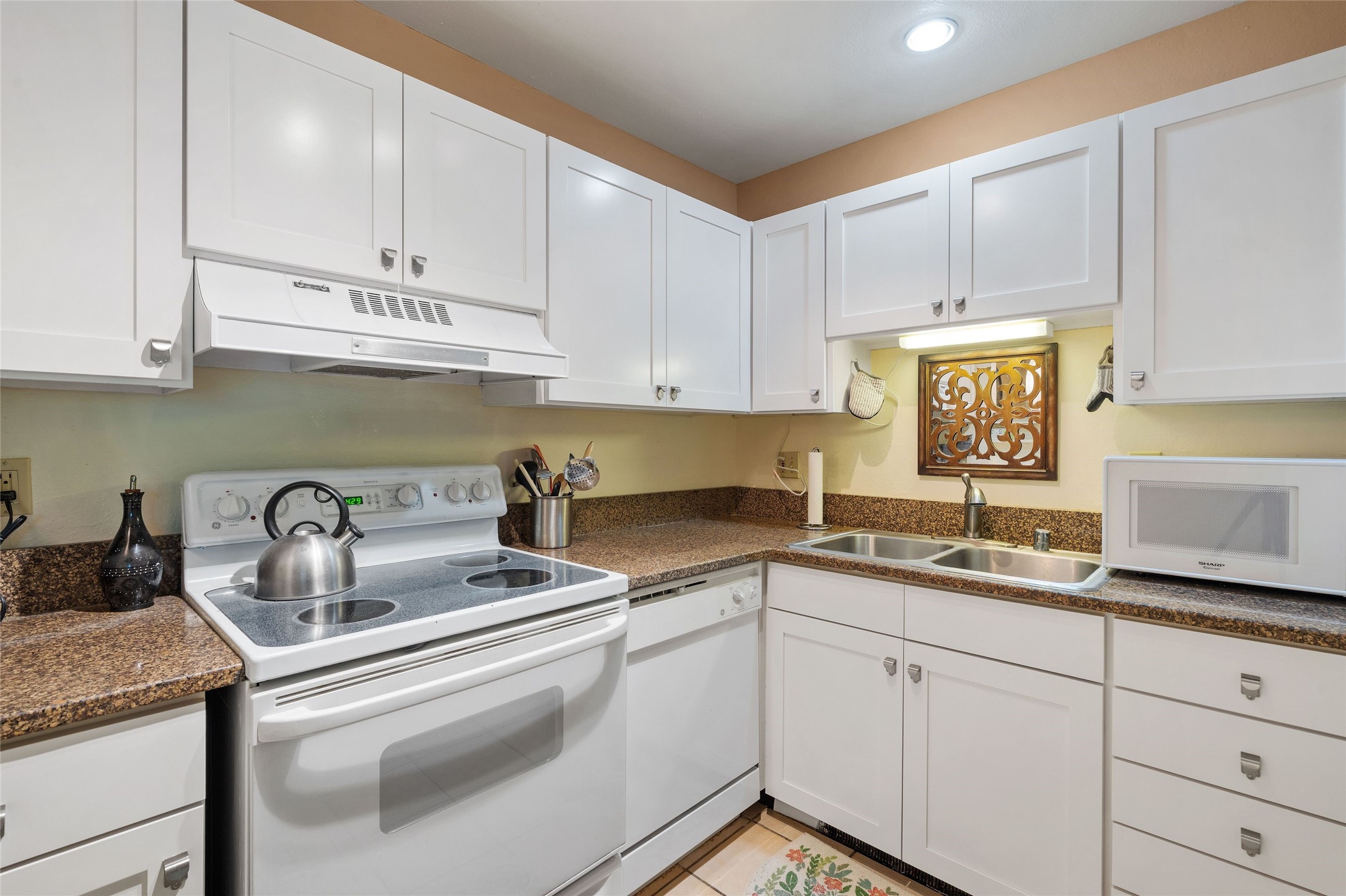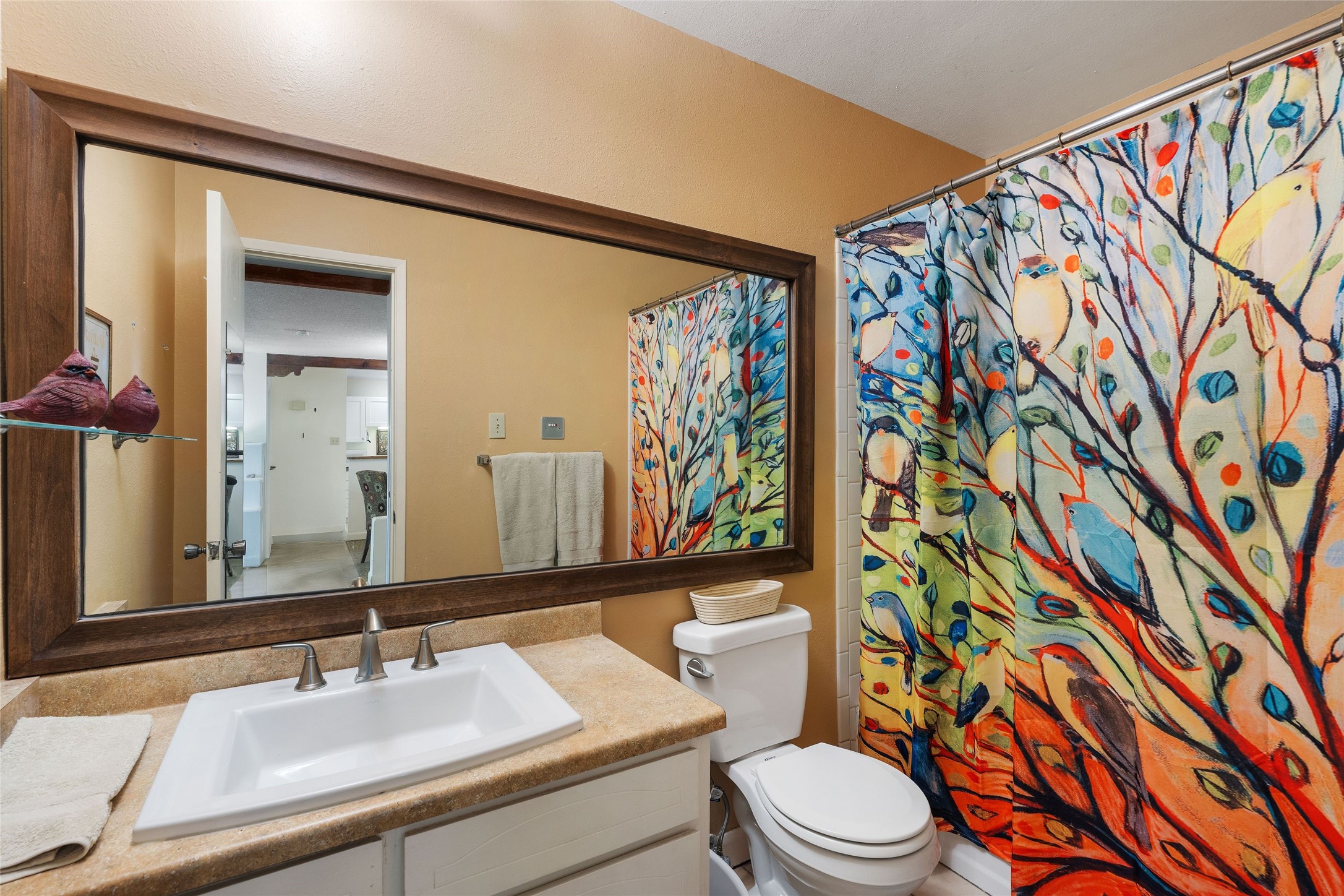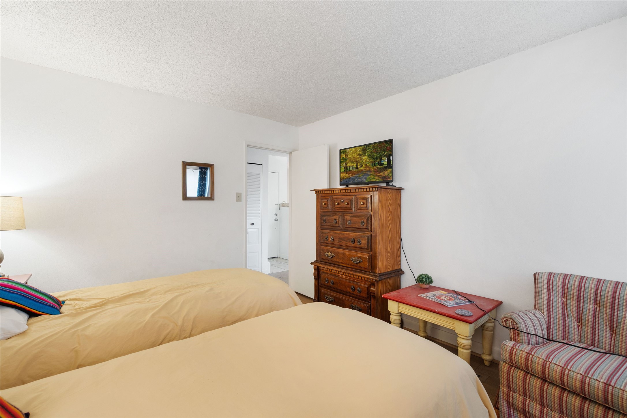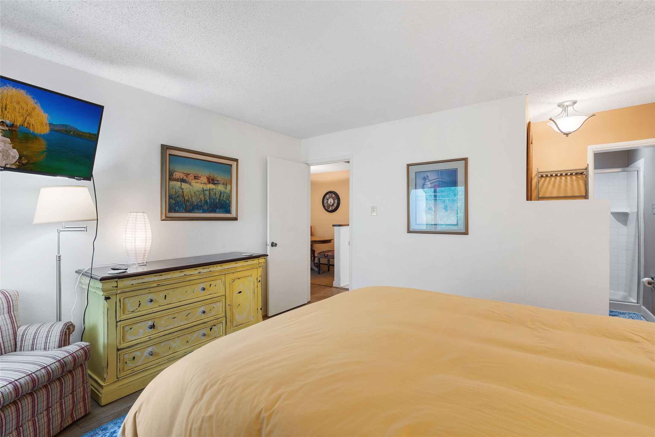 Renovated 2-bedroom, 2-bathroom condo located on the second floor of the Los Arroyos Compound on the shady side of the building. Upon entry, the living and dining areas flow onto an outdoor deck with views of Atalaya, Picacho Peak, and the Sun and Moon Mountains. The modern L-shaped kitchen is appointed with clean, white cabinets and provides ample storage and workspace for cooking. The split bedroom plan ensures privacy and convenience for guests or roommates. Additionally, it includes a large laundry and storage room with a stacked washer and dryer. The Los Arroyos Compound includes access to an array of amenities, including a clubhouse and outdoor space for social gatherings, an indoor pool, exercise room, sauna, and tennis courts. Easy access to 285, I-25 and restaurants, health/wellness facilities and shopping