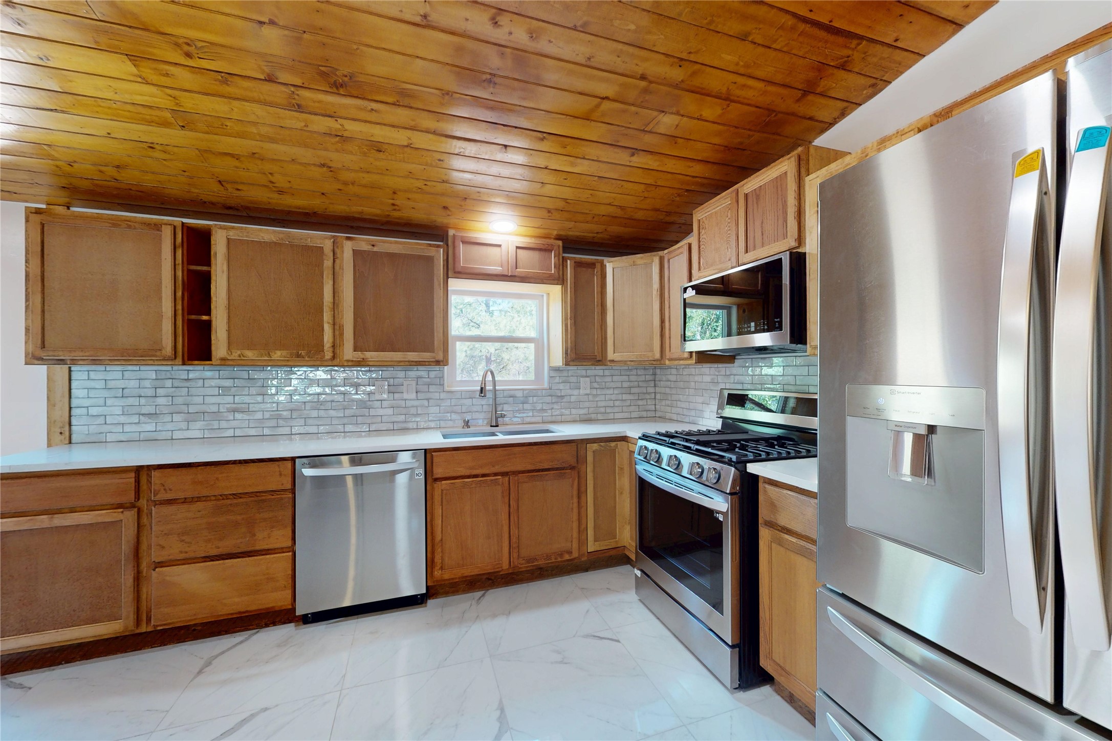 Nestled in the serene beauty of Pecos, New Mexico, this one-of-a-kind property offers endless possibilities on 2.02 acres spanning two lots. Surrounded by lush, mature green trees, the main home features four spacious bedrooms and two bathrooms, providing comfort and functionality. A one-car garage adds convenience, while the additional lot includes a hookup for a manufactured home, making it ideal for extended family, guests, or investment potential. Enjoy the peaceful charm of nature with ample room to expand, garden, or simply relax in the tranquility of this unique setting. The entire home was thoughtfully remodeled in 2023 and a 600sqft sunroom, not included in the square footage, was also added. A rare opportunity to own a versatile property in a beautiful location!