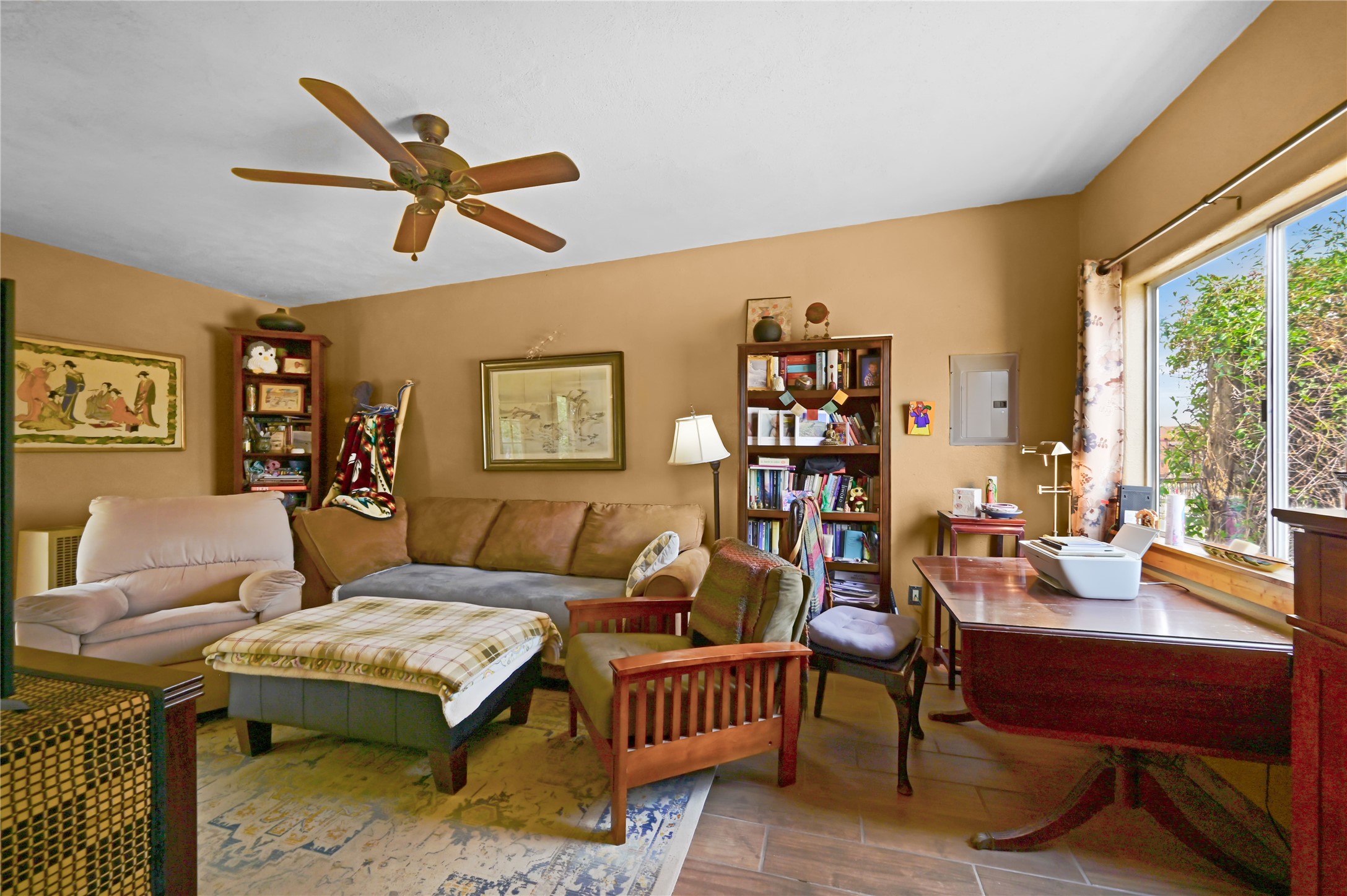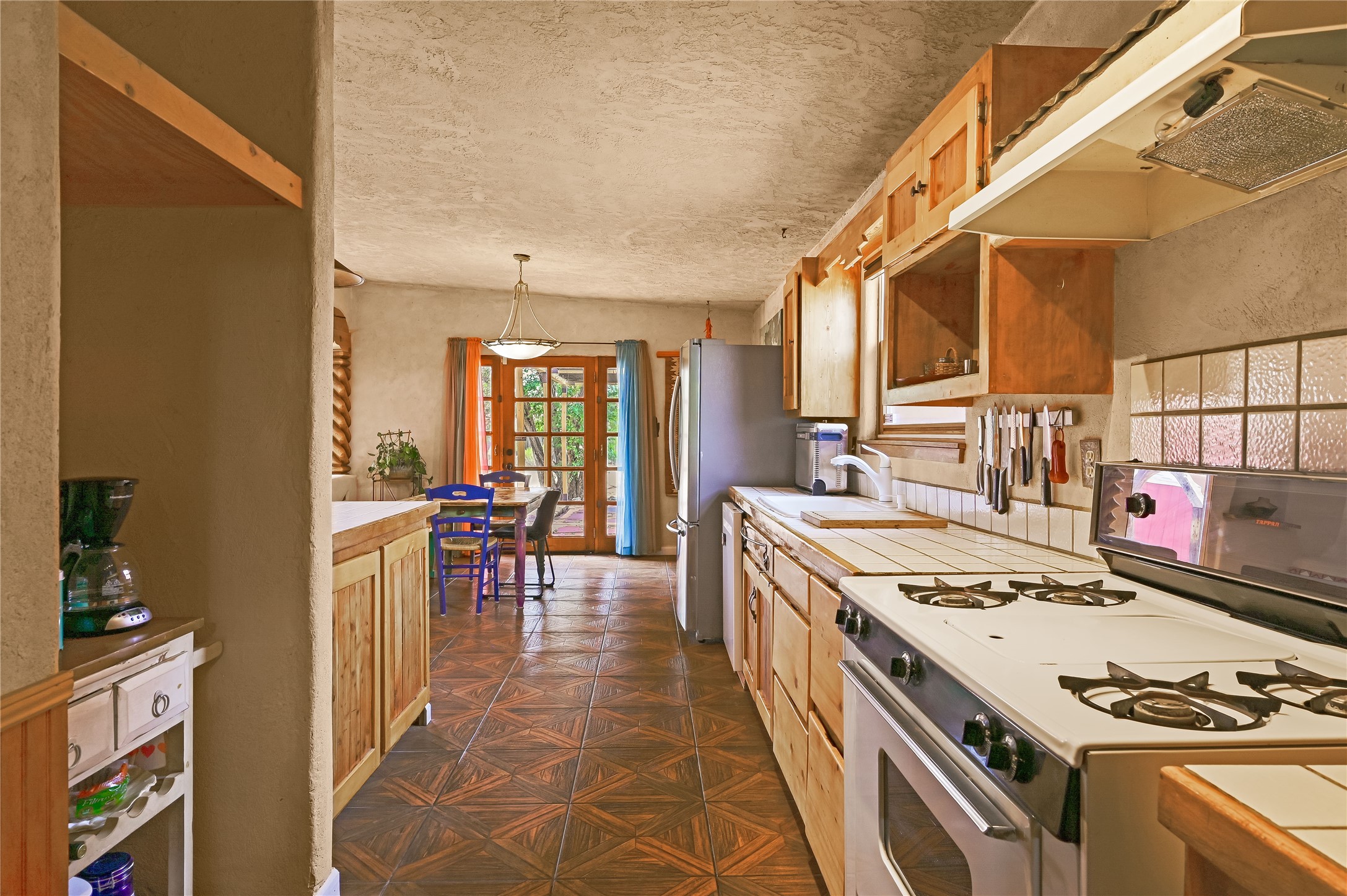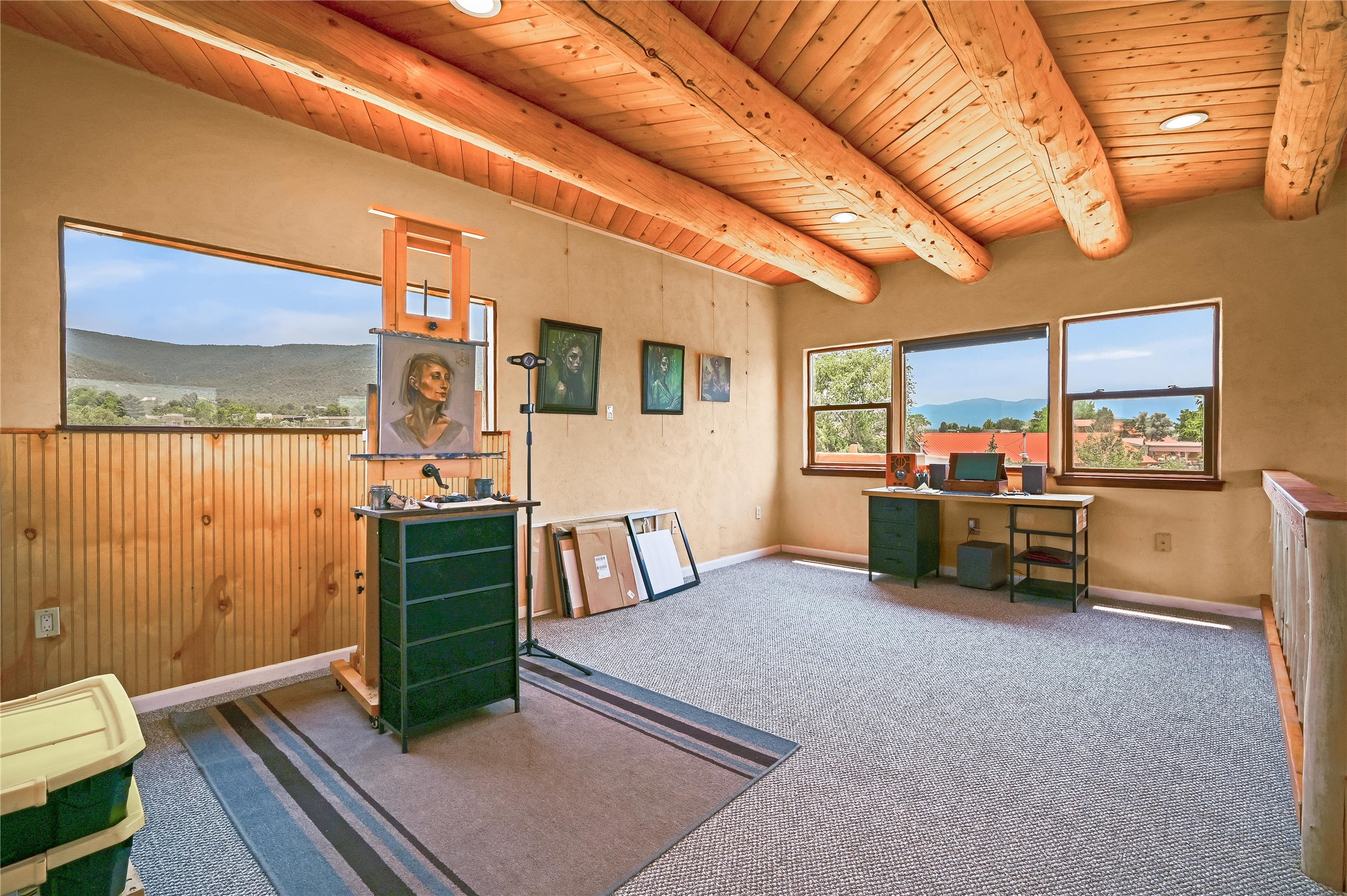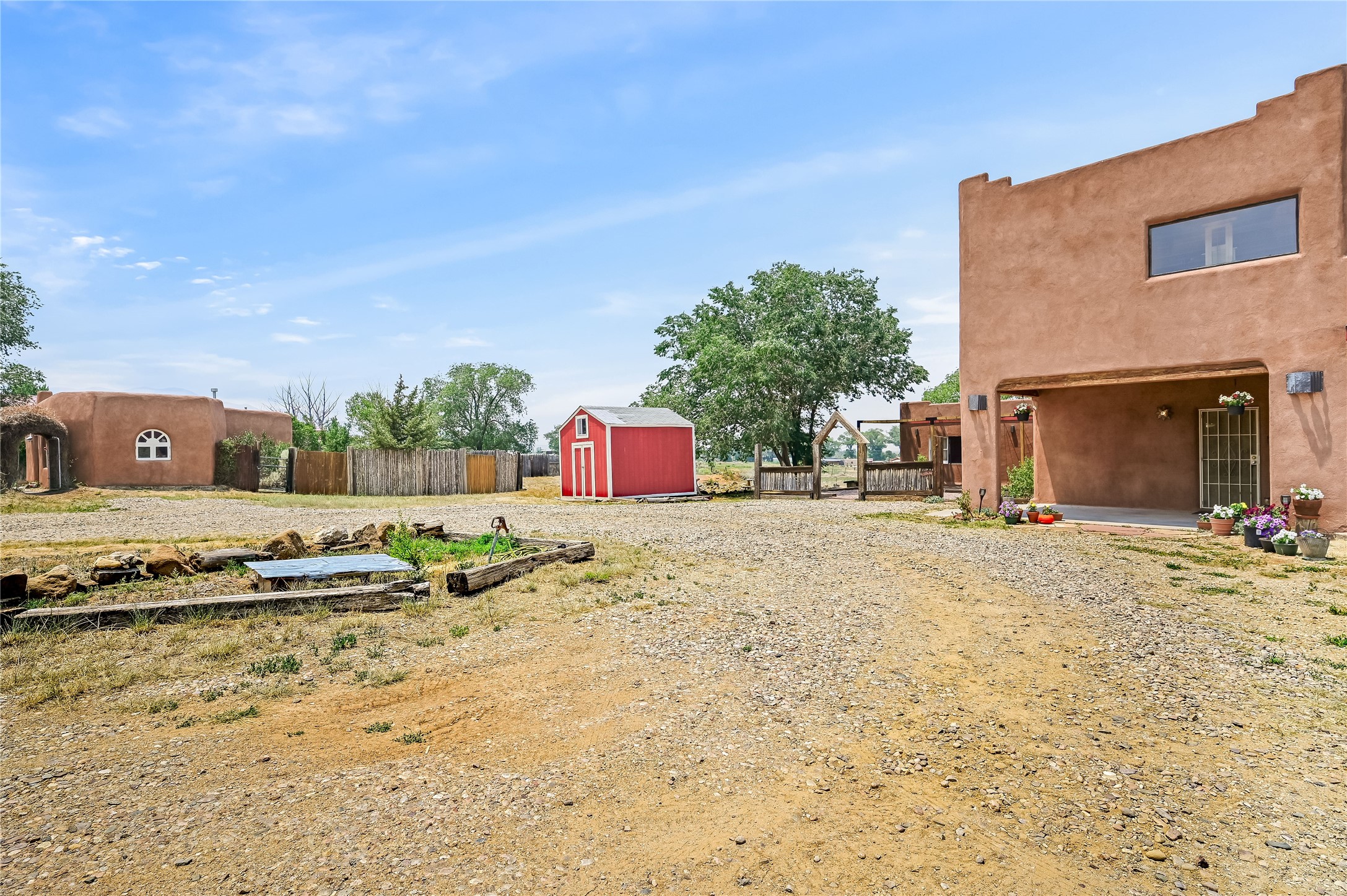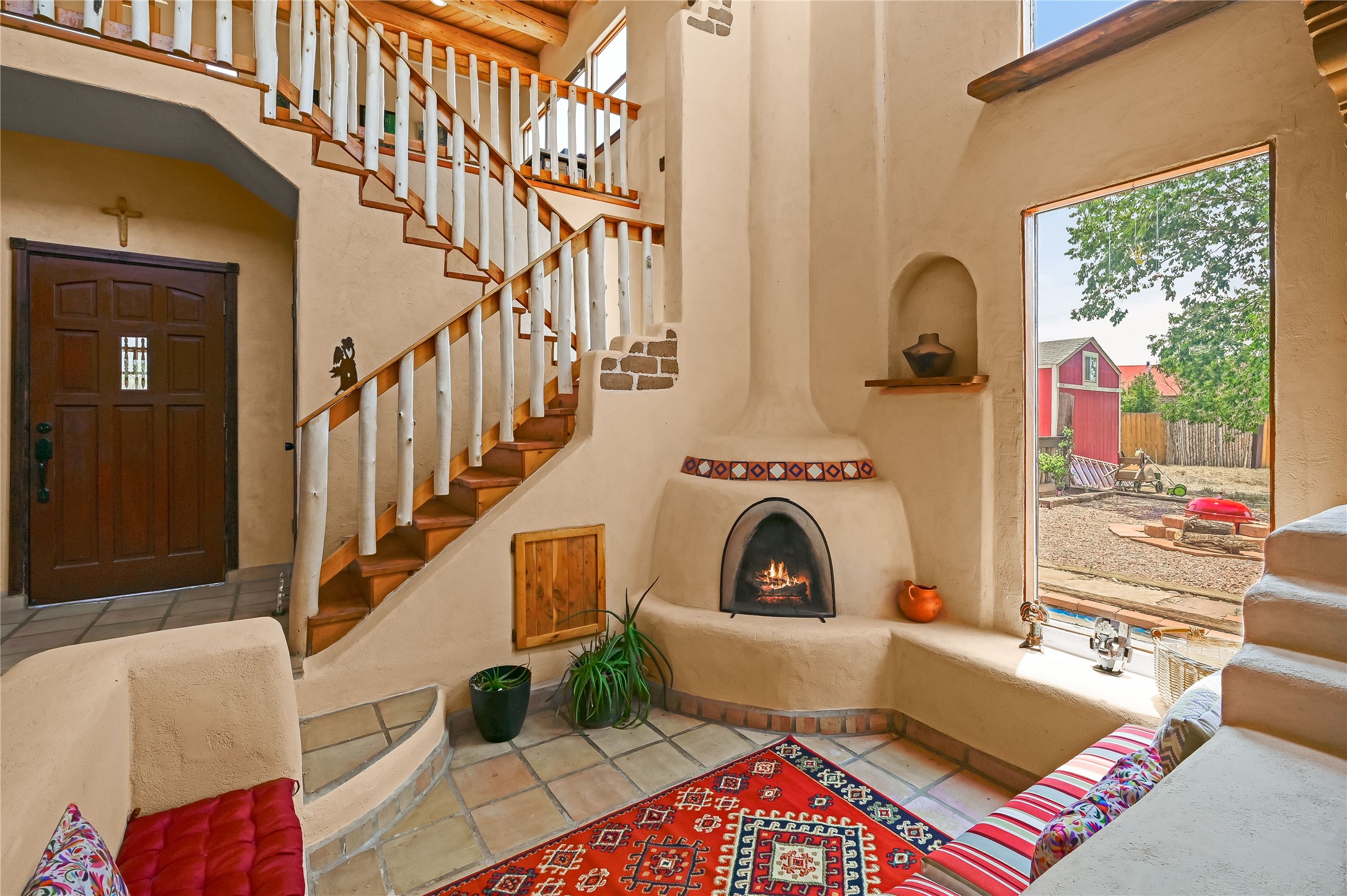 Discover a Unique Taos Living and Investment Opportunity! Nestled in Ranchos de Taos, just outside town limits, this exceptional property offers a serene lifestyle combined with a positive, steady rental income. You'll be living in a peaceful neighborhood, yet just 4 miles from Taos Plaza, a half-mile from Holy Cross Hospital, and moments from the Weimer Foothills trails. This unique offering includes four total units. The owner-occupied main home features an open living, dining, and kitchen area with clerestory windows and a loft. The cozy kiva fireplace, a two-story chimney before a sunken living area, was crafted by renowned artisan Carmen Velarde and inspired by the iconic Taos Inn. Enjoy abundant natural light and an upstairs loft/studio with a large second-story viewing deck offering breathtaking mountain views, including Taos Mountain, and stretching all the way to Colorado - perfect for watching spectacular sunsets and stargazing. The main home was beautifully remodeled in 2018 , with upgraded bathroom, kitchen flooring, and cabinets, and the outdoor area was enhanced in 2023. Beyond the main residence, you'll find an extended owner's suite that has been partitioned as a studio rental, a separate 1-bedroom, 1 bath-room guest house, and a truly special adobe studio/chapel. This studio, a replica of a church chancel, was originally built for artist Fr. William Hart McNichols by master adobe builder Trini Velarde. Constructed with traditional adobes, mud floors, and vigas painted with natural plant dyes, this studio remains cool in summer and remarkably warm in winter. This is more than just a home; it's an incredible investment opportunity to own a piece of Taos's rich artistic and building heritage with established rental income.