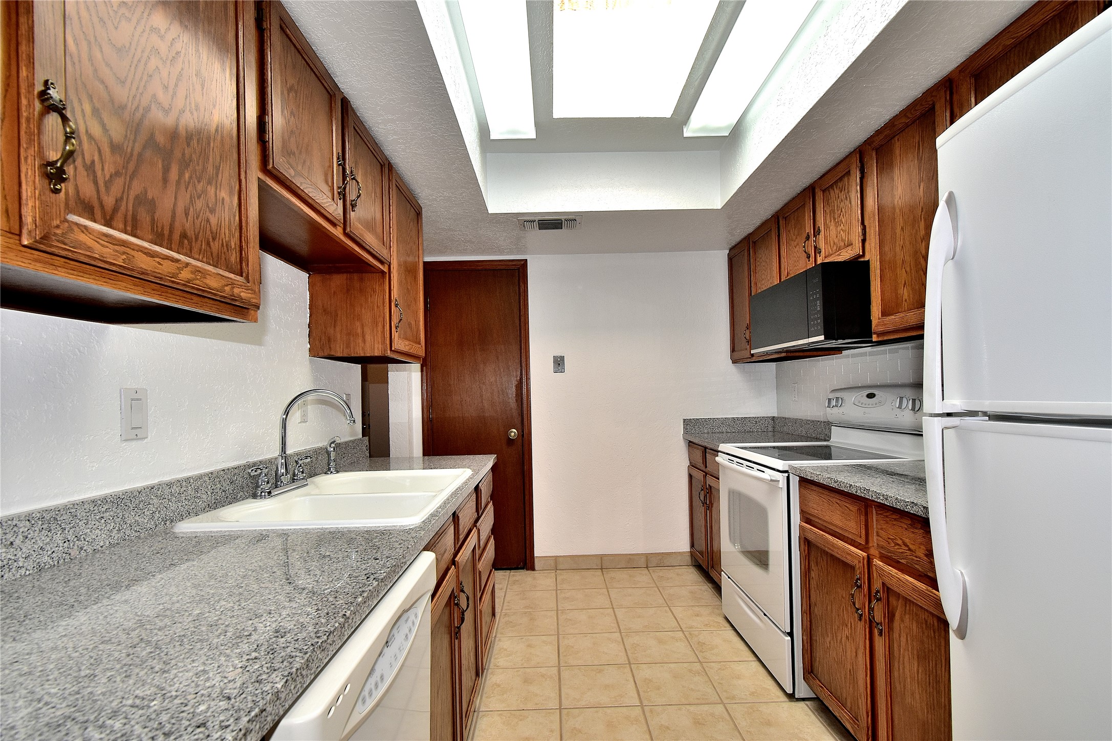 PRICE REDUCED AGAIN! NOW 425K. Beautiful, updated, light and bright and freshly painted home in Pueblo de Rodeo Rd. This single level home offers 3 bedrooms, 2 bathrooms and a 1-car garage with a spacious double driveway providing ample parking. An enclosed front entry courtyard welcomes you into the home. The galley kitchen features granite countertops, tile backsplash, pantry and new microwave in 2025. The backyard is private and offers a covered porch with flagstone and a large shed. Lovely features and amenities include: Newer windows-Remote Hunter Douglas top/down blinds-TPO roof-Tile and carpet floors-New washer and dryer in 2025 including water filter/softener system-Ceiling fans-Walk-in closet in primary suite-Carpet in the bedrooms. Super sweet home not to be missed.
