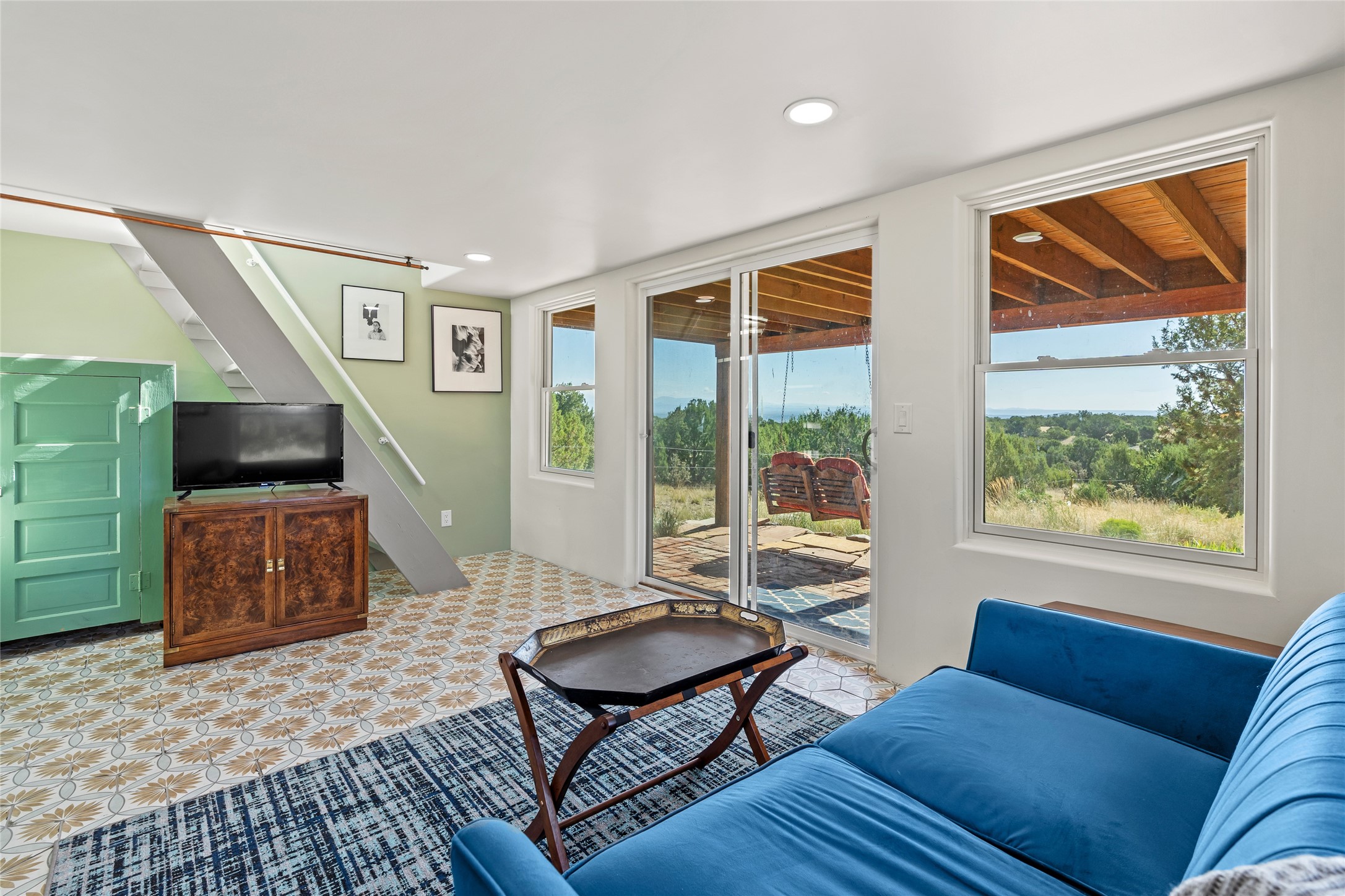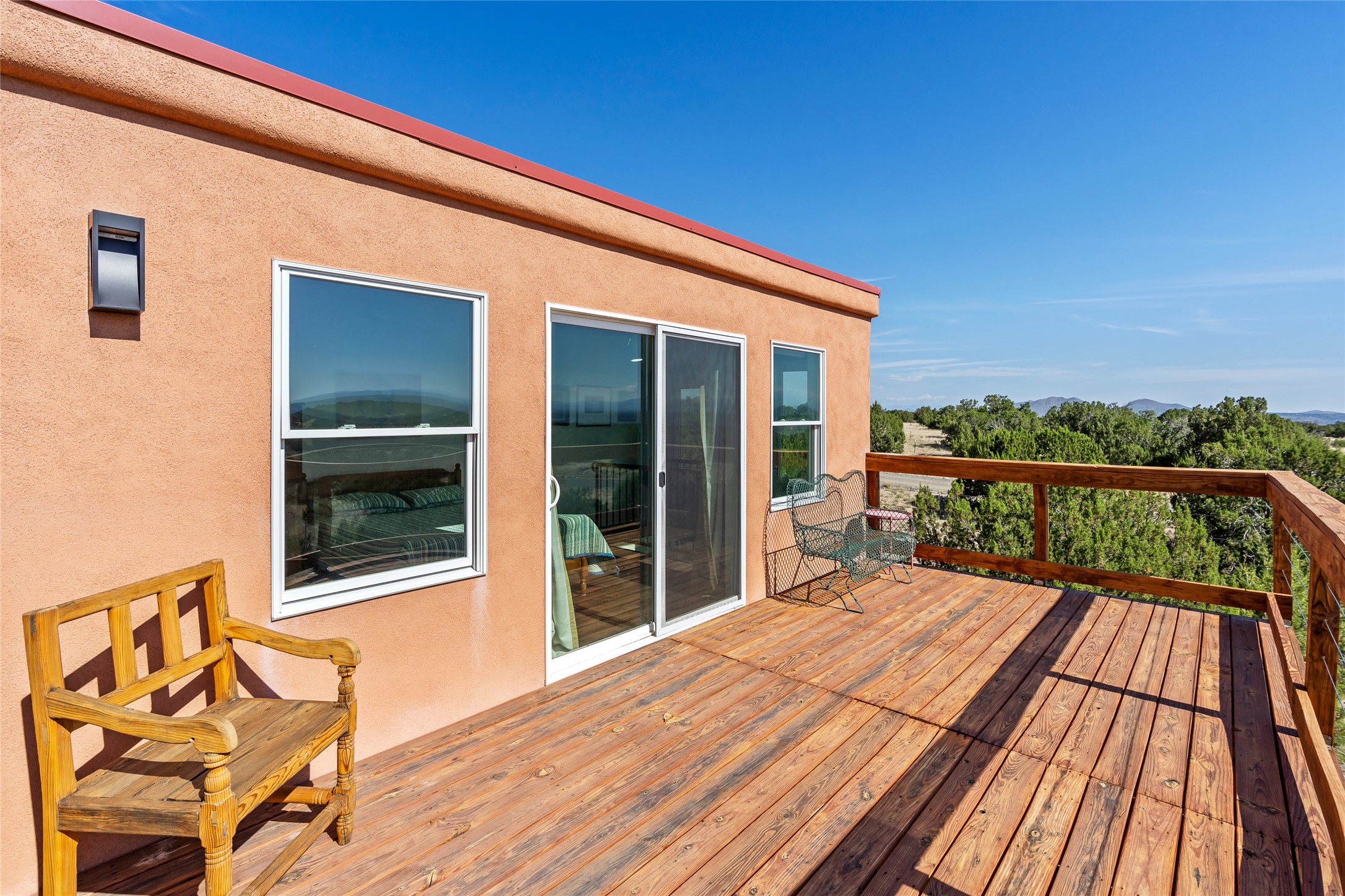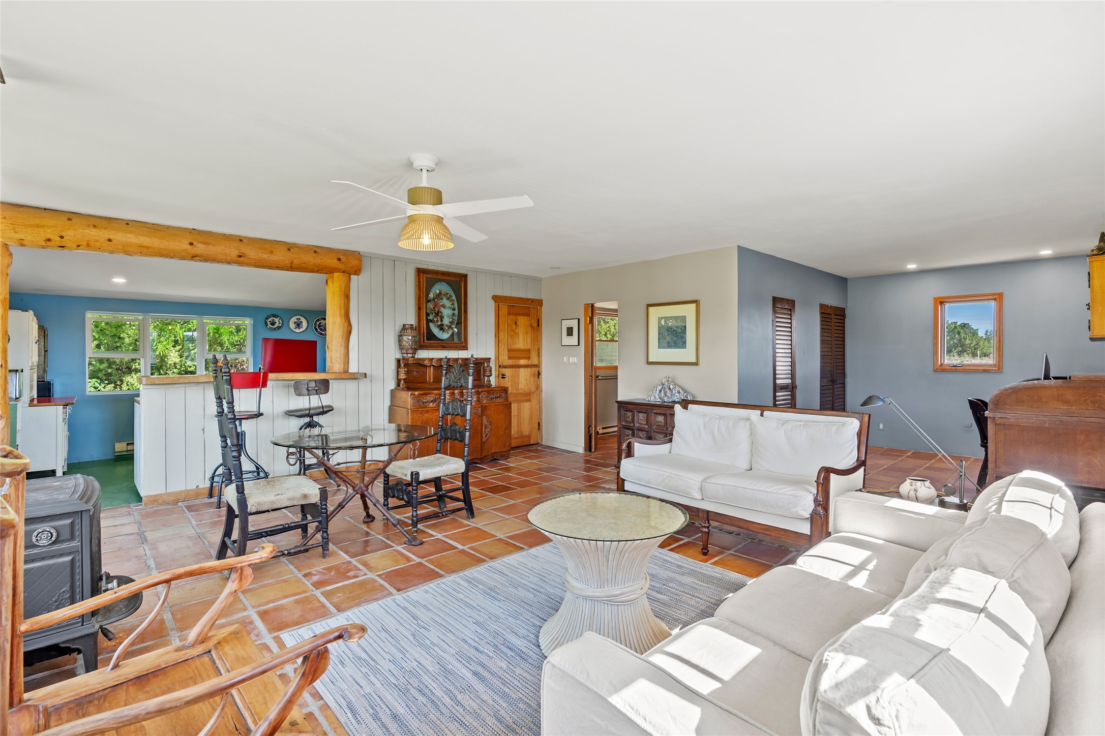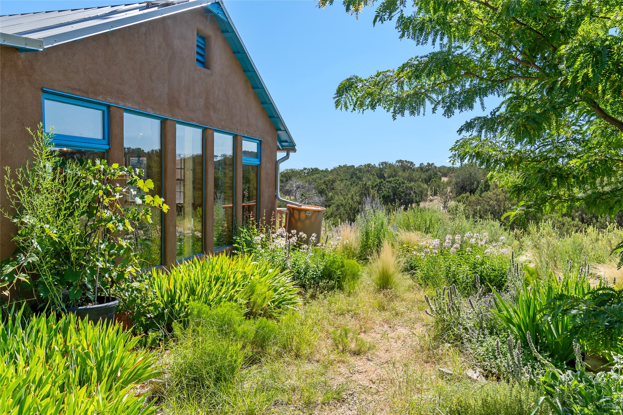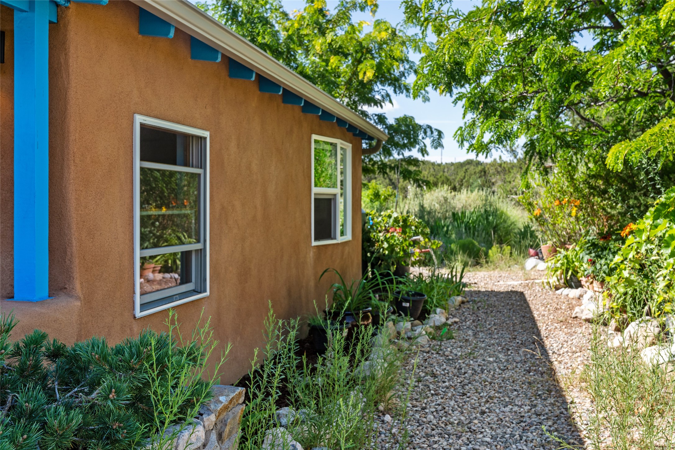 So much to offer! One bed, one bath home plus one bed, one bath detached studio on nearly 10 acres. This versatile property could function as a multi-generational home, produce rental income, or offer an excellent space for working artists, with end of the road privacy, excellent outdoor spaces, and mature gardens. This home has a private well and a grid-tied solar array and has extremely low utility builds. Lovingly cared for and updated, with Santa Fe style combined with modern touches, and significant recent work, including newly remodeled bathrooms and newer metal roofs. An upstairs deck off of the studio takes in impressive views, while the primary home is anchored in lush gardens.