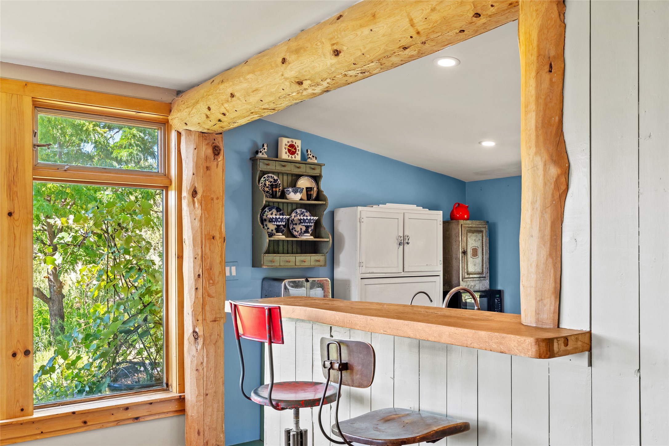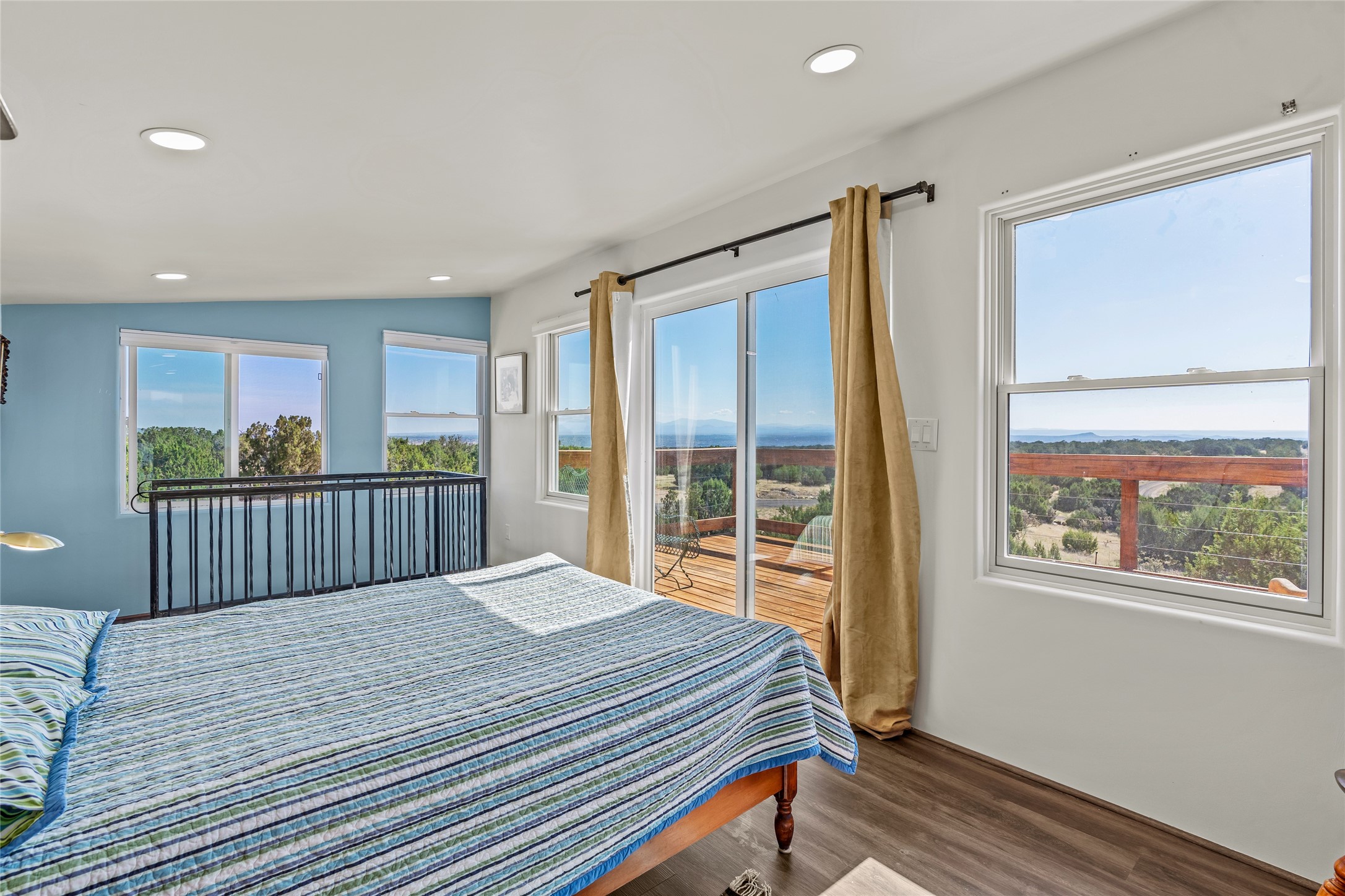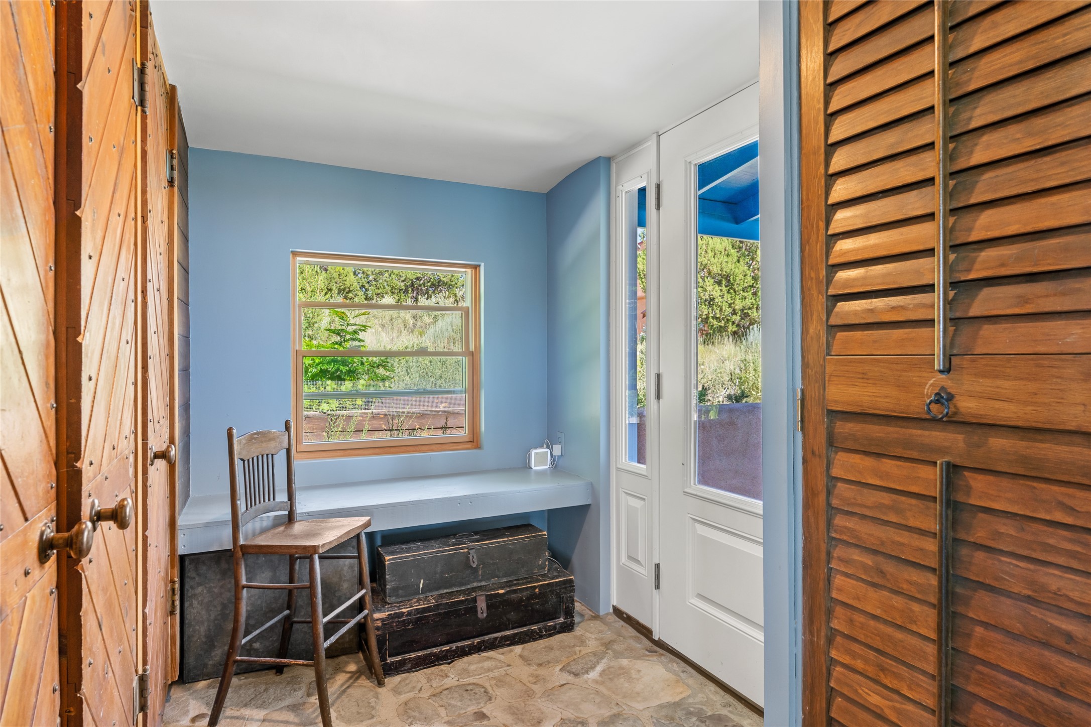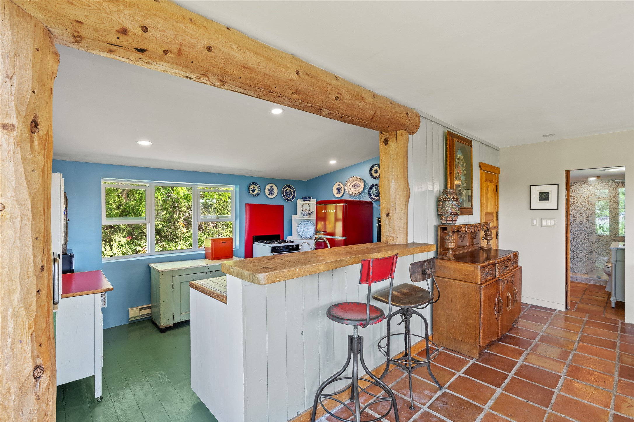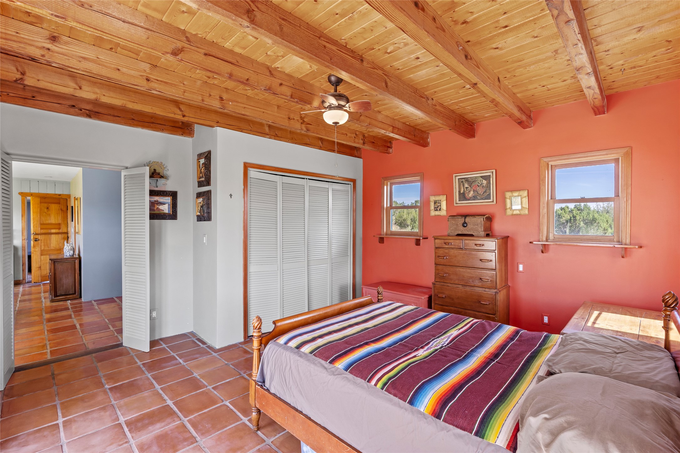 So much to offer! One bed, one bath home plus one bed, one bath detached studio on nearly 10 acres. This versatile property could function as a multi-generational home, produce rental income, or offer an excellent space for working artists, with end of the road privacy, excellent outdoor spaces, and mature gardens. This home has a private well and a grid-tied solar array and has extremely low utility builds. Lovingly cared for and updated, with Santa Fe style combined with modern touches, and significant recent work, including newly remodeled bathrooms and newer metal roofs. An upstairs deck off of the studio takes in impressive views, while the primary home is anchored in lush gardens.