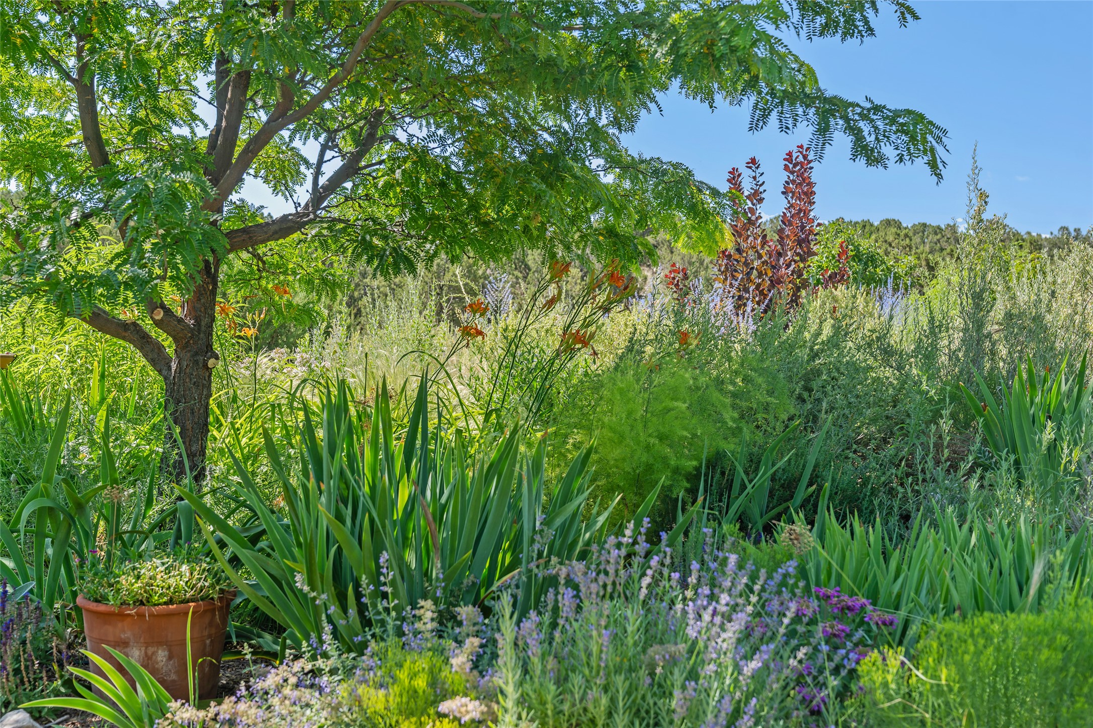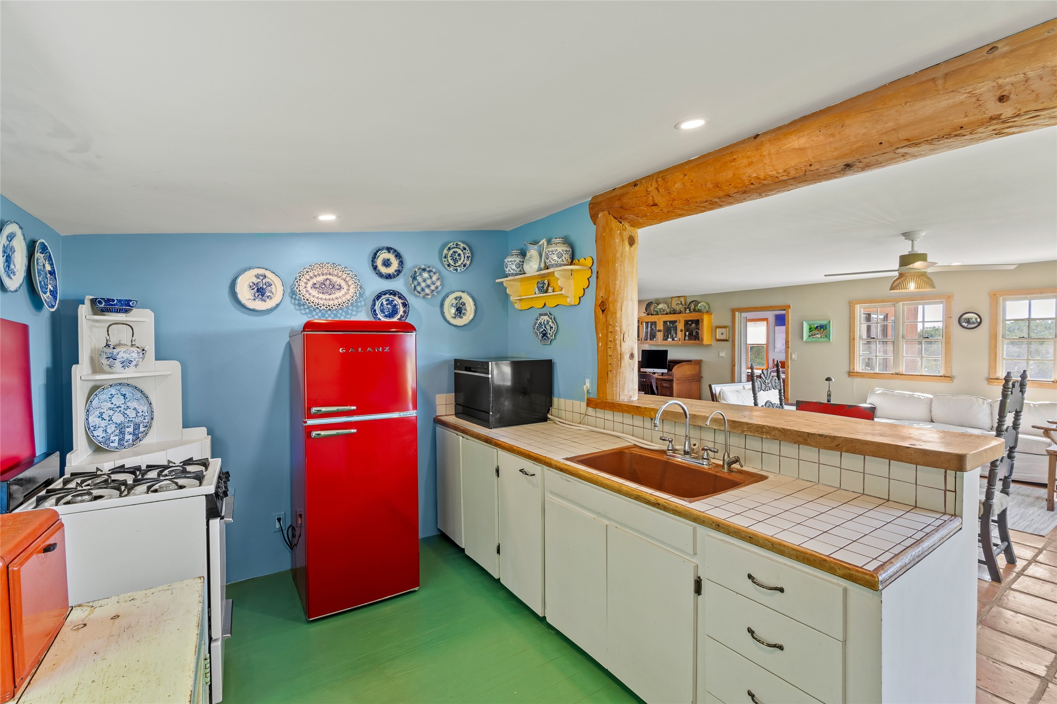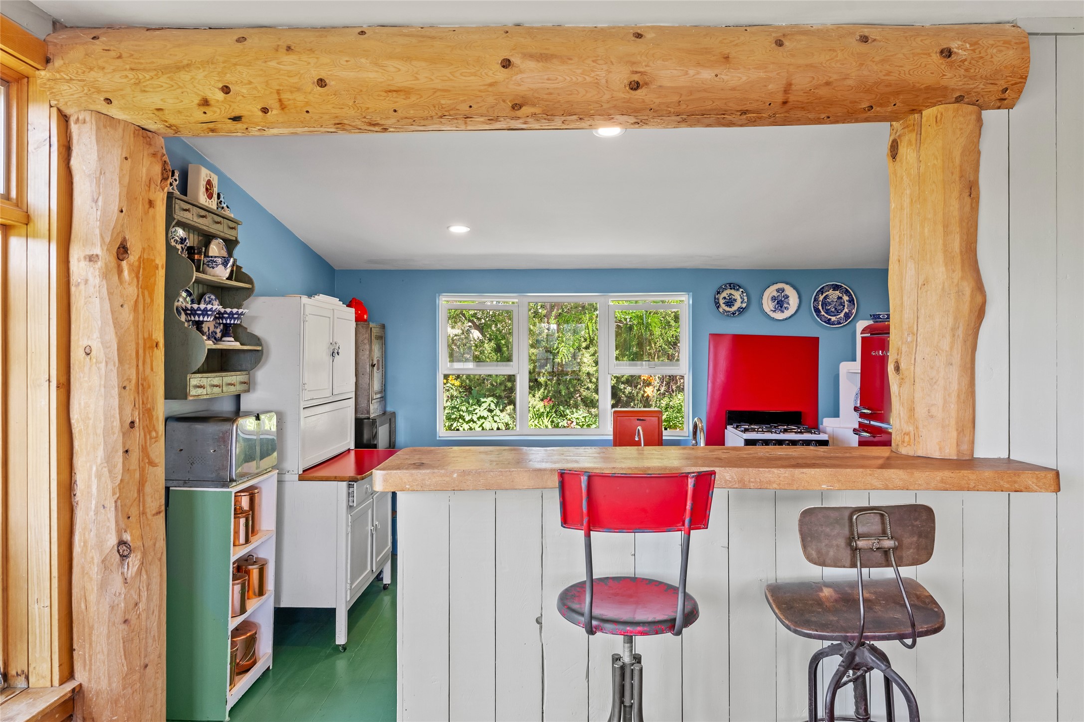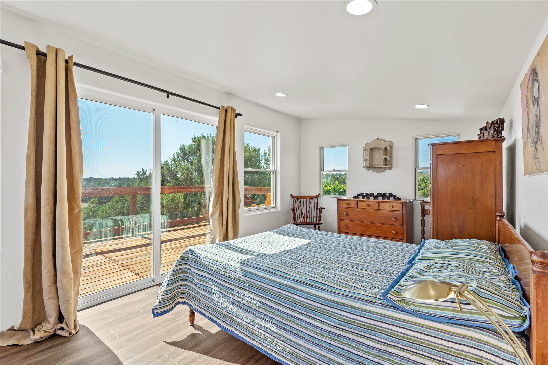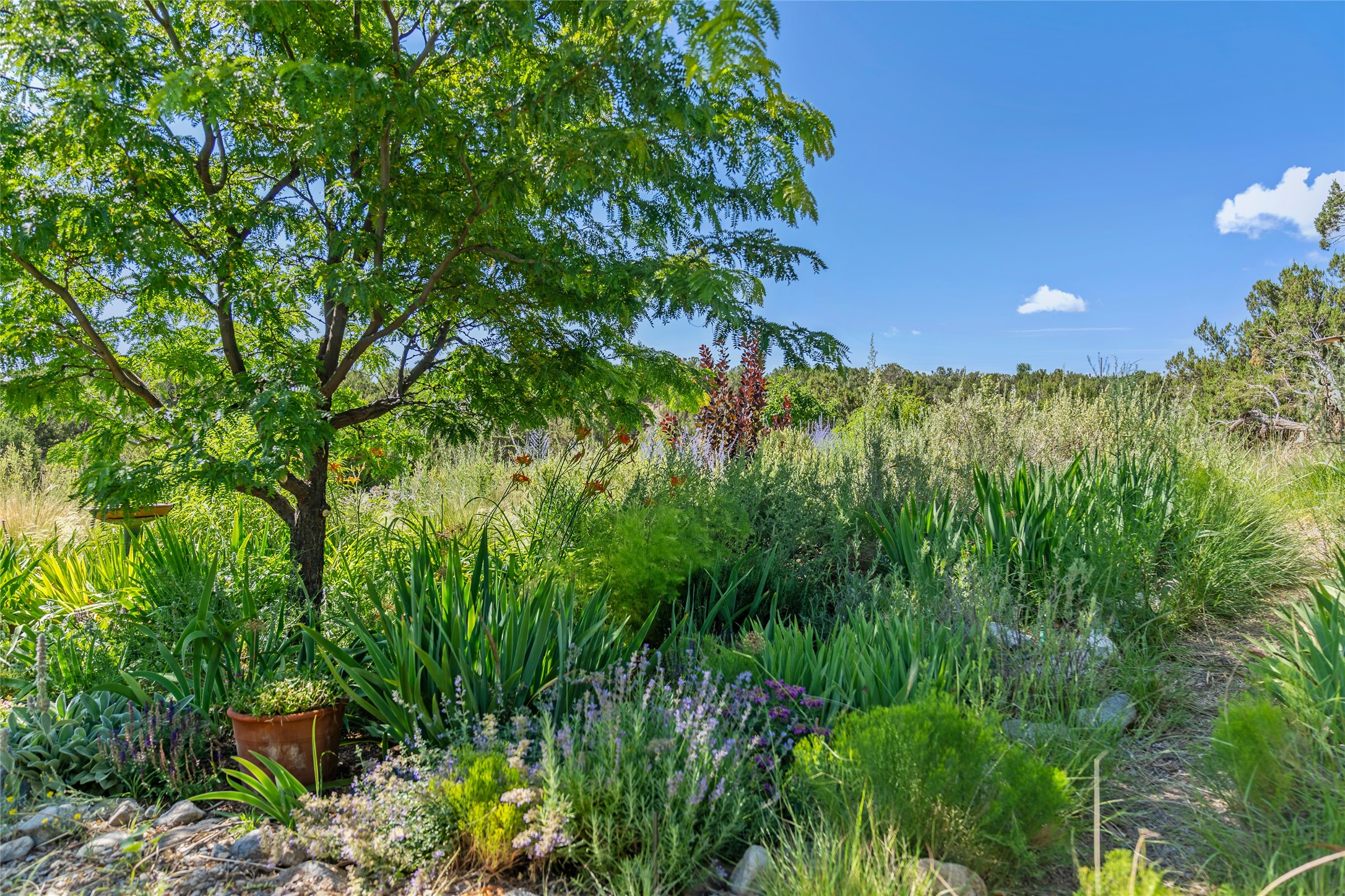 So much to offer! One bed, one bath home plus one bed, one bath detached studio on nearly 10 acres. This versatile property could function as a multi-generational home, produce rental income, or offer an excellent space for working artists, with end of the road privacy, excellent outdoor spaces, and mature gardens. This home has a private well and a grid-tied solar array and has extremely low utility builds. Lovingly cared for and updated, with Santa Fe style combined with modern touches, and significant recent work, including newly remodeled bathrooms and newer metal roofs. An upstairs deck off of the studio takes in impressive views, while the primary home is anchored in lush gardens.
