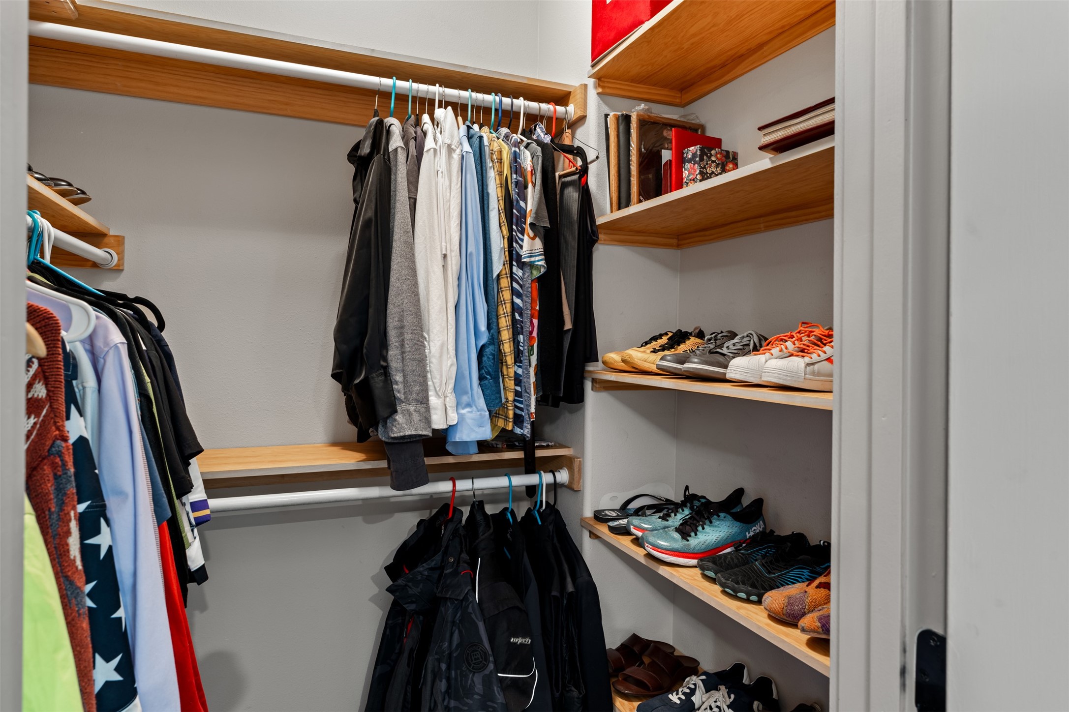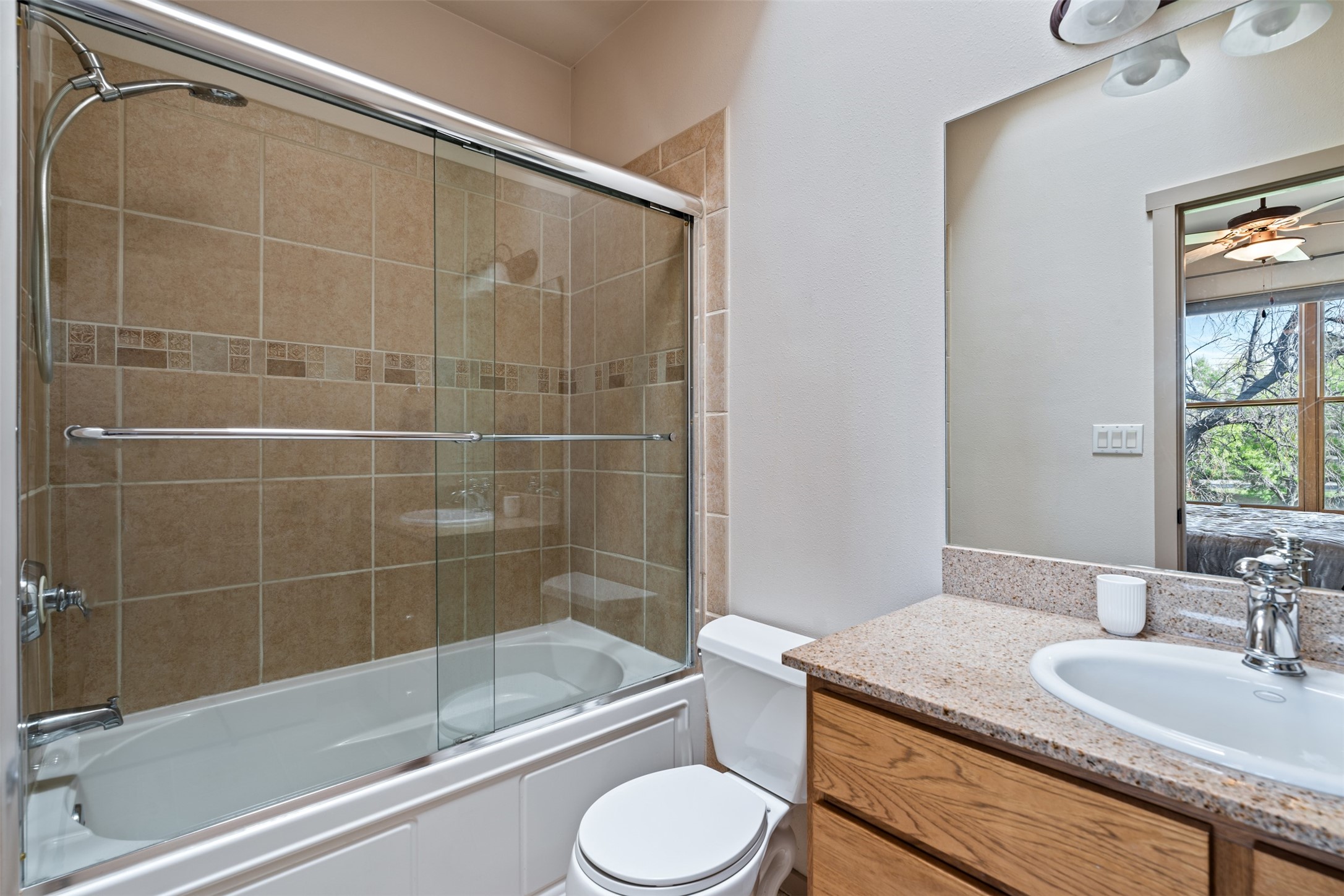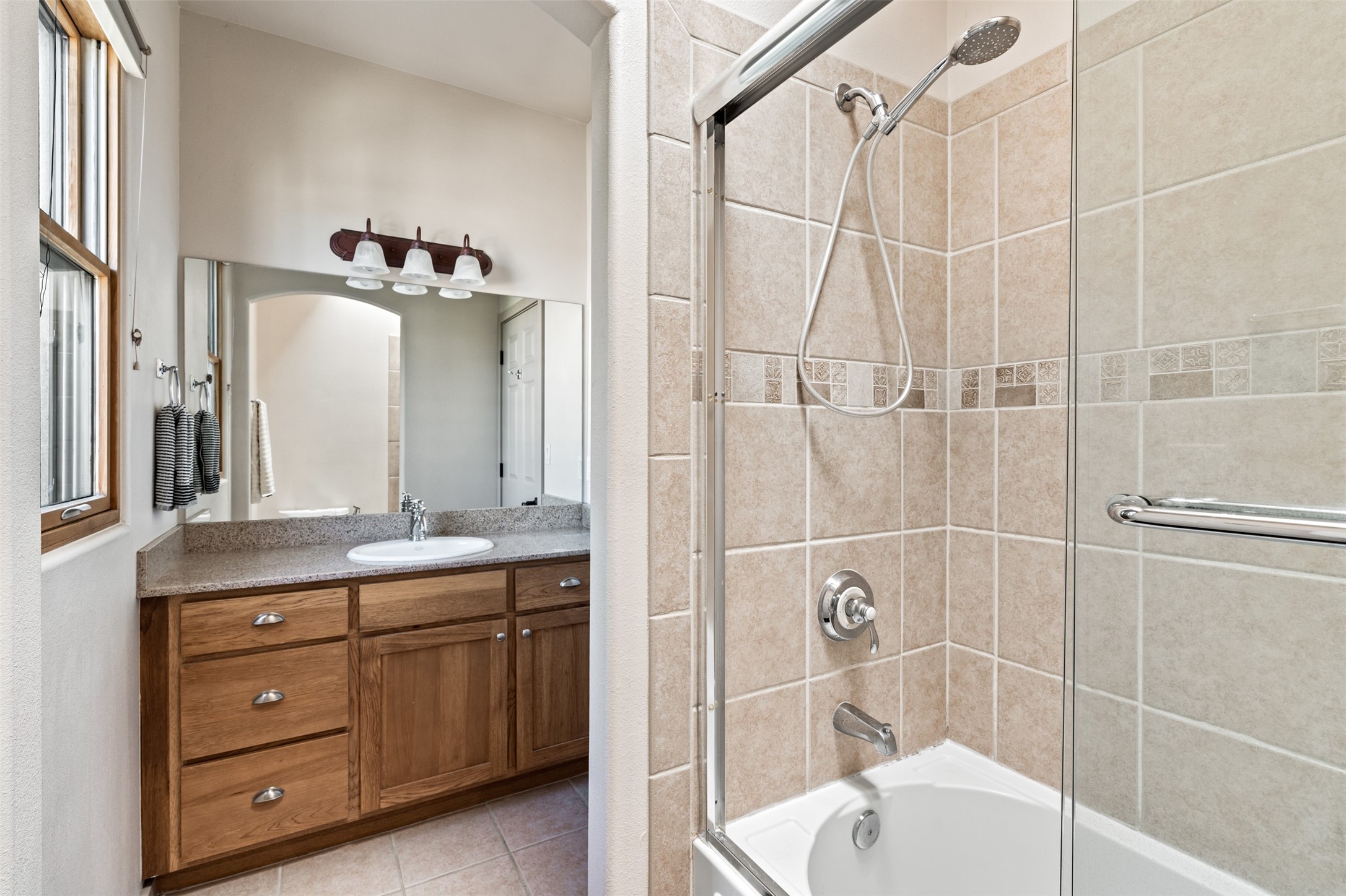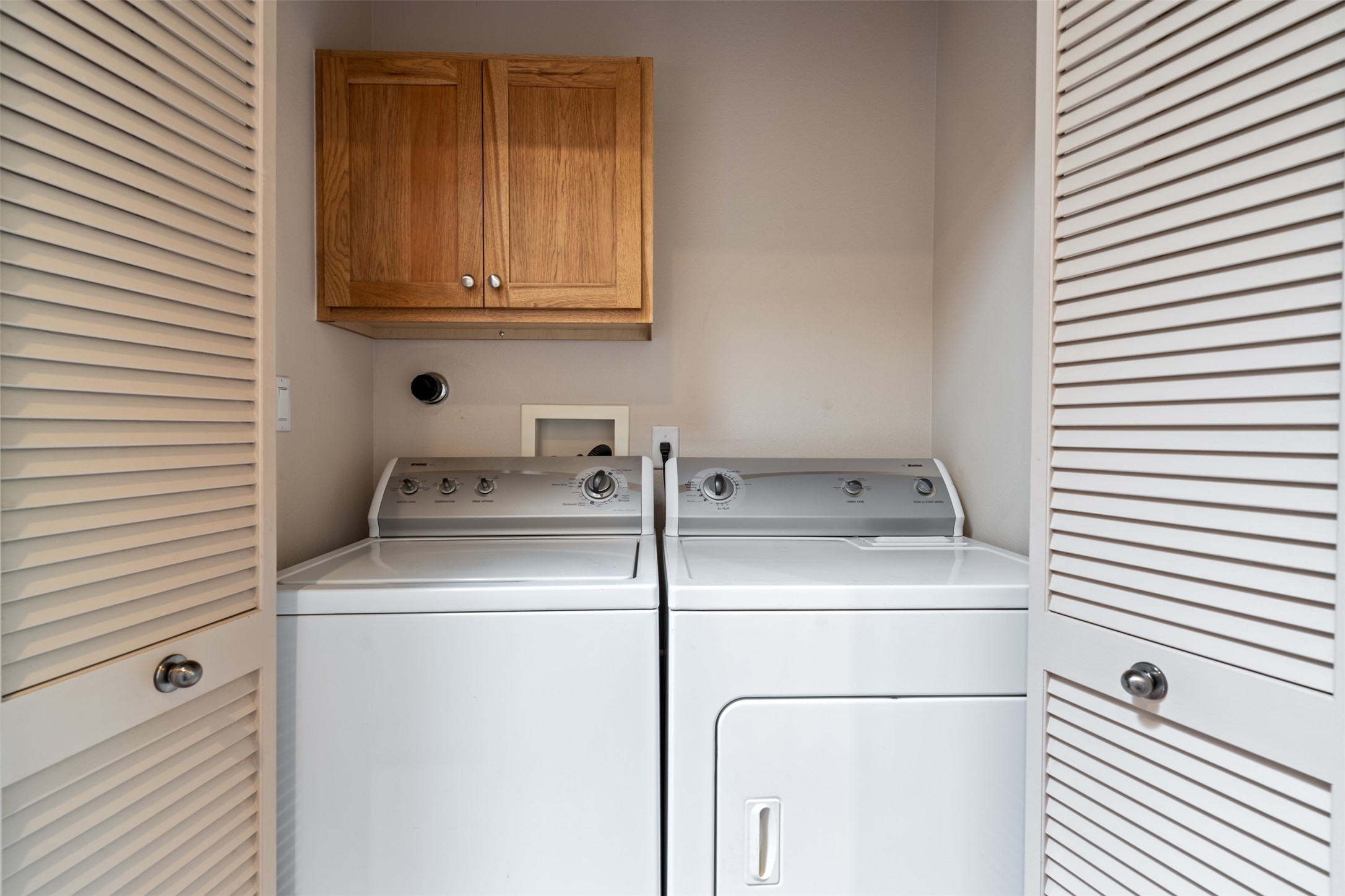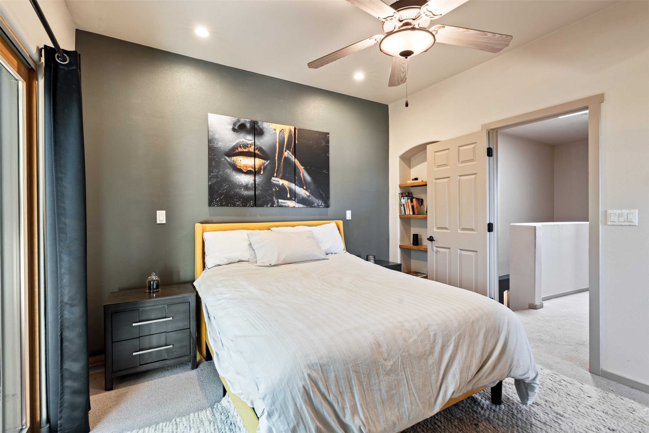 Enjoy the ease of Santa Fe living in this well-situated, bright two-story corner unit at the San Mateo de Santa Fe Condo Community--a gated, centrally located enclave just minutes from downtown, Trader Joe's, and the Lena Street arts and dining district. This 2-bed, 2.5-bath residence offers privacy, convenience, and access to premium amenities.Tucked along the quiet outer edge of the community, the home backs up to a tree-lined arroyo, offering a sense of privacy and a tranquil ambiance. Dedicated parking is directly outside the front door.Inside, the main level features tiled floors, vigas, a gas fireplace, and natural light throughout. The kitchen offers stone countertops, plentiful cabinet space, and a bright, efficient layout. A pass-through window opens to the dining area, bringing in additional light and maintaining connection between the living and cooking spaces. Just off the main living area is a convenient powder room for guests.Step outside to a spacious enclosed back patio, complete with a covered portal and wood decking. With a sense of privacy rarely found in a condo setting, this outdoor space is ideal for relaxing, dining, or letting pets roam safely.Upstairs, the primary suite includes a walk-in closet, full ensuite bath, and a private balcony overlooking the greenbelt--an ideal spot to enjoy your morning coffee or watch the seasons change. The second bedroom also features a walk-in closet and a full ensuite bath. A laundry room is located in the hallway between the bedrooms, offering added convenience.Residents of the San Mateo de Santa Fe Community enjoy access to a seasonal swimming pool, well-equipped fitness studio, and ample guest parking. This professionally managed, pet-friendly community offers a carefree lifestyle with close proximity to shopping, healthcare, and restaurants--ideal for full-time residents or part-time Santa Fe dwellers seeking a lock-and-leave option.