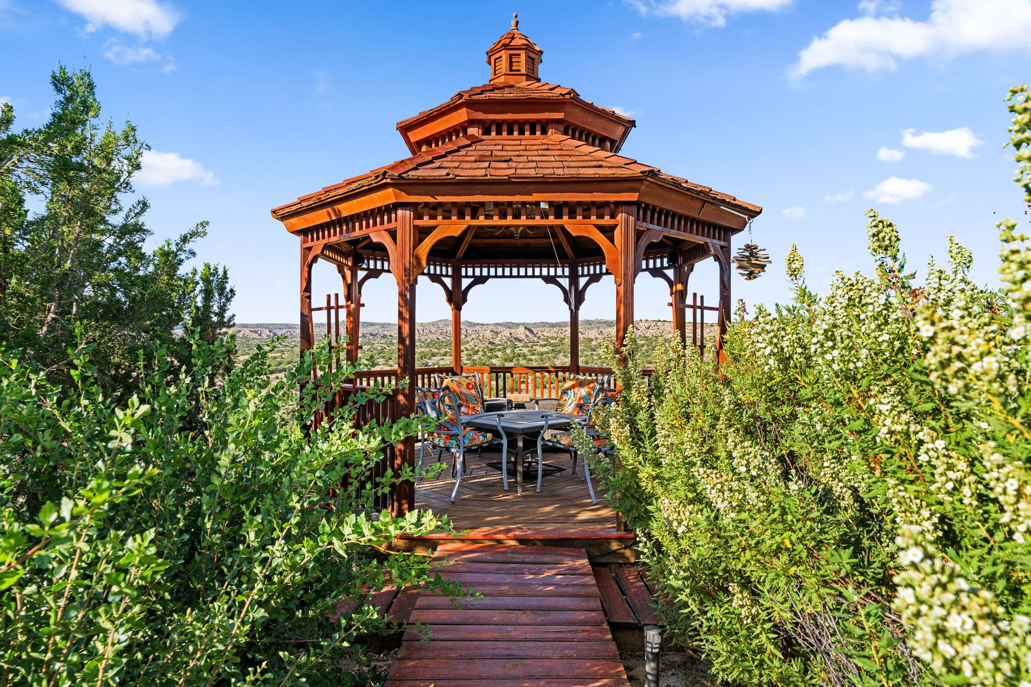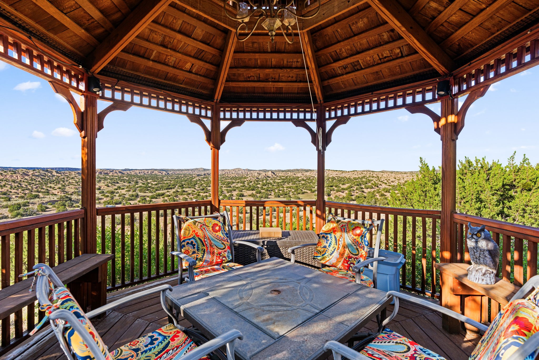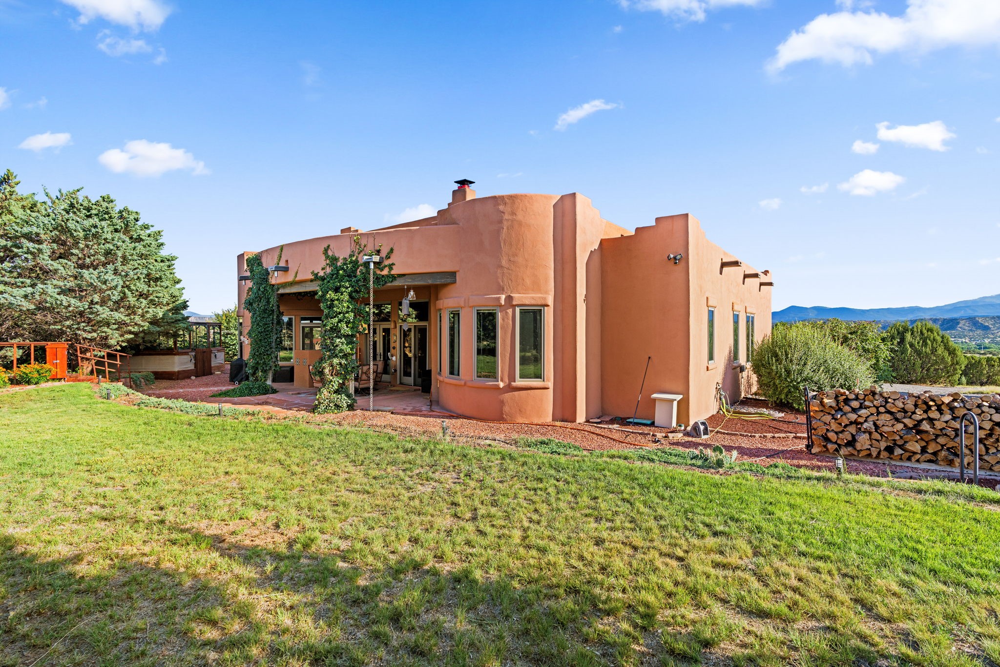 Perched Above It All | 53 Private Drive, Medanales, NMSet atop a quiet mesa with nearly 360 views of Northern New Mexico's iconic landscape, this soulful 3-bedroom, 2-bath Southwestern retreat rests on just under 9 acres of open sky and timeless beauty.Inside, the home blends rustic charm with clean comfort--Santa Fe-style smooth plaster walls, exposed wood beams, classic tile floors, and warm light moving through every space. With 2,295 square feet, the layout feels open and thoughtful, and a detached studio offers the perfect setup for remote work, a creative retreat, or private guest quarters. High-speed internet and refrigerated air ensure you're both off the grid and on the grid.From the front portal, the views stretch endlessly--from the Rio Chama Valley to the jagged outline of Cerro Pedernal, the mountain Georgia O'Keeffe painted again and again. There's a reason artists, writers, and seekers have long been drawn to this land--it stirs something deep.Whether you're sipping coffee at sunrise under your gazebo, sketching the shifting light, or heading out for a day trip to Abiquiu Lake, Ghost Ranch, or Ojo Caliente, life here moves slower, feels fuller, and breathes easier. Santa Fe is just 55 minutes away, Los Alamos about 45, and Taos a scenic 75-minute drive--putting world-class art, culture, and dining within easy reach.This isn't just a home--it's a place to live inspired.