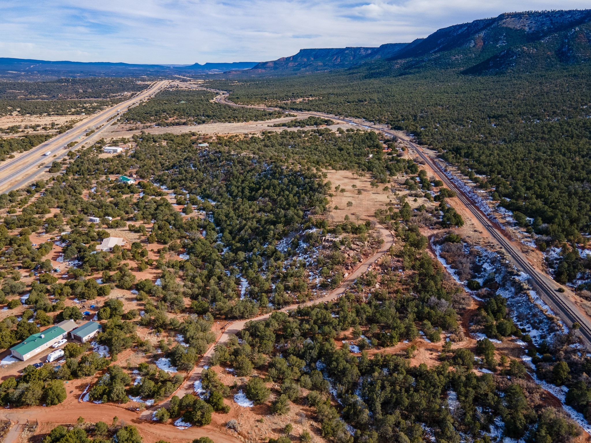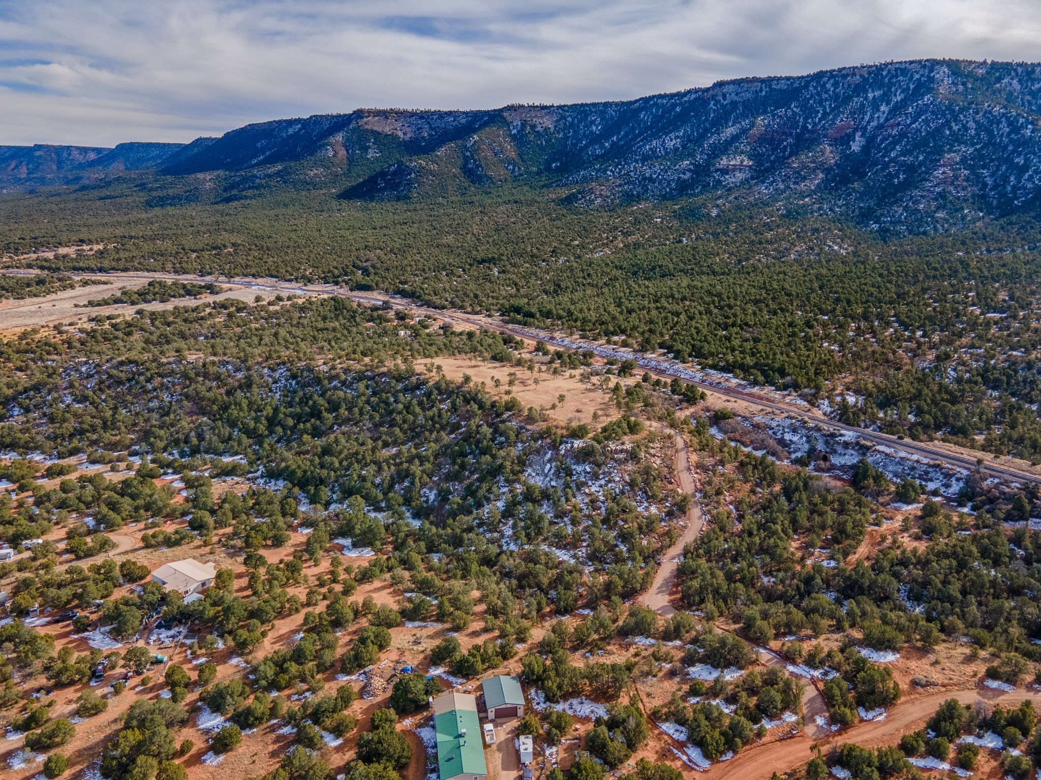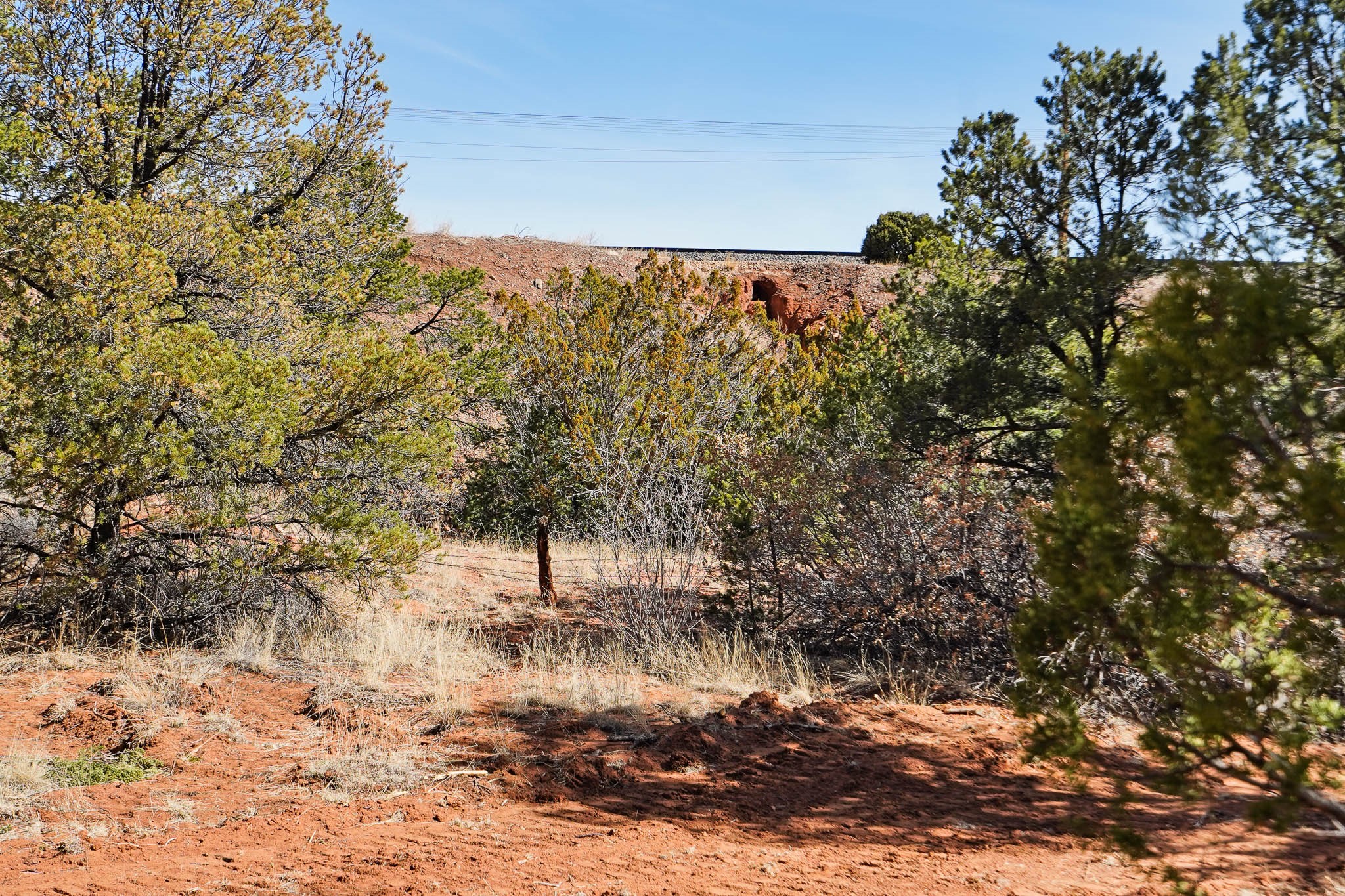 Two great lots being sold together located halfway between Santa Fe and Las Vegas backing up to Santa Fe National Forest land with views and lots of potential. Lots are a total of approximately 58.79 acres with 3.5 acres fenced with barbed wire. The property contains many unique features: caves that, based on folklore, may have been Tewa Indian dwellings, a man-made lake that is beginning to fill with rainwater and attract wildlife, and an 8ft x 8ft historic 1927 tunnel from the front lot to the back lot under the railroad tracks. Electric is underground to the lot line. Well and septic are both needed. Newly created access road comes from Monte Ver off the Frontage Road 2116. Horses allowed.