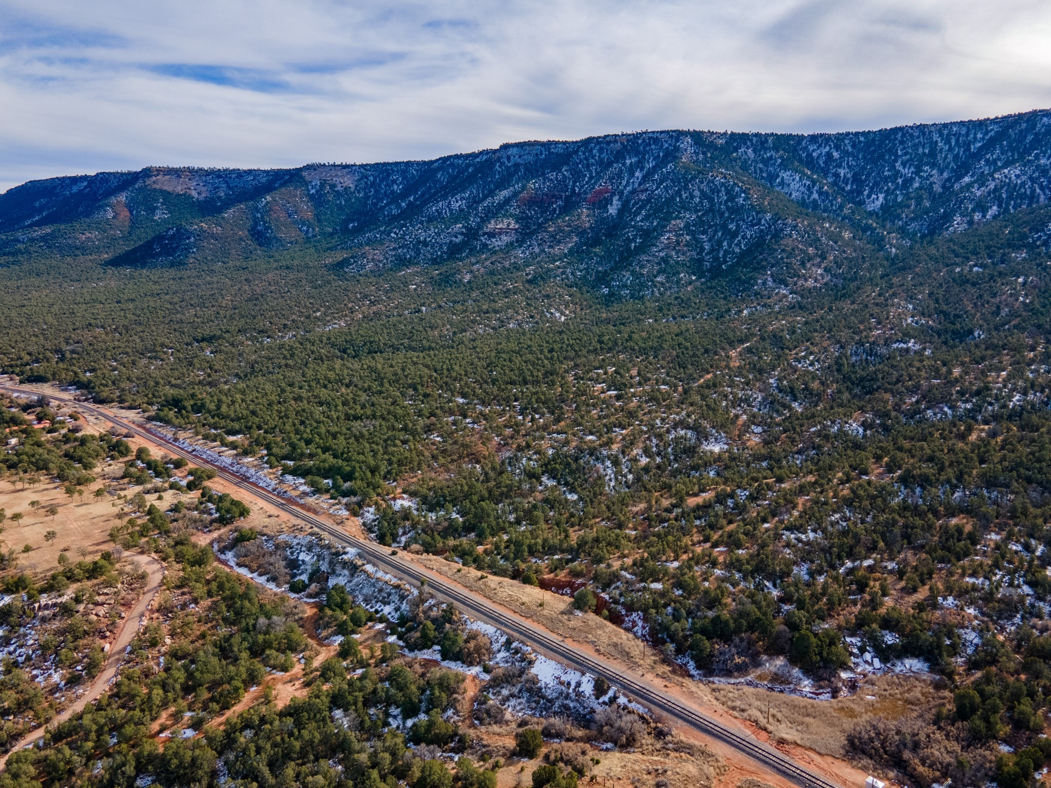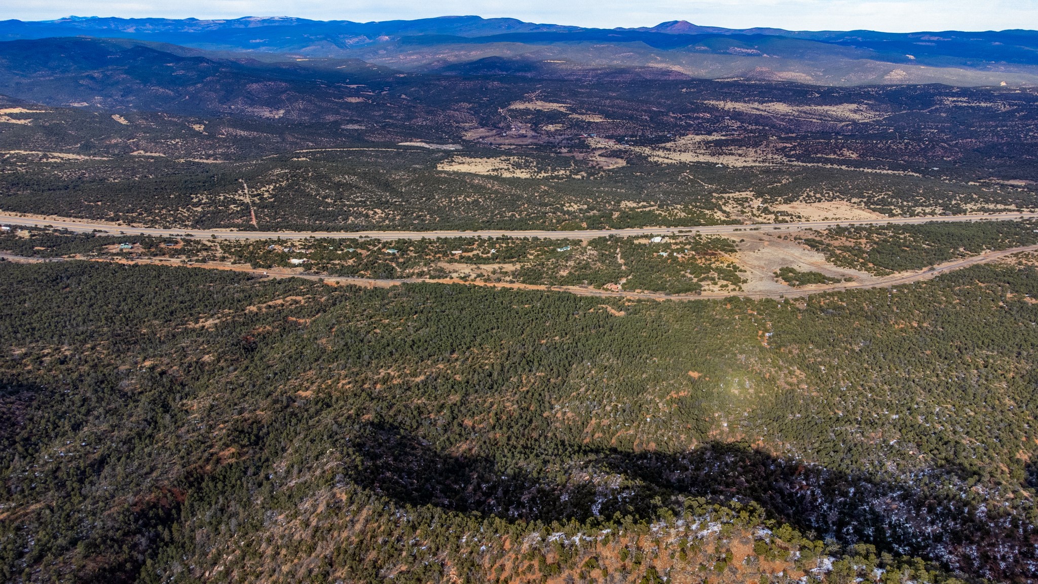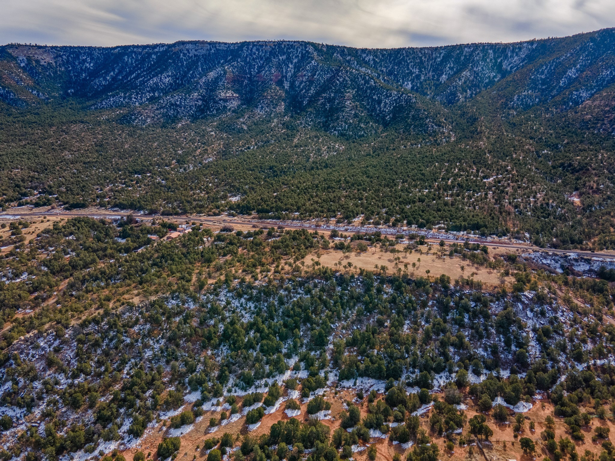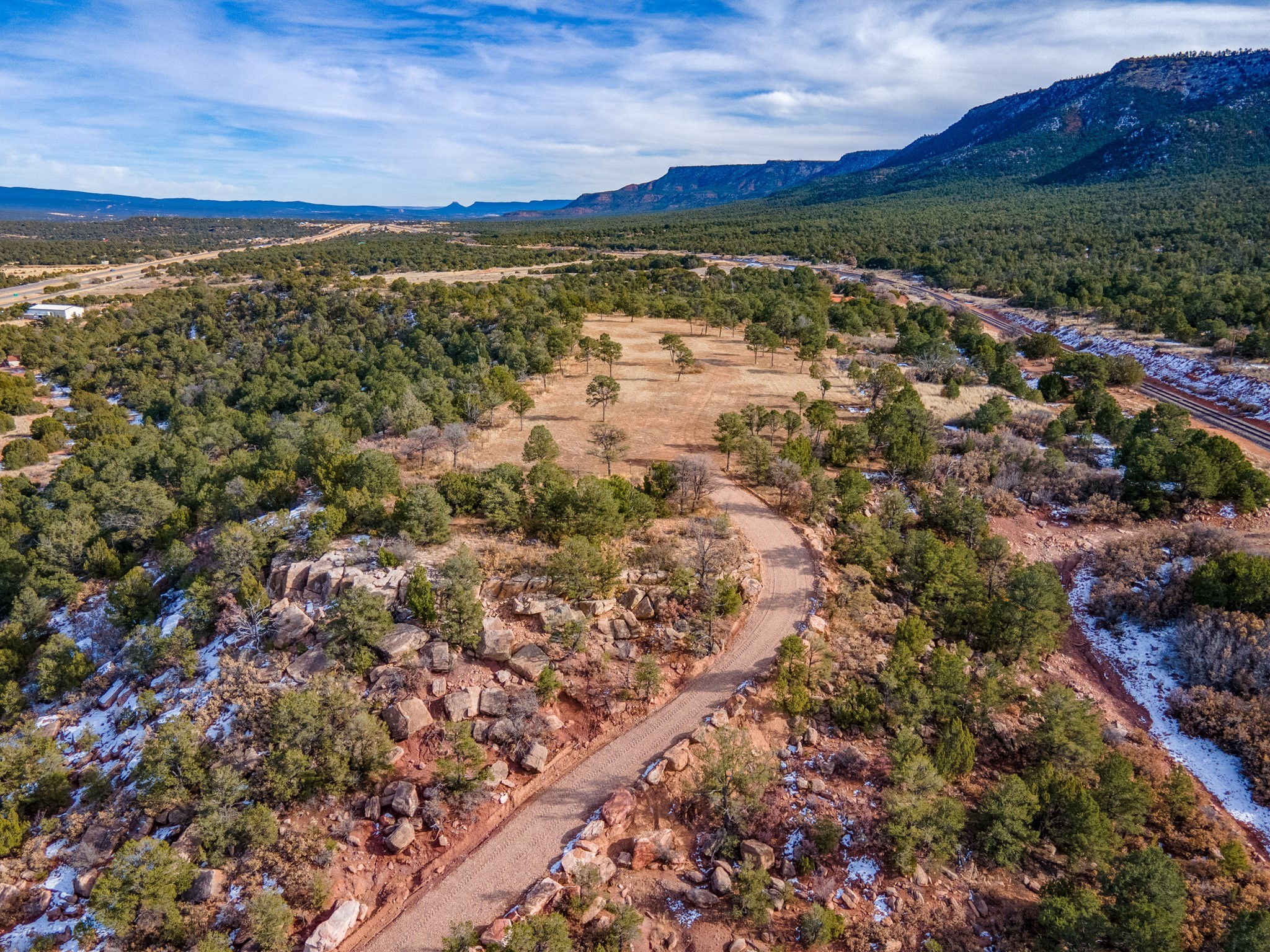 Two great lots being sold together located halfway between Santa Fe and Las Vegas backing up to Santa Fe National Forest land with views and lots of potential. Lots are a total of approximately 58.79 acres with 3.5 acres fenced with barbed wire. The property contains many unique features: caves that, based on folklore, may have been Tewa Indian dwellings, a man-made lake that is beginning to fill with rainwater and attract wildlife, and an 8ft x 8ft historic 1927 tunnel from the front lot to the back lot under the railroad tracks. Electric is underground to the lot line. Well and septic are both needed. Newly created access road comes from Monte Ver off the Frontage Road 2116. Horses allowed.
