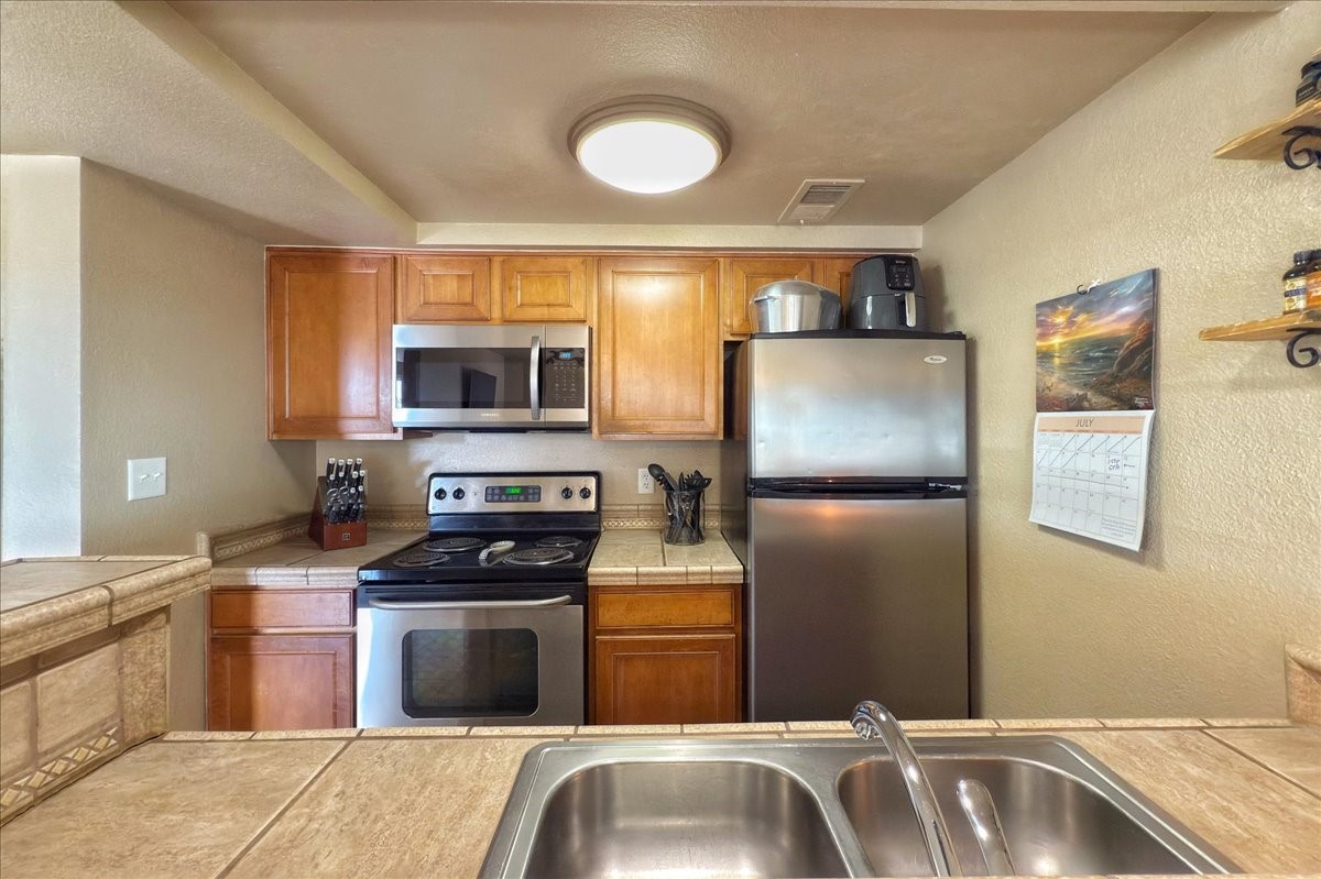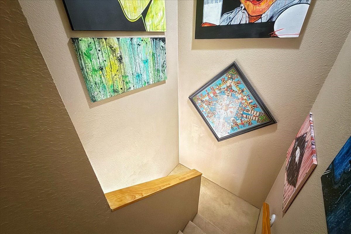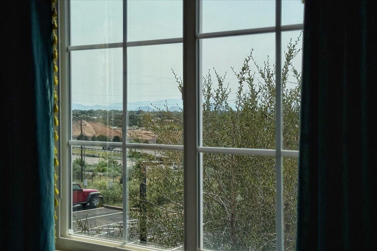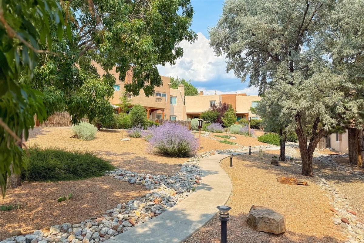 A thoughtfully designed hilltop condo which offers everything you need to enjoy Santa Fe. Centrally located making an easy commute throughout Santa Fe. Uniquely situated in Dos Santos, this unit offers one of the best sunset views available. Comes with an in unit washer and dryer and a brand new evaporative cooler. At 950 square feet, this 2-bedroom, 2-bathroom unit is versatile enough for a family, remote worker or anyone who splits time in Santa Fe. A private and secure community, Dos Santos is packed with amenities. A year round heated pool, fitness center, community fire pits, hot tub, dog park. Does Santos is gated and secure. Fees cover roofs, exteriors stucco, windows, front doors, all common elements throughout the community, evaporative cooler.