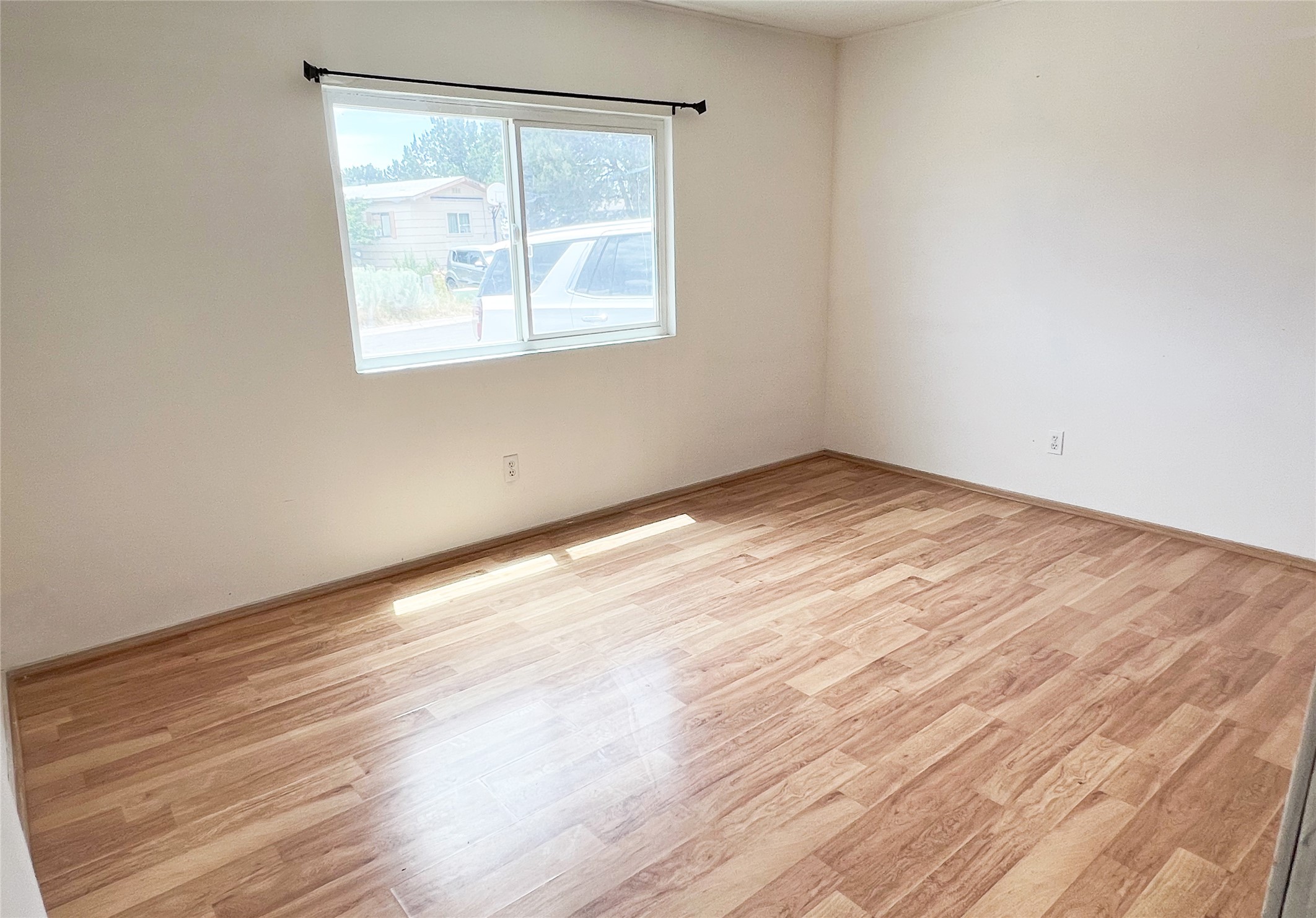 Don't miss this incredible opportunity to own a 3-bedroom, 2-bath home situated on a spacious corner lot in the Tsikumu Village neighborhood of Los Alamos. The home underwent an interior renovation in 2021, which included a modern kitchen with ample countertops, many cabinets, recessed lighting, and stainless steel appliances. Durable wood-vinyl flooring runs through the living area, while vinyl tile is in the dining room, and updated laminate flooring is in the primary bedroom. The open-concept layout offers a bright and welcoming space that's completely move-in ready. Step outside to a private, fully fenced backyard perfect for relaxing or entertaining. Enjoy the low-maintenance Trex deck, mature trees, and a shed with electricity, perfect for a workshop, studio, or additional storage. The property also includes a gated carport and ample off-street parking. This large corner lot offers extra space and plenty of curb appeal. Come see all that this well-located home has to offer. Schedule a private showing today.