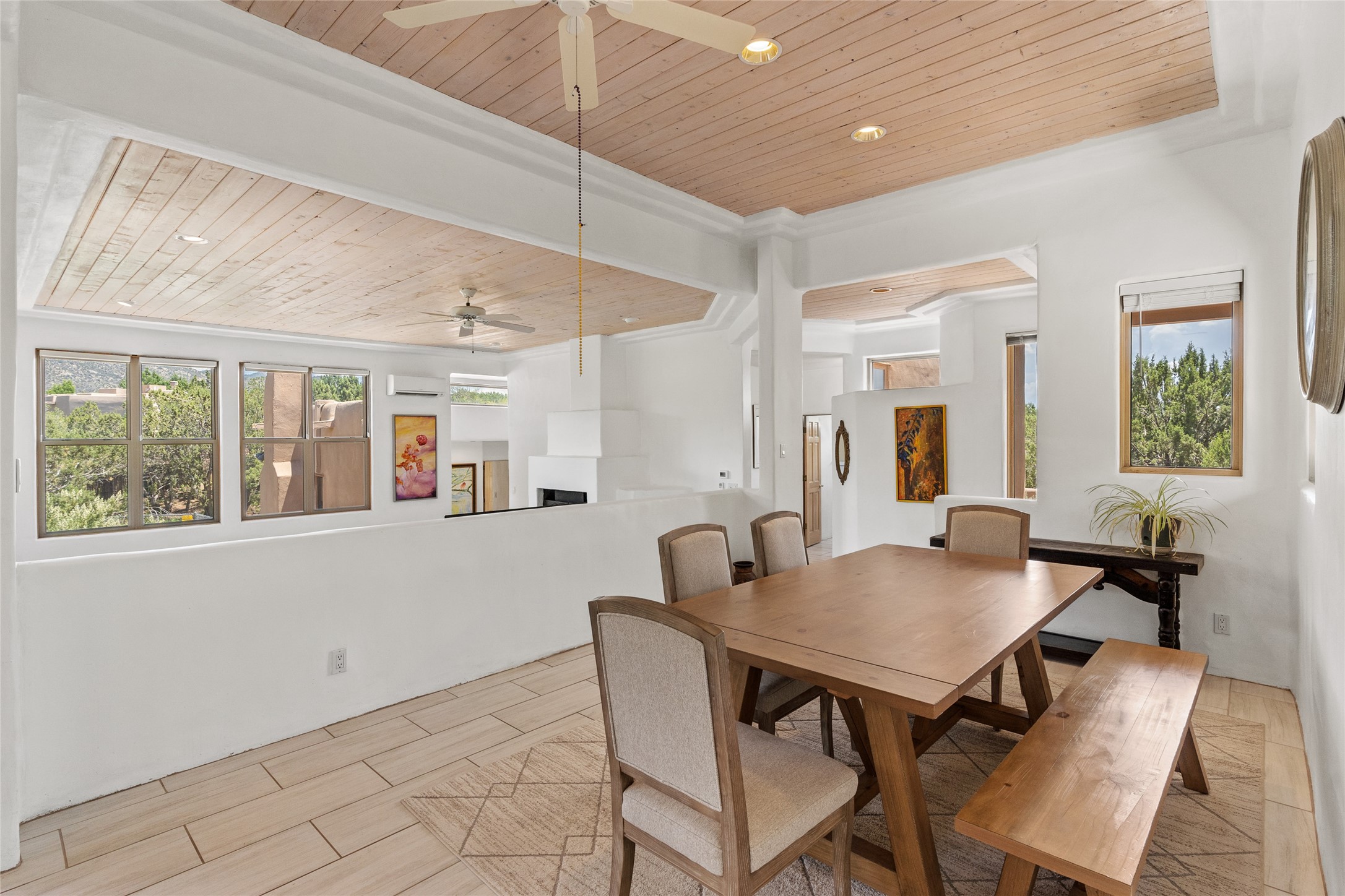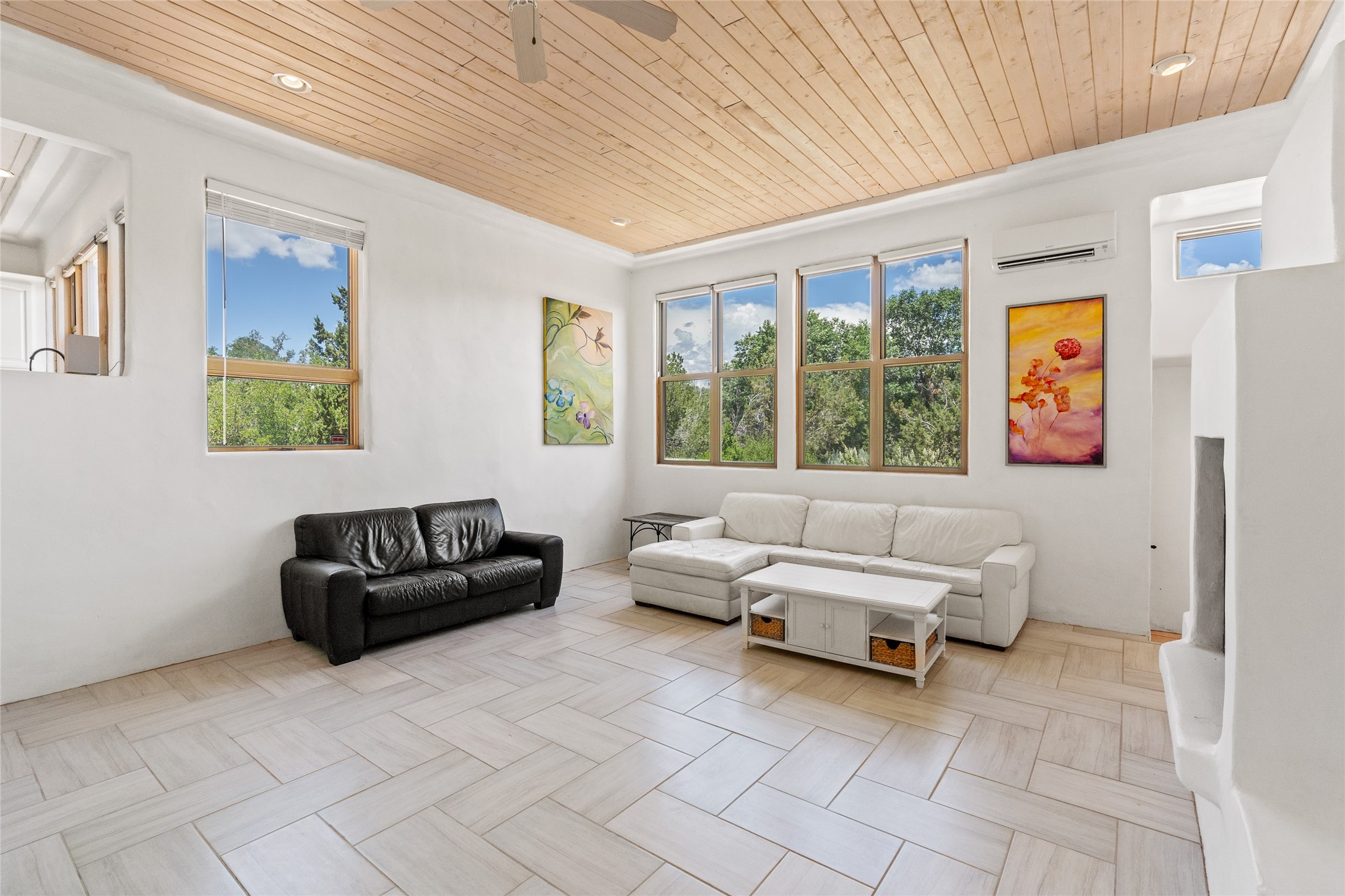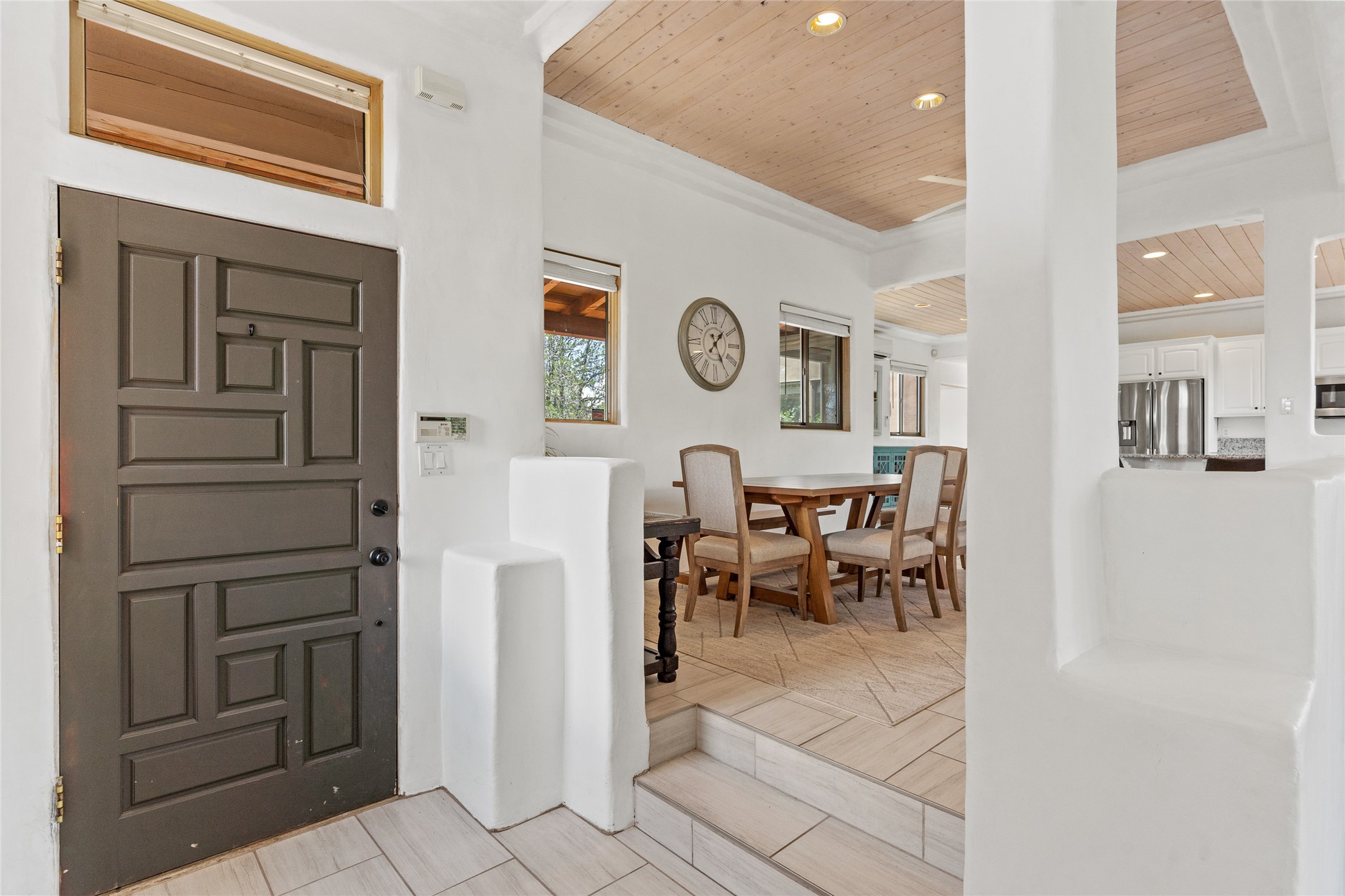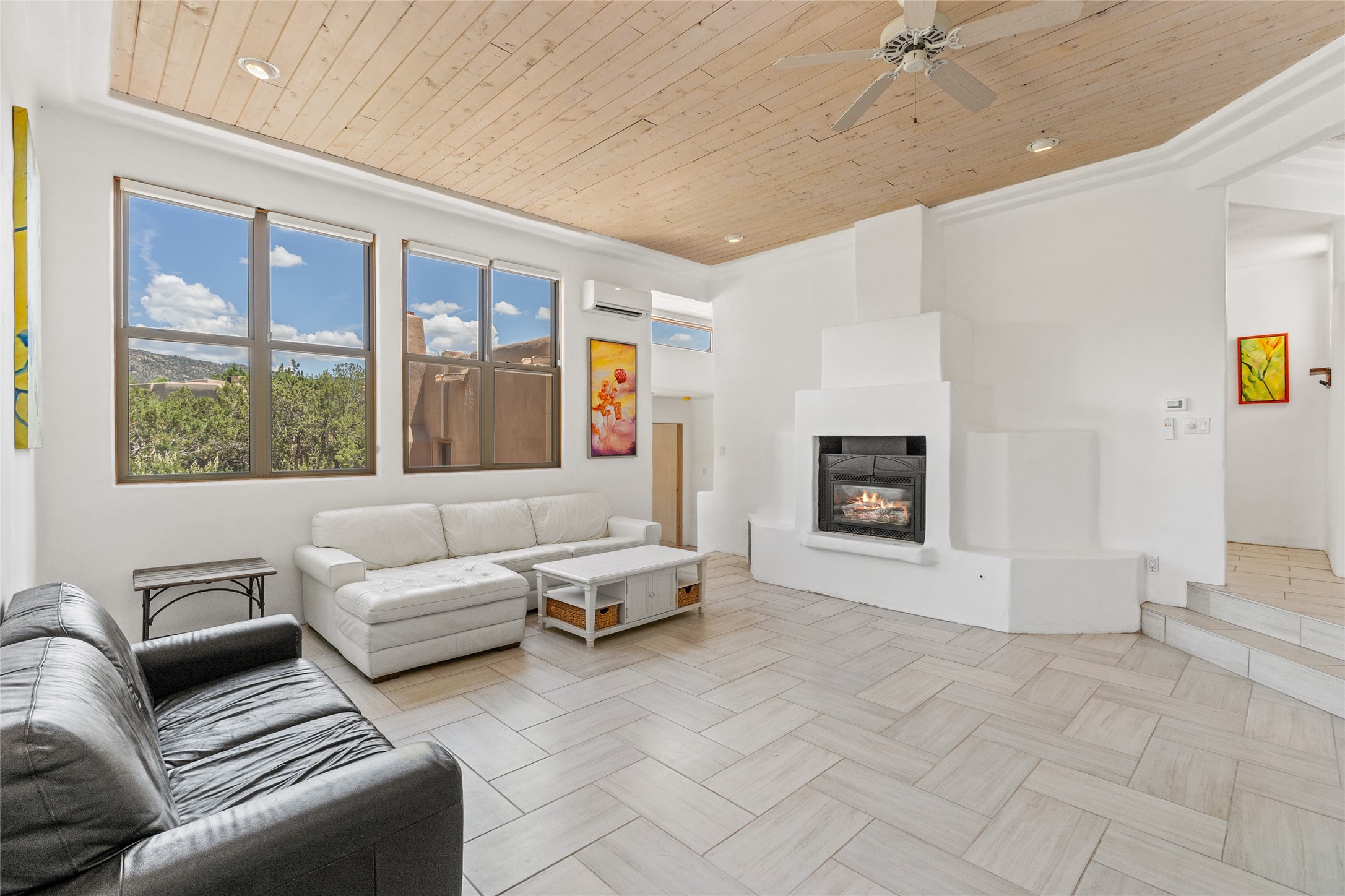 Located on over an acre with unbeatable access to all that Santa Fe has to offer, this beautifully updated home offers views of Sun andMoon Mountains and an open, flexible layout ideal for modern living. Tongue-and-groove ceilings with recessed lighting run throughout themain living areas, complementing the abundant natural light that pours in through large windows. The updated kitchen features new granitecountertops, newer Bosch and Samsung appliances, plus a RO filtration in the kitchen. The kitchen flows seamlessly into the open-conceptliving and dining spaces. This move-in ready home features two cozy fireplaces that create warmth and ambiance, while radiant heating and mini splits provide efficient heatingand cooling year-round. With three spacious bedrooms--including two that function well as primary suites. A standout feature is theattached studio with its own entrance, carport, skylights, and plentiful windows--perfect for an art space, home office, or guest retreat.Outside, the expansive lot offers endless possibilities for gardening, recreation, or expansion. Just a 5-minute walk from Christus St Vincent Regional Medical Center and only 10 minutes to the historic Santa Fe Plaza, this home combines peaceful privacy with centralconvenience. Don't miss this rare opportunity to own a flexible, light-filled property in one of Santa Fe's most desirable locations with NO HOA! The seller is also offering a home warranty for additional peace of mind.