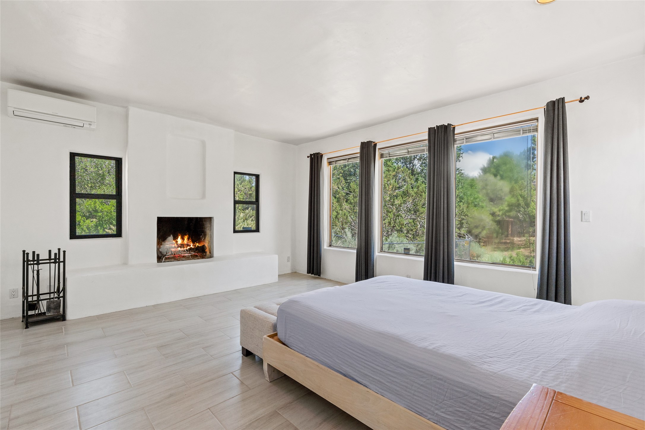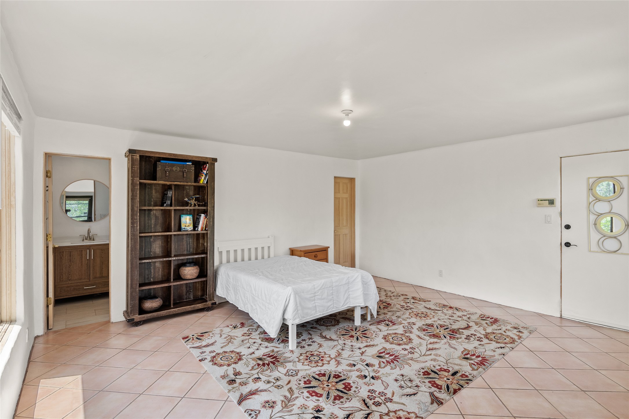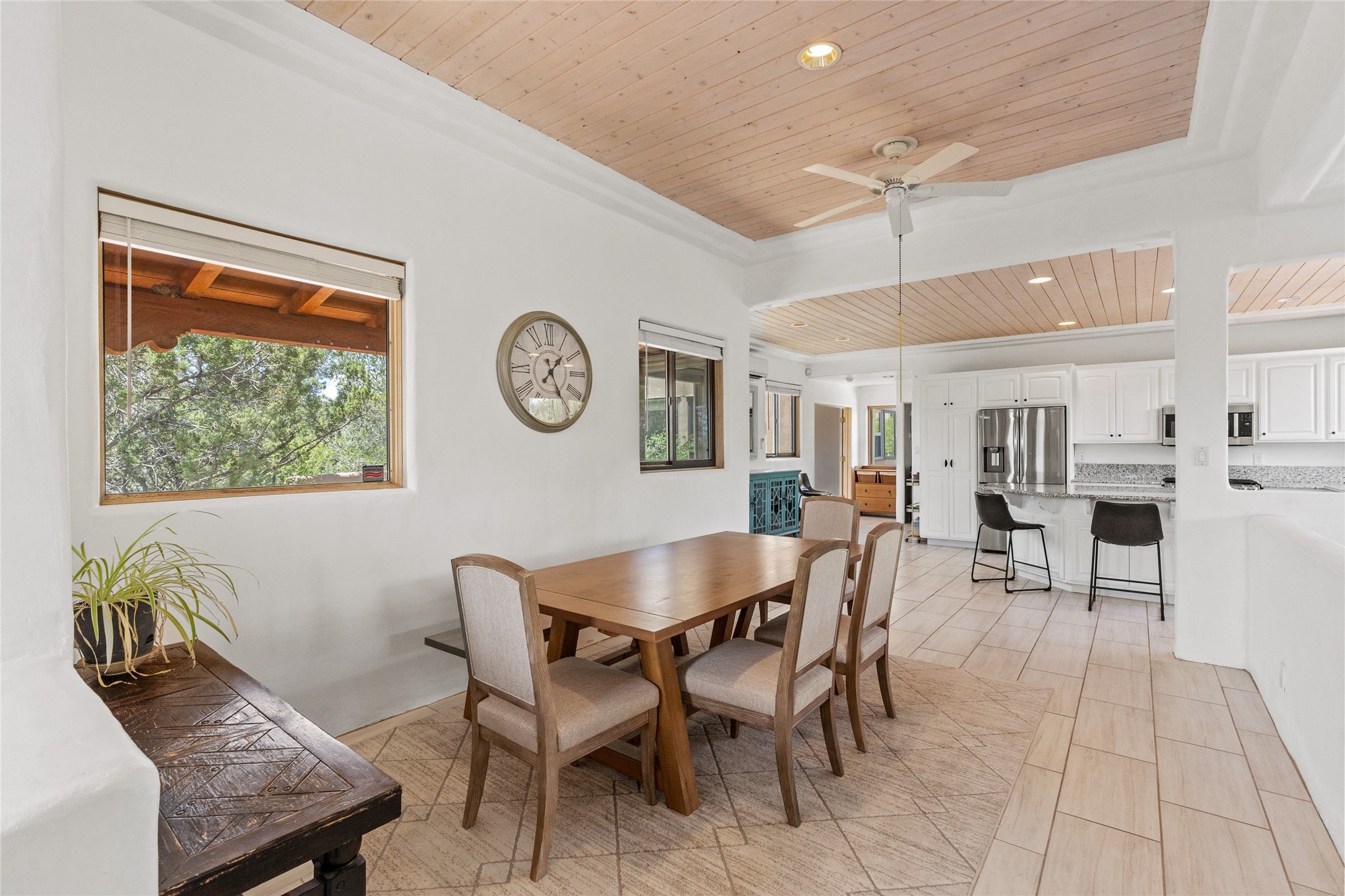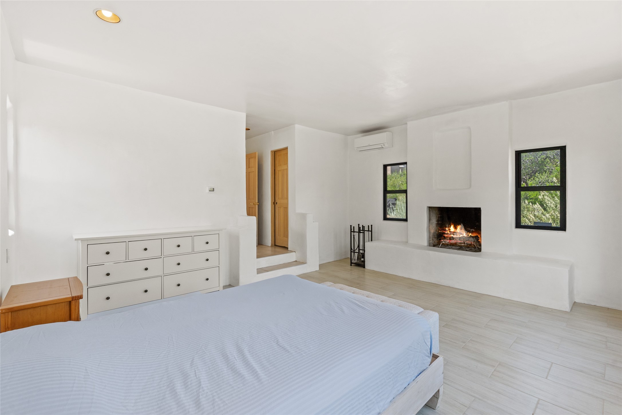 Located on over an acre with unbeatable access to all that Santa Fe has to offer, this beautifully updated home offers views of Sun andMoon Mountains and an open, flexible layout ideal for modern living. Tongue-and-groove ceilings with recessed lighting run throughout themain living areas, complementing the abundant natural light that pours in through large windows. The updated kitchen features new granitecountertops, newer Bosch and Samsung appliances, plus a RO filtration in the kitchen. The kitchen flows seamlessly into the open-conceptliving and dining spaces. This move-in ready home features two cozy fireplaces that create warmth and ambiance, while radiant heating and mini splits provide efficient heatingand cooling year-round. With three spacious bedrooms--including two that function well as primary suites. A standout feature is theattached studio with its own entrance, carport, skylights, and plentiful windows--perfect for an art space, home office, or guest retreat.Outside, the expansive lot offers endless possibilities for gardening, recreation, or expansion. Just a 5-minute walk from Christus St Vincent Regional Medical Center and only 10 minutes to the historic Santa Fe Plaza, this home combines peaceful privacy with centralconvenience. Don't miss this rare opportunity to own a flexible, light-filled property in one of Santa Fe's most desirable locations with NO HOA! The seller is also offering a home warranty for additional peace of mind.