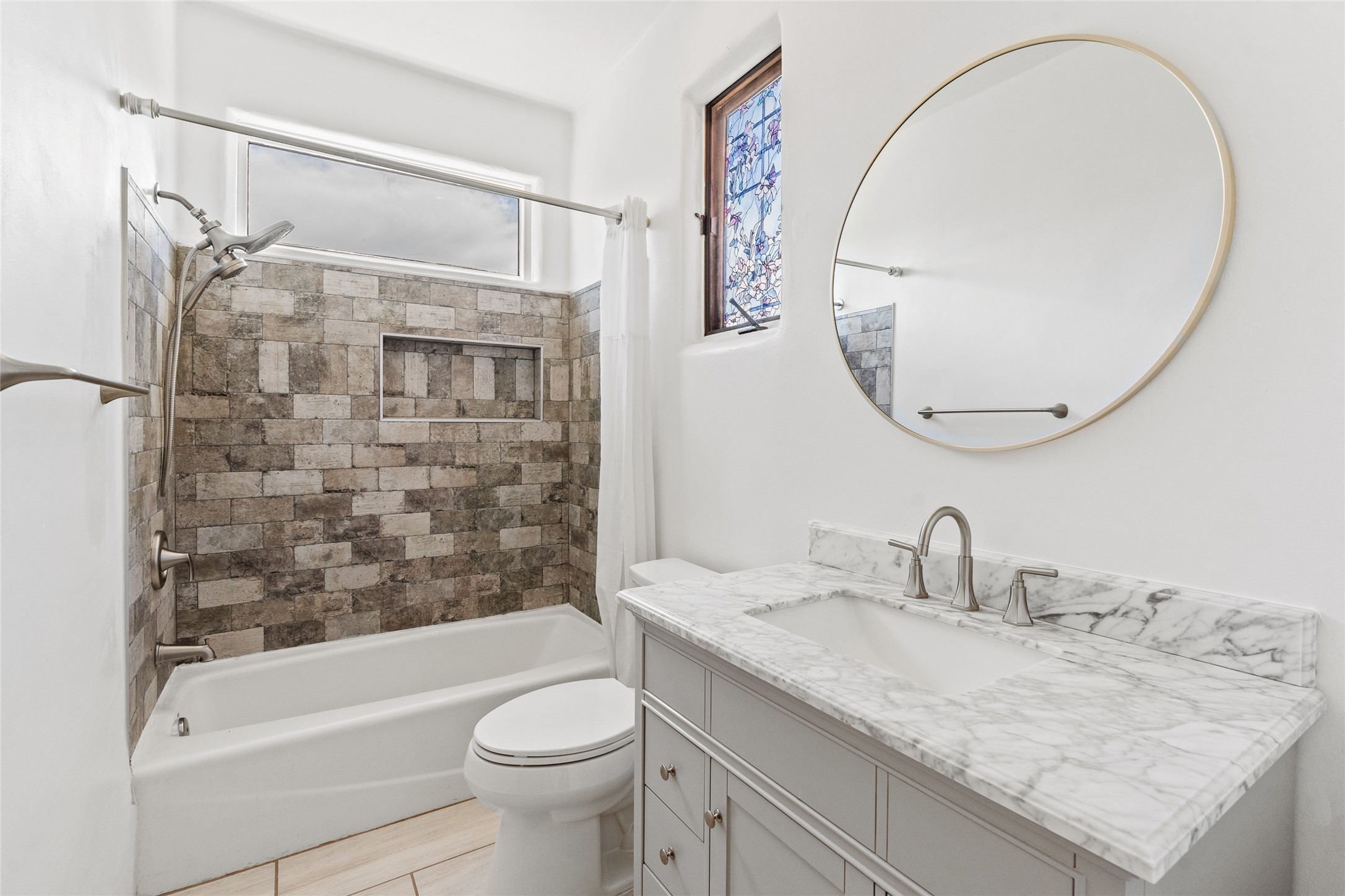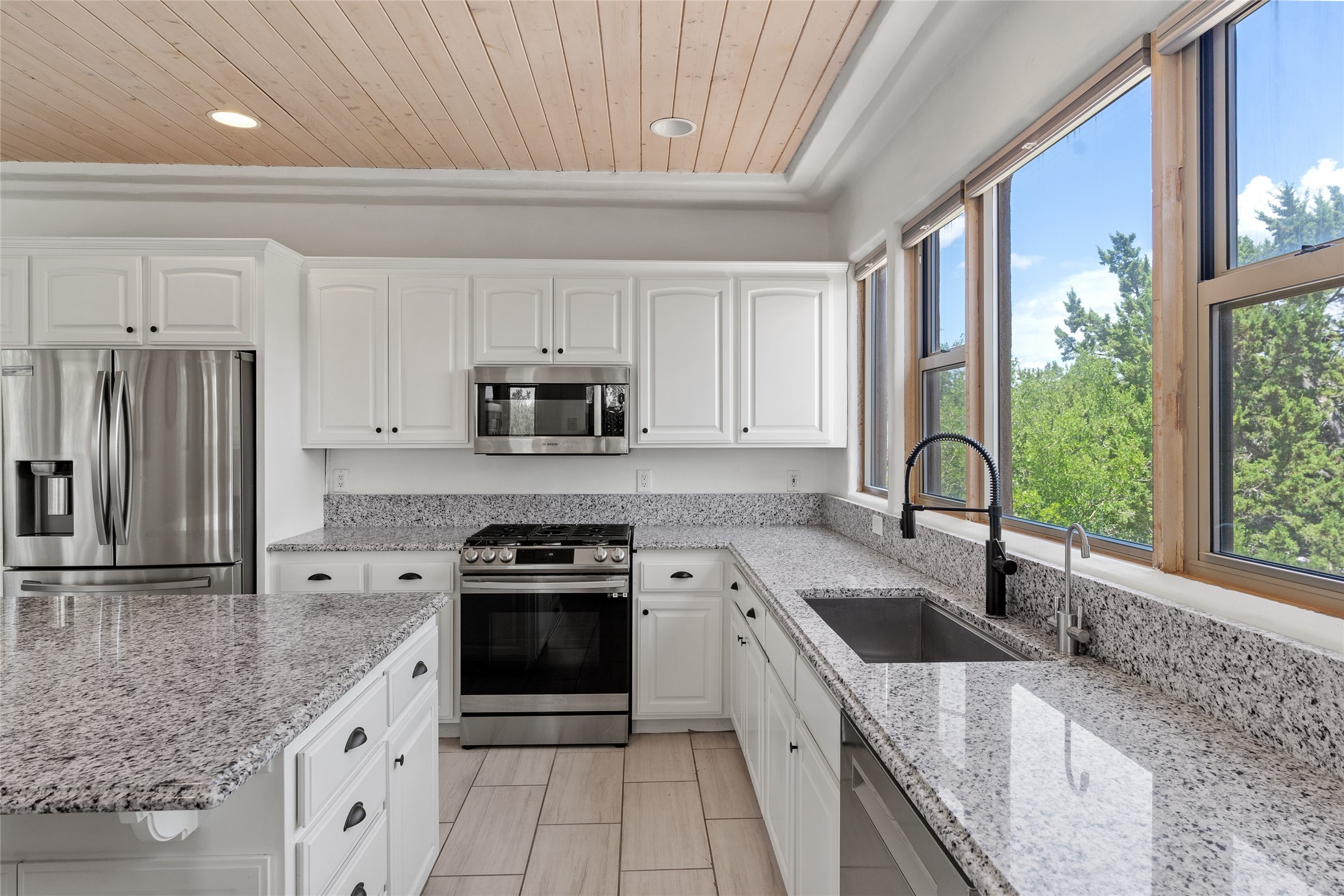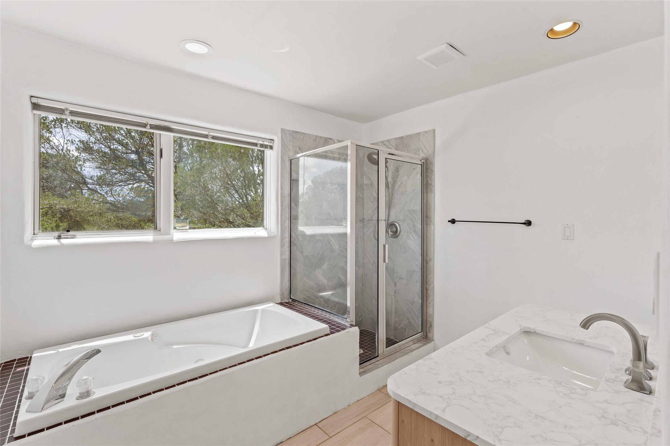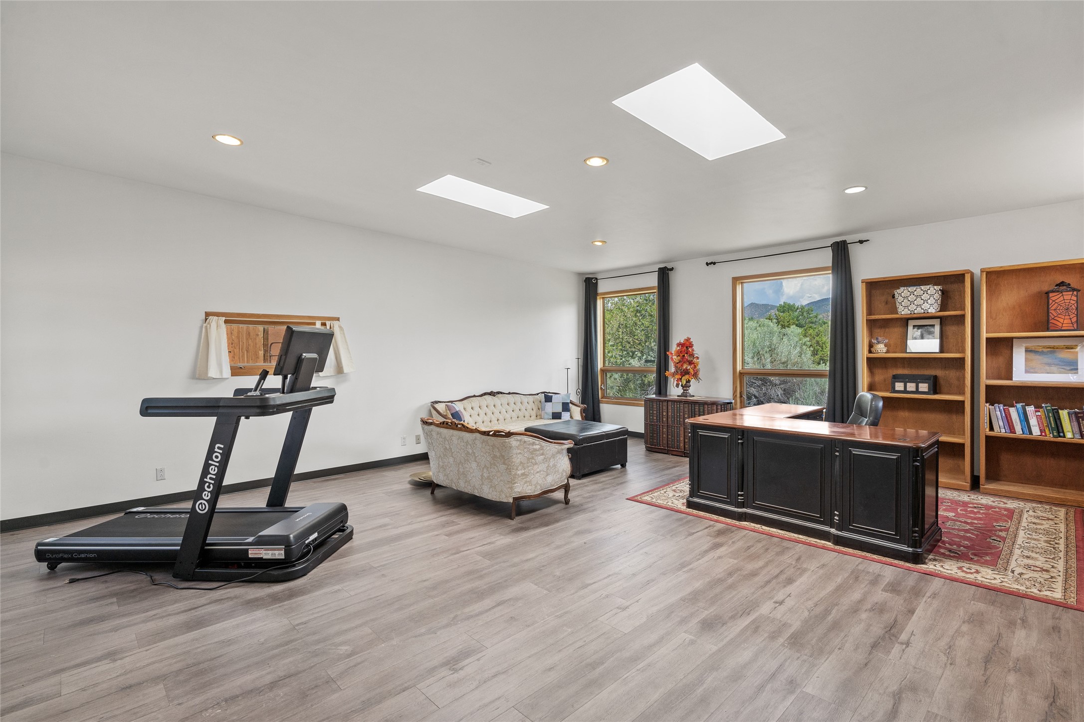 Located on over an acre with unbeatable access to all that Santa Fe has to offer, this beautifully updated home offers views of Sun andMoon Mountains and an open, flexible layout ideal for modern living. Tongue-and-groove ceilings with recessed lighting run throughout themain living areas, complementing the abundant natural light that pours in through large windows. The updated kitchen features new granitecountertops, newer Bosch and Samsung appliances, plus a RO filtration in the kitchen. The kitchen flows seamlessly into the open-conceptliving and dining spaces. This move-in ready home features two cozy fireplaces that create warmth and ambiance, while radiant heating and mini splits provide efficient heatingand cooling year-round. With three spacious bedrooms--including two that function well as primary suites. A standout feature is theattached studio with its own entrance, carport, skylights, and plentiful windows--perfect for an art space, home office, or guest retreat.Outside, the expansive lot offers endless possibilities for gardening, recreation, or expansion. Just a 5-minute walk from Christus St Vincent Regional Medical Center and only 10 minutes to the historic Santa Fe Plaza, this home combines peaceful privacy with centralconvenience. Don't miss this rare opportunity to own a flexible, light-filled property in one of Santa Fe's most desirable locations with NO HOA! The seller is also offering a home warranty for additional peace of mind.