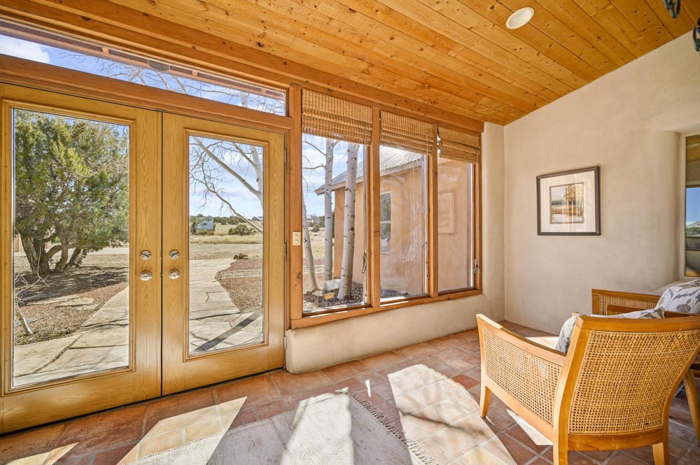 Nestled in the sought-after Art Barns area of Lamy, just a scenic 20-minute drive from Santa Fe, this distinctive 2-bedroom, 2-bath home offers a rare blend of privacy, character, and sweeping mountain views on 5.86 acres. Spanning 2,563 square feet, the residence features beautiful Saltillo tile flooring, comfortable in-floor radiant heating, and a flexible loft space ideal for a home office or family room. A pitched roof and classic Southwestern styling complement the surrounding landscape, while recent 2025 updates--including a new boiler, stucco repairs on the home, and brand-new stucco on the detached oversized 2-car garage--provide peace of mind. With expansive outdoor space, stunning vistas, and easy access to Eldorado's shopping and Santa Fe's amenities, this property is an exceptional opportunity to enjoy serene high-desert living at its finest.
