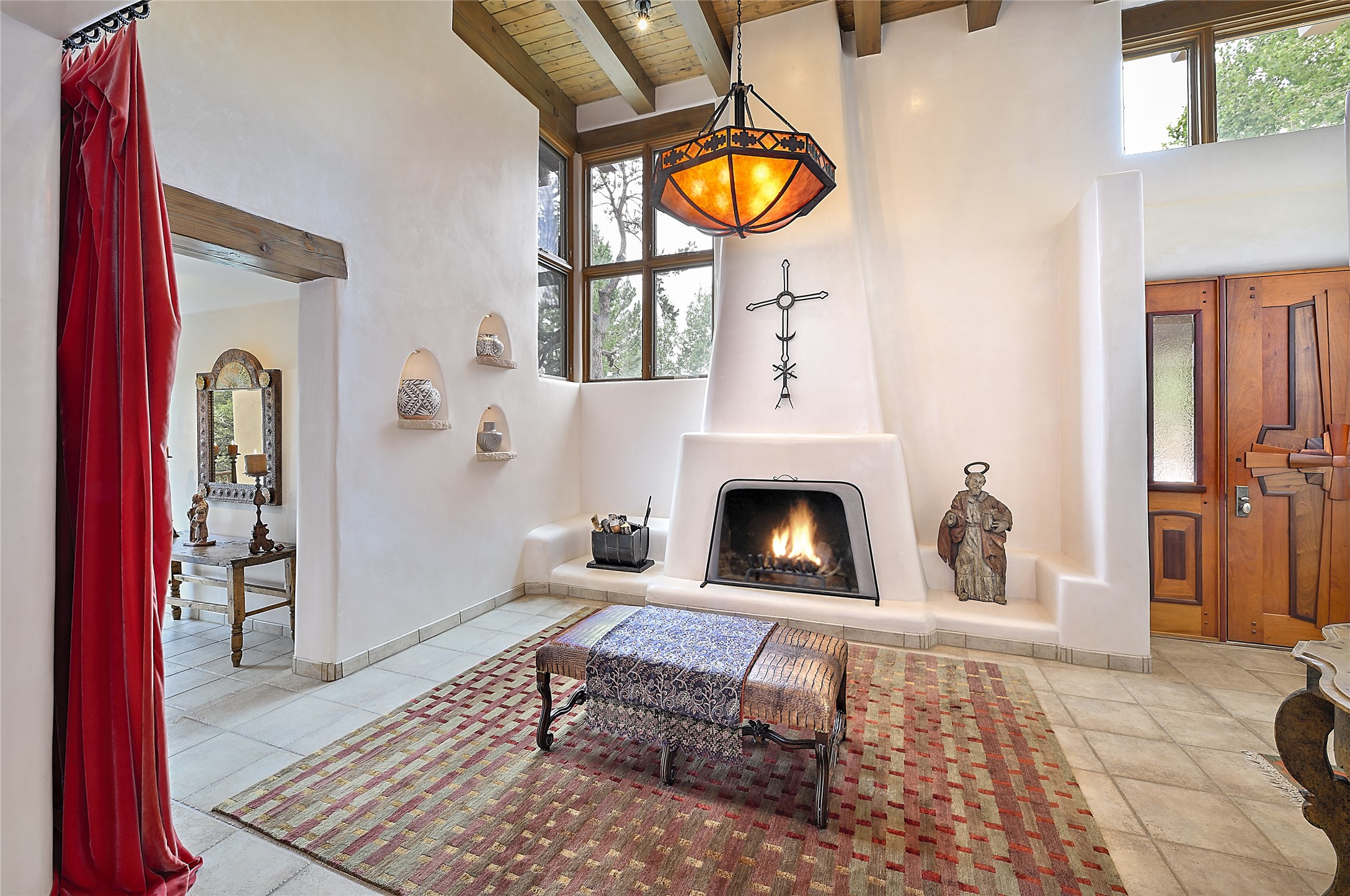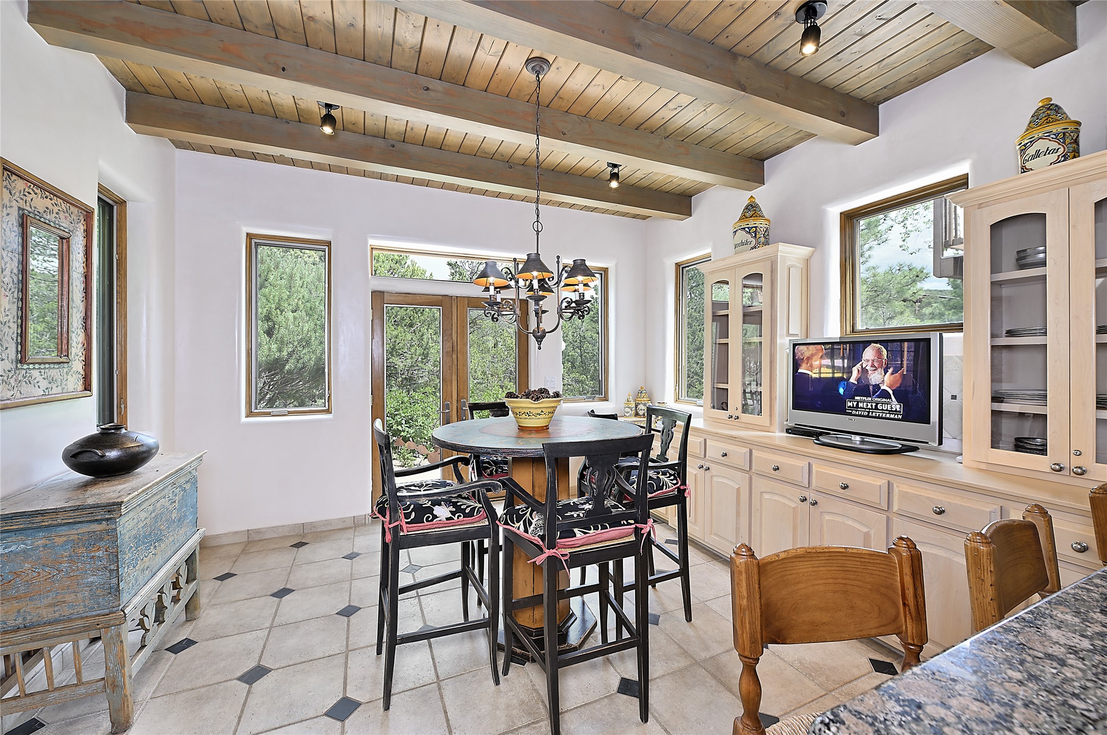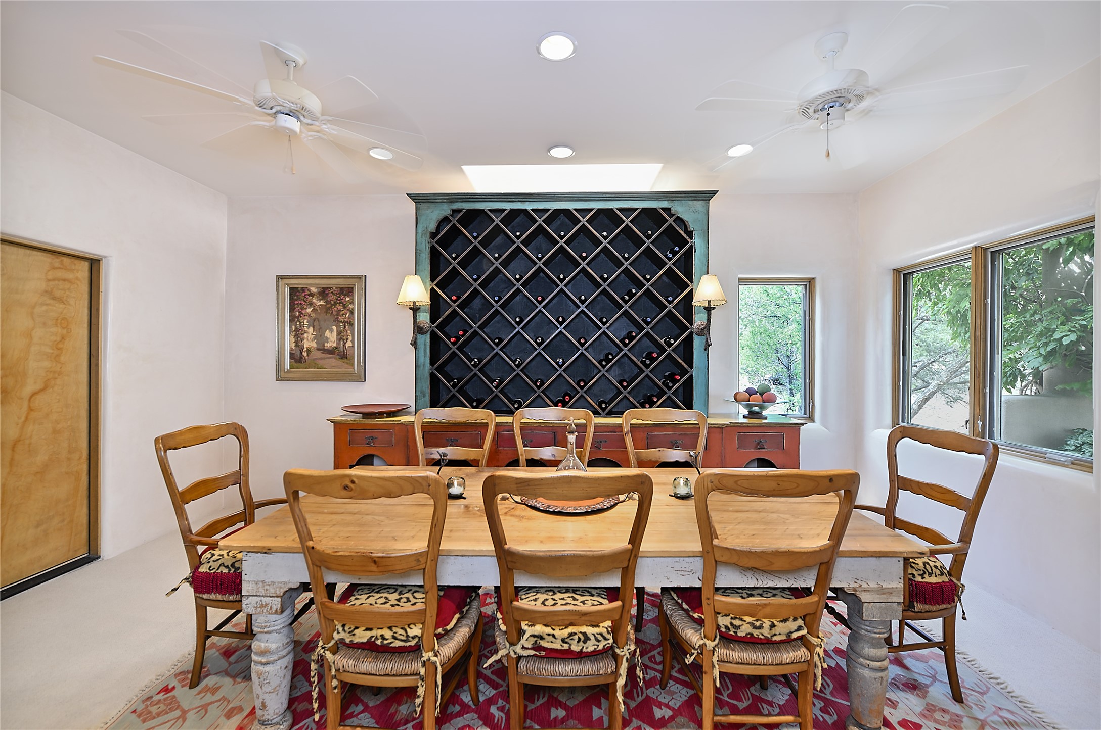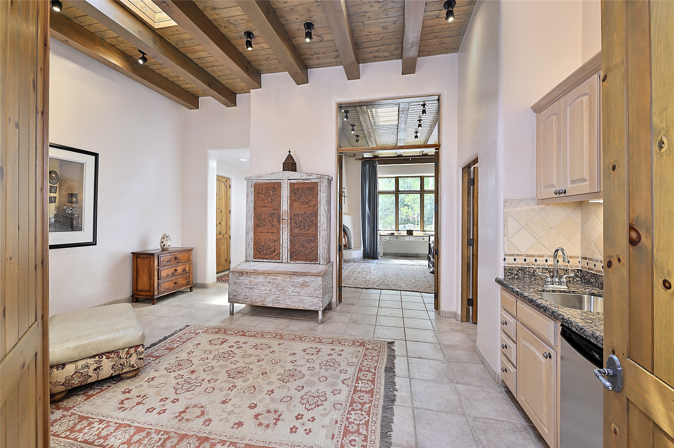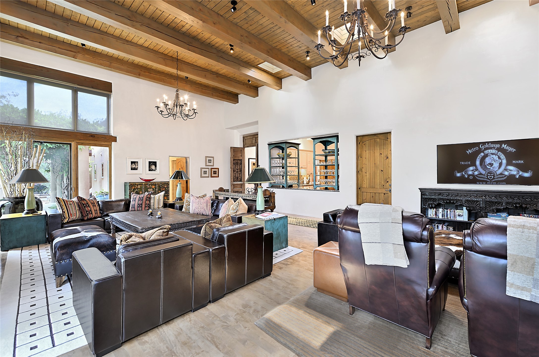 Perched on over 3 lush acres in one of Santa Fe's most coveted enclaves, this exceptional estate offers a rare synthesis of space, serenity, and natural beauty. It is less than 10 minutes from the plaza and the city's extensive mountain hiking trails are only a short walk away. Designed with both privacy and flexibility in mind, the residence unfolds across two thoughtfully connected wings, encompassing five bedrooms and a range of inviting communal and intimate spaces. It is ideally suited for multigenerational living, entertaining, or even a creative retreat.The main level is tailored for effortless single-level living, featuring expansive formal and informal gathering areas, two nicely equipped kitchens, three bedrooms (one of which is a grand suite with a private entrance), a game room and 2 car garage. A sauna and steamroom are situated in the guest bath on the main level. Seamless indoor-outdoor living is made possible through multiple portals, decks, and lawn spaces, framed by towering Aspens, Ponderosa Pines and Pinons, with manicured lawn and gardens, tranquil water features, and sweeping mountain views.Upstairs, two spacious en-suite bedrooms each open to their own private view decks, offering peaceful havens for rest, reading, or quiet contemplation. The home is connected to city utilities, has central air conditioning and heat and has been meticulously maintained, ensuring comfort, durability, and modern ease.Properties of this caliber, combining architectural versatility, natural grace, and premier location, are seldom available. Additional contiguous parcels totaling over 11 acres with commanding hilltop views may be acquired separately, offering a rare opportunity to expand and create an even more secluded private compound.
