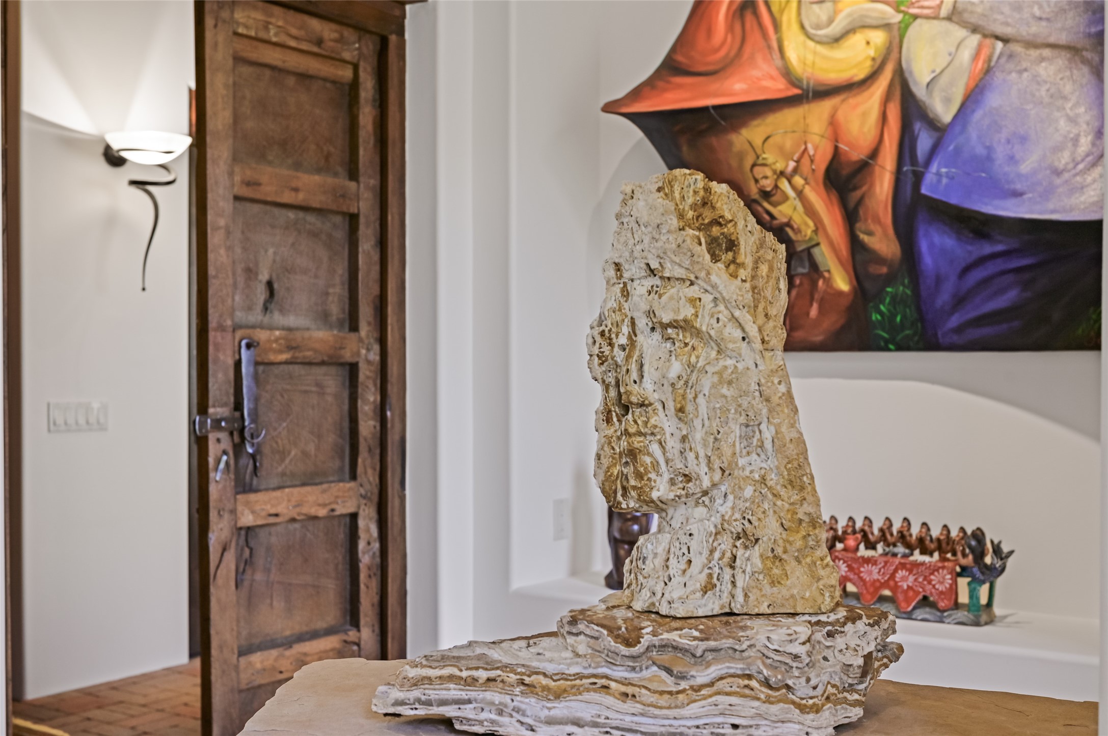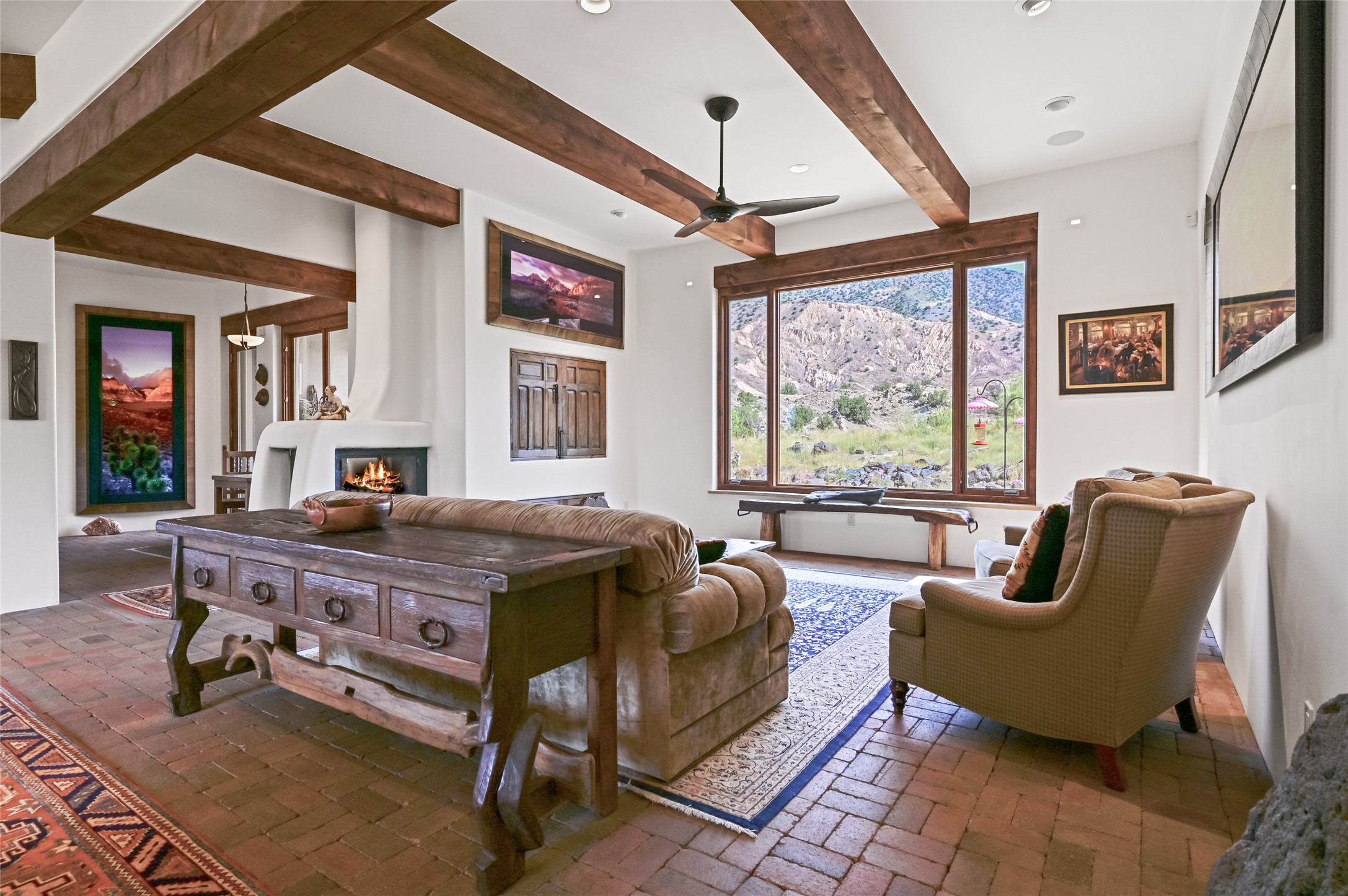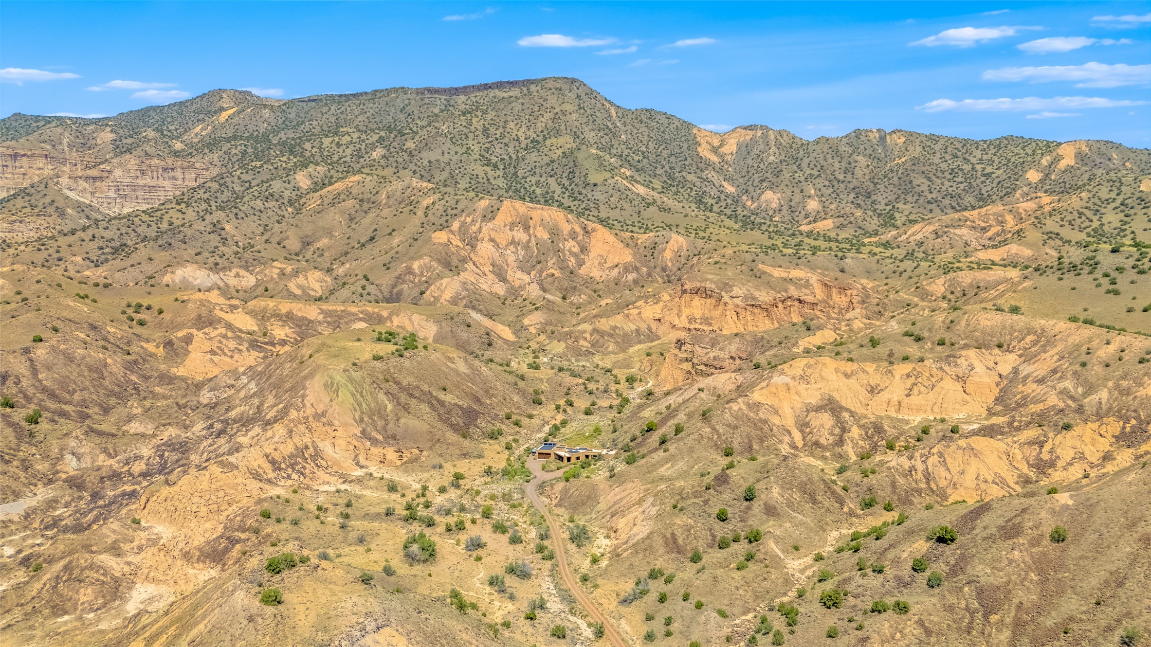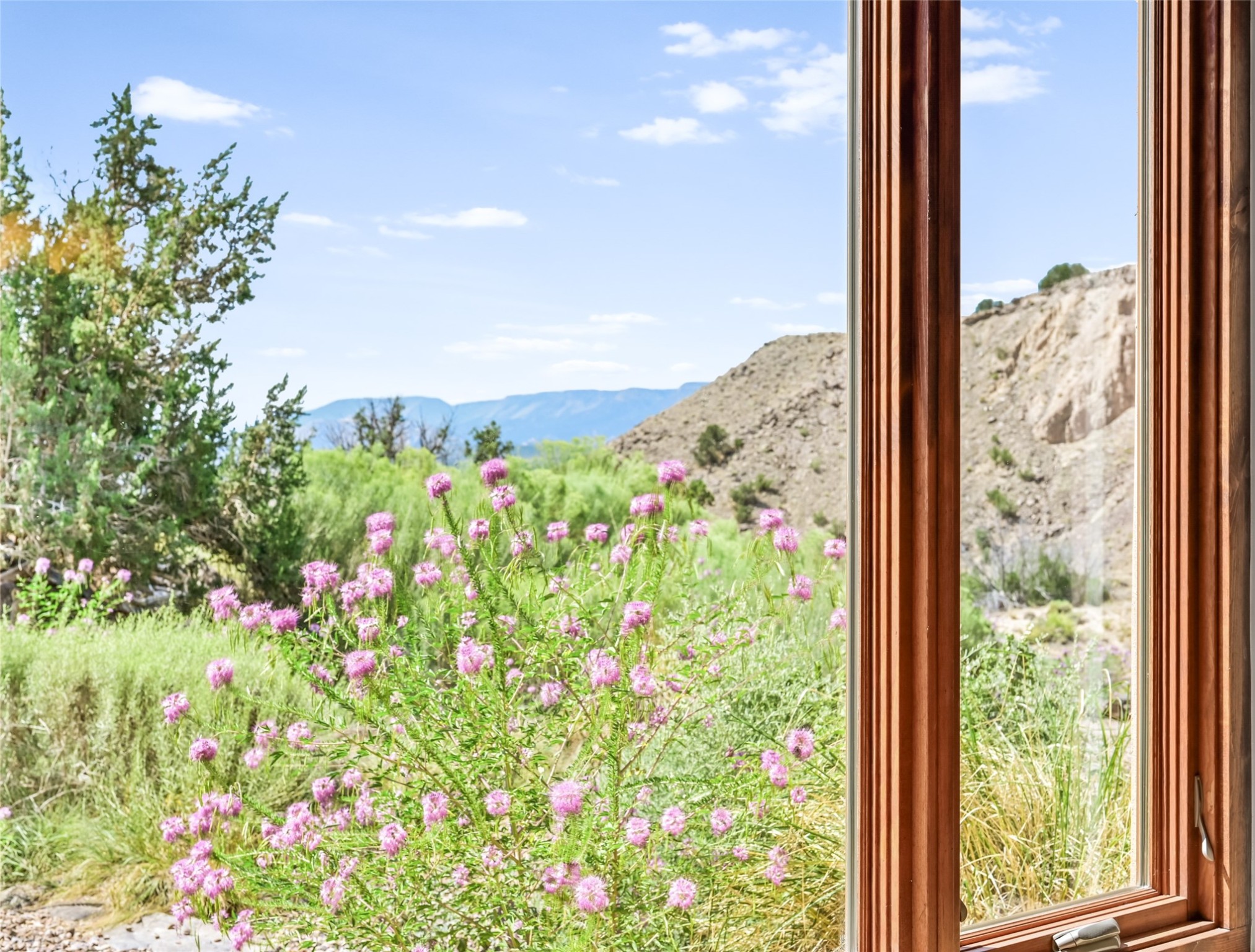 A rare opportunity to own a private wilderness sanctuary, on the market for the first time. This 39-acre self-sustaining refuge, lovingly named Rincn Escondido, "Hidden Corner," is tucked away in the foothills of Sierra Negra and borders Carson National Forest, offering unparalleled privacy just one hour from Santa Fe. Panoramic views of Cerro Pedernal, Sierra Negra, and the Jmez Mountains stretch across rewilded meadows, pollinator gardens, and a tranquil pond with a cascading waterfall.The 4,032 sq ft property combines a 3,059 sq ft residence with a heated garage and storage room, offering an additional 973 sq ft of versatile space. The home blends timeless Southwestern architecture with refined modern finishes, including hand-carved wood doors, artisan detailing, and locally sourced Namb brick floors that flow throughout. Each room is designed to maximize natural light and frame dramatic vistas. A chef's kitchen features a Sub-Zero fridge/freezer, Wolf oven, induction cooktop, and custom craftsmanship, while the spa-inspired primary suite offers a deep soaking tub and walk-in shower.Built for environmental stewardship, the home is fully powered by a grid-tied 20.16 kW photovoltaic system with four Tesla Powerwall 3 batteries and solar-thermal hot water. Passive solar design, radiant in-floor heating and cooling, and high-efficiency systems ensure year-round comfort.Whether a spiritual retreat, sustainable homestead, or luxury escape, this private refuge is more than a home--it is a living sanctuary.Video Link: https://youtu.be/VyCAPihgIhU