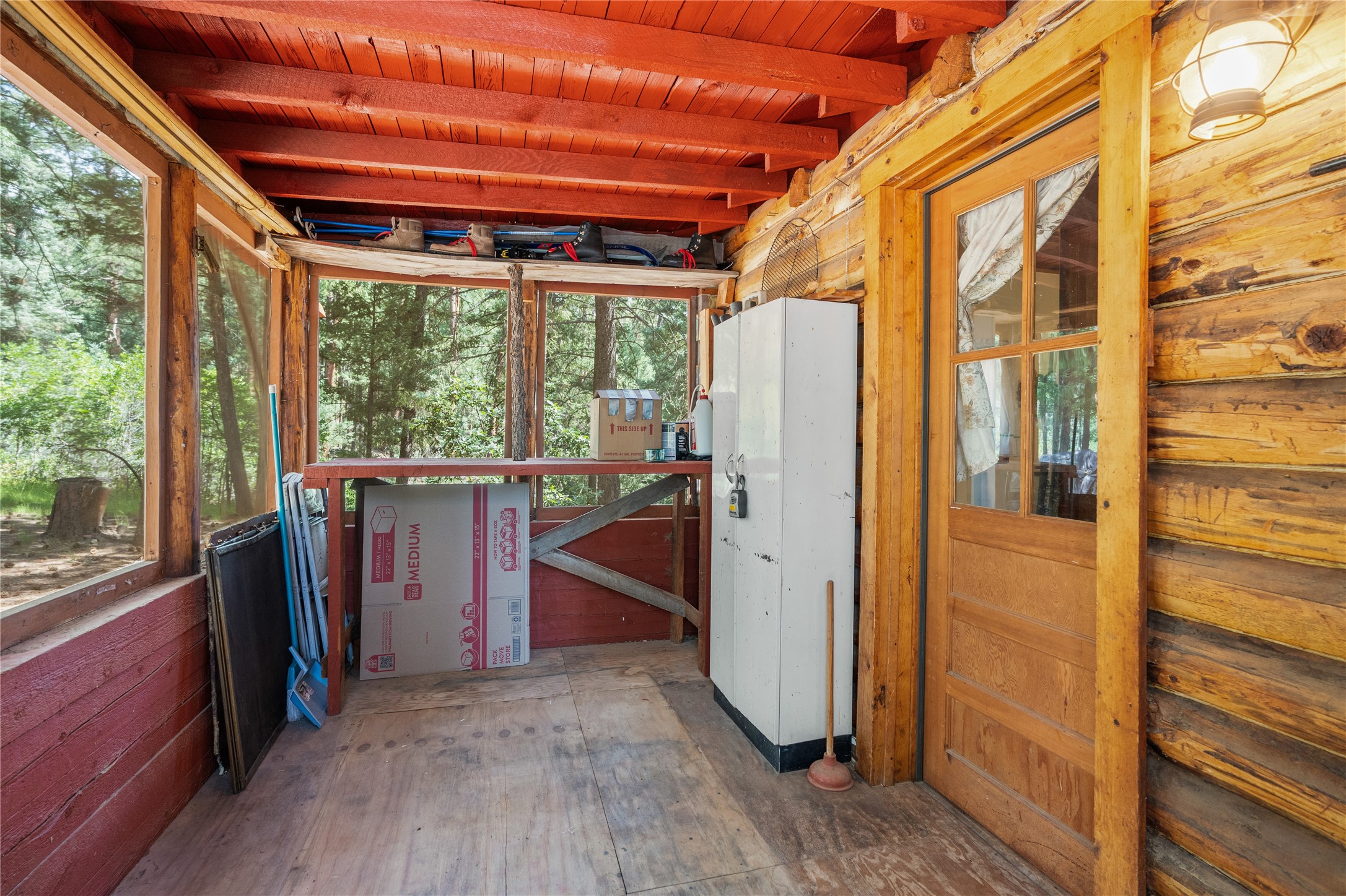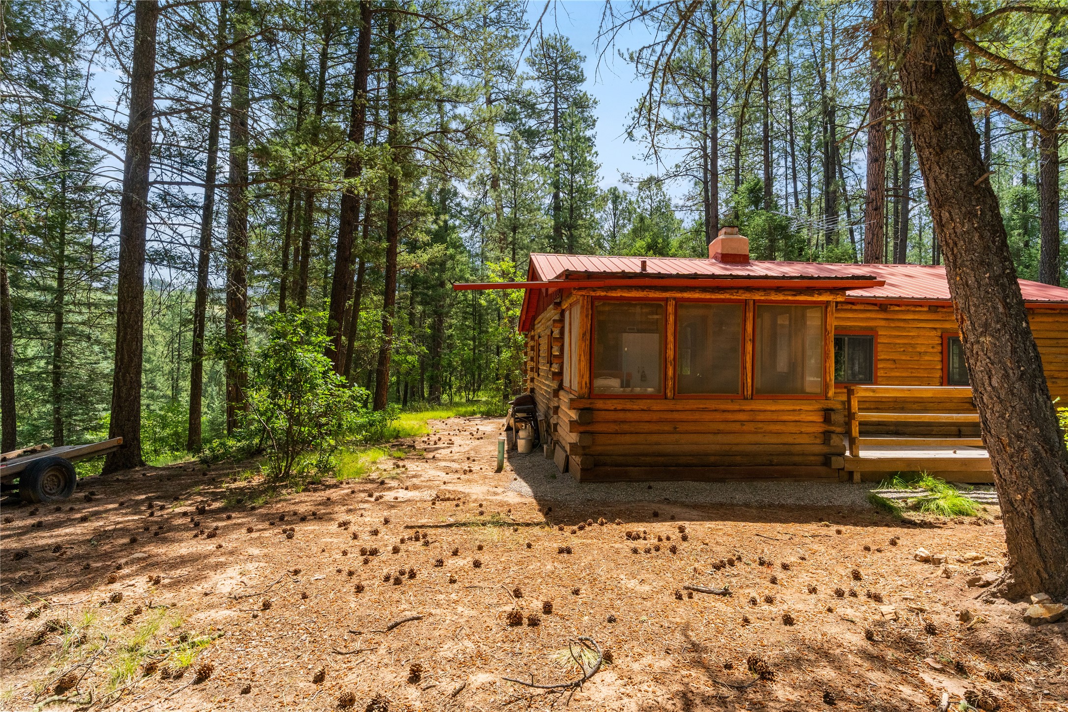 Sweet Mountain Cabin! SWEET Mountain Setting! Forget the fuss and muss of camping, this one is the perfect getaway place! Real log home on just over 1.44 acres and right in the highly desirable Horseshoe Springs Subdivision. Move in ready and furnishings STAY!! 2 bedrooms, 1 full bath. A super-efficient fireplace keeps it toasty on cool mountain nights, knotty pine walls bring the rustic charm, and the country kitchen is cute as can be! Backs to Horseshoe Springs Common Lands with a trail straight to San Antonio Creek. Cross-country ski in the nearby National Forest or enjoy world-class hunting and fishing close by. Prefer quiet weekends? Curl up with a good book or relax in a hammock surrounded by peace and pine trees. No well hassles here--connected to the Community Water System. To maintain the friendly and neighborly charm and peace and quiet, HOA Covenants do not allow Airbnb or other short term rentals. Roads are maintained and plowed by the HOA in winter, so access stays easy year-round. Come on up to the peace of the Jemez Mountains & start building memories today!