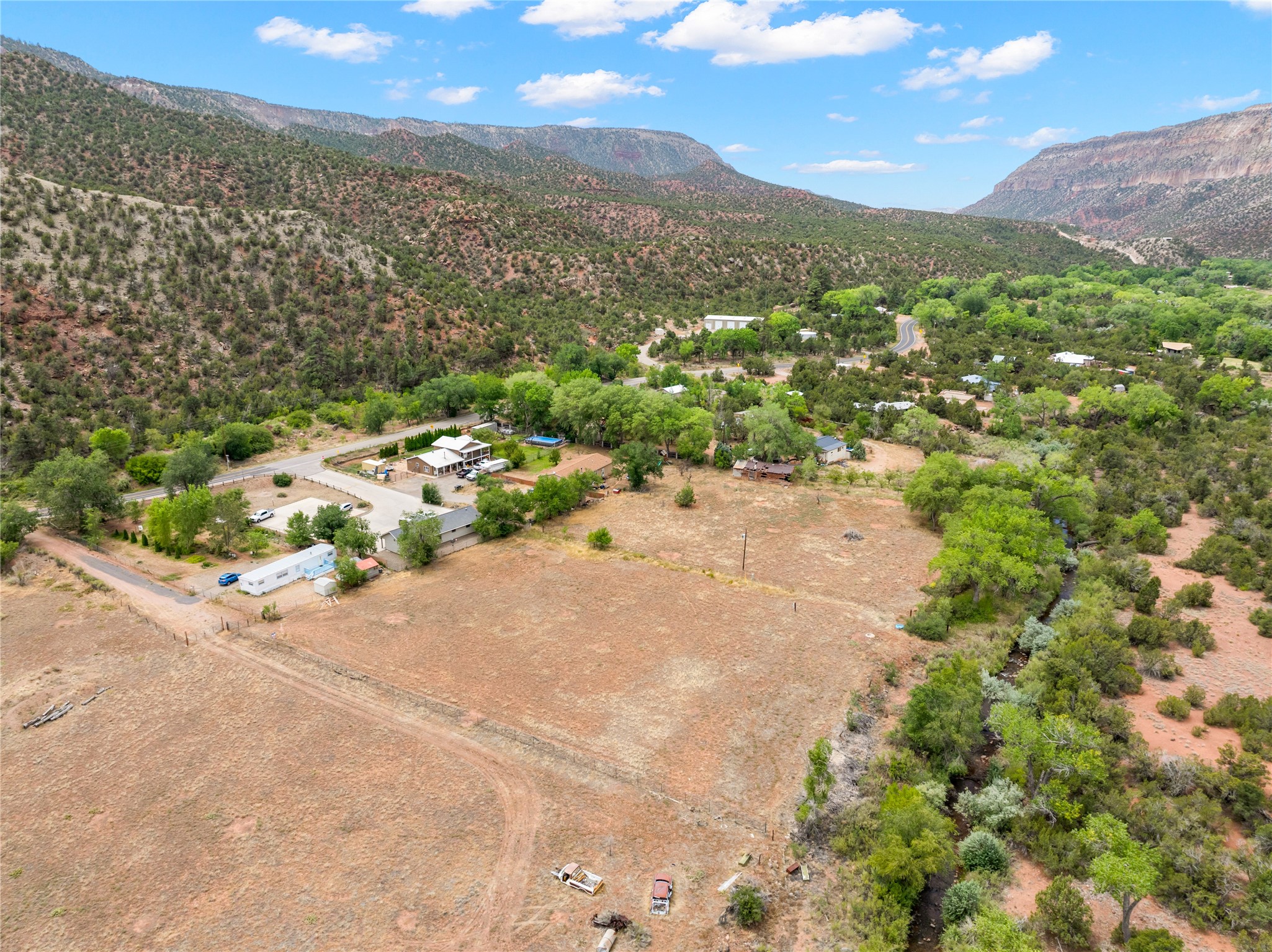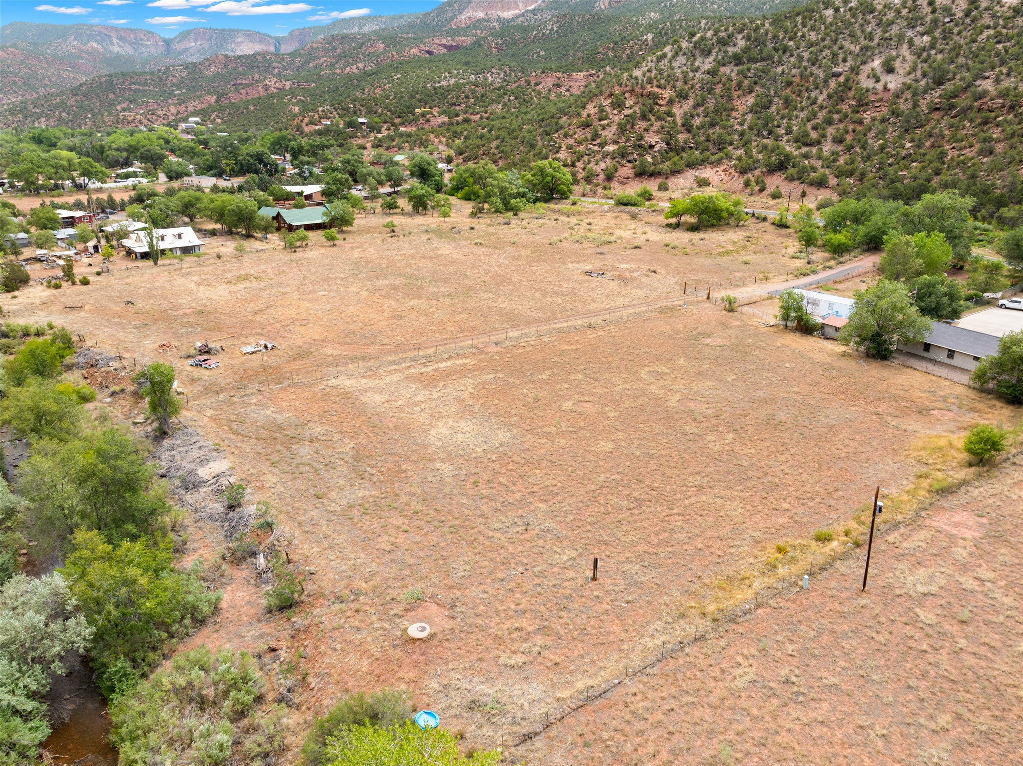 Tucked under the mesas and steps from the water, this cozy hideaway is ready for lazy days, good company, and river adventures! 1.69 glorious acres within the heart of Jemez Springs! Village of Jemez Springs water and sewer services are available, with electricity accessible at the lot line. Includes irrigation rights, giving you the ability to water a garden, fruit trees, or even a small pasture. A truly special setting located right in the vibrant village of Jemez Springs. Come on out and take a look!