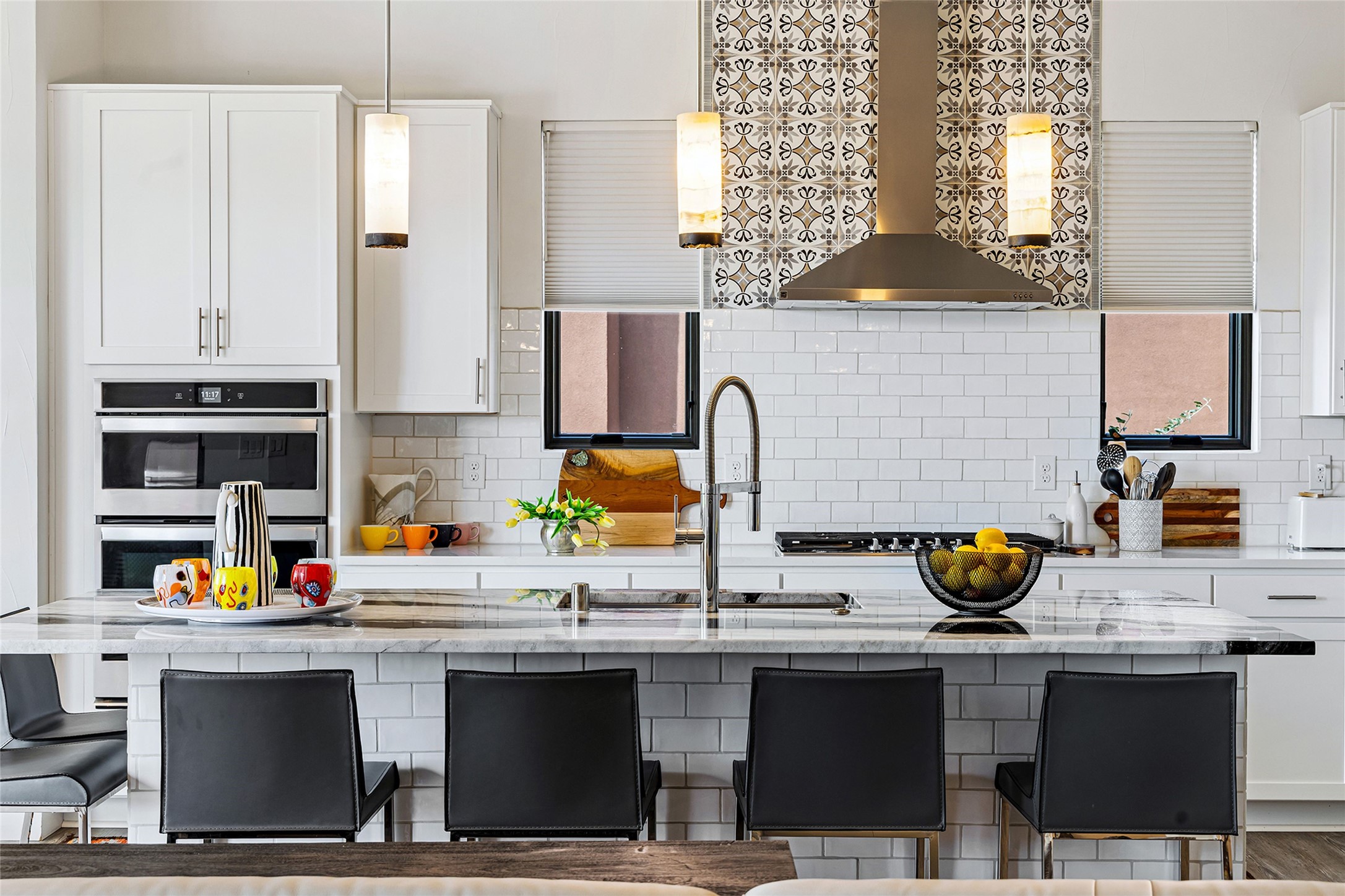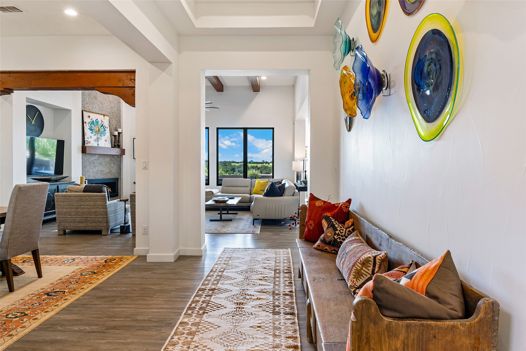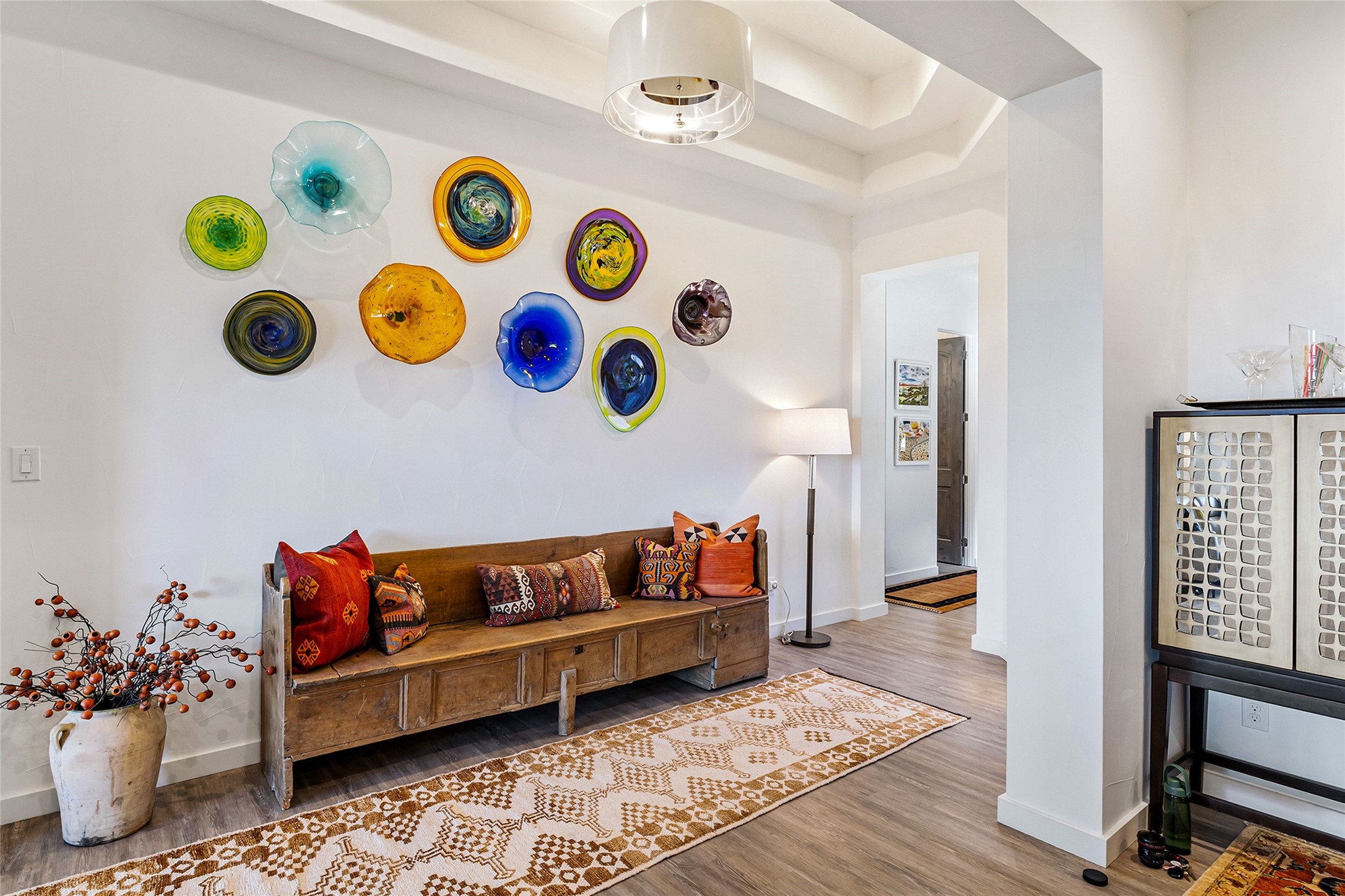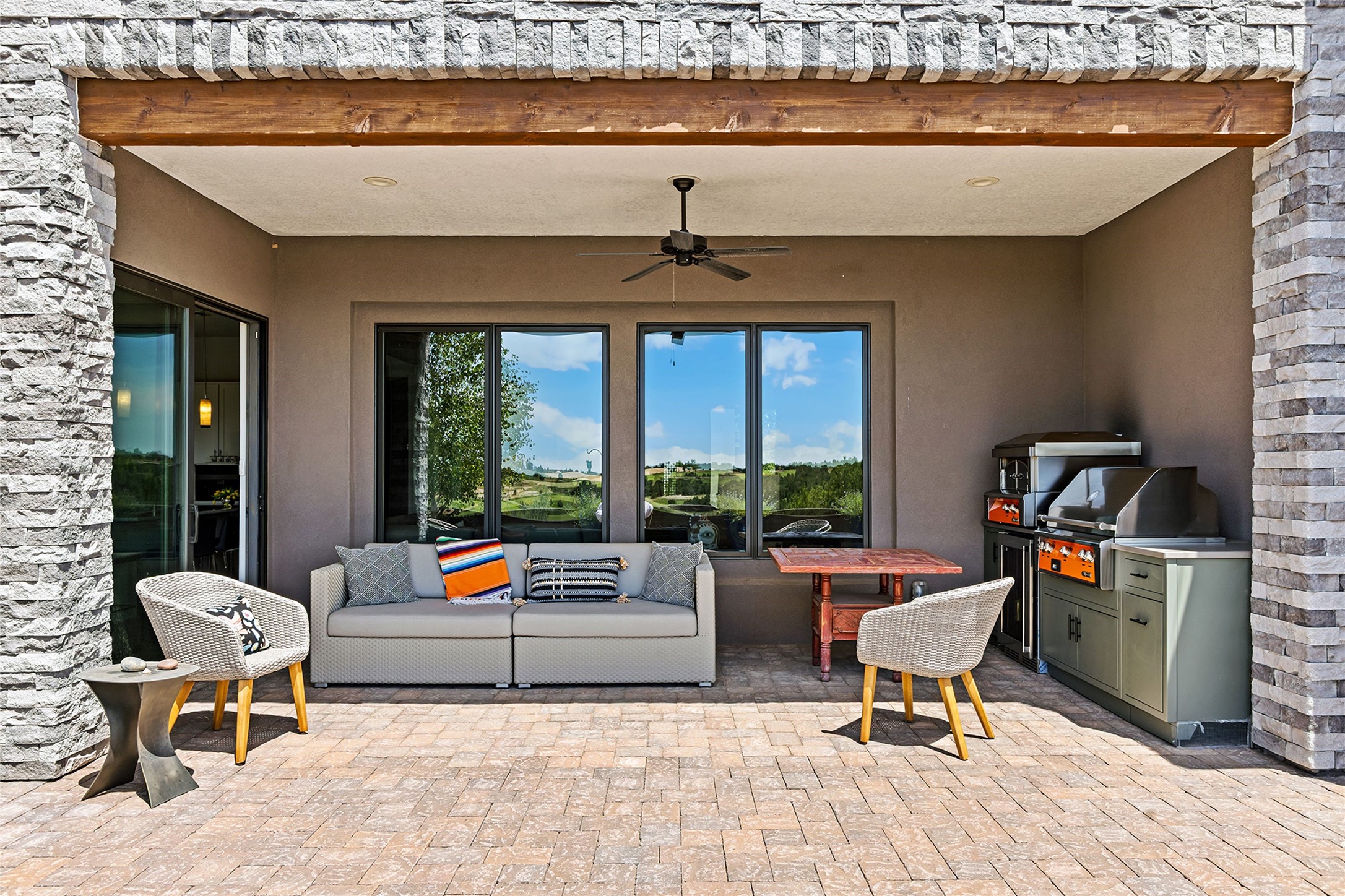 Experience the ultimate Las Campanas lifestyle with stunning golf course views and just a short walk to The Club at Las Campanas! Elevated above it all, this beautifully upgraded and custom-designed Santa Fe retreat offers four bedrooms and four bathrooms in a turnkey package, including all furnishings and artwork. Boasting exceptional golf course and sunset views, this exciting home seamlessly combines contemporary architecture with Santa Fe warmth. Sited on an elevated view lot, the residence welcomes you through a private, gated front courtyard featuring a tranquil fountain. Inside, the spacious, open-concept great room showcases breathtaking golf course views, a gas fireplace with stone accents, and a generous dining area. The newly updated chef's kitchen is a culinary dream, with natural stone countertops, an expansive island, a walk-in pantry, top-of-the-line appliances, and a casual dining space.The luxurious owner's suite offers a curved wall of windows framing the stunning views, along with a renovated en-suite bath featuring dual vanities, a soaking tub, walk-in shower, and a spacious walk-in closet. The separate guest wing provides three additional bedrooms for complete privacy from the main living areas.Step outside to an exceptional outdoor living space, one of the finest in Las Campanas, overlooking dual golf fairways and the newly opened Jemez Putting Course. Entertain effortlessly with a newly installed pizza oven, built-in BBQ grill, covered portal, and enclosed courtyard--perfect for pets and privacy.This defines excellence and offers an incredible and immediate opportunity to start enjoying the Santa Fe lifestyle. The owner's Equity Golf Membership to The Club at Las Campanas is also available for purchase separately.
