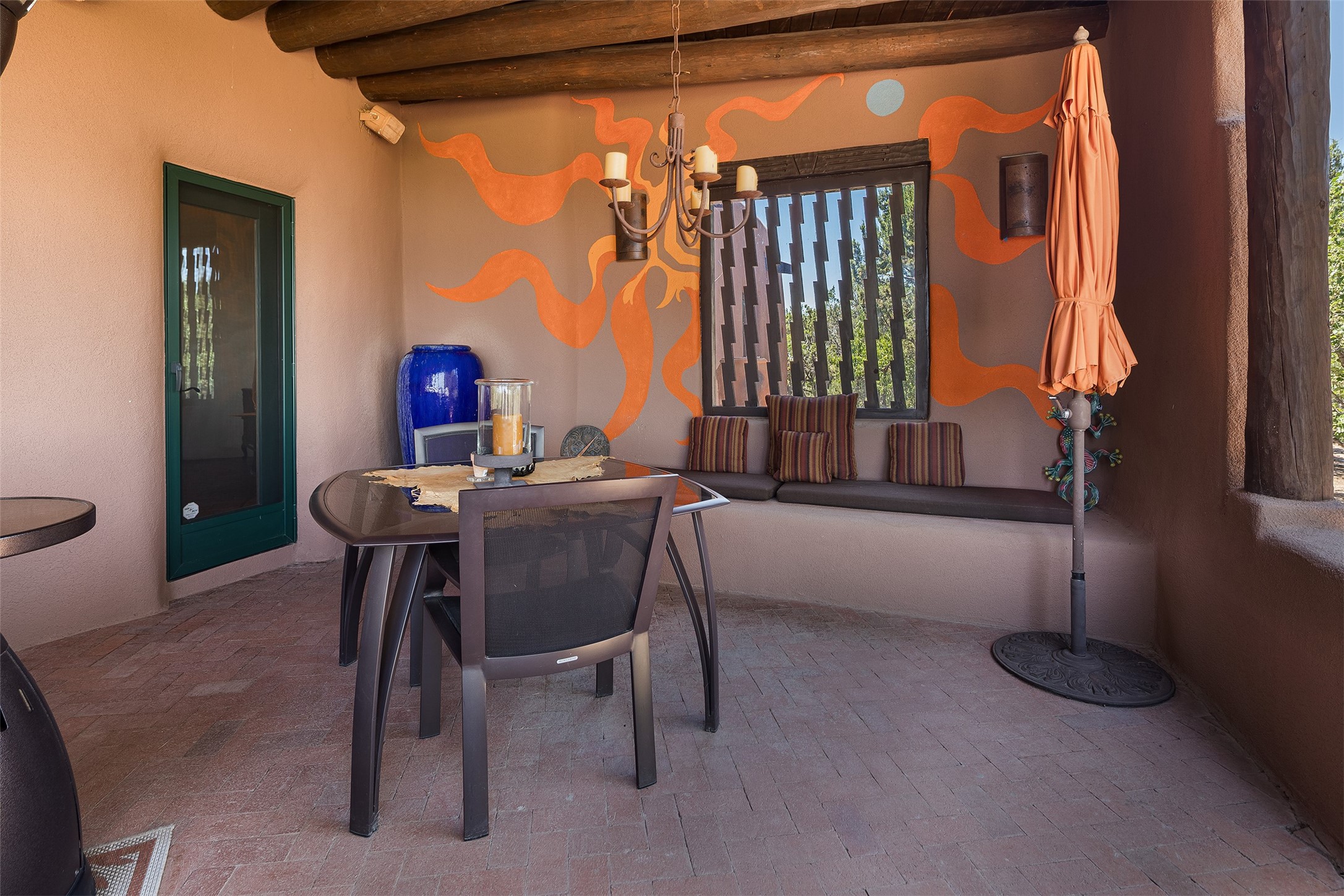 Your spirit will soar as you take in the view and mountains from this beautiful and inviting Santa Fe hacienda! Tucked in on 3.194 acres, so private with forever views, yet only 5 minutes to Market Street and Jinga Restaurant. Well- constructed with plastered walls, 5 wood-burning fireplaces, brick floors, traditional ceiling treatments, spacious main outdoor portal with Jemez views plus a private portal off the primary suite with Sangre & Jemez views. The original part of the house is adobe, built in the mid-1980's & the house was enlarged in 1999 with famed architect Richard Martinez at the helm, designing a stunning primary suite with a small library, separate office with built-ins (& the mesmerizing views), an ample gathering room for TV & music, and a casual dining room. Richard returned in Nov 2012 to design a small guest house, which was not built, but the site is shown on the plat for information only. The wonderful flow of this home includes approx. 5317 square feet: 4 bedrooms, 4 baths (2 Full, two ), formal dining & casual dining, two living areas, office. Radiant heat (the good kind) in the floor, 3 mini-splits for AC. NO HOA. This home offers grace, warmth & sophistication in a location that gives an elevated Santa Fe experience with views sunrise to sunset. Enjoy the video!