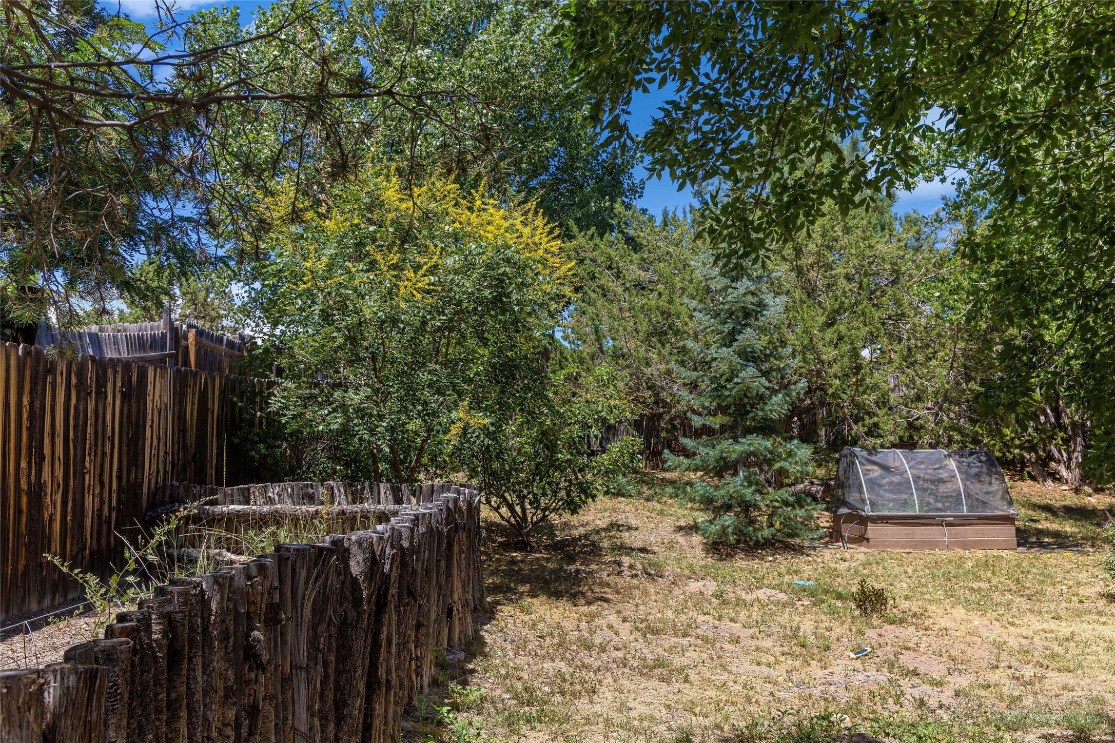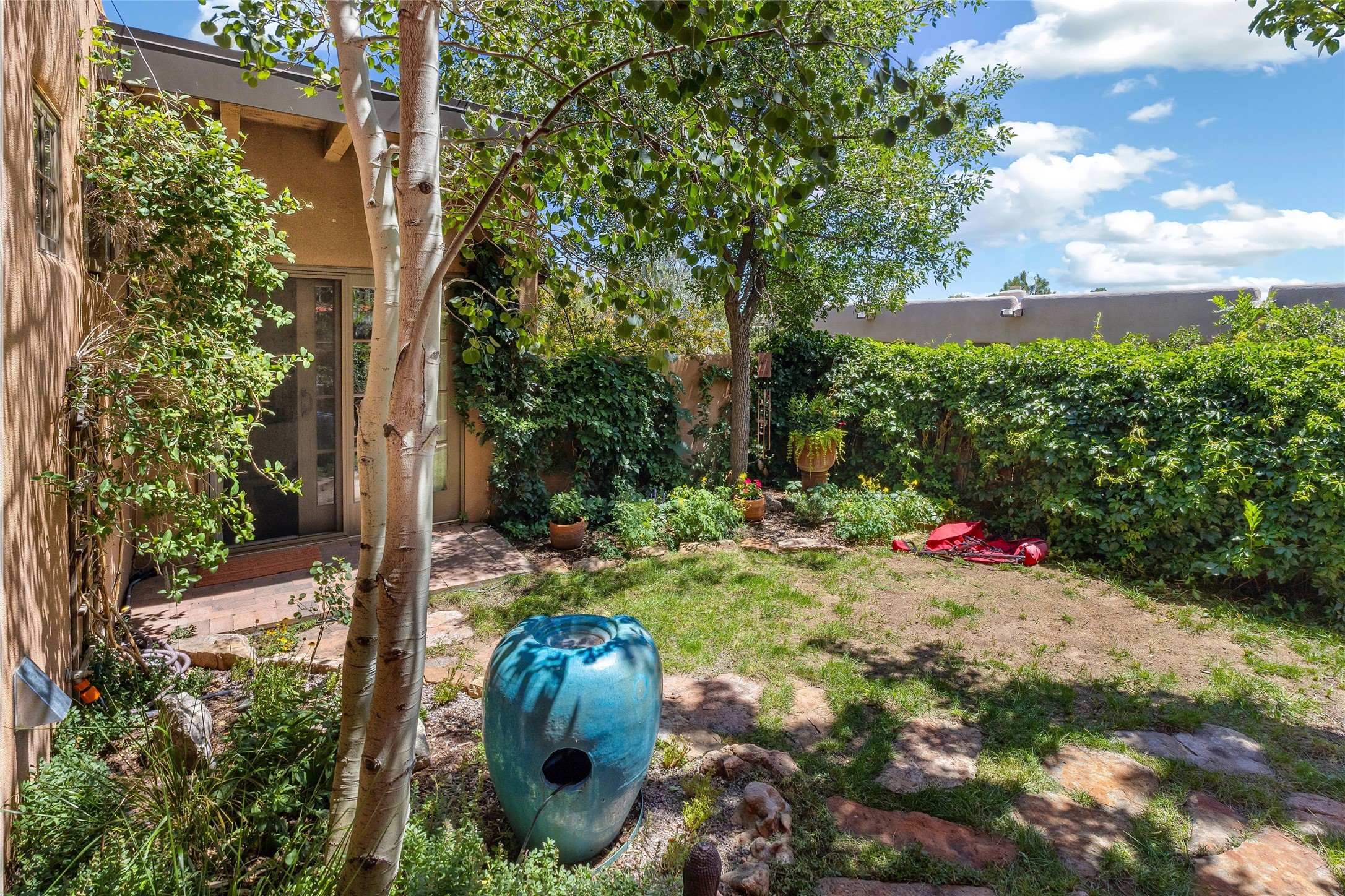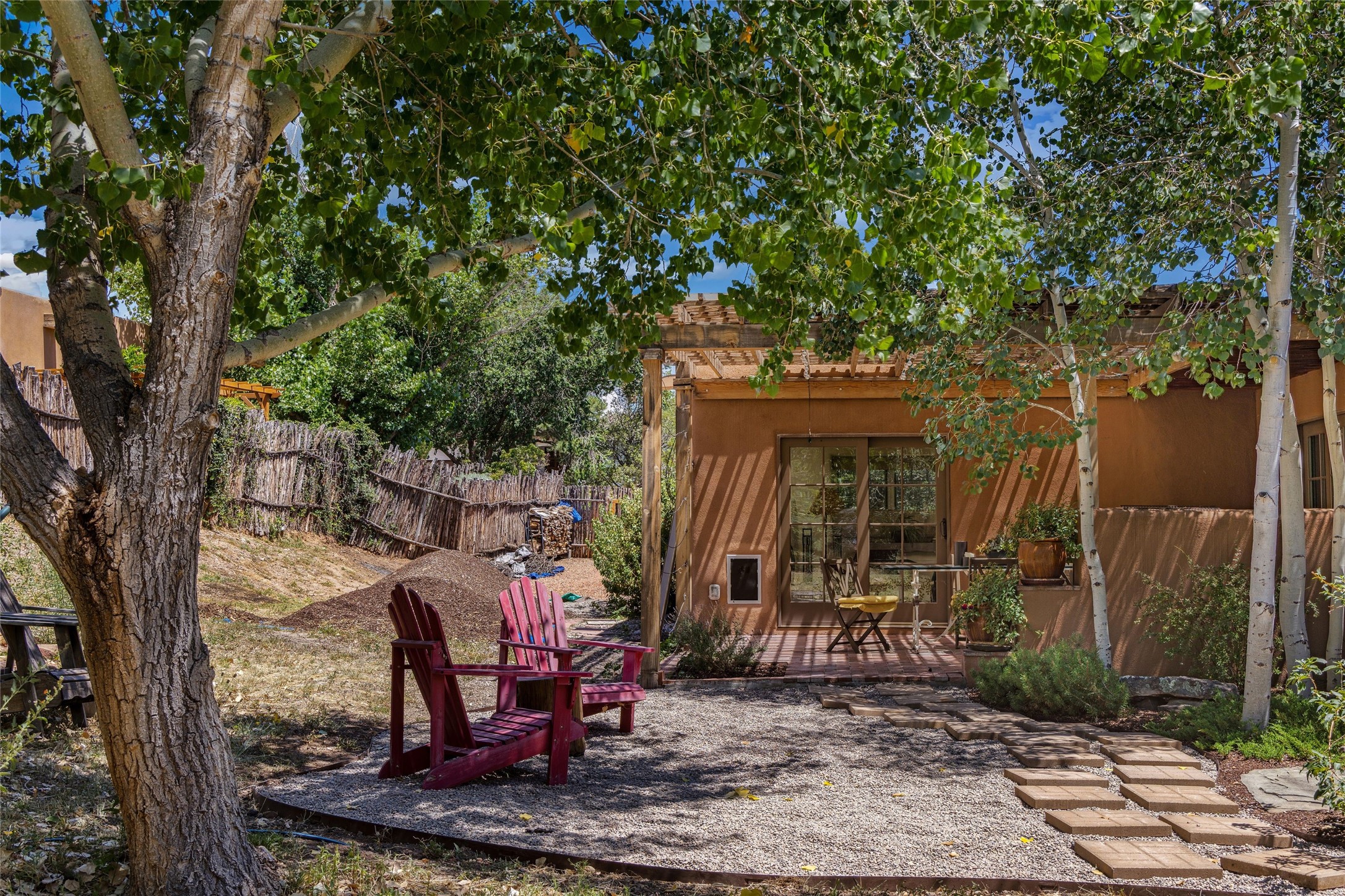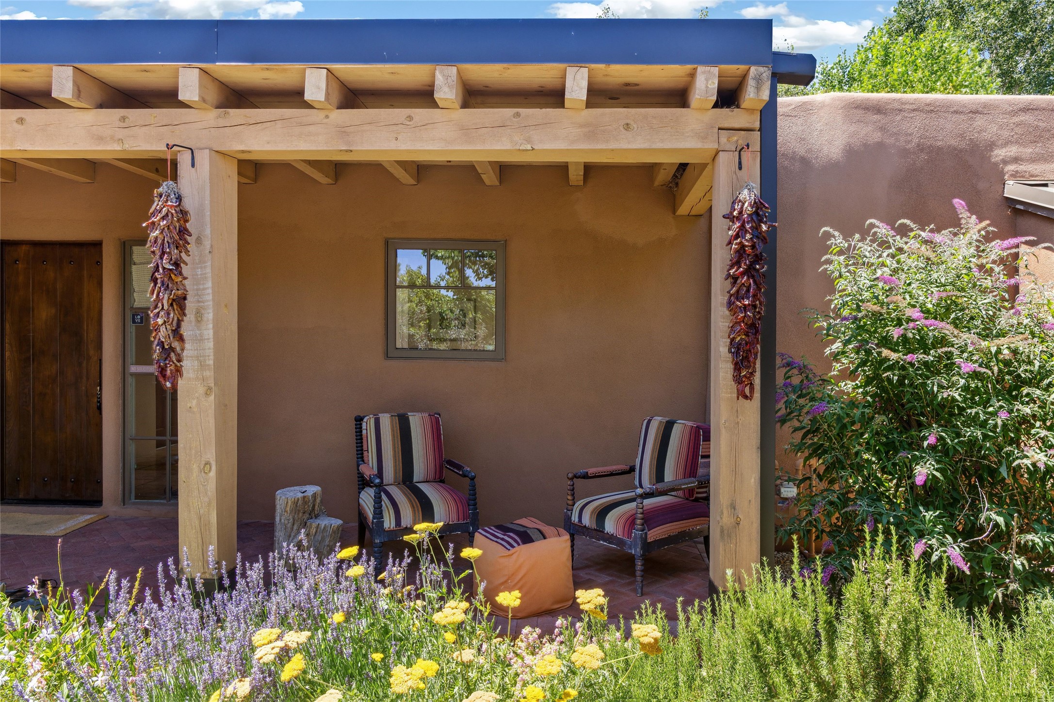 Nestled behind a private stucco-walled garden bursting with seasonal flowers, this single-level Santa Fe-style home reflects almost two decades of thoughtful design by its creative owners. Every detail tells a story--authentic, warm, and perfectly tailored for modern living. The convenient in town location is only blocks from the storied South Capital neighborhood. Step inside to discover sunlit interiors with rich hardwood floors, wood beamed ceilings, skylights, and an open flow that connects the heart of the home. The island kitchen, crowned with raised ceilings and Kitchen Aid appliances offers generous counter space and seamlessly opens to a cozy den anchored by a traditional kiva fireplace. The center hall floor plan offers a dining room with coved ceilings and views of an outdoor grilling patio with arbor. The sunken living room with corner kiva fireplace has access to the side courtyard with Aspen trees and fountain. The spacious bedrooms share an updated dual vanity bathroom with shower. The primary opens to the connecting side fountain courtyard. A luxurious laundry room, abundant storage, oversized attached two car garage and secondary gated driveway completes this home. Many updates over the years since ownership include adding landscaping, adding a front portal, replacing the windows/doors, updating the roof and stucco. Multiple outdoor living spaces invite you to savor Santa Fe's magical light--from mountain views from the front garden, morning coffee in the courtyard to evening gatherings under the stars. The landscaped grounds are a private sanctuary, with vibrant flowers and native plantings creating year-round beauty. This is more than a home--it's a carefully curated work of art, blending classic Southwestern architecture with the comfort and style of a designer's vision.