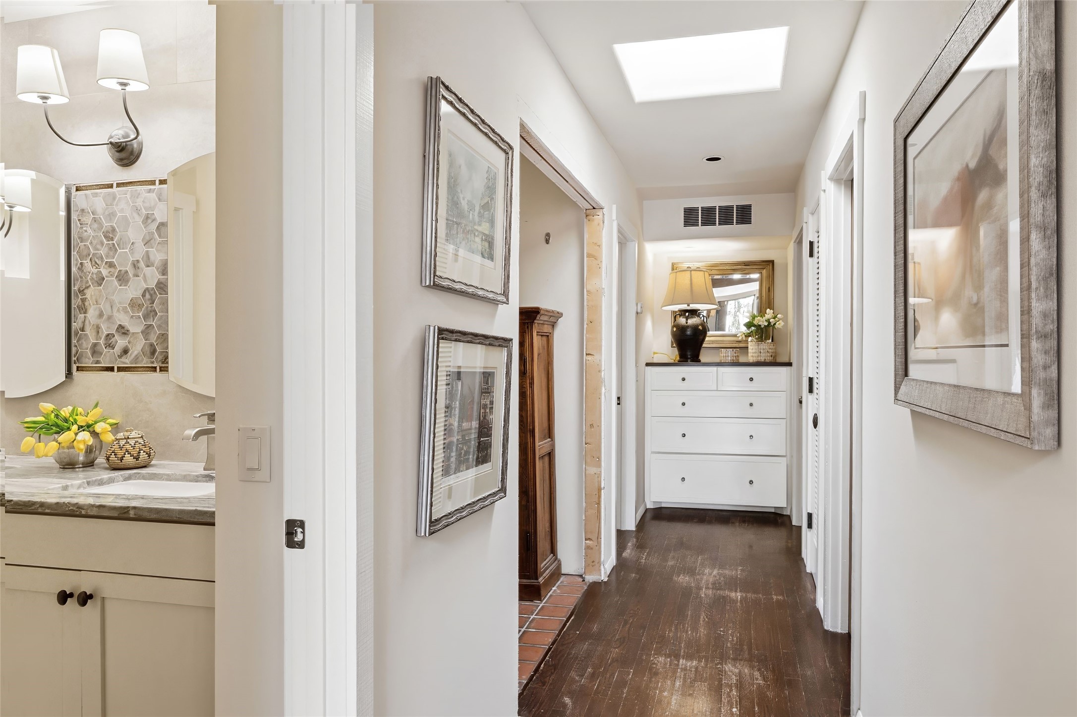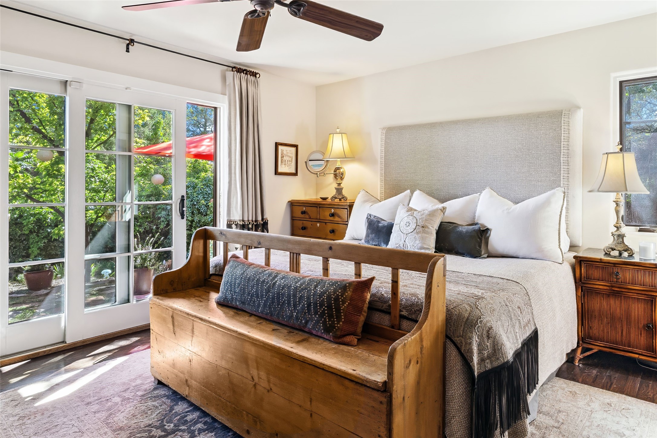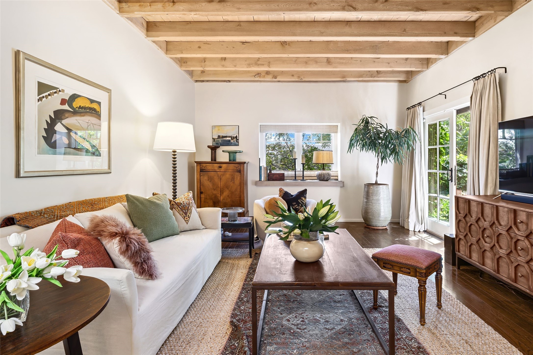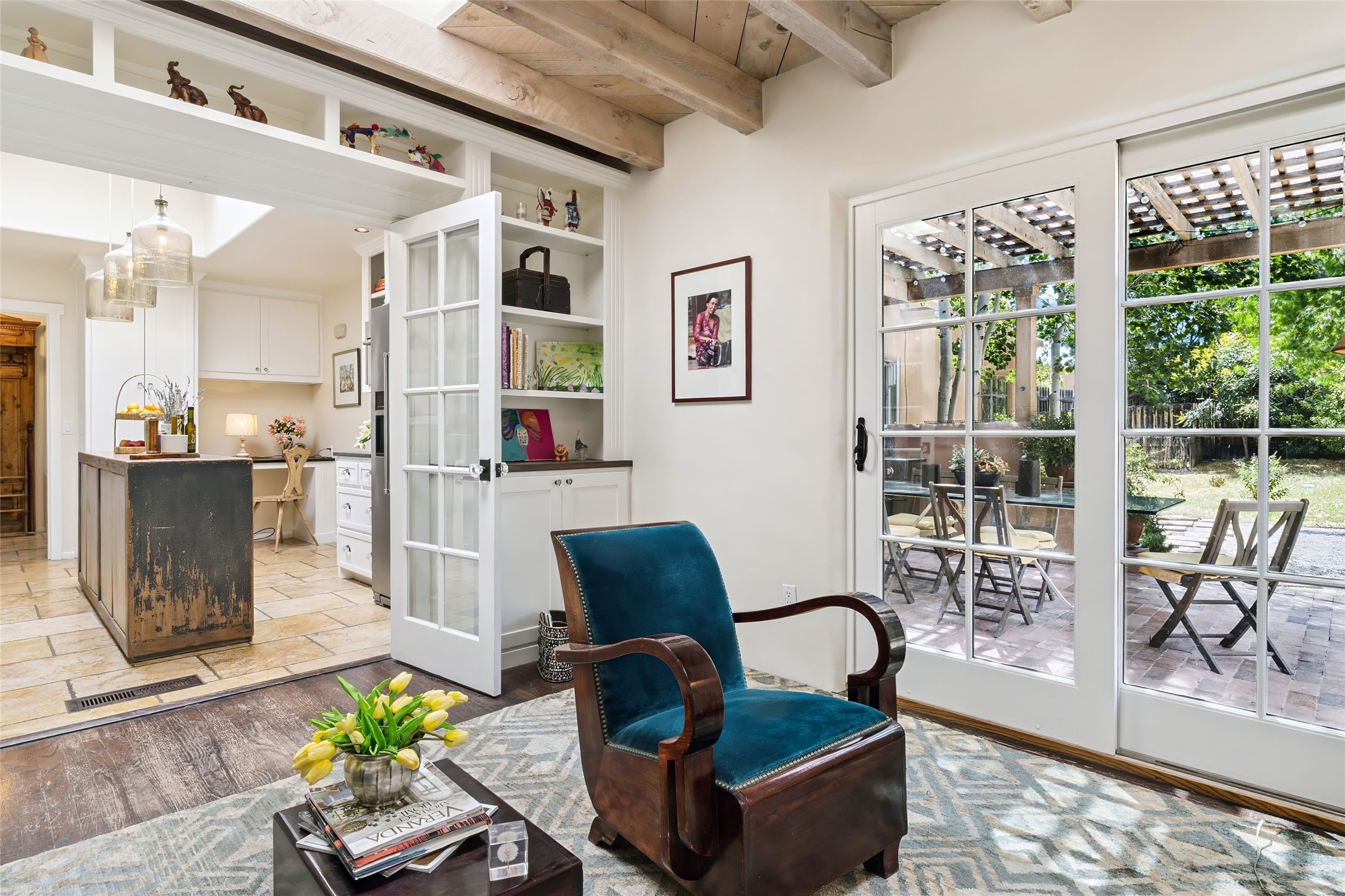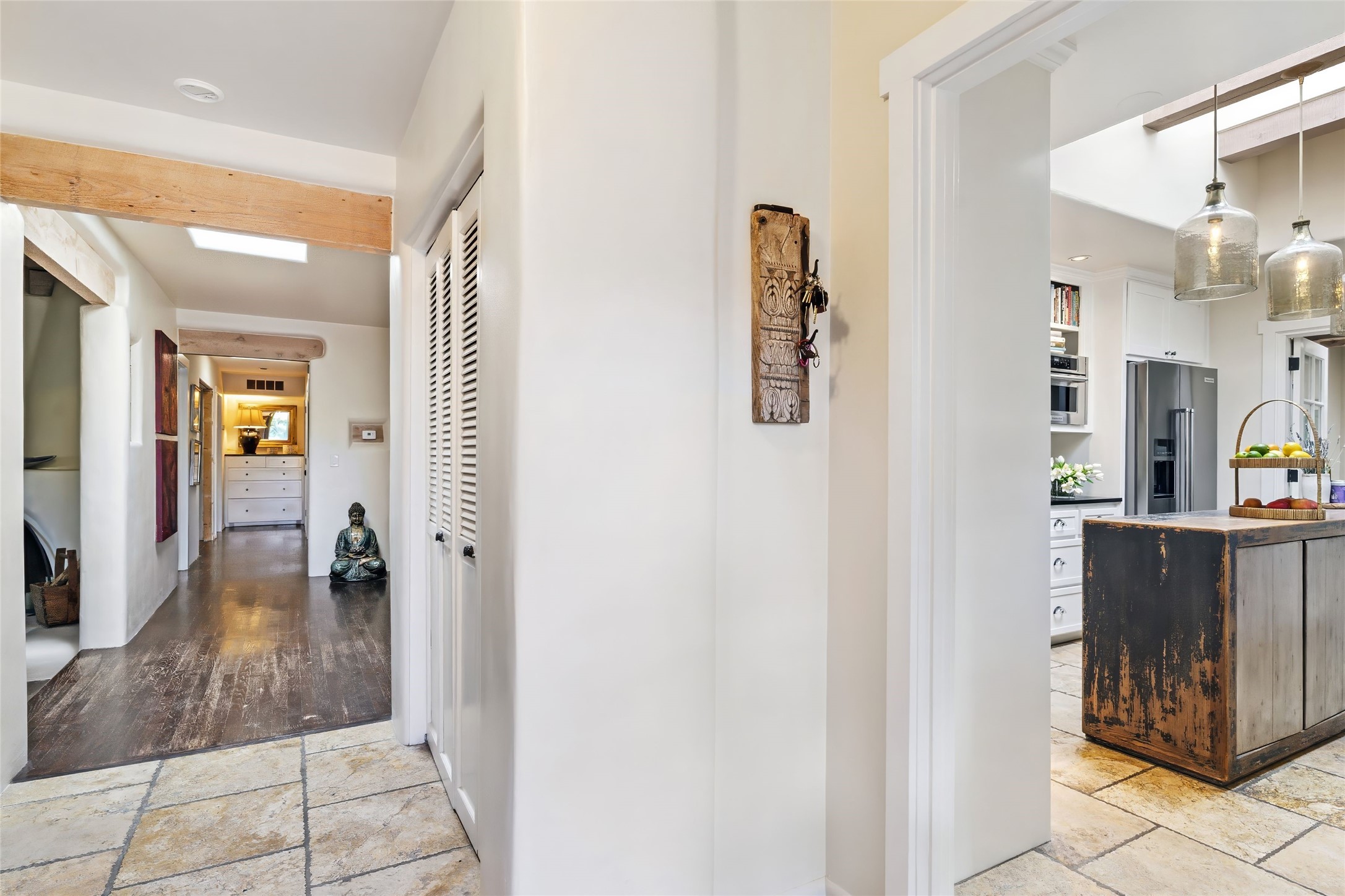Nestled behind a private stucco-walled garden bursting with seasonal flowers, this single-level Santa Fe-style home reflects almost two decades of thoughtful design by its creative owners. Every detail tells a story--authentic, warm, and perfectly tailored for modern living. The convenient in town location is only blocks from the storied South Capital neighborhood. Step inside to discover sunlit interiors with rich hardwood floors, wood beamed ceilings, skylights, and an open flow that connects the heart of the home. The island kitchen, crowned with raised ceilings and Kitchen Aid appliances offers generous counter space and seamlessly opens to a cozy den anchored by a traditional kiva fireplace. The center hall floor plan offers a dining room with coved ceilings and views of an outdoor grilling patio with arbor. The sunken living room with corner kiva fireplace has access to the side courtyard with Aspen trees and fountain. The spacious bedrooms share an updated dual vanity bathroom with shower. The primary opens to the connecting side fountain courtyard. A luxurious laundry room, abundant storage, oversized attached two car garage and secondary gated driveway completes this home. Many updates over the years since ownership include adding landscaping, adding a front portal, replacing the windows/doors, updating the roof and stucco. Multiple outdoor living spaces invite you to savor Santa Fe's magical light--from mountain views from the front garden, morning coffee in the courtyard to evening gatherings under the stars. The landscaped grounds are a private sanctuary, with vibrant flowers and native plantings creating year-round beauty. This is more than a home--it's a carefully curated work of art, blending classic Southwestern architecture with the comfort and style of a designer's vision.