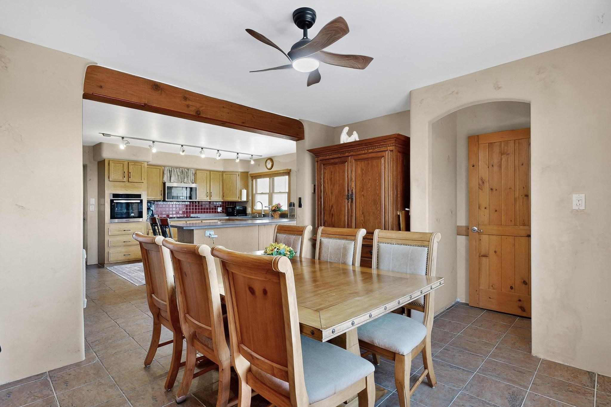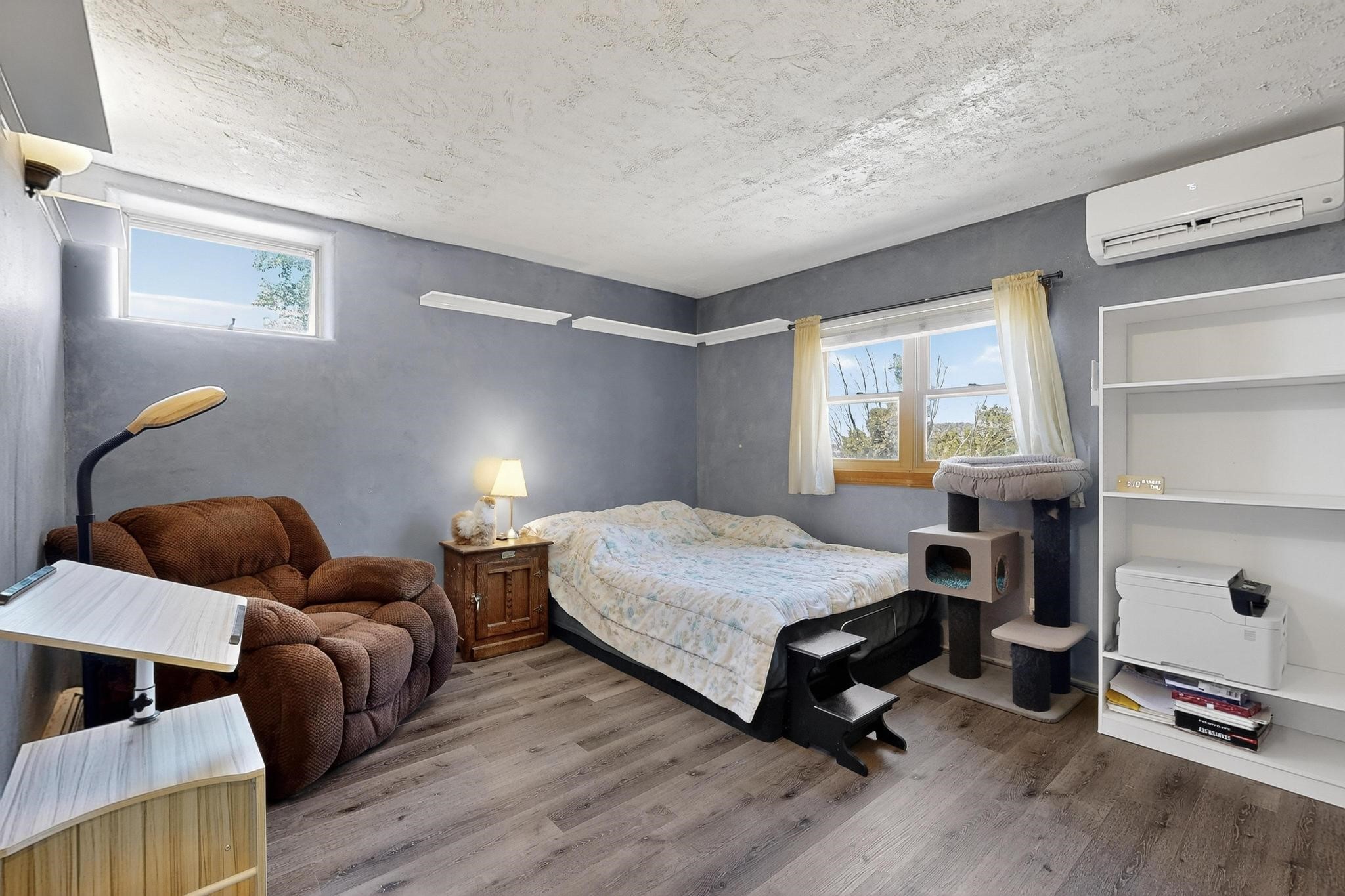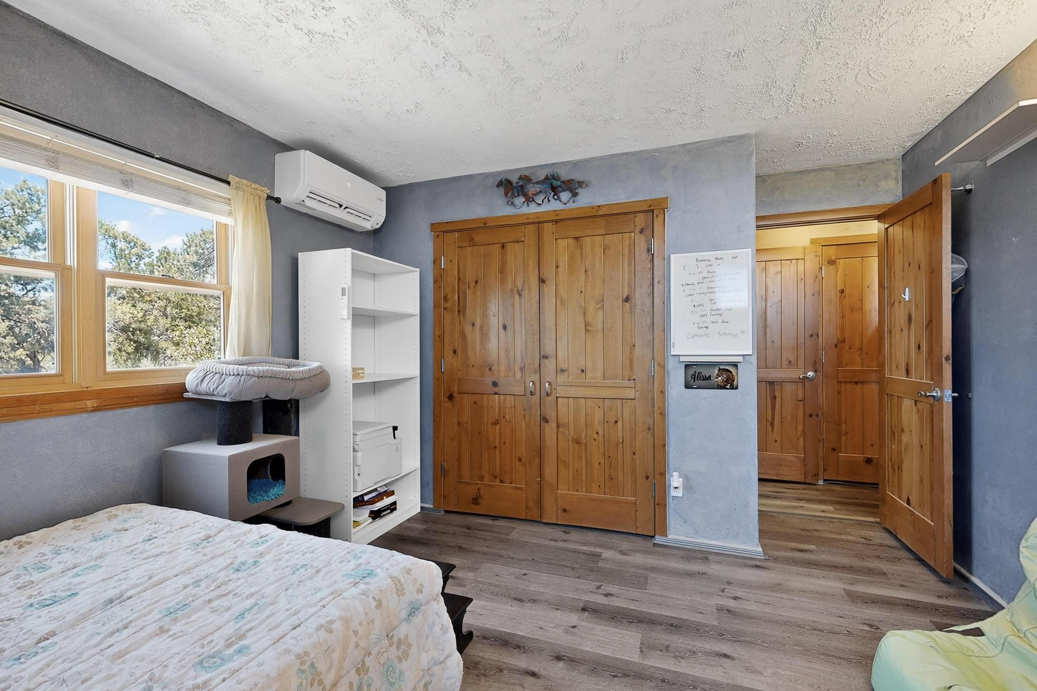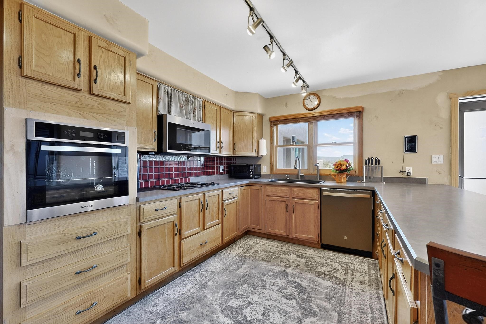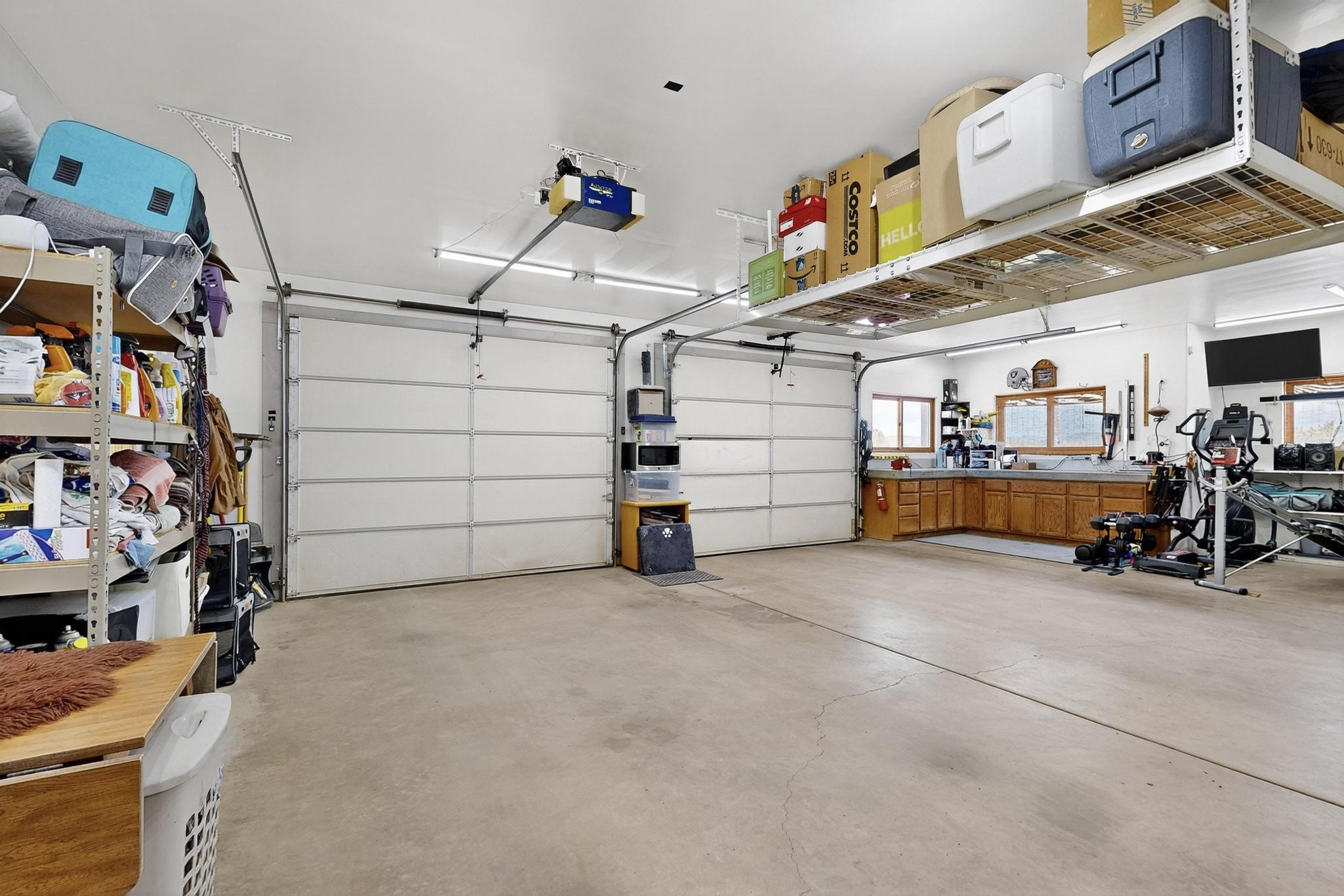 Priced to Sell! Wonderful passive solar trilevel design nestled on a hilltop with decks and a lighted gazebo enjoy the sweeping Sangre's and Pecos mountain views. A flexible floorpan with the owners suite, kitchen, dining and living areas on the main level. A TV / family room, and an office upstairs with a view deck. A walk out lower level includesl 2 guest bedrooms, a full bath and laundry. The 36' x 29' heated garage also has a workshop and storage room. In 2023 the stucco and roof were replaced, 3 Bosch mini splits added, a new tankless hot water heater, plus new windows and storm doors. 2 trex/wood decks, rain downspouts and the kitchen appliances. In 2024 the well pump was replaced, and there is a 1500 gallon underground cistern. The underground 500 gallon propane tank is owned, the hot tub is ready with fabulous views. All this on 5 acres, No HOA, horses and chickens welcome, only minutes to Eldorado area local shopping and services, or into historic Santa Fe.