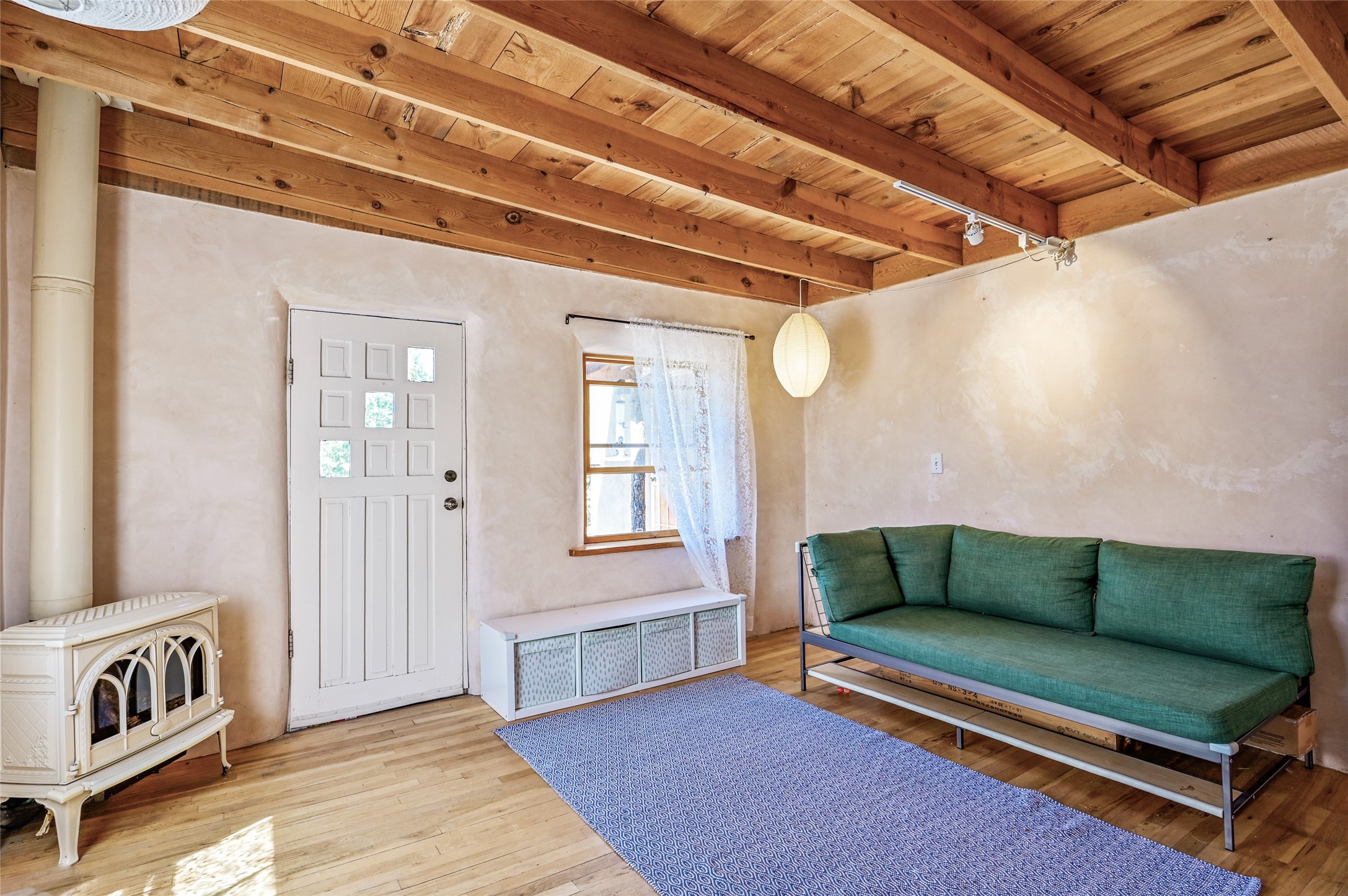 Charming 2 bed/2.5 bath + bonus room/office single level adobe home on corner lot w/thoughtful modern upgrades in centrally located neighborhood. Walk to coffee shops, restaurants, parks, and ride the Rail Trail to the farmers market, concerts, and events in the Railyard District and historic Santa Fe Plaza just minutes away. Versatile ~1400sf layout w/bright South facing living room & eat-in kitchen w/abundant cabinet space, designer AGA oven, & new stainless-steel appliances. Classic Santa Fe details throughout with hardwood floors, vigas, niches, Talavera tile, and plaster walls paired with recent updates such as a brand new renovated half bath in the bonus room/office. Enjoy customizable temperature control with zoned heating/cooling with mini splits and gas fireplaces & heaters. Ample outdoor living and entertaining space with large walled front and back yards with mature apricot trees. Don't miss your chance to own this cozy adobe home in the heart of Santa Fe!