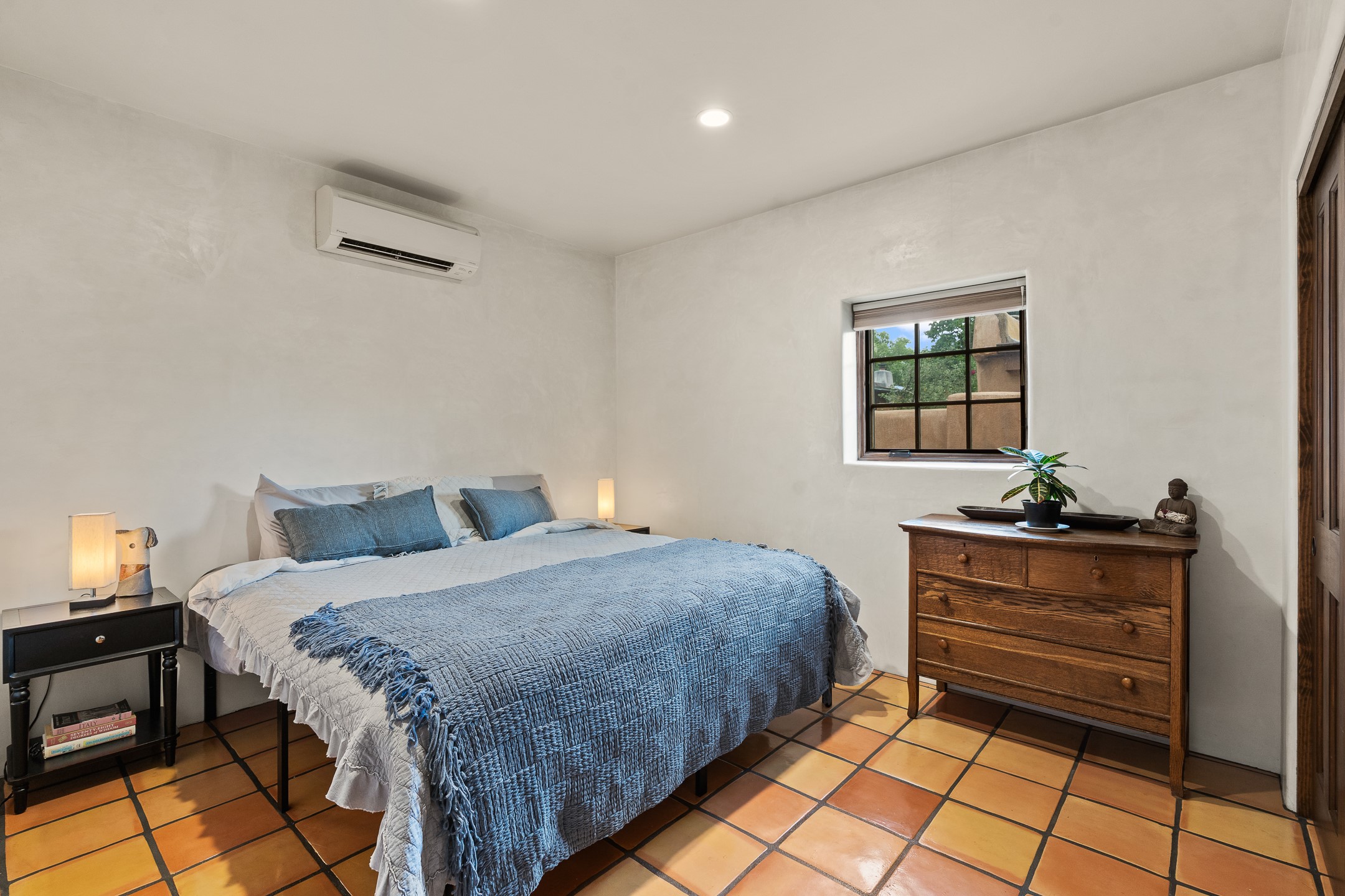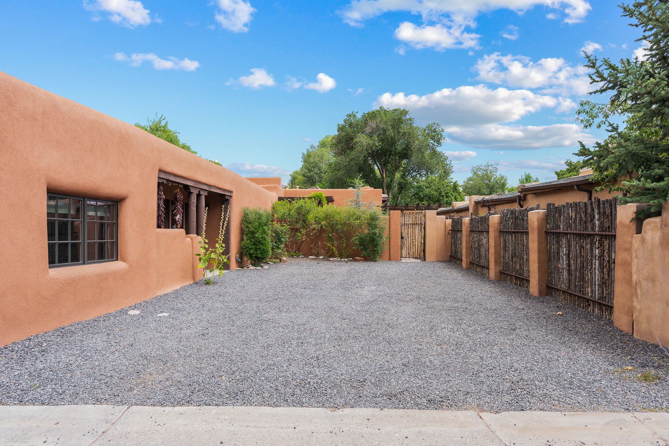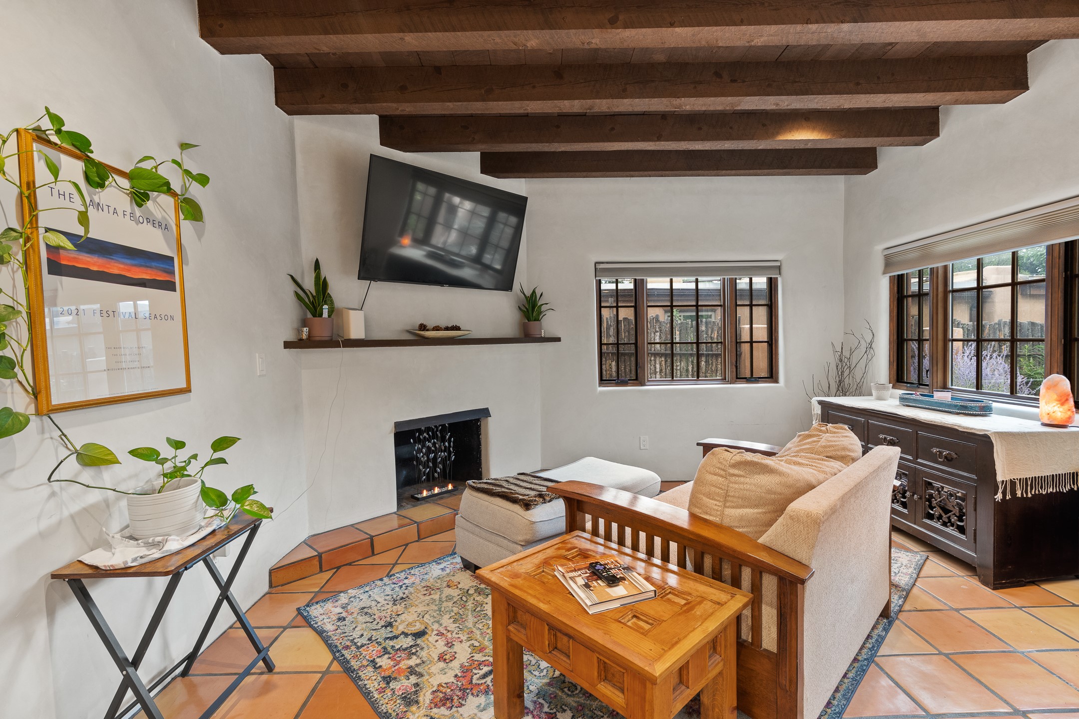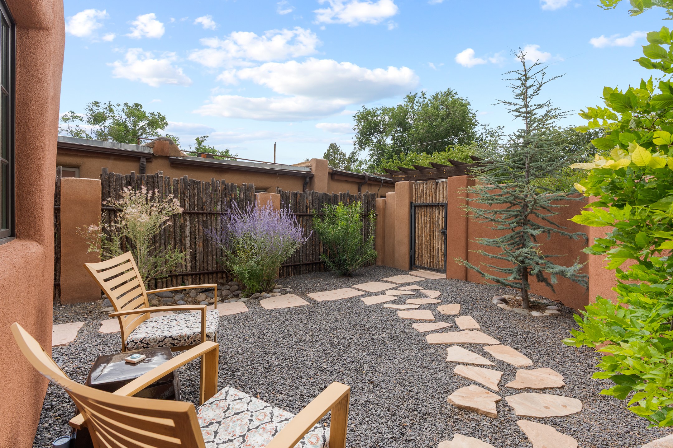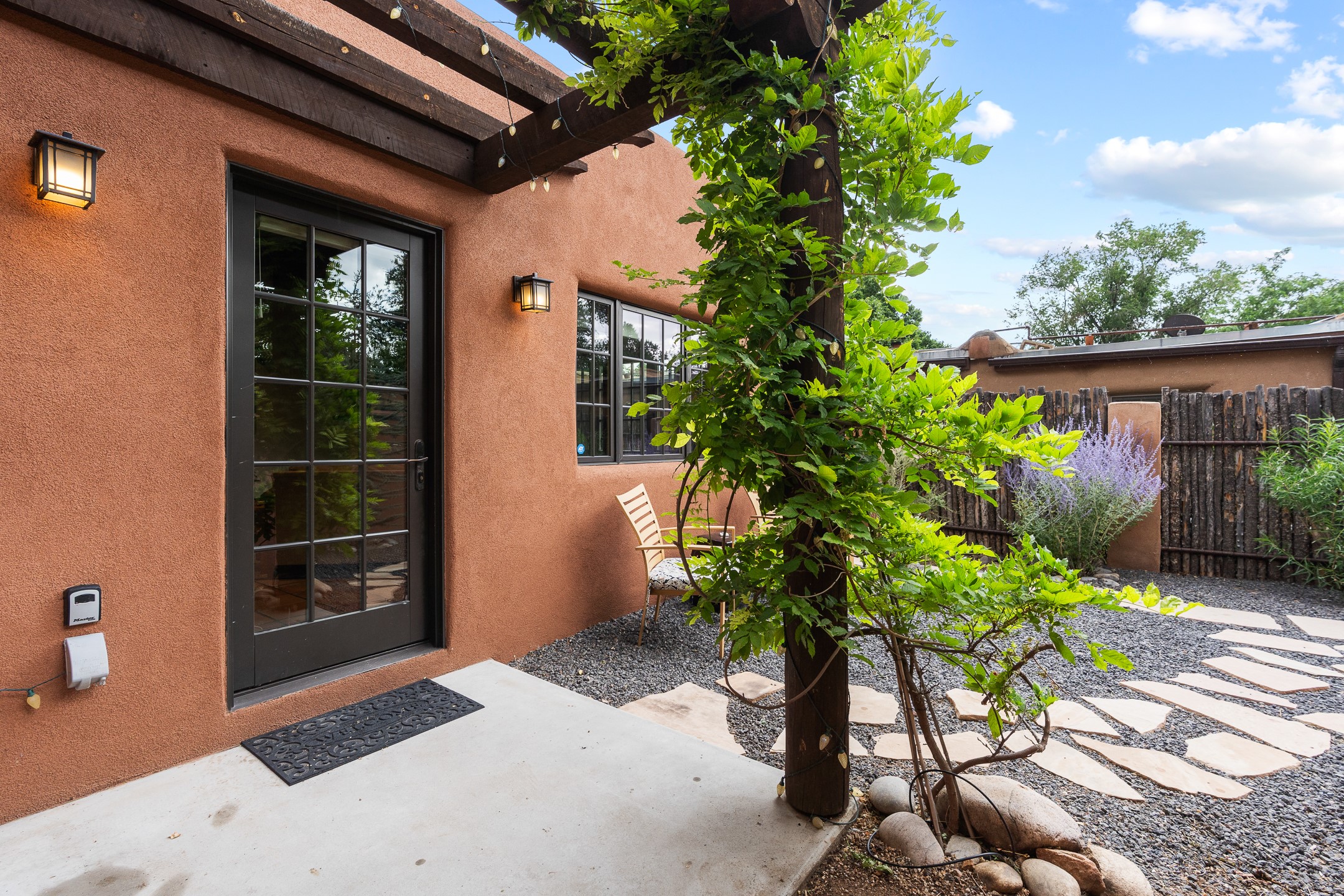 Modern Comfort in a Classic Santa Fe Setting. This beautifully rebuilt duplex sits in a highly walkable and desirable downtown Santa Fe neighborhood. Thoughtfully remodeled less than ten years ago, this home seamlessly blends old-world charm with modern conveniences -- perfect for anyone seeking quality, location, and flexibility. The front casita, features two serene bedrooms and two full bathrooms. The back casita is two bedrooms and one bath. Each space has a private entrance flanked by mature landscaping as well as updated systems and stylish finishes throughout. Recent upgrades include: Pella divided light windows and doors. Venetian-style diamond plaster walls. Rich Saltillo tile flooring throughout. Radiant in-floor heat complemented by ducted and split-unit air systems. Upgraded electric and plumbing with separate meters. Stainless appliance packages. Washer and dryer in both casitas Oil rubbed Bronze Kohler fixtures and custom Italian hand-blown glass tile shower accents. Flagstone walk and patio. TPO roof and updated sewer line. Brand new stucco exterior completed in 2024. Professionally installed drip irrigation system. No HOA restrictions mean ultimate flexibility: live in one unit while renting the other for passive income, or capitalize on Santa Fe's vibrant rental market with both units. Whether you're looking for a primary residence, pied-terre, or investment property, this home offers rare versatility with premium finishes in an unbeatable location.