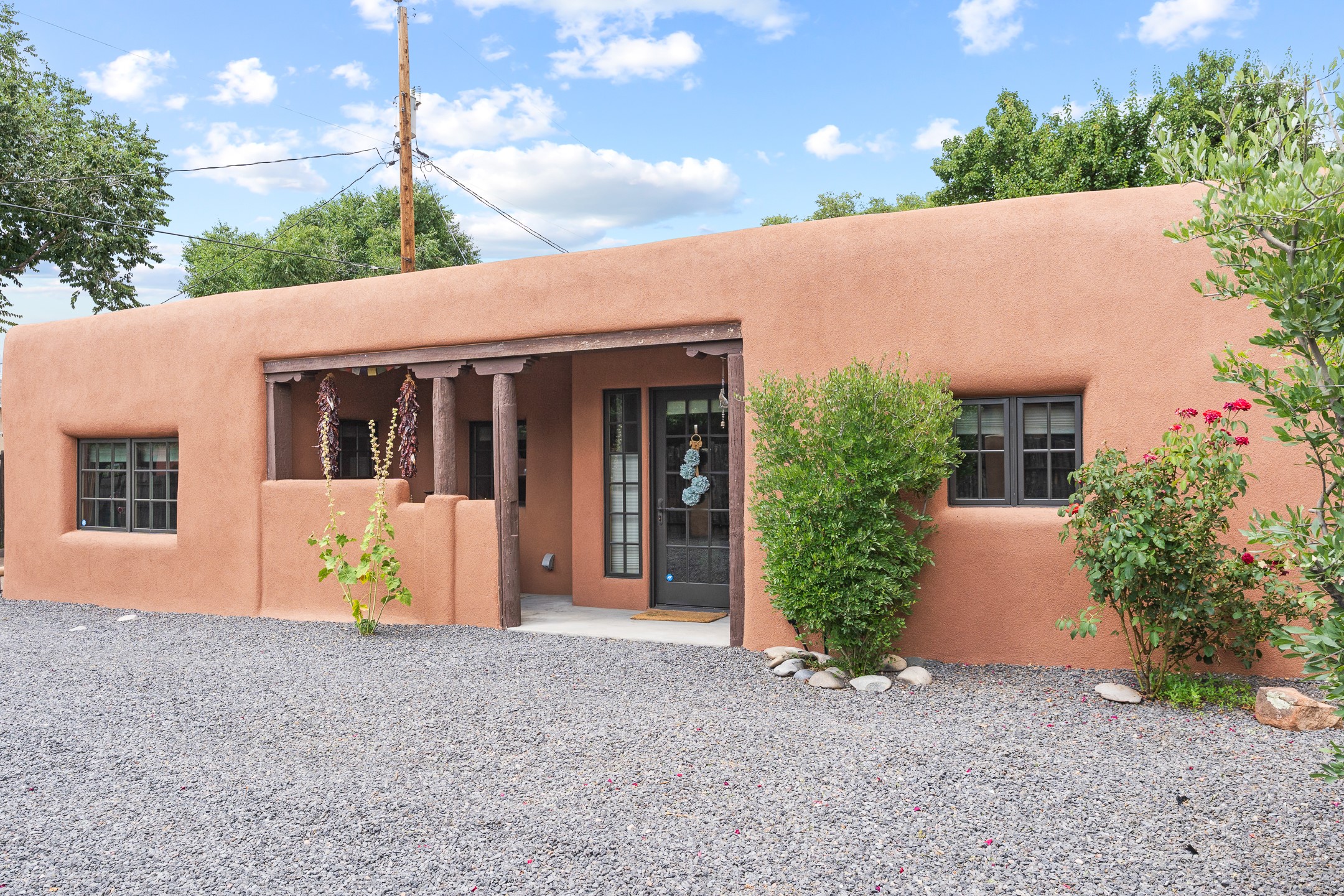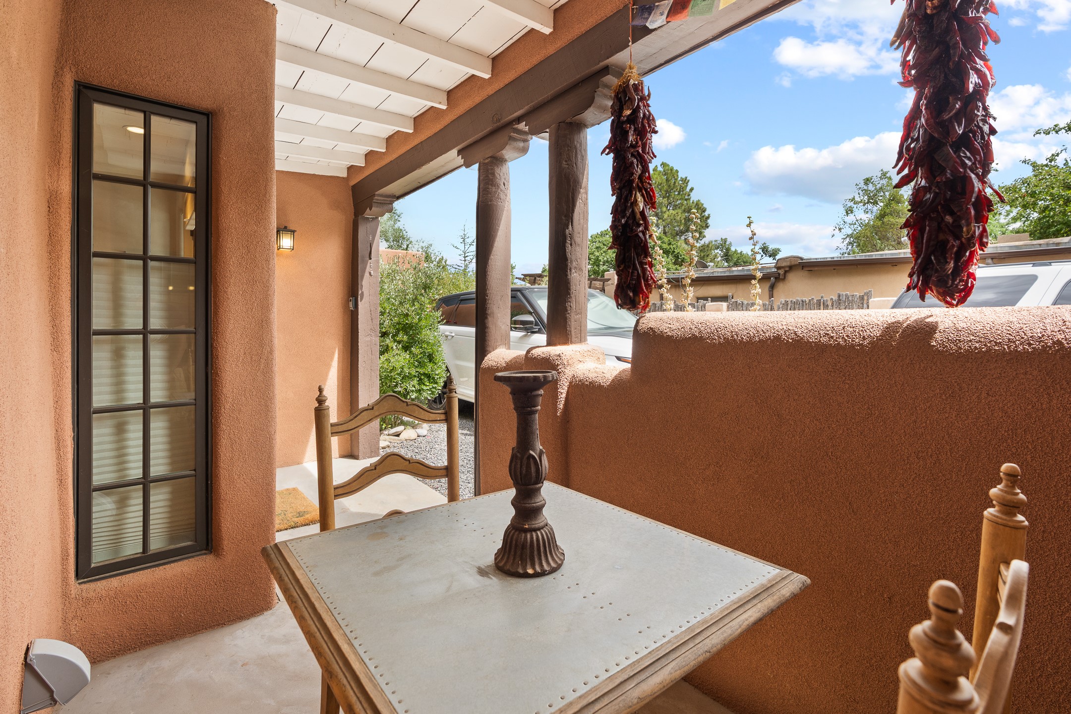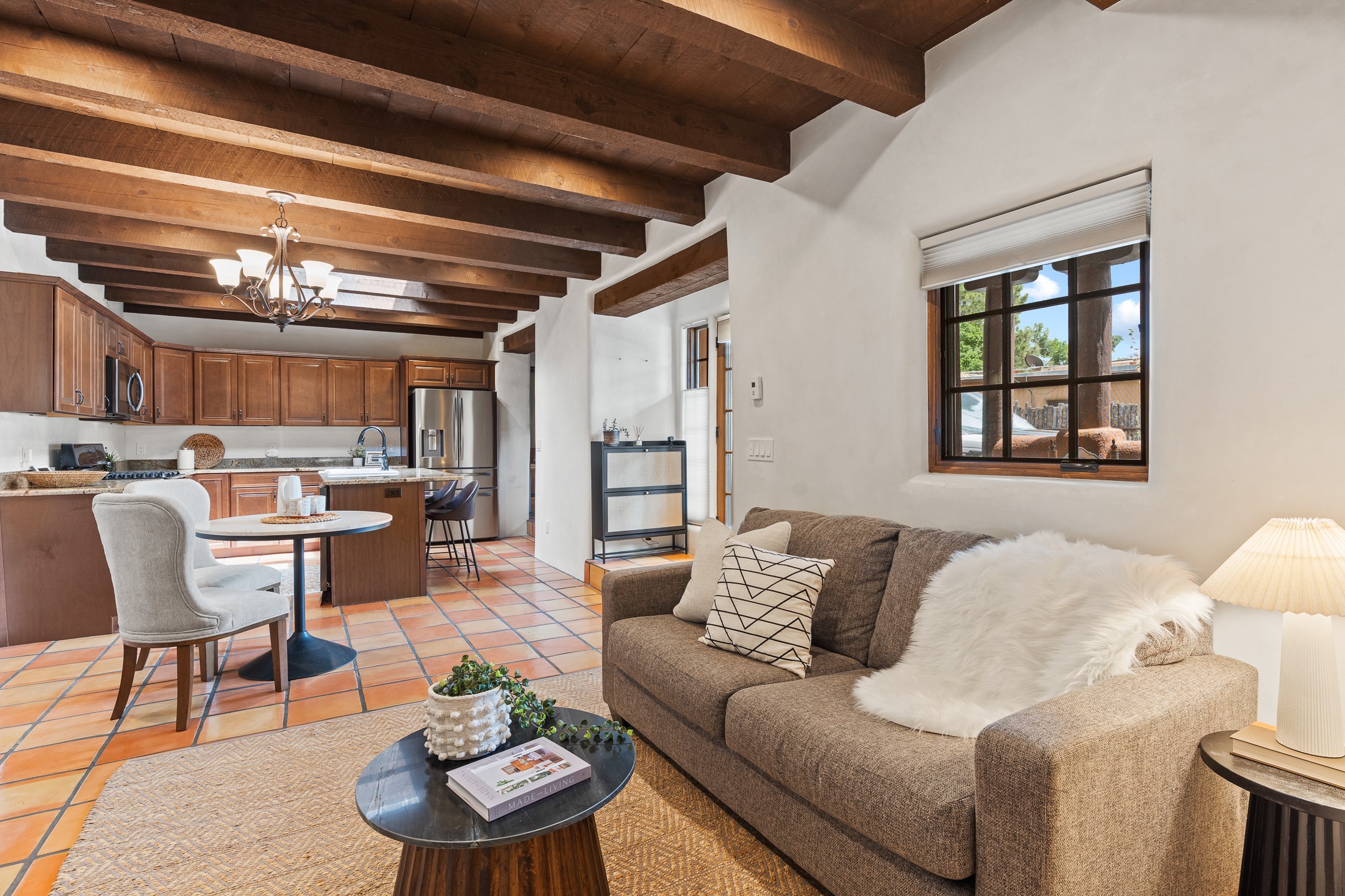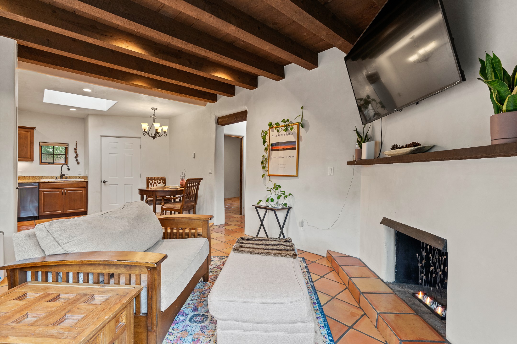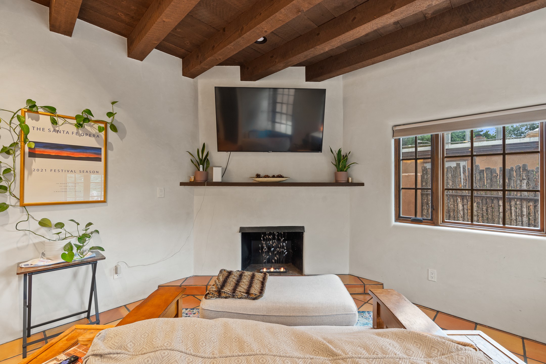 Modern Comfort in a Classic Santa Fe Setting. This beautifully rebuilt duplex sits in a highly walkable and desirable downtown Santa Fe neighborhood. Thoughtfully remodeled less than ten years ago, this home seamlessly blends old-world charm with modern conveniences -- perfect for anyone seeking quality, location, and flexibility. The front casita, features two serene bedrooms and two full bathrooms. The back casita is two bedrooms and one bath. Each space has a private entrance flanked by mature landscaping as well as updated systems and stylish finishes throughout. Recent upgrades include: Pella divided light windows and doors. Venetian-style diamond plaster walls. Rich Saltillo tile flooring throughout. Radiant in-floor heat complemented by ducted and split-unit air systems. Upgraded electric and plumbing with separate meters. Stainless appliance packages. Washer and dryer in both casitas Oil rubbed Bronze Kohler fixtures and custom Italian hand-blown glass tile shower accents. Flagstone walk and patio. TPO roof and updated sewer line. Brand new stucco exterior completed in 2024. Professionally installed drip irrigation system. No HOA restrictions mean ultimate flexibility: live in one unit while renting the other for passive income, or capitalize on Santa Fe's vibrant rental market with both units. Whether you're looking for a primary residence, pied-terre, or investment property, this home offers rare versatility with premium finishes in an unbeatable location.
