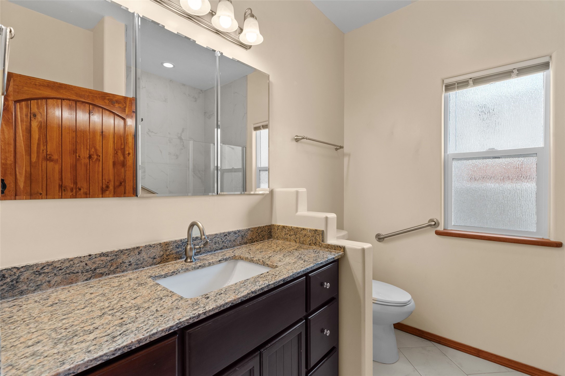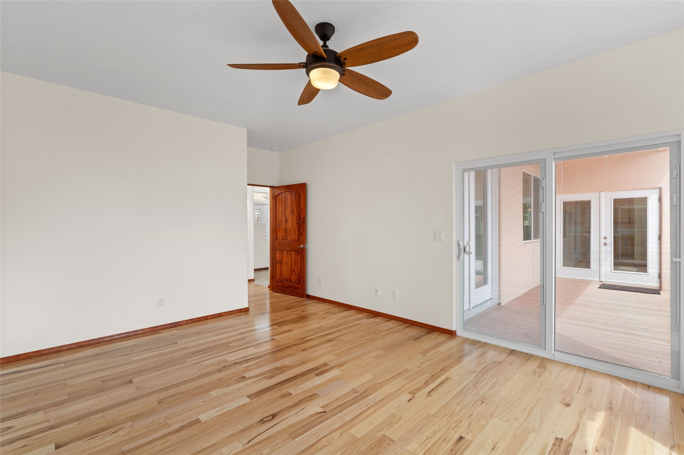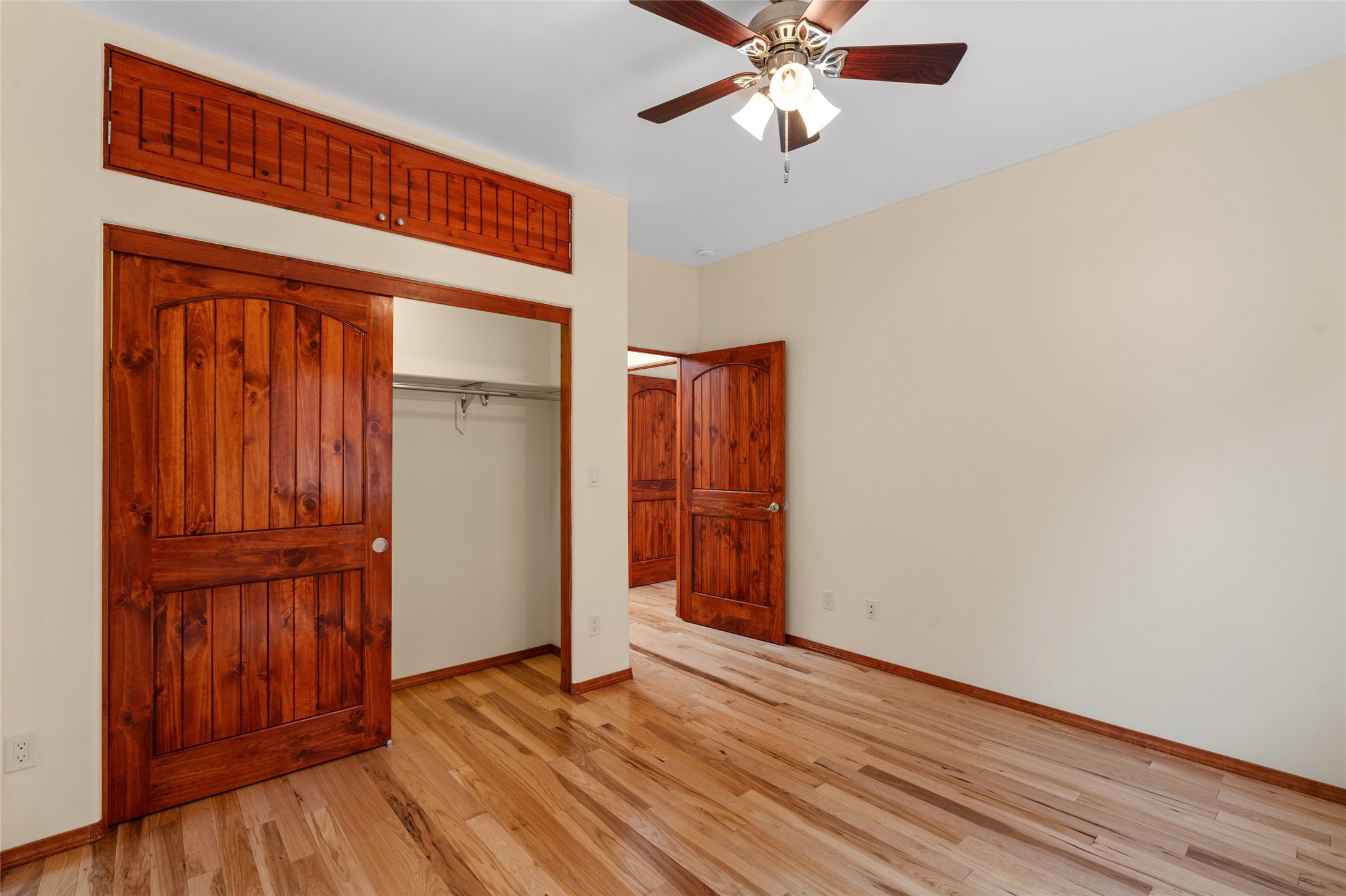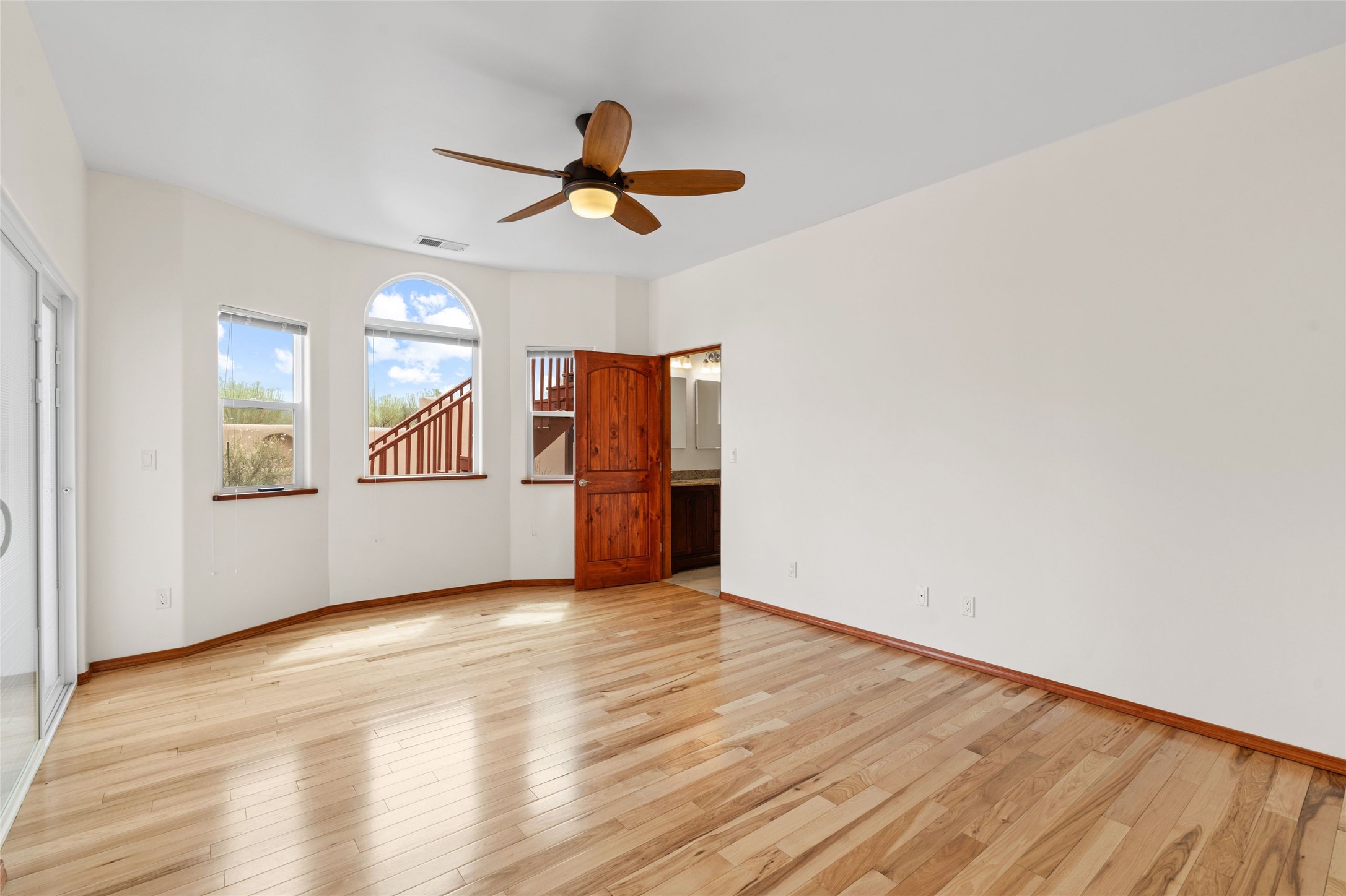 Kachina Ridge 3-bedroom, 2-bathroom residence, crafted by Master Green Builder Arch Sproul, showcases numerous custom upgrades and green features, making it an eco-friendly choice for the modern homeowner. Wide doorways, nichos, and porcelain tile and hardwood hickory floors throughout. The solid knotty pine doors add a touch of rustic charm, while the enlarged living room with log vigas and a gas fireplace with a flagstone hearth, invites you to unwind in style. The bright, east-facing kitchen is appointed with a center island, solid maple cabinets finished in natural tones, Silestone quartz countertops and Energy Star Appliances. The primary suite includes a walk-in closet and en-suite bath with soaking tub and walk-in shower. The two guest bedrooms offer versatile options, whether you need a studio, office, or additional space for visitors. Plus, a bonus room awaits your creativity--perfect for exercise or artistic endeavors. Step outside to the expansive back portal featuring a tongue and groove ceiling, where you can enjoy al fresco dining. The front and backyard gardens are thoughtfully designed with low-water perennials and buried irrigation lines. Enlarged, fully finished garage with 10-foot ceiling and overhead storage. Equipped with 30 photovoltaic panels installed by Positive Energy, you can enjoy lower energy costs while reducing your carbon footprint. The Kachina Ridge Subdivision homes are located adjacent to a greenbelt with no through streets. Convenient city location close to shopping, restaurants and the Santa Fe Plaza.